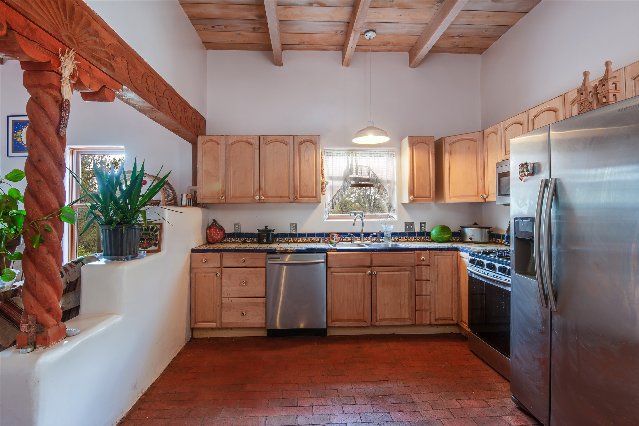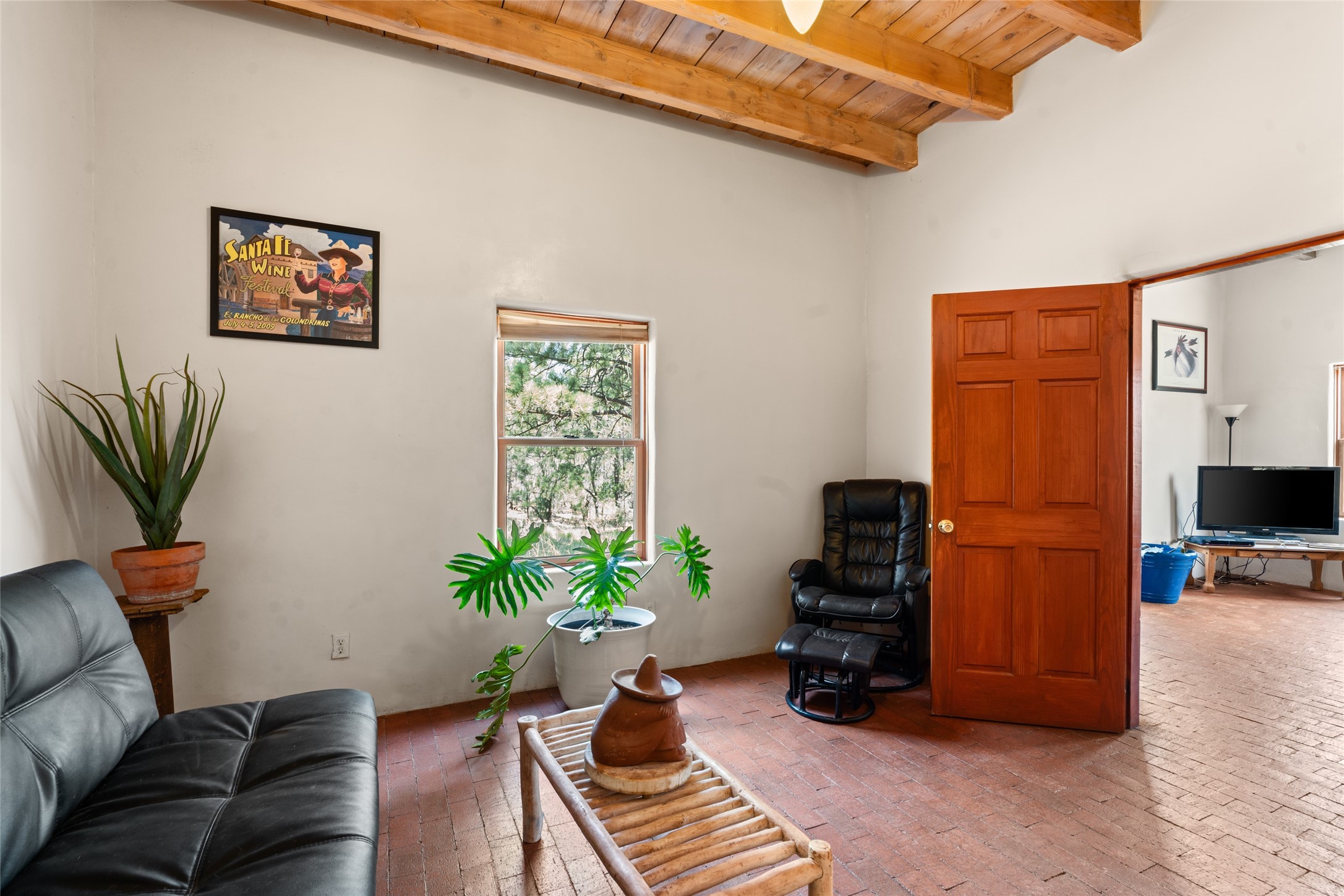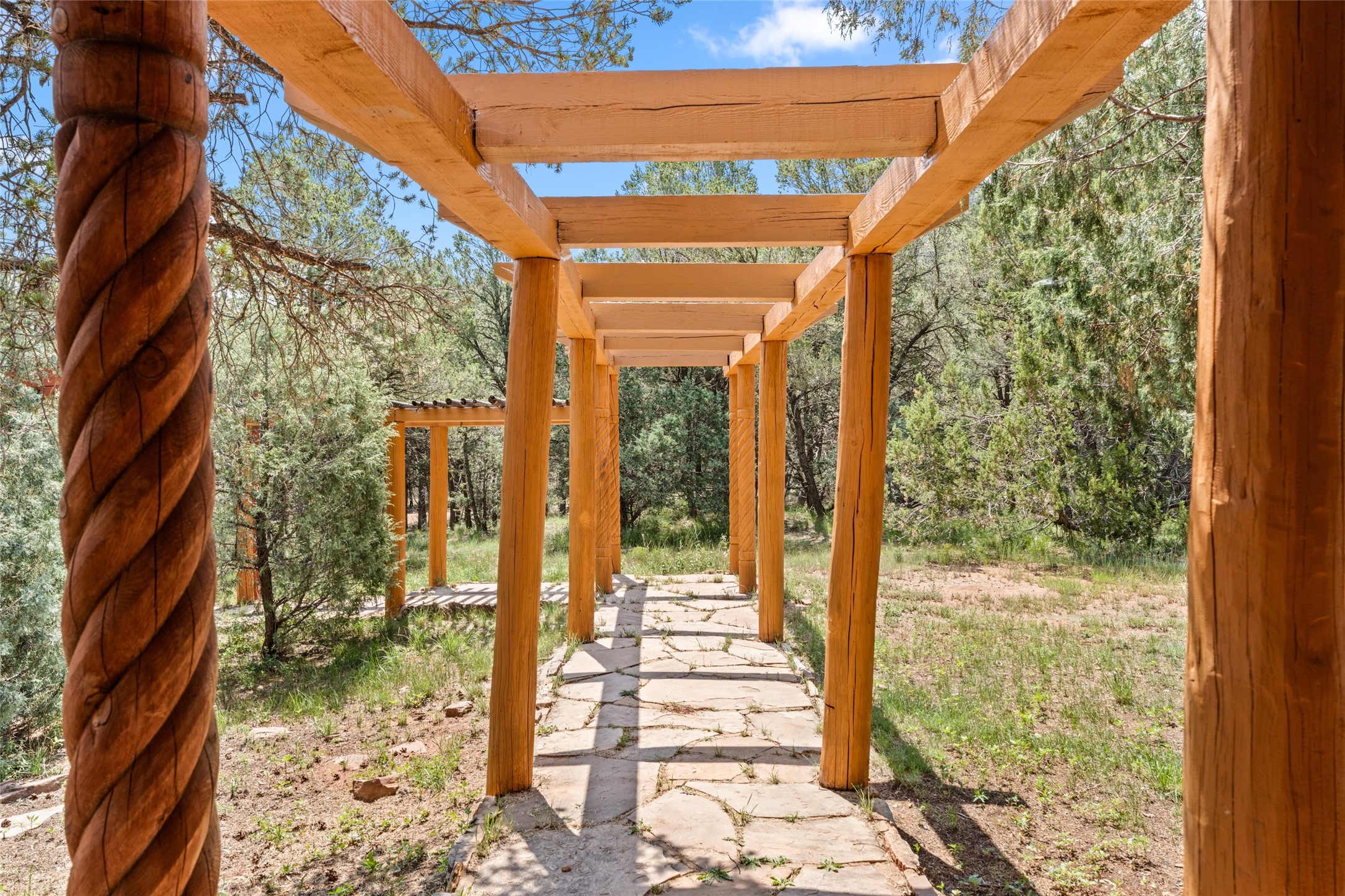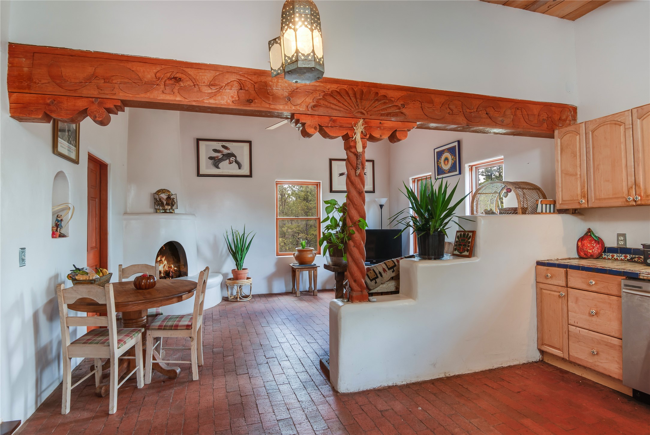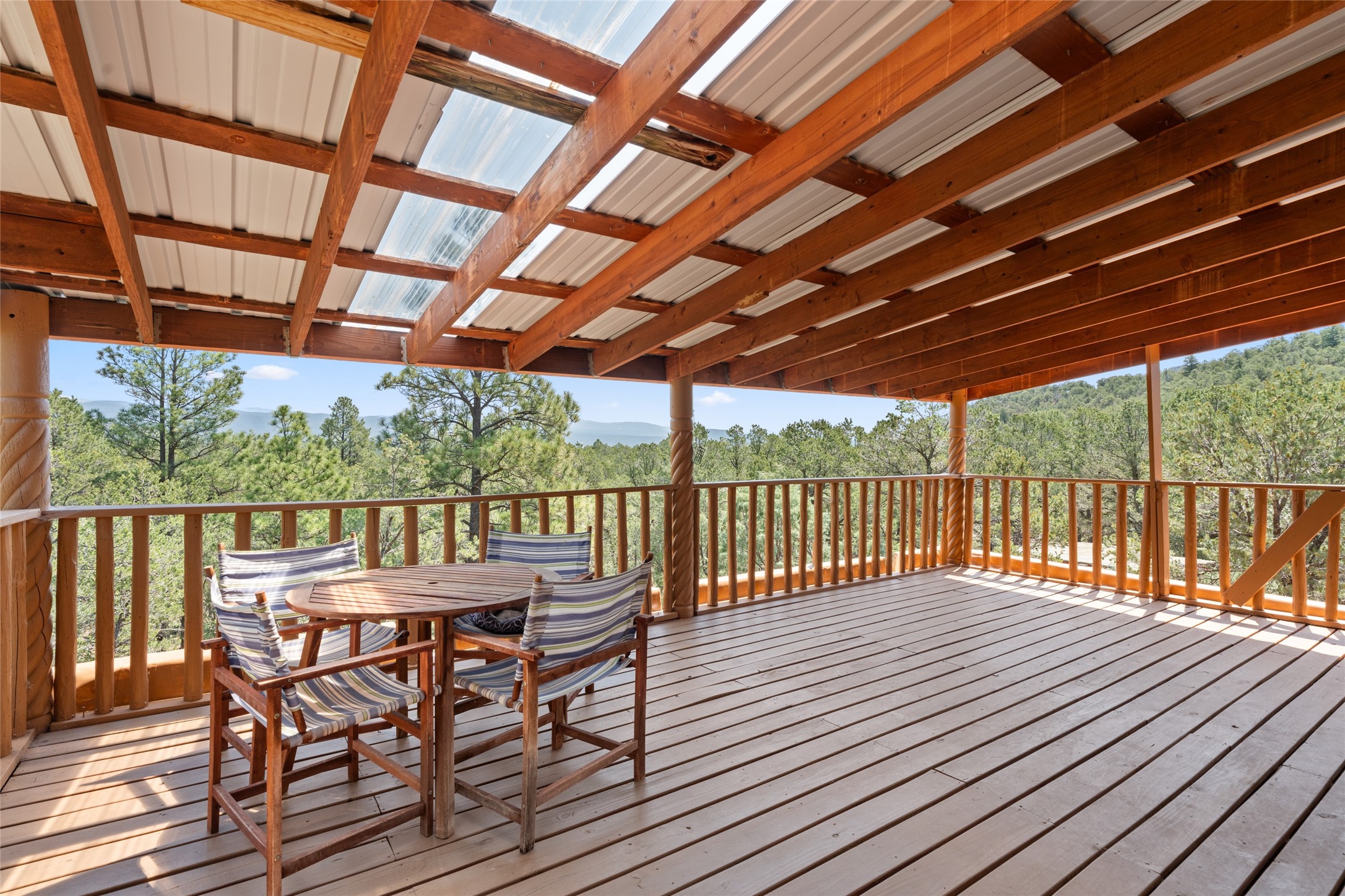 Combining the best of nature and comfort while providing ample space and privacy. This remarkable 2 bedroom and 2 bathroom home on 14.374 beautiful acres of serene wooded land can be your personal oasis away from the city. At the same time, it is a short drive to Santa Fe and the endearing small town of Pecos which is proximal to the gorgeous Pecos River with trout fishing. With no HOA or CCR's, this expansive land offers endless possibilities! Traditional features of this home include: wood beamed ceilings, a cozy wood-burning kiva fireplace, a private well, beautiful brick floors throughout, radiant heating, attached 2 car garage, an updated roof (roof was redone and has a transferrable 10 year warranty), a storage shed, and is gated for added privacy. Additionally, this gem of a home includes a residential kitchen with stainless steel appliances and a separate spacious commercial kitchen ideal for culinary enthusiasts! On the first level you have a lovely bedroom, bathroom, office and two kitchens (one residential and one commercial). On the second level, the largest bedroom/bathroom was thoughtfully placed to enjoy the breath taking New Mexico sunrise. Moreover, the upstairs deck provides stunning views of the surrounding mountains, perfect for entertaining or relaxing under the stars. Come see this wonderful property today!