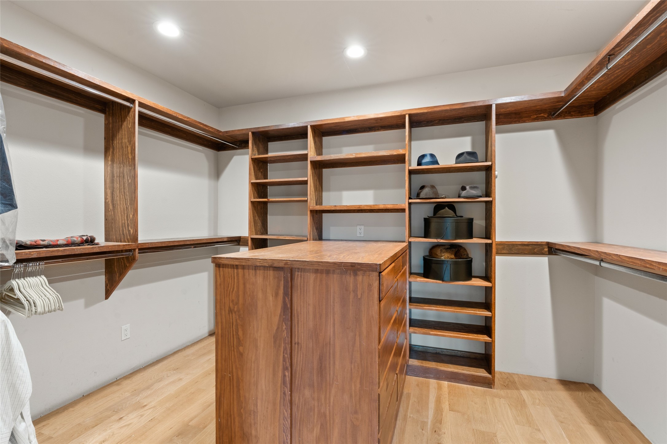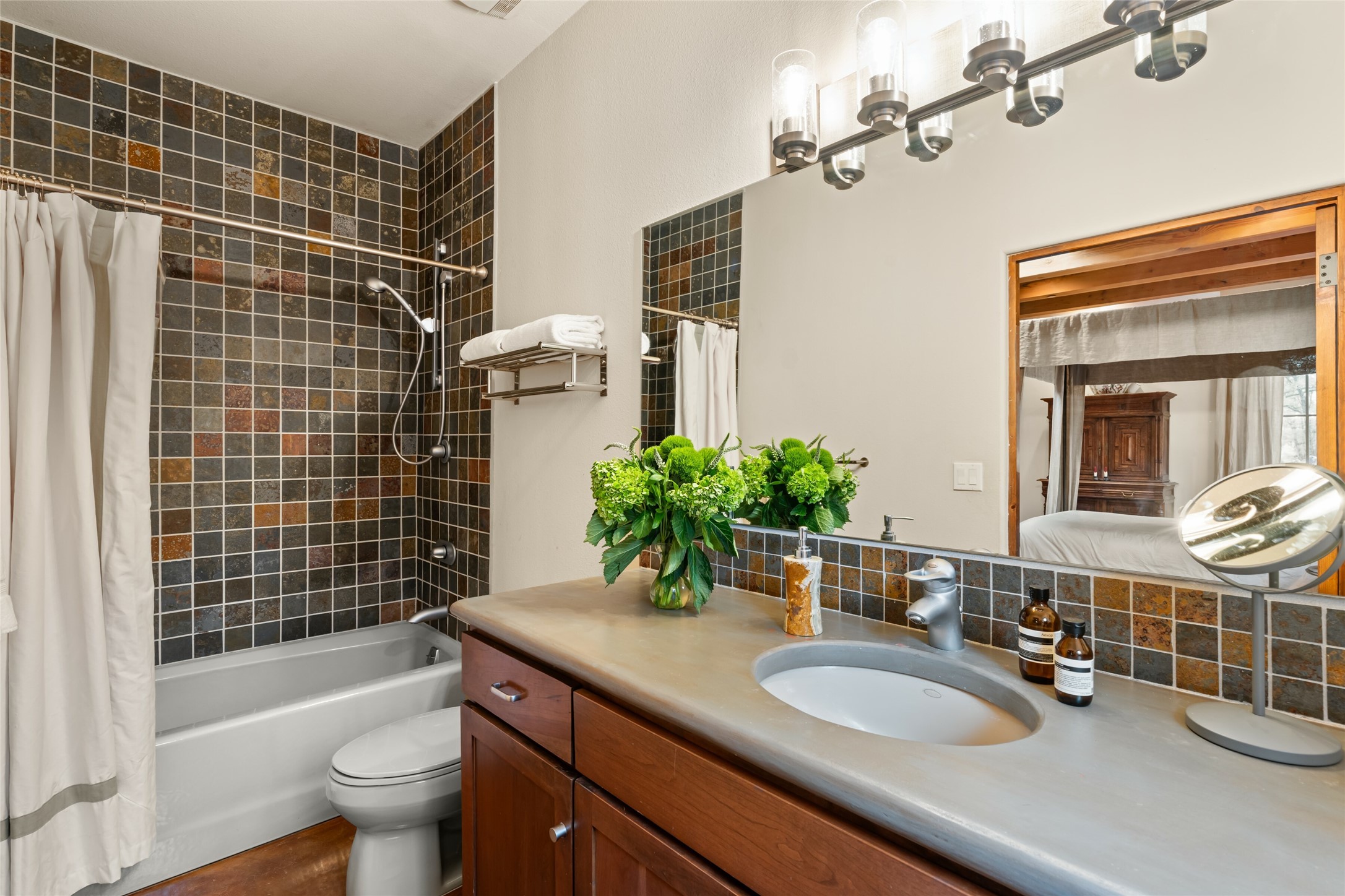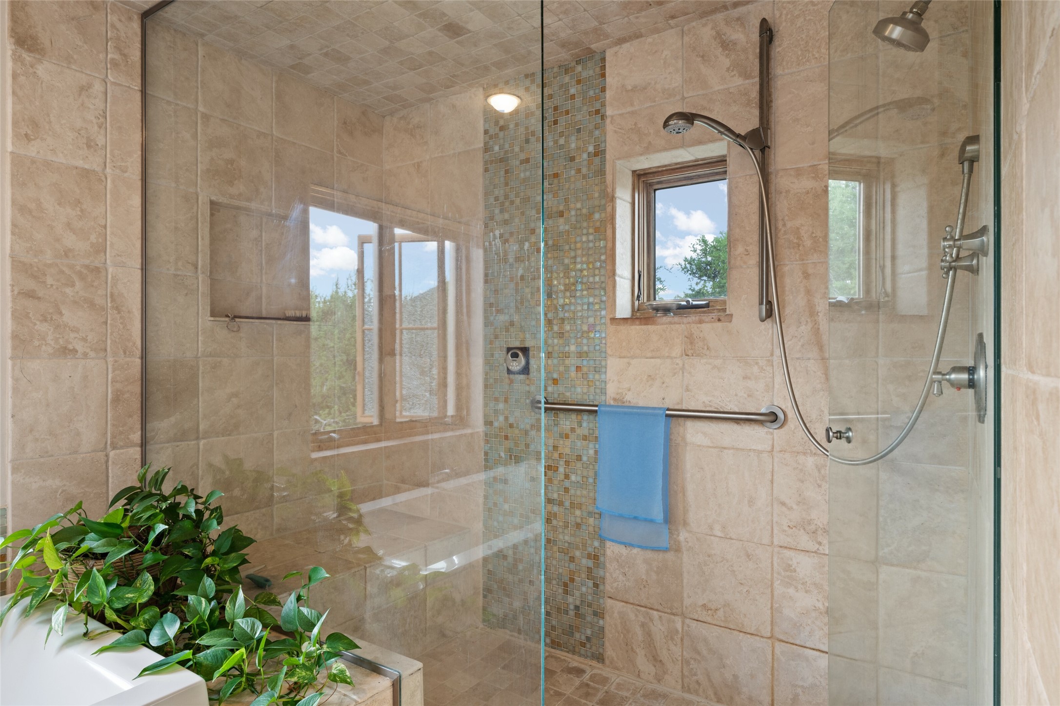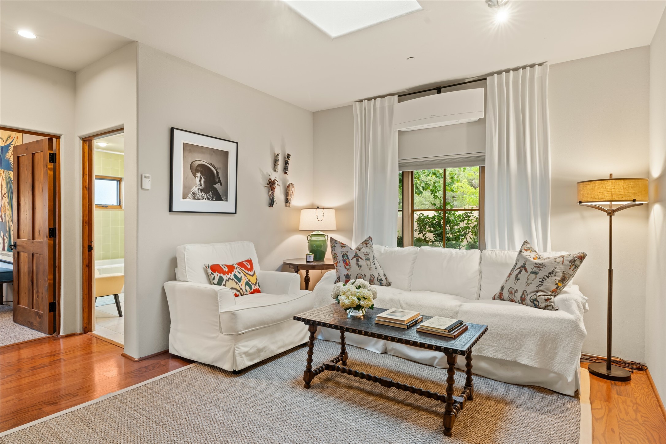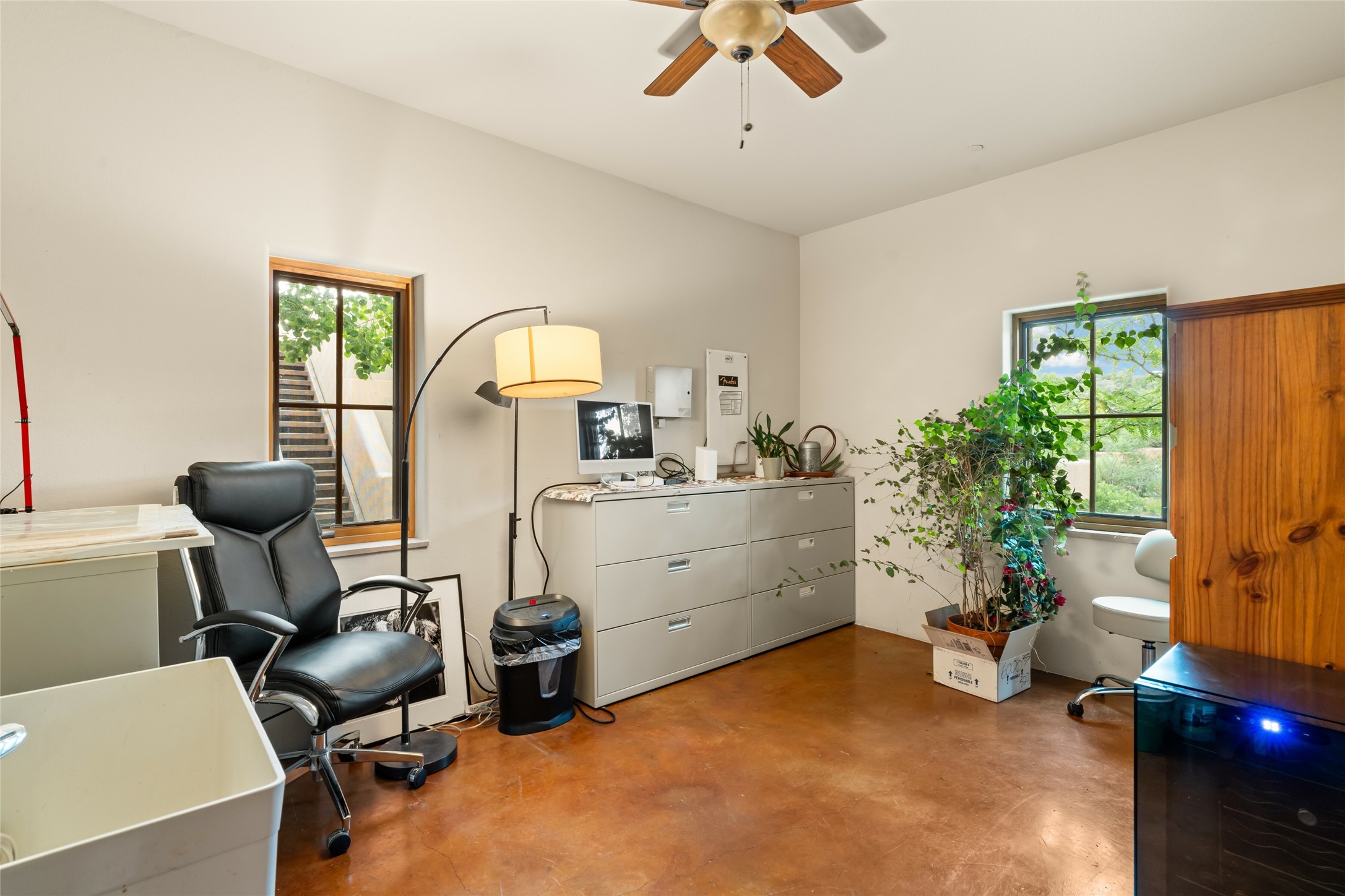 This gorgeous 4-bedroom home in the coveted St. Johns' neighborhood offers views, spacious living, and direct access to trails. The modern pueblo architecture blends harmoniously with the surrounding landscape. Single level living at its best, the home has in-floor radiant heat, AC, a large family room off the kitchen and luxurious outdoor livings spaces including a Kiva fireplace patio and a rooftop Sunset Deck. With direct access to a private patio, the generous primary suite also has a large walk-in closet, Jacuzzi tub and a steam shower. Ideal for a family, the guest wing has a shared sitting / play room and 2 guest bedrooms with ample closet space. There is an additional guest suite near the kitchen with an on-suite bath as well a large closet with a built-in safe. Work from home? The flex room is just the ticket for a home office, work-out room or artist's studio and even has a utility sink! If 4700 SF isn't enough, the 1.5 acre lot allows for room to grow or add a casita. This fabulous property has it all: style, ease of living, room for the whole family or artist and is set in one of the most desirable locations in town.