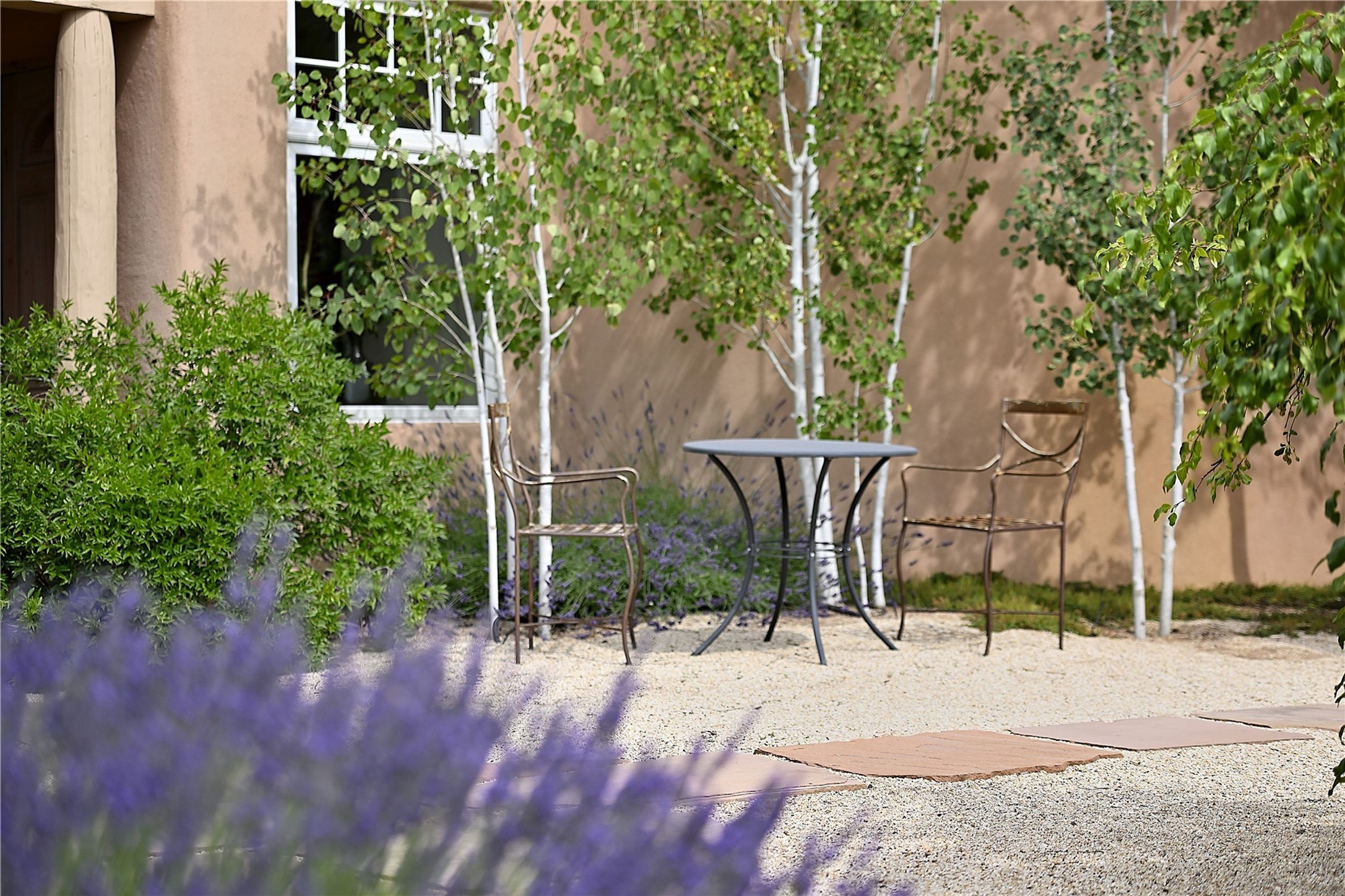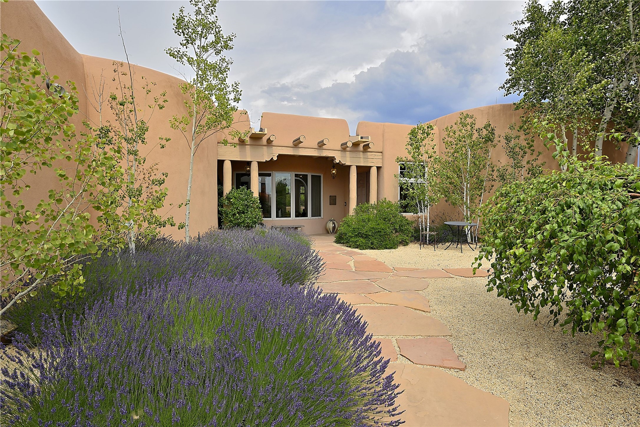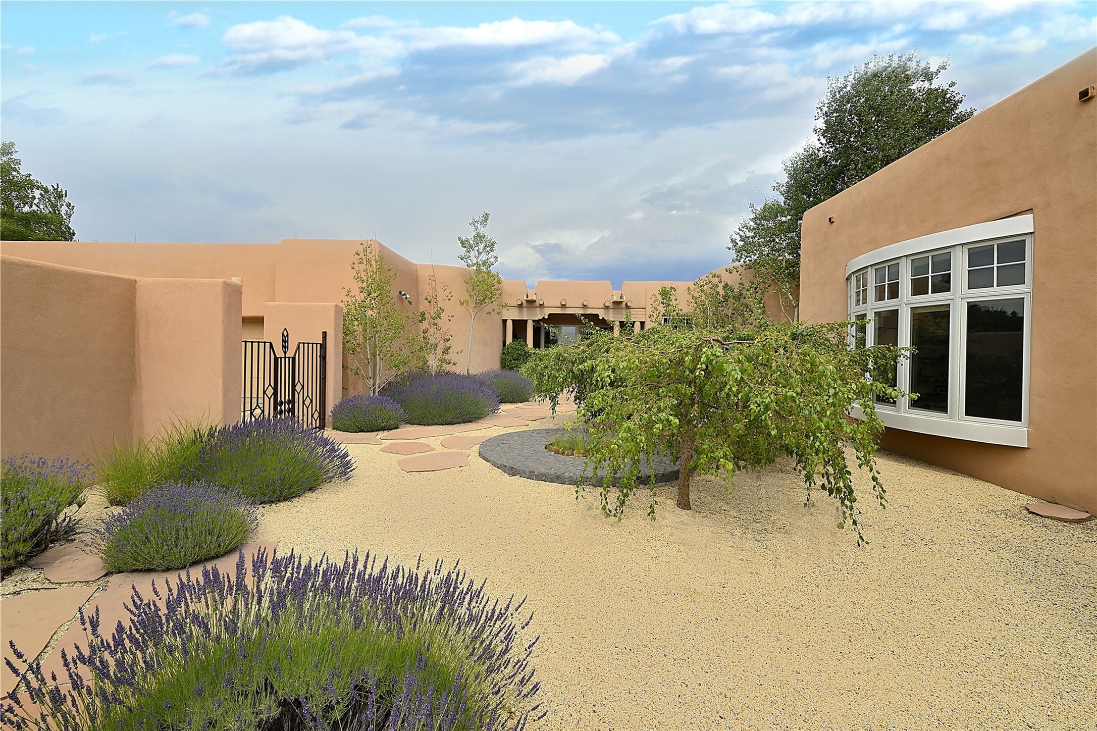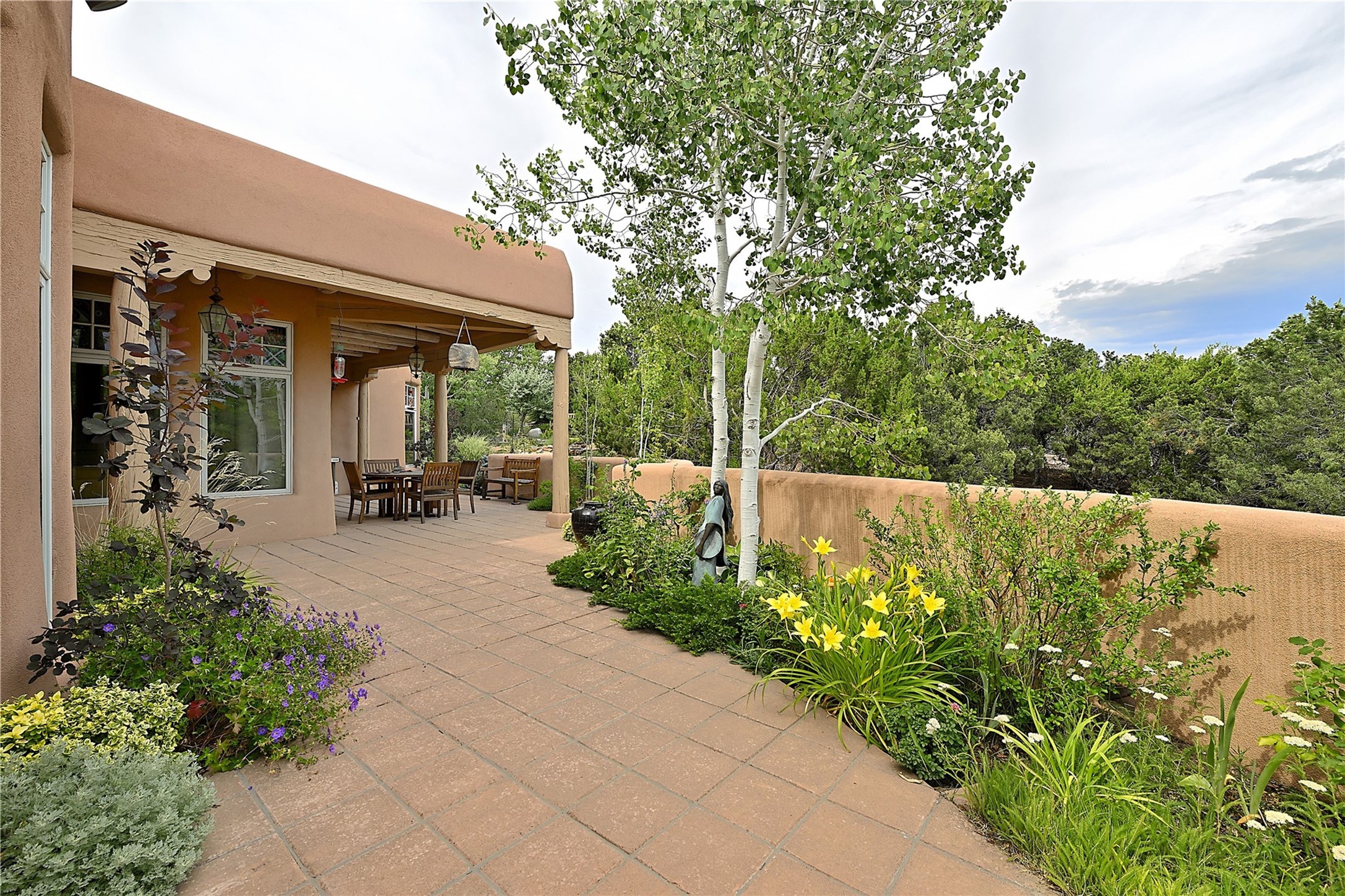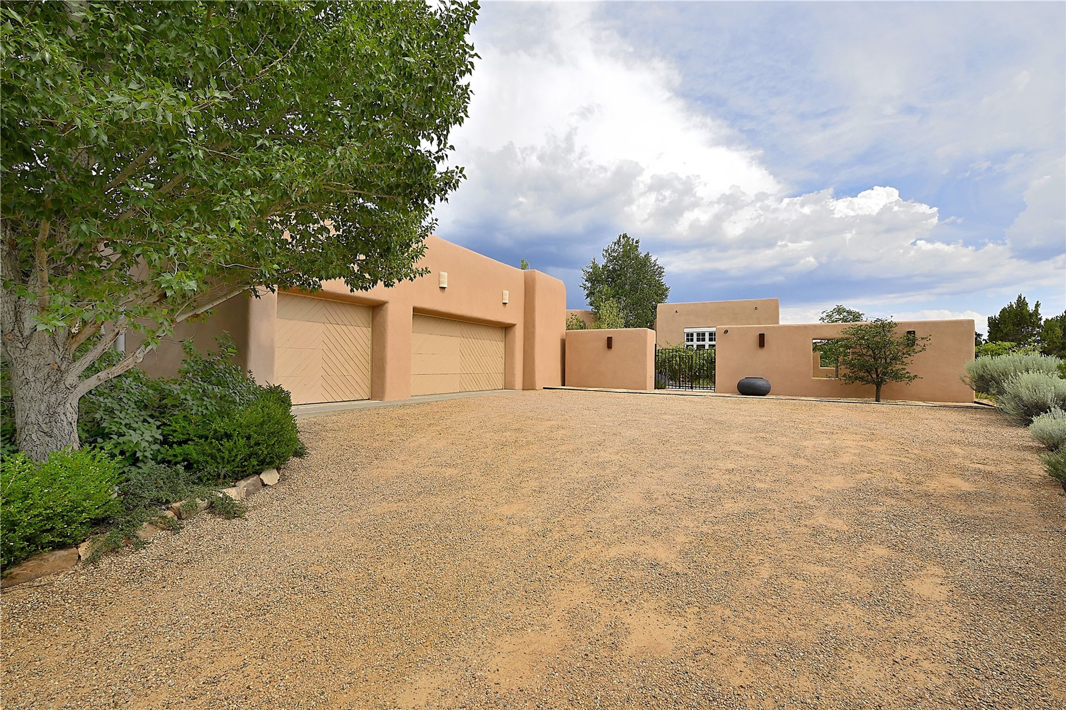 An exceptional single-level residence located on a peaceful 4.26 acres within the city limits. Nestled within the trees, this generous 4,431 sq ft, the main house has a spacious, open feel, with high ceilings and clerestory windows letting in an abundance of light. The living space has an elegant wood-burning fireplace and adjoins an expansive eat-in kitchen, featuring a professional gas stove and double door Sub-Zero refrigerator/ freezer. Both spaces open to the wraparoundpatio and covered outdoor dining area, perfect for entertaining or enjoying a quiet evening. The main home has warm sandstone tile floors, refrigerated air conditioning, forced air heating and four wood burning fireplaces. The 3-car garage also has three additional storage areas. Across from the main is an additional 1,033 sq ft- guest house/studio, separated by a lovely architectural and manicured entry courtyard. This guesthouse is one-bedroom suite with in-floor radiantheat, a full bath, and a fully equipped kitchen and gorgeous sunset views- an ideal space for guests or an art studio/ private retreat. This exquisite property at 396 Circle Drive offers a rare combination of privacy and convenience. The property is now priced to allow the new owner the opportunity for upgrades. A true gem on one of the most sought-after streets in Santa Fe.