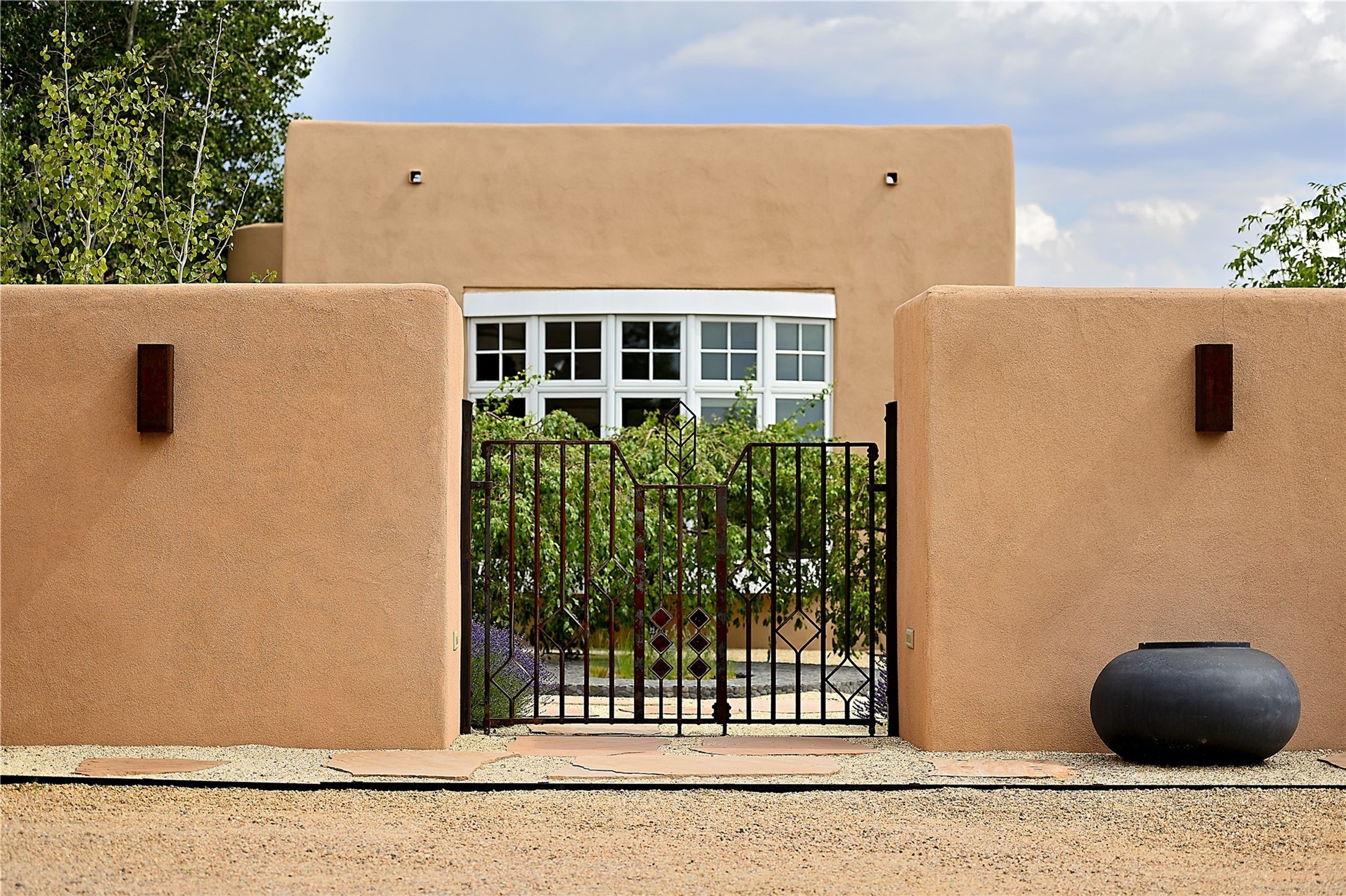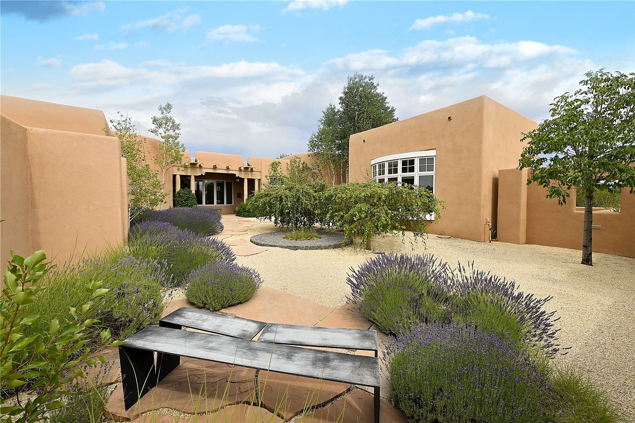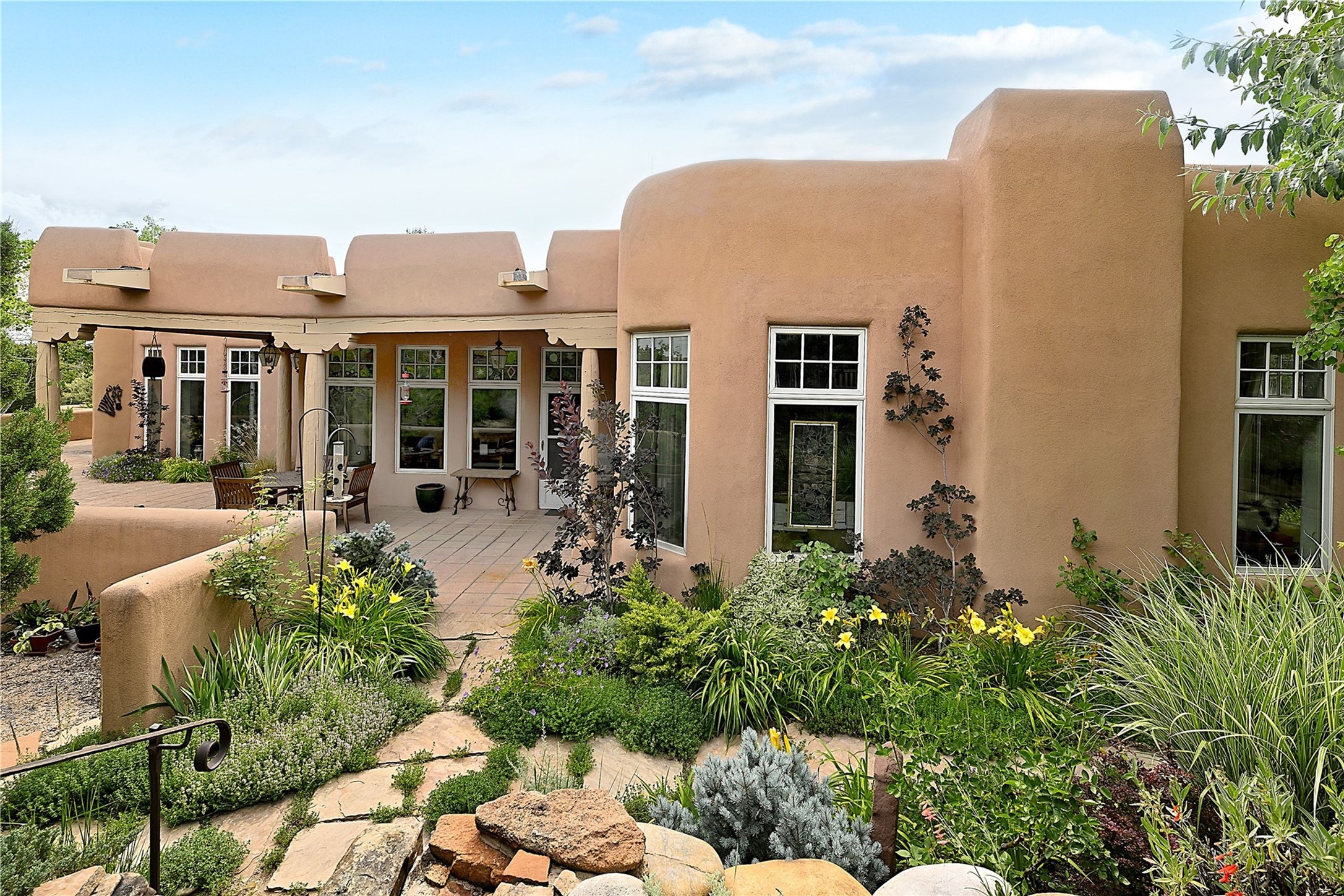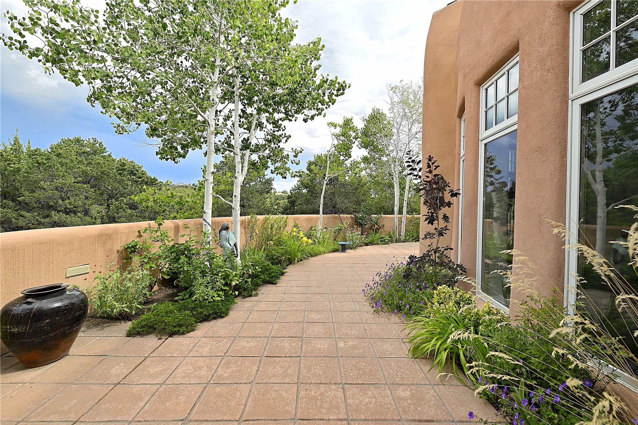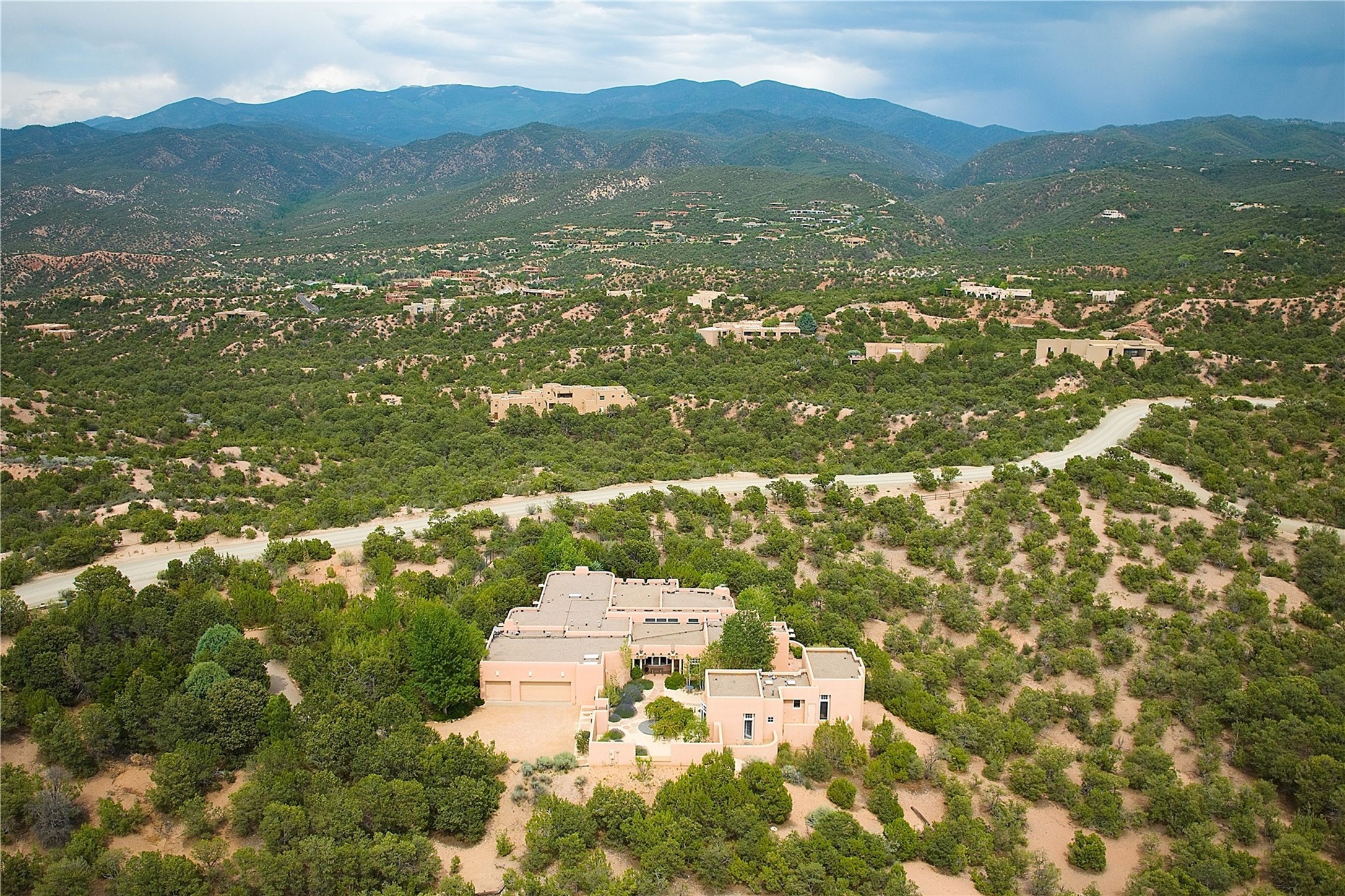 An exceptional single-level residence located on a peaceful 4.26 acres within the city limits. Nestled within the trees, this generous 4,431 sq ft, the main house has a spacious, open feel, with high ceilings and clerestory windows letting in an abundance of light. The living space has an elegant wood-burning fireplace and adjoins an expansive eat-in kitchen, featuring a professional gas stove and double door Sub-Zero refrigerator/ freezer. Both spaces open to the wraparoundpatio and covered outdoor dining area, perfect for entertaining or enjoying a quiet evening. The main home has warm sandstone tile floors, refrigerated air conditioning, forced air heating and four wood burning fireplaces. The 3-car garage also has three additional storage areas. Across from the main is an additional 1,033 sq ft- guest house/studio, separated by a lovely architectural and manicured entry courtyard. This guesthouse is one-bedroom suite with in-floor radiantheat, a full bath, and a fully equipped kitchen and gorgeous sunset views- an ideal space for guests or an art studio/ private retreat. This exquisite property at 396 Circle Drive offers a rare combination of privacy and convenience. The property is now priced to allow the new owner the opportunity for upgrades. A true gem on one of the most sought-after streets in Santa Fe.