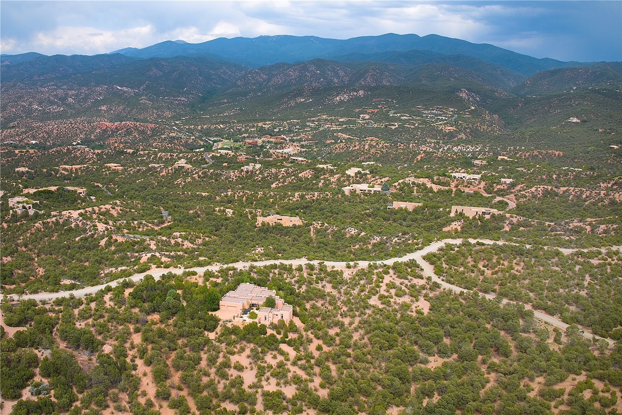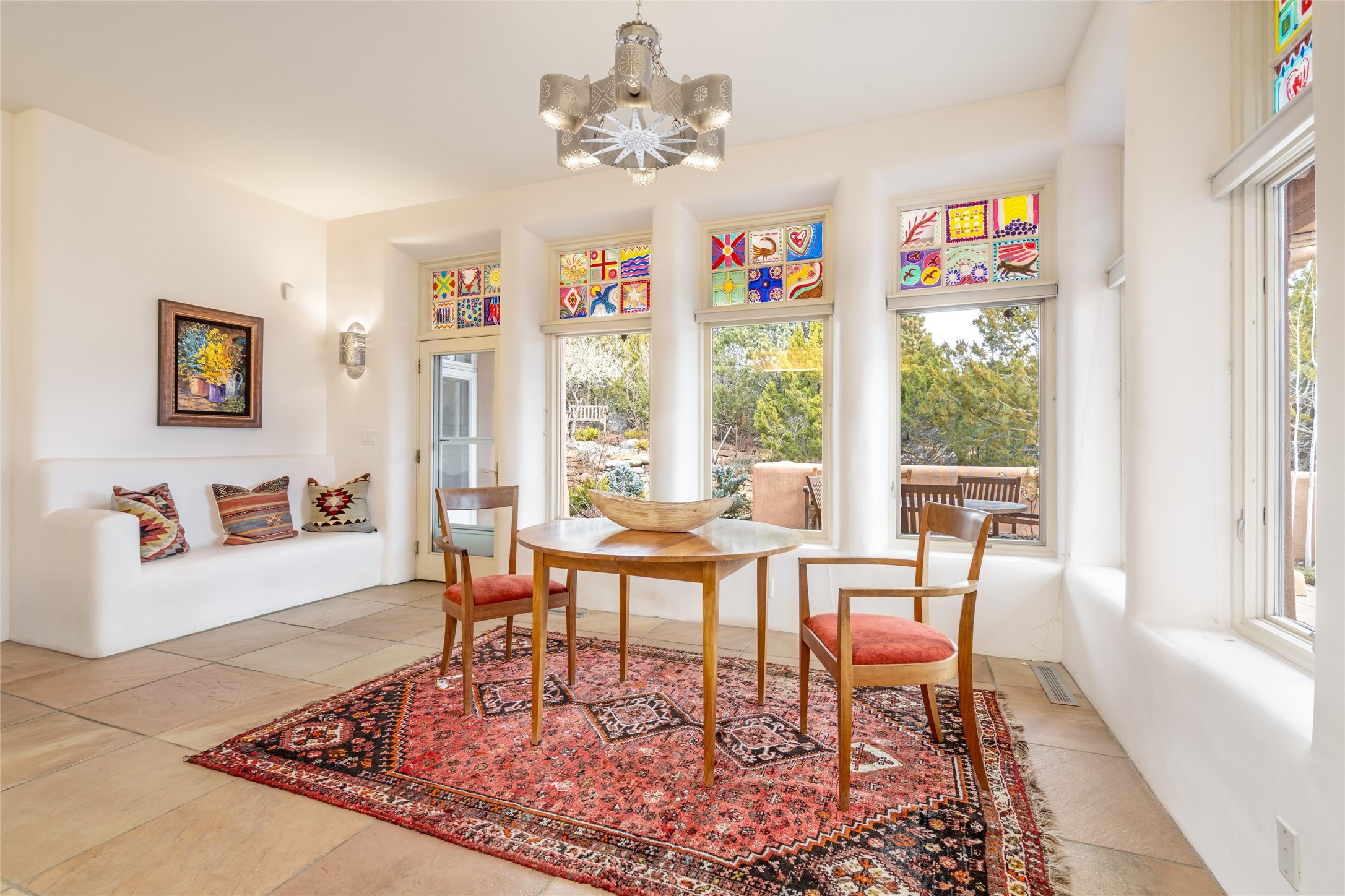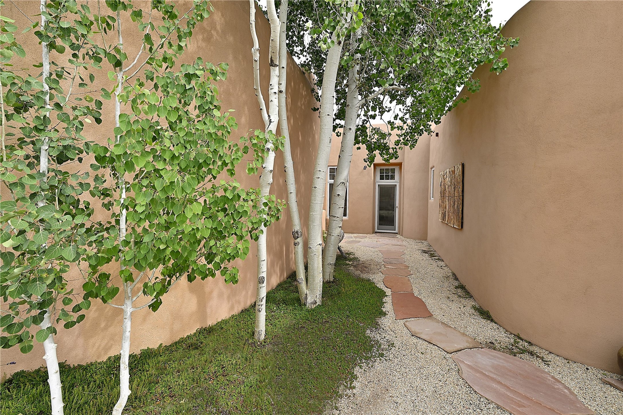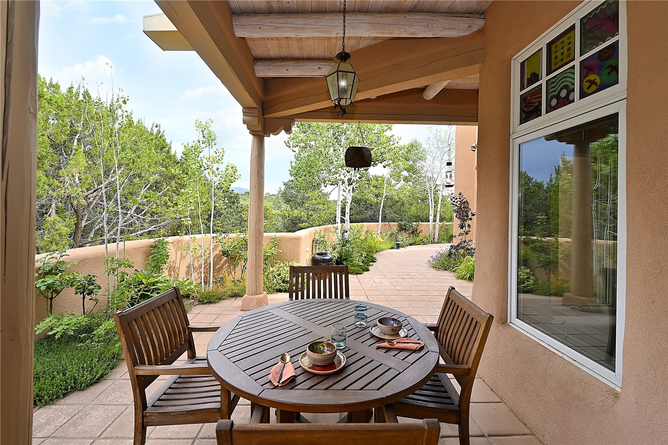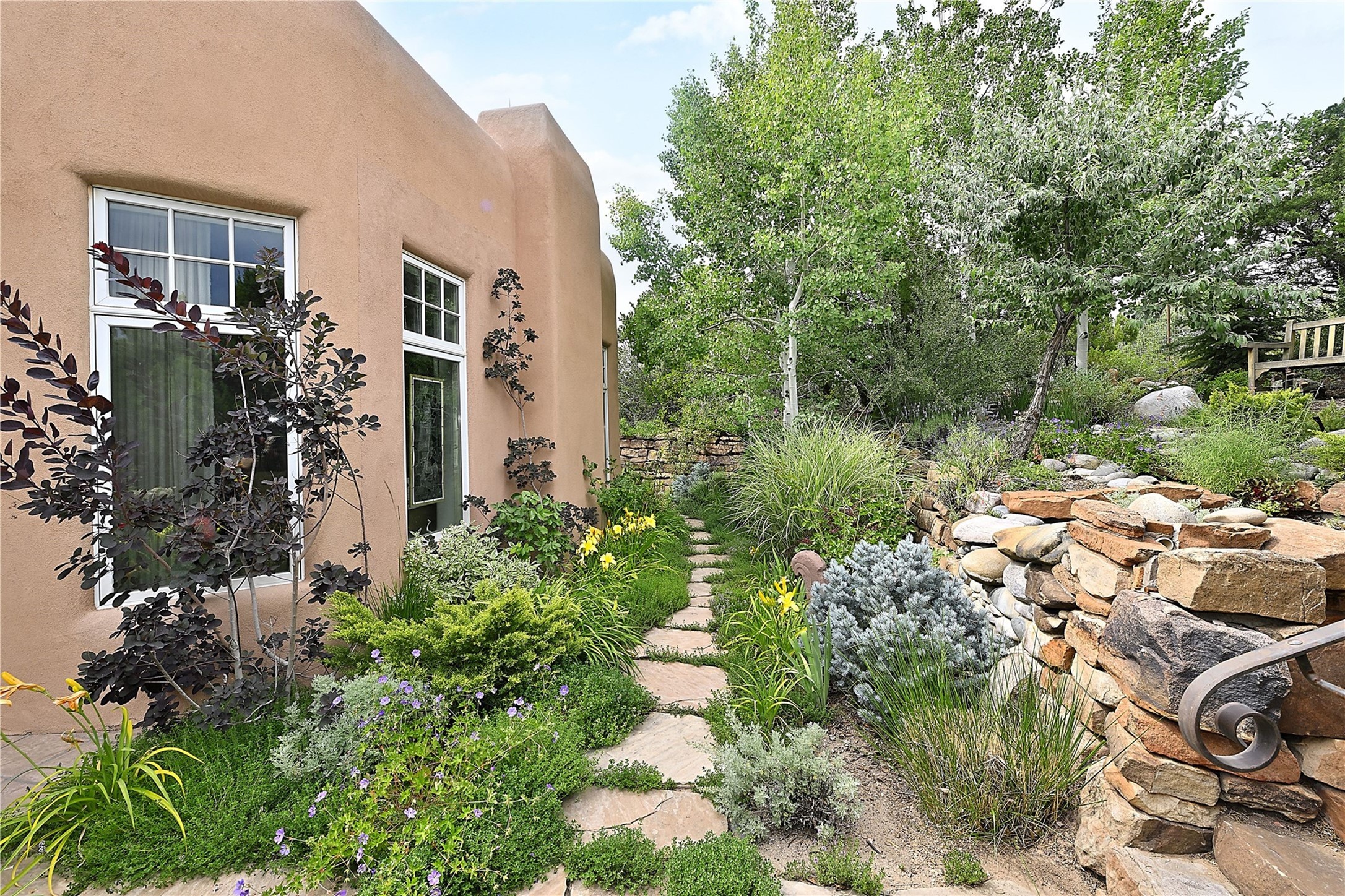 An exceptional single-level residence located on a peaceful 4.26 acres within the city limits. Nestled within the trees, this generous 4,431 sq ft, the main house has a spacious, open feel, with high ceilings and clerestory windows letting in an abundance of light. The living space has an elegant wood-burning fireplace and adjoins an expansive eat-in kitchen, featuring a professional gas stove and double door Sub-Zero refrigerator/ freezer. Both spaces open to the wraparoundpatio and covered outdoor dining area, perfect for entertaining or enjoying a quiet evening. The main home has warm sandstone tile floors, refrigerated air conditioning, forced air heating and four wood burning fireplaces. The 3-car garage also has three additional storage areas. Across from the main is an additional 1,033 sq ft- guest house/studio, separated by a lovely architectural and manicured entry courtyard. This guesthouse is one-bedroom suite with in-floor radiantheat, a full bath, and a fully equipped kitchen and gorgeous sunset views- an ideal space for guests or an art studio/ private retreat. This exquisite property at 396 Circle Drive offers a rare combination of privacy and convenience. The property is now priced to allow the new owner the opportunity for upgrades. A true gem on one of the most sought-after streets in Santa Fe.