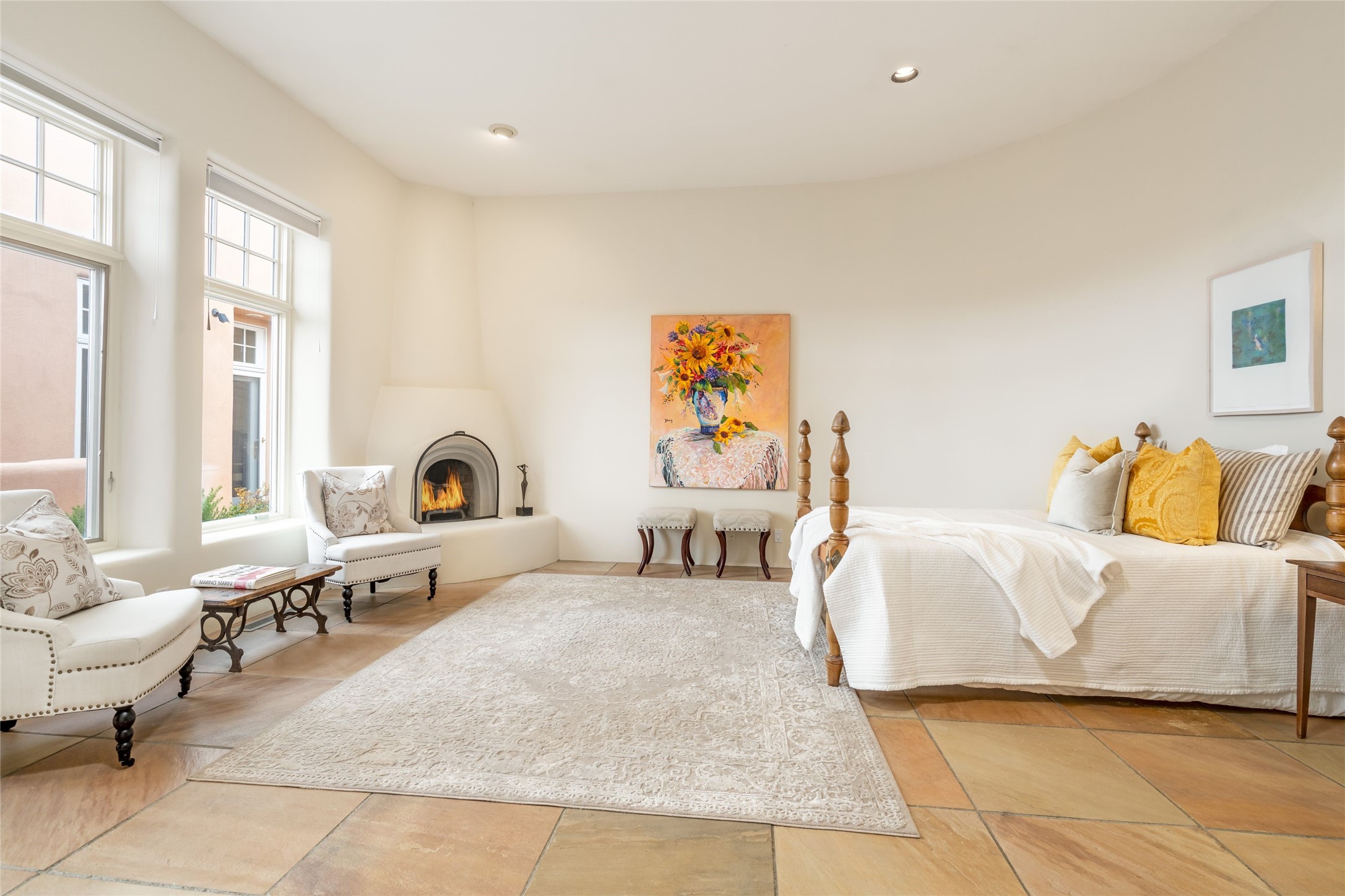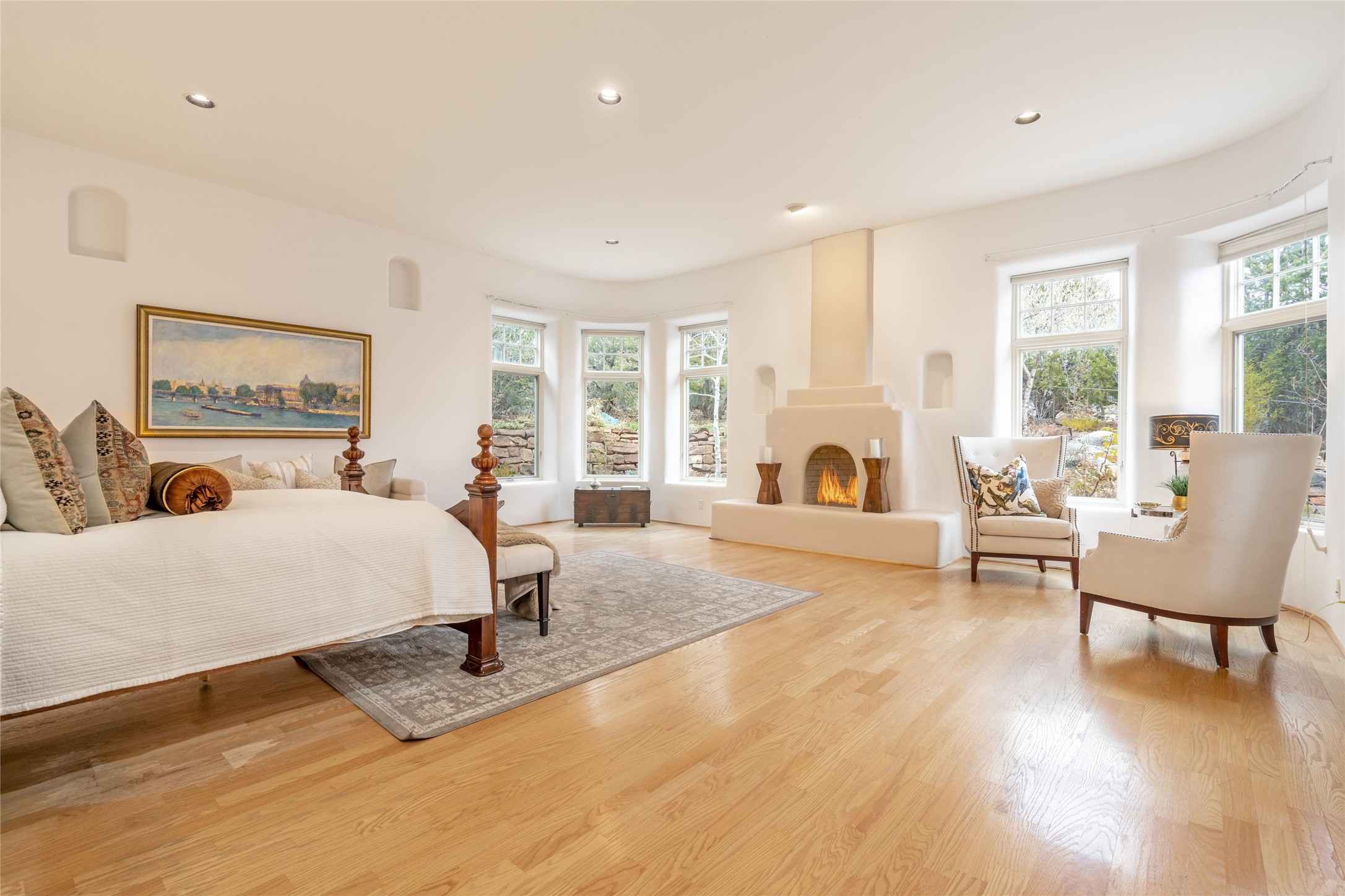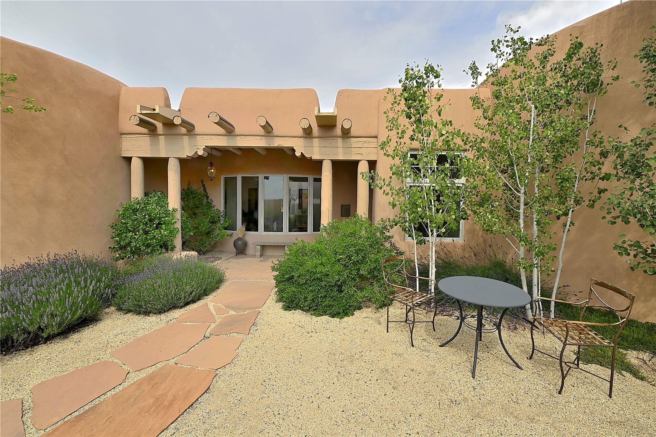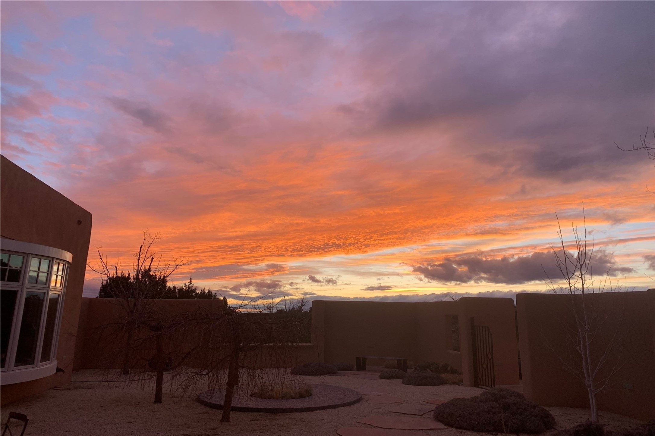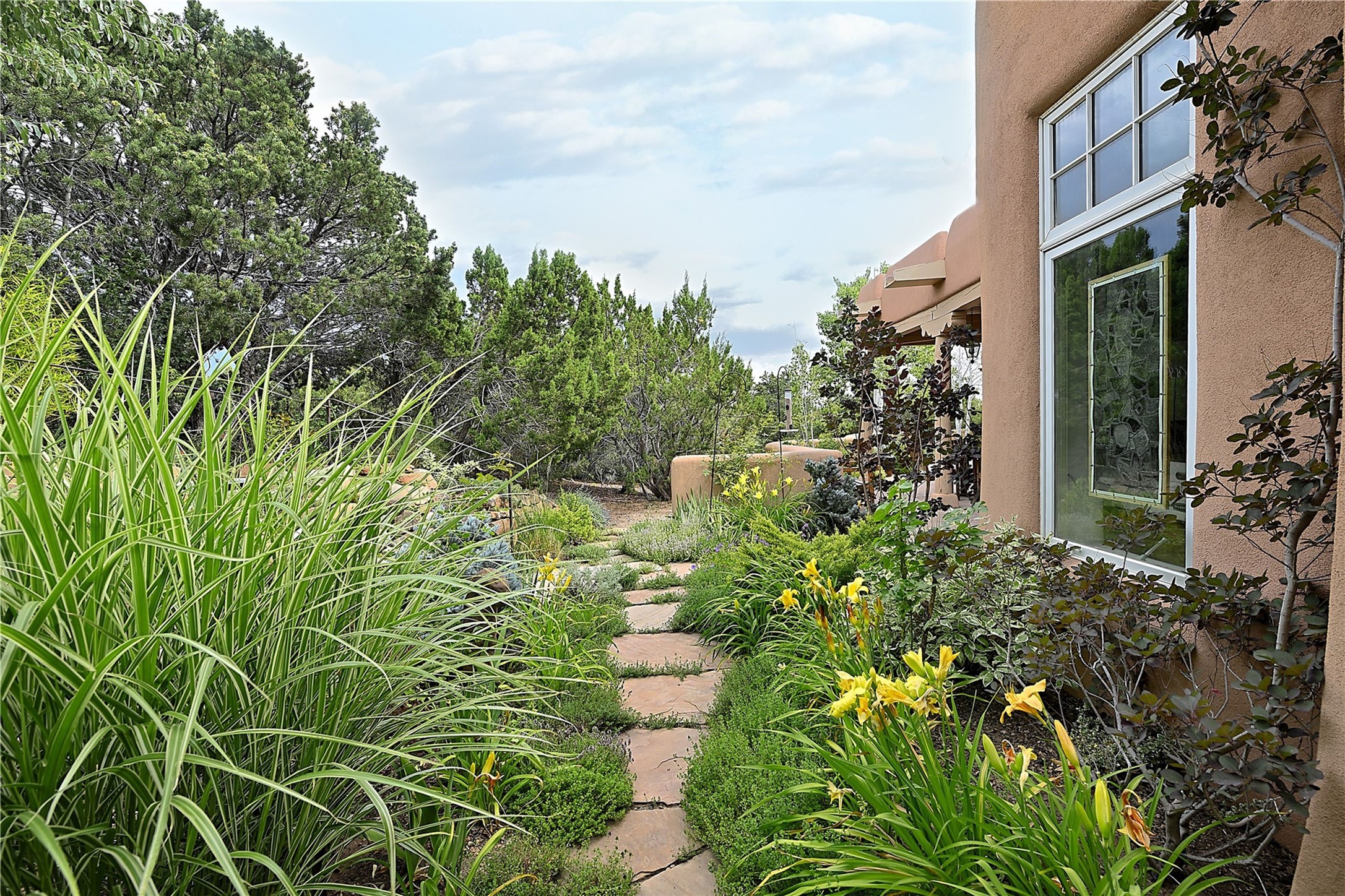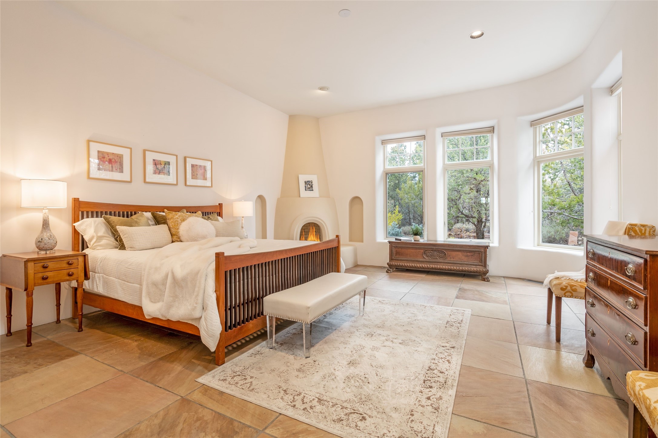 An exceptional single-level residence located on a peaceful 4.26 acres within the city limits. Nestled within the trees, this generous 4,431 sq ft, the main house has a spacious, open feel, with high ceilings and clerestory windows letting in an abundance of light. The living space has an elegant wood-burning fireplace and adjoins an expansive eat-in kitchen, featuring a professional gas stove and double door Sub-Zero refrigerator/ freezer. Both spaces open to the wraparoundpatio and covered outdoor dining area, perfect for entertaining or enjoying a quiet evening. The main home has warm sandstone tile floors, refrigerated air conditioning, forced air heating and four wood burning fireplaces. The 3-car garage also has three additional storage areas. Across from the main is an additional 1,033 sq ft- guest house/studio, separated by a lovely architectural and manicured entry courtyard. This guesthouse is one-bedroom suite with in-floor radiantheat, a full bath, and a fully equipped kitchen and gorgeous sunset views- an ideal space for guests or an art studio/ private retreat. This exquisite property at 396 Circle Drive offers a rare combination of privacy and convenience. The property is now priced to allow the new owner the opportunity for upgrades. A true gem on one of the most sought-after streets in Santa Fe.