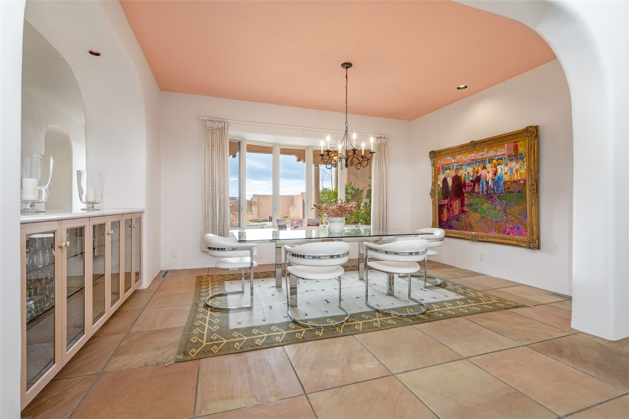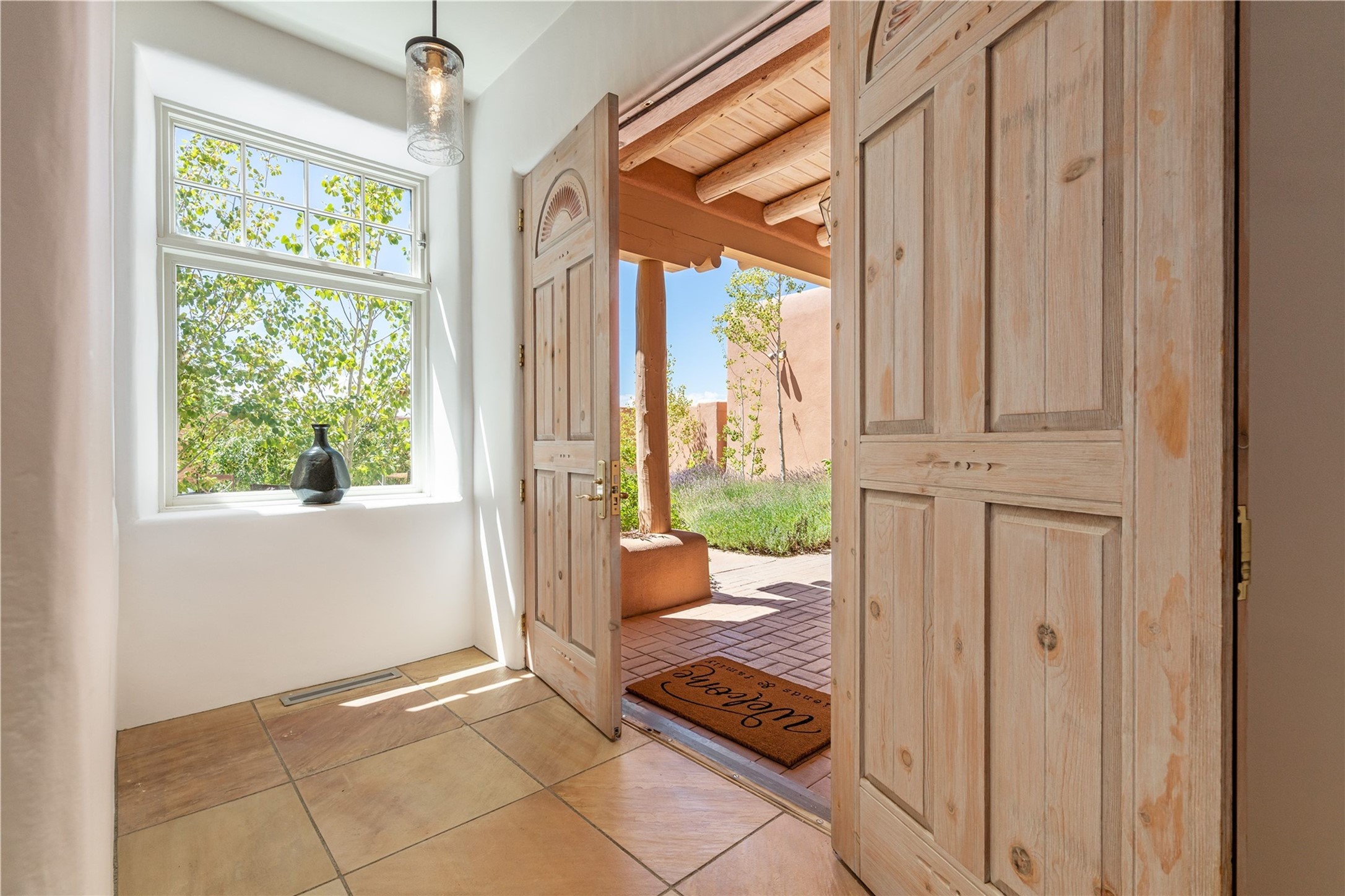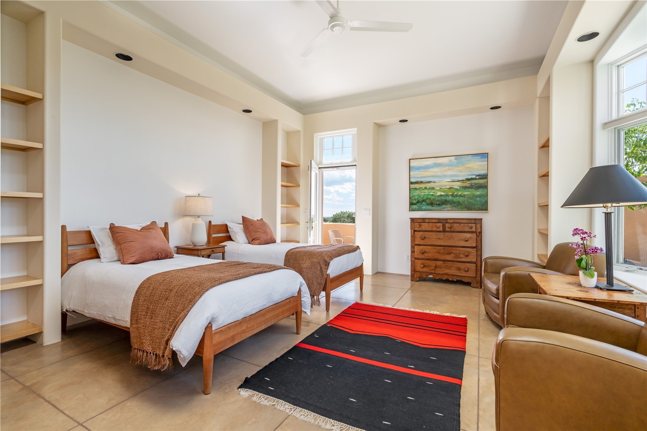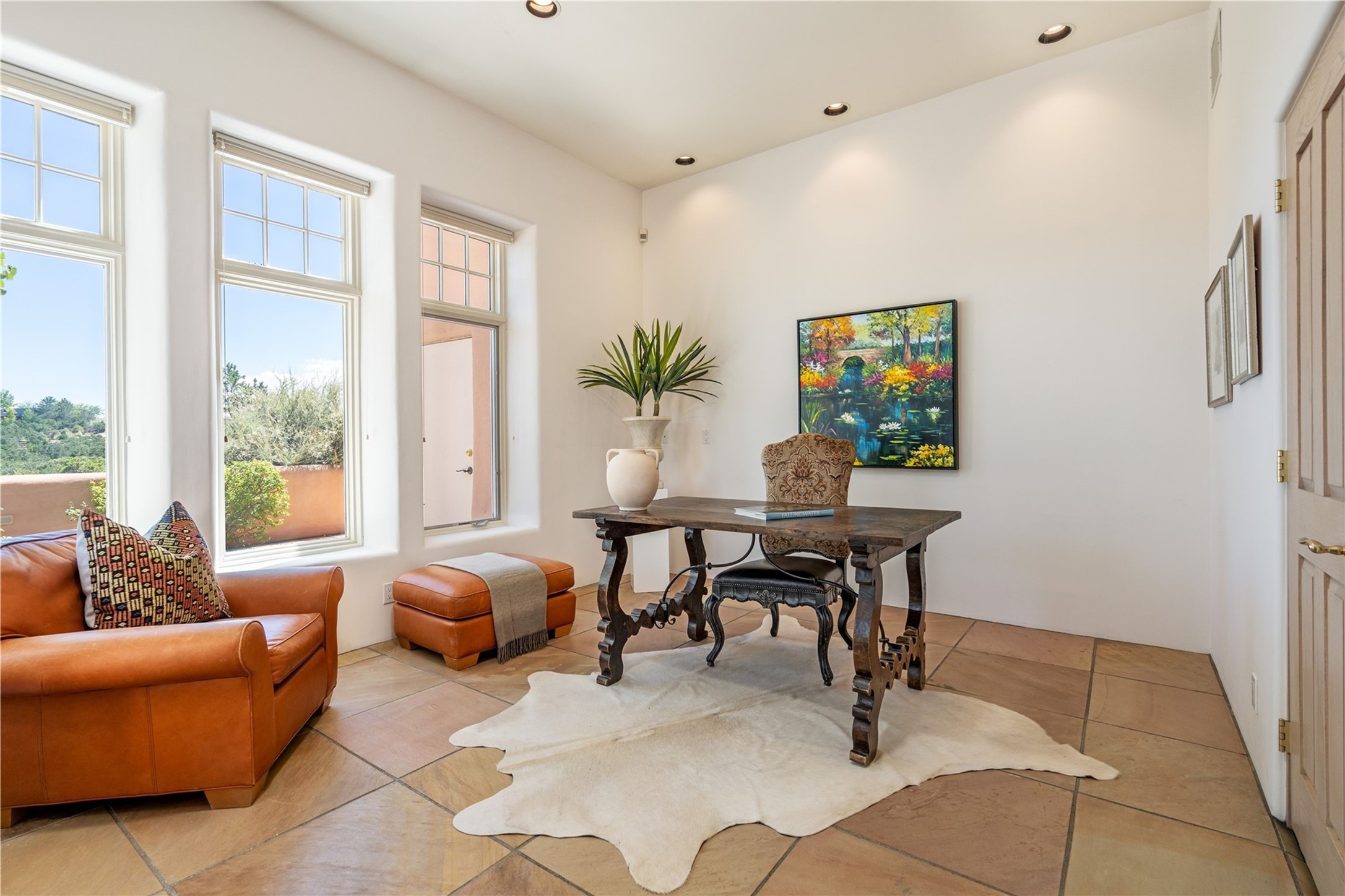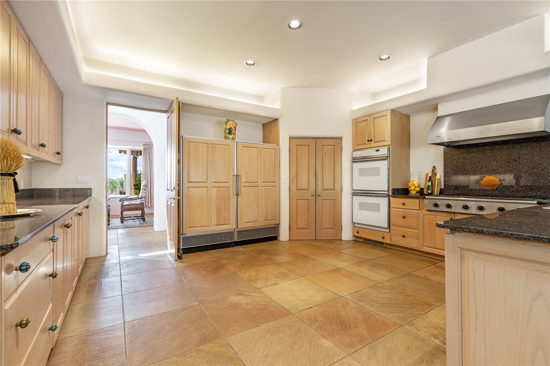 An exceptional single-level residence located on a peaceful 4.26 acres within the city limits. Nestled within the trees, this generous 4,431 sq ft, the main house has a spacious, open feel, with high ceilings and clerestory windows letting in an abundance of light. The living space has an elegant wood-burning fireplace and adjoins an expansive eat-in kitchen, featuring a professional gas stove and double door Sub-Zero refrigerator/ freezer. Both spaces open to the wraparoundpatio and covered outdoor dining area, perfect for entertaining or enjoying a quiet evening. The main home has warm sandstone tile floors, refrigerated air conditioning, forced air heating and four wood burning fireplaces. The 3-car garage also has three additional storage areas. Across from the main is an additional 1,033 sq ft- guest house/studio, separated by a lovely architectural and manicured entry courtyard. This guesthouse is one-bedroom suite with in-floor radiantheat, a full bath, and a fully equipped kitchen and gorgeous sunset views- an ideal space for guests or an art studio/ private retreat. This exquisite property at 396 Circle Drive offers a rare combination of privacy and convenience. The property is now priced to allow the new owner the opportunity for upgrades. A true gem on one of the most sought-after streets in Santa Fe.