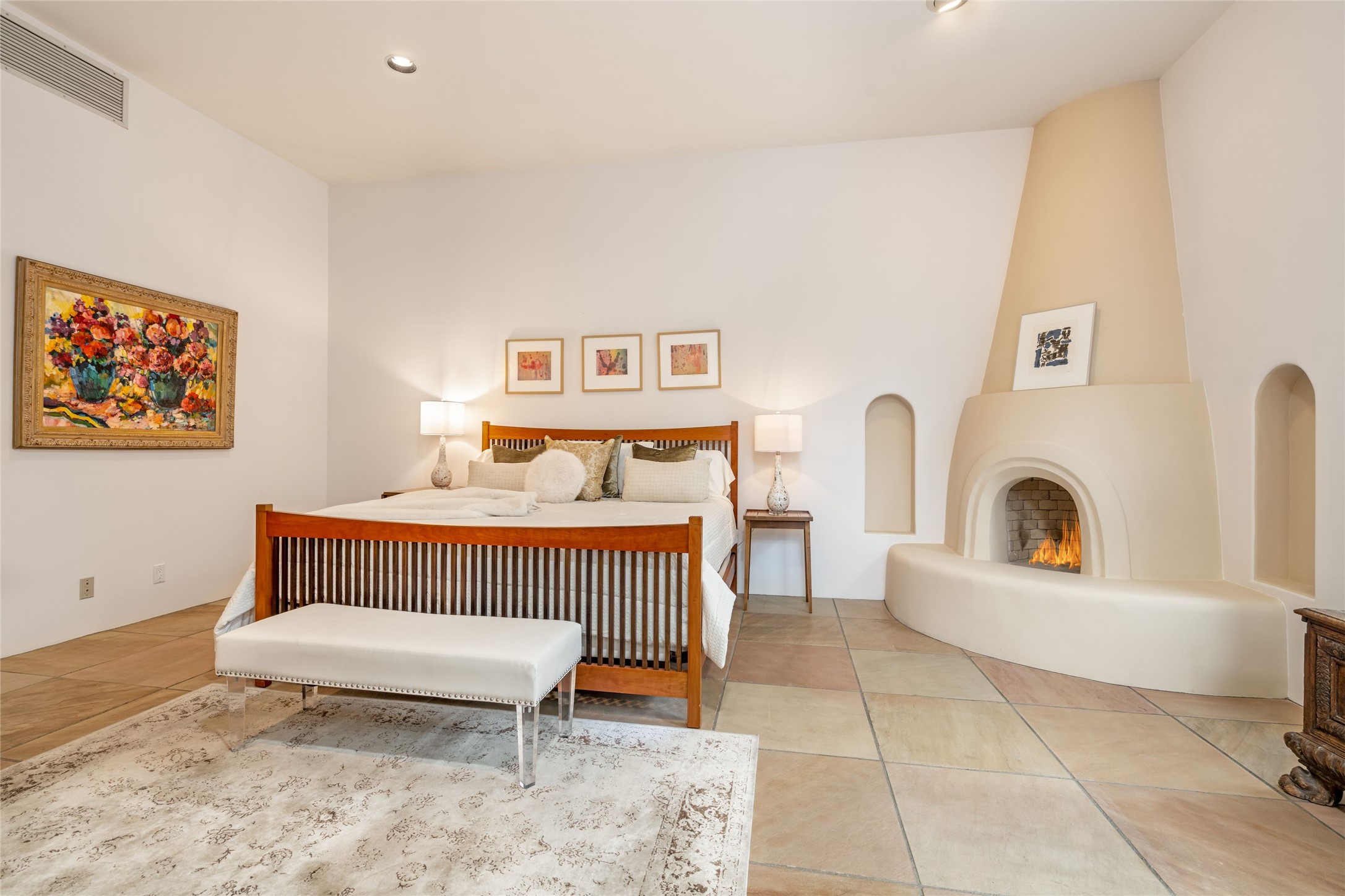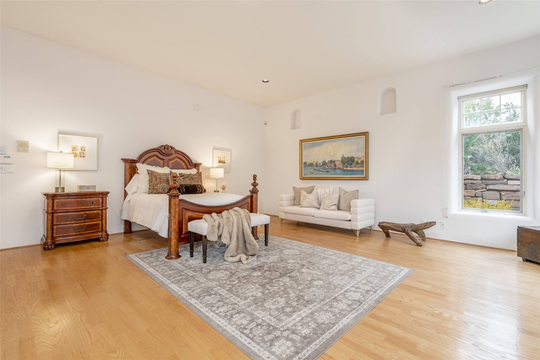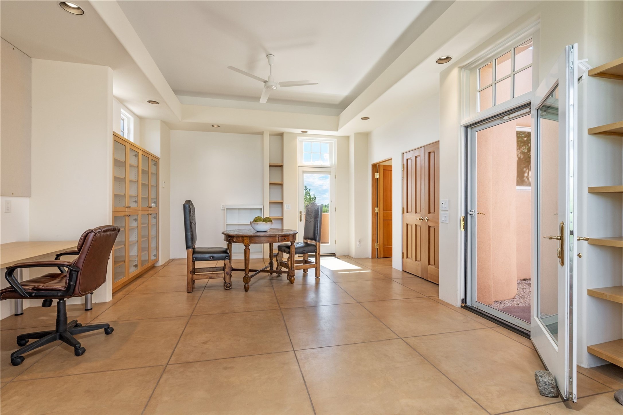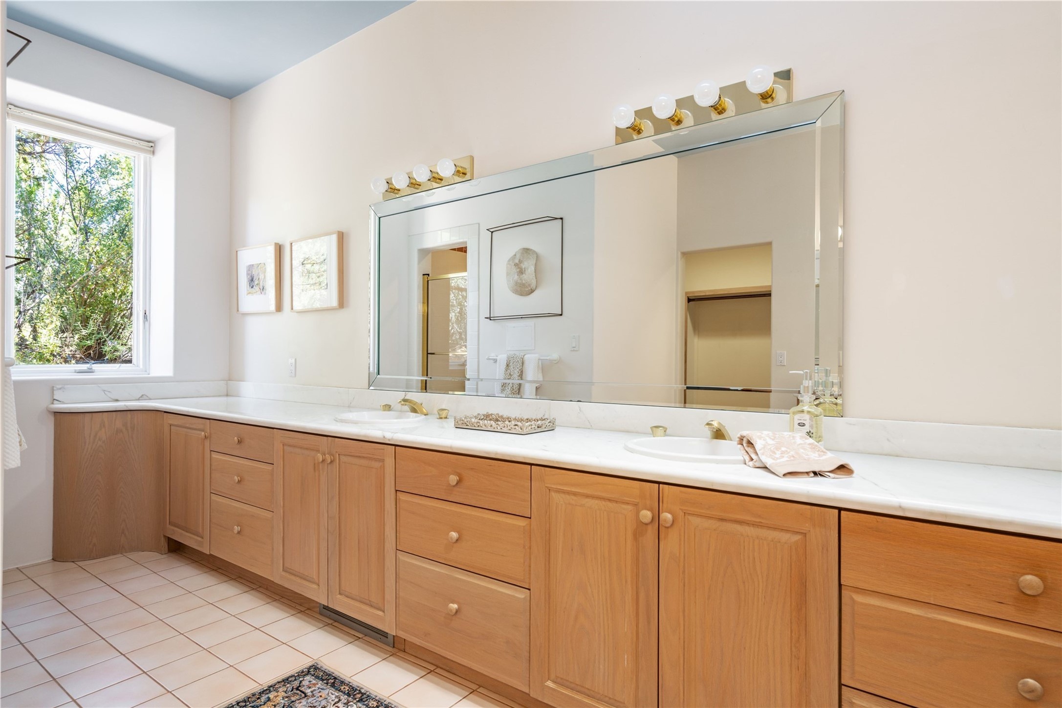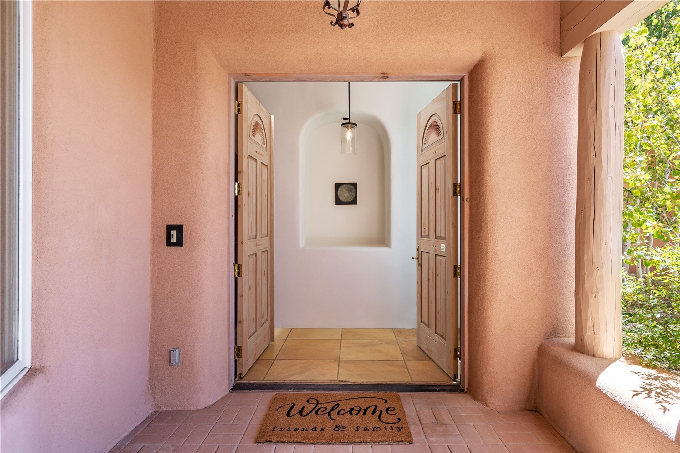 An exceptional single-level residence located on a peaceful 4.26 acres within the city limits. Nestled within the trees, this generous 4,431 sq ft, the main house has a spacious, open feel, with high ceilings and clerestory windows letting in an abundance of light. The living space has an elegant wood-burning fireplace and adjoins an expansive eat-in kitchen, featuring a professional gas stove and double door Sub-Zero refrigerator/ freezer. Both spaces open to the wraparoundpatio and covered outdoor dining area, perfect for entertaining or enjoying a quiet evening. The main home has warm sandstone tile floors, refrigerated air conditioning, forced air heating and four wood burning fireplaces. The 3-car garage also has three additional storage areas. Across from the main is an additional 1,033 sq ft- guest house/studio, separated by a lovely architectural and manicured entry courtyard. This guesthouse is one-bedroom suite with in-floor radiantheat, a full bath, and a fully equipped kitchen and gorgeous sunset views- an ideal space for guests or an art studio/ private retreat. This exquisite property at 396 Circle Drive offers a rare combination of privacy and convenience. The property is now priced to allow the new owner the opportunity for upgrades. A true gem on one of the most sought-after streets in Santa Fe.