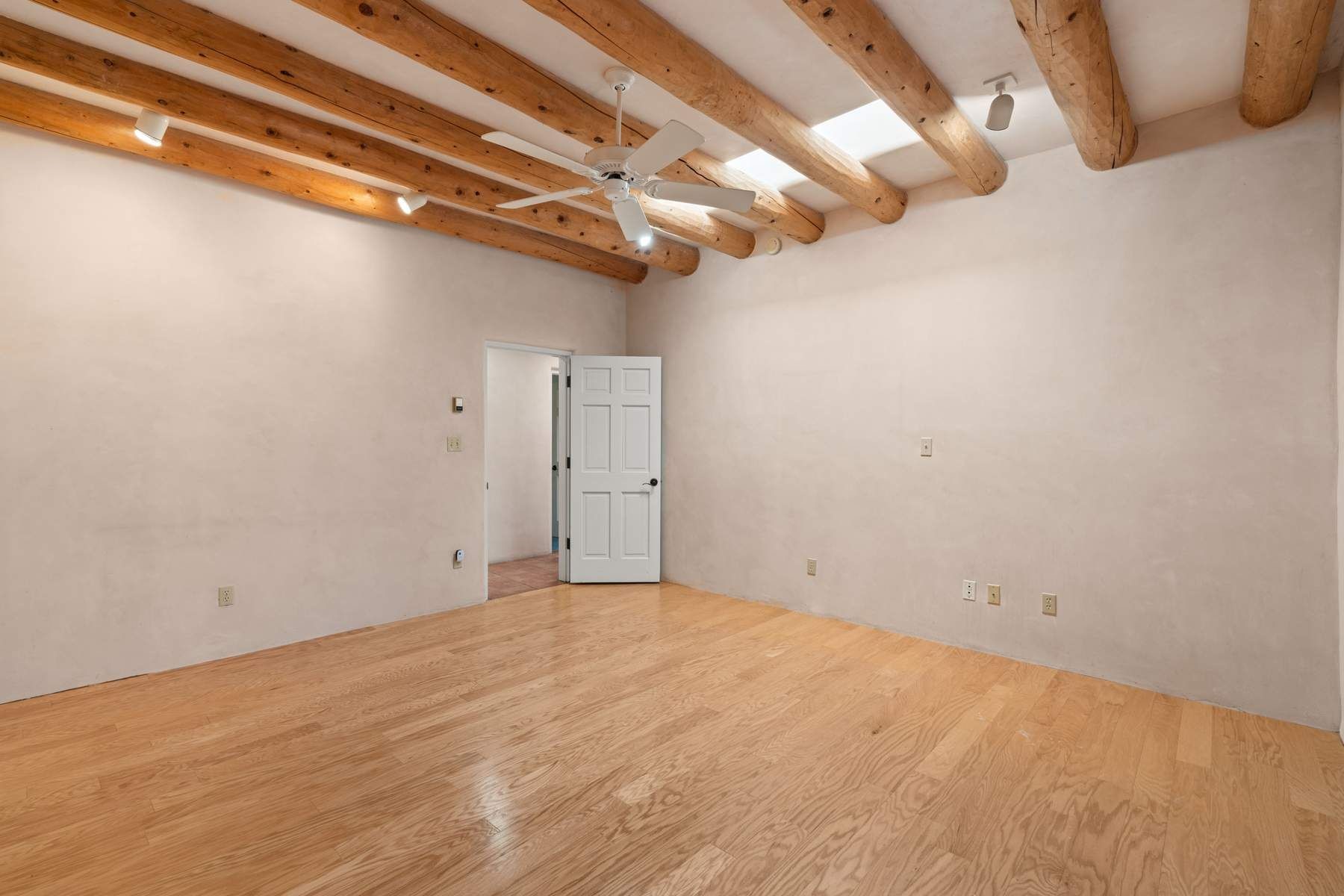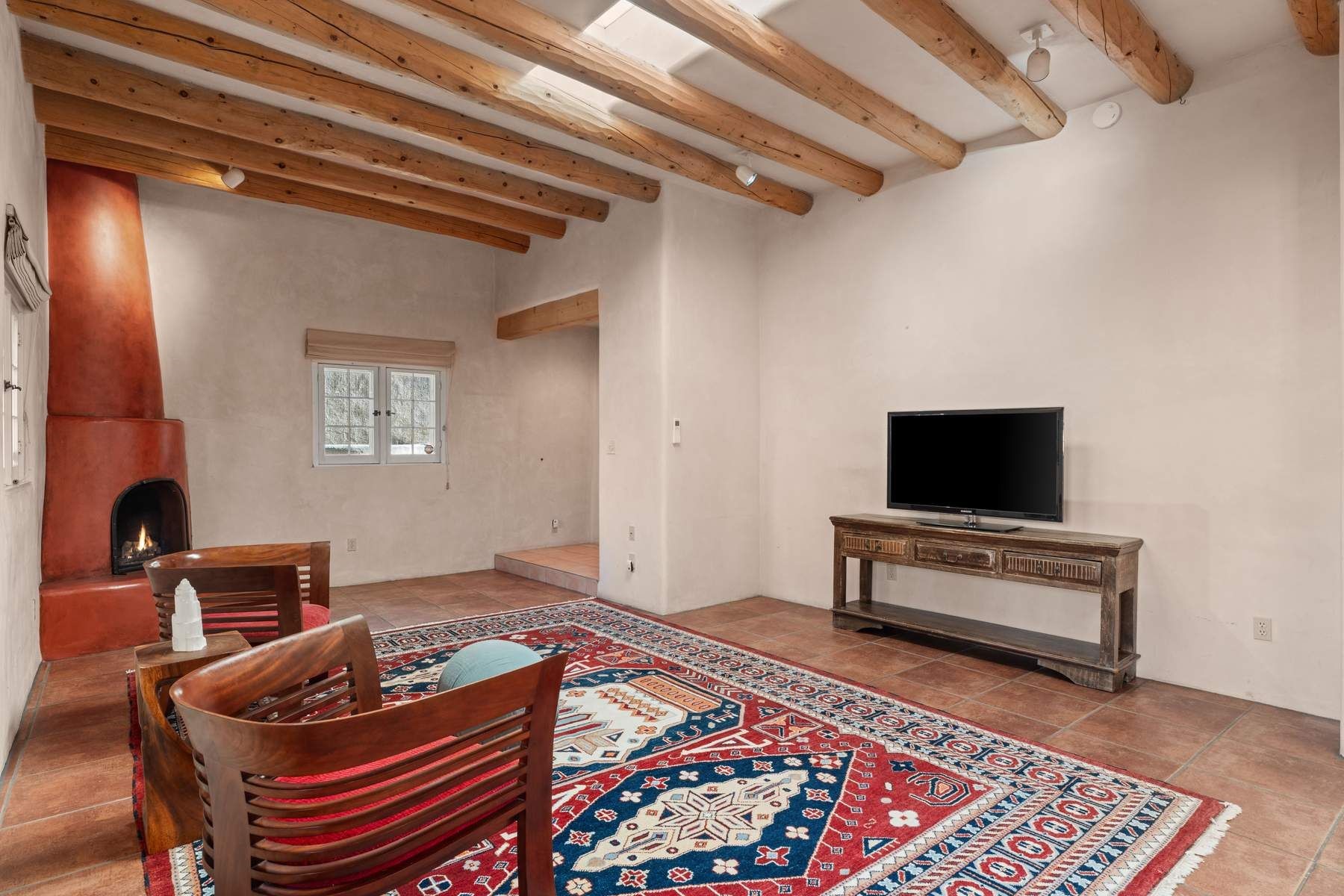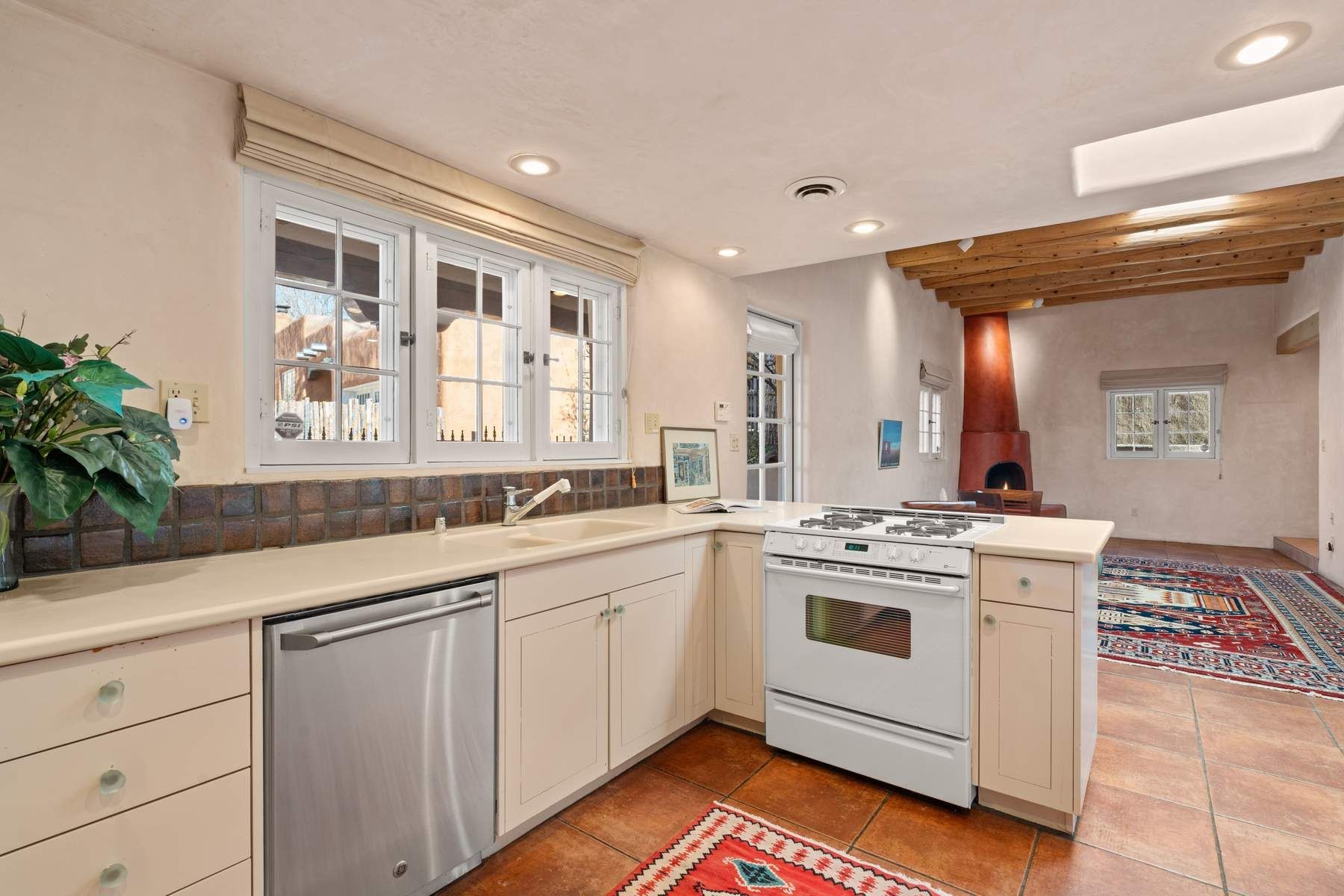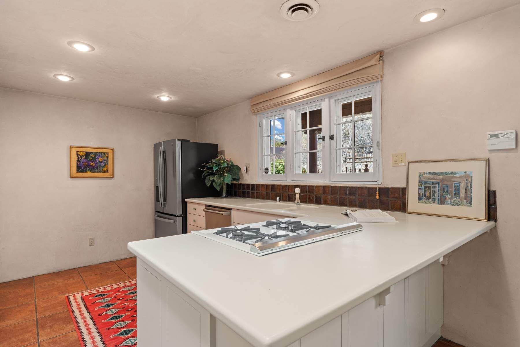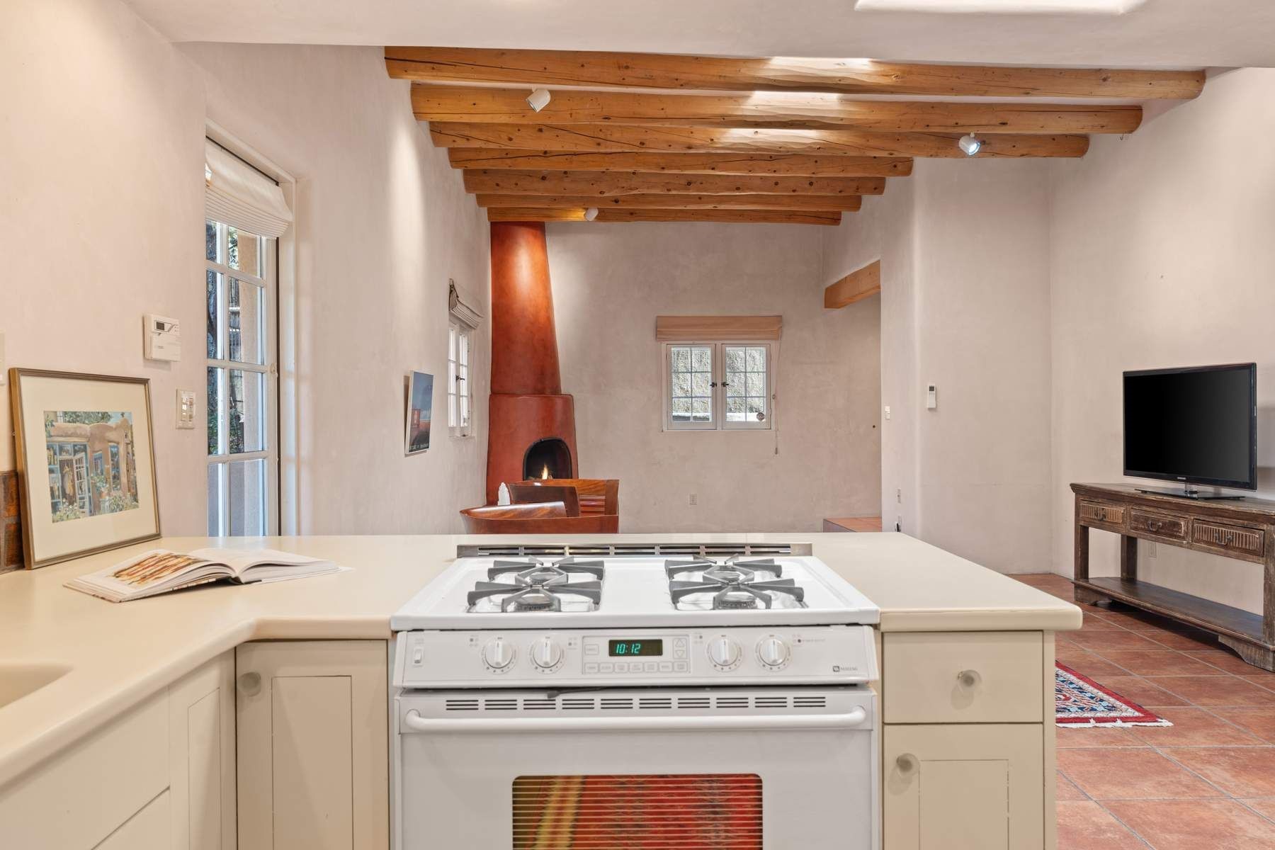 Located just down the street from the Thomas Macaione Park, the Cross of the Martyrs and the numerous shops and galleries on Marcy Street, this timeless and authentic Santa Fe home and attached guesthouse is situated down a quiet lane with an attractive floor plan in place. The entire structure consists of a 1928 sq.ft. (1405 sq.ft main house/523 sq.ft guesthouse) single-story frame and stucco home exuding a classic yet updated Santa Fe style. The 0.07 acre property boasts a private, walled, and gated outdoor environment with a large portal located off the north side of the property. Each space consists of a living/dining area, full kitchen, bedroom and full bathroom. A wood burning kiva fireplace is situated in each of the living areas. A shared laundry room/mechanical room separates the spaces with privacy doors in place. Ceramic tile and wood floors, smooth plaster walls, refrigerated mini-split cooling and several skylights throughout the homes add to not only the functional, but the esthetic feel of the home. Completely updated and perfectly maintained, this is a property not to be missed in an idyllic Santa Fe location.
