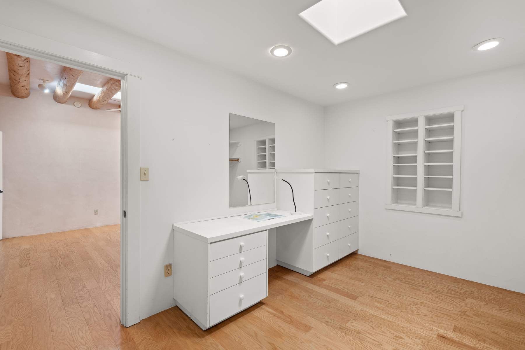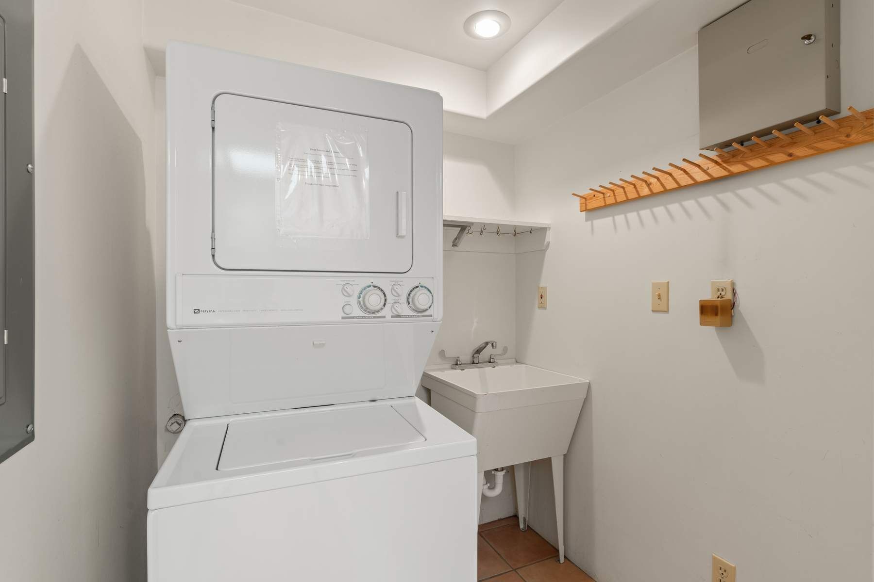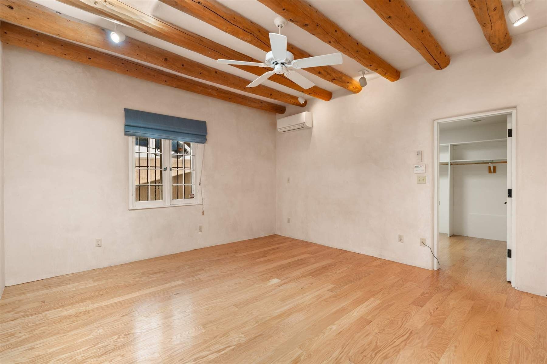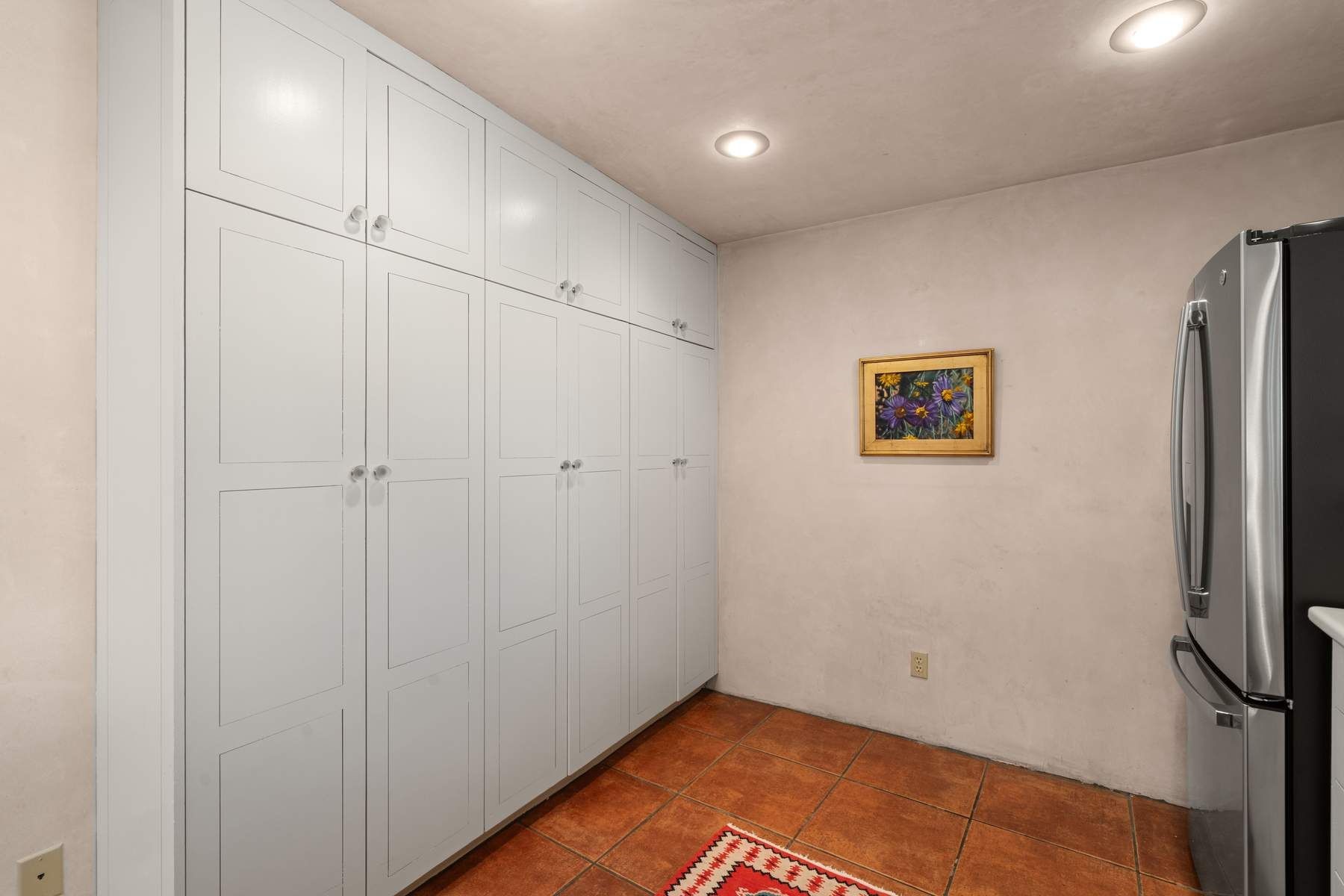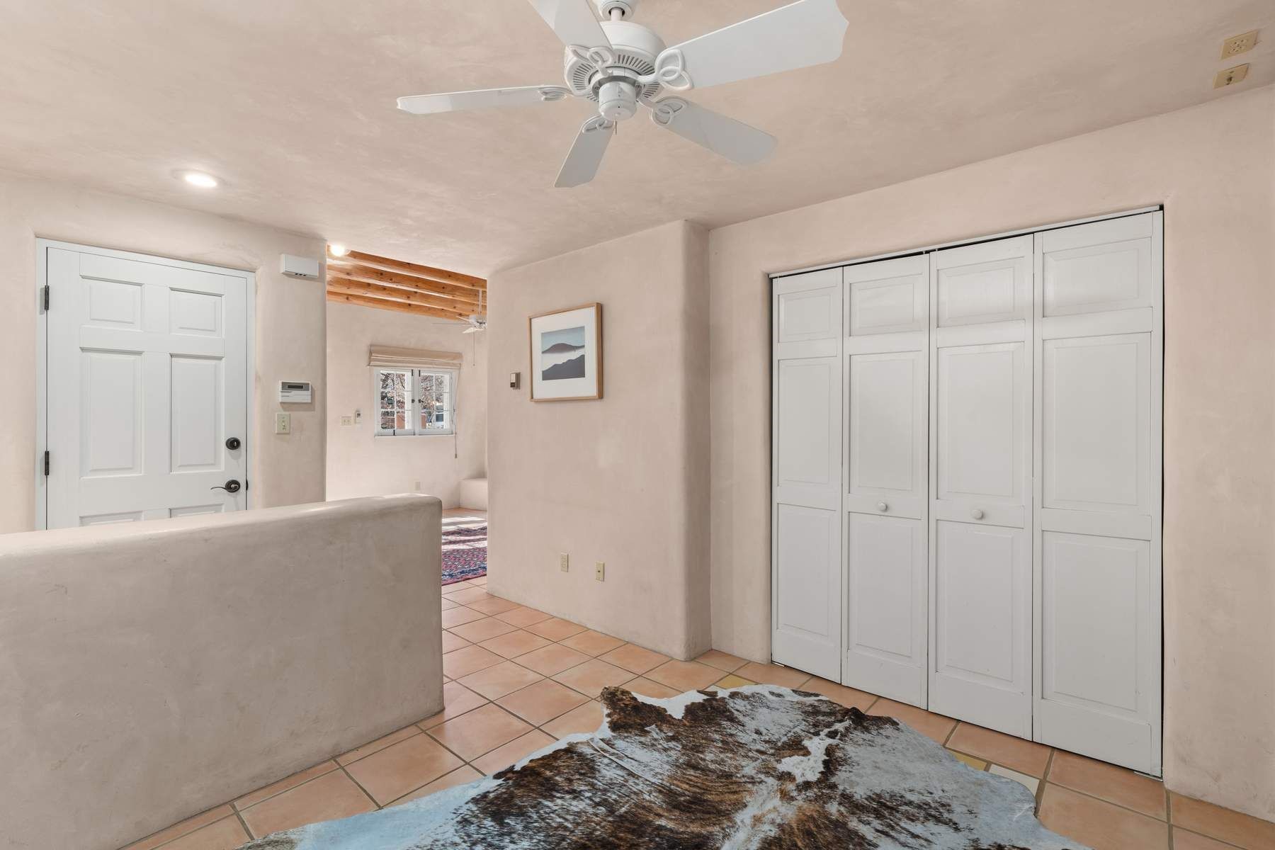 Located just down the street from the Thomas Macaione Park, the Cross of the Martyrs and the numerous shops and galleries on Marcy Street, this timeless and authentic Santa Fe home and attached guesthouse is situated down a quiet lane with an attractive floor plan in place. The entire structure consists of a 1928 sq.ft. (1405 sq.ft main house/523 sq.ft guesthouse) single-story frame and stucco home exuding a classic yet updated Santa Fe style. The 0.07 acre property boasts a private, walled, and gated outdoor environment with a large portal located off the north side of the property. Each space consists of a living/dining area, full kitchen, bedroom and full bathroom. A wood burning kiva fireplace is situated in each of the living areas. A shared laundry room/mechanical room separates the spaces with privacy doors in place. Ceramic tile and wood floors, smooth plaster walls, refrigerated mini-split cooling and several skylights throughout the homes add to not only the functional, but the esthetic feel of the home. Completely updated and perfectly maintained, this is a property not to be missed in an idyllic Santa Fe location.