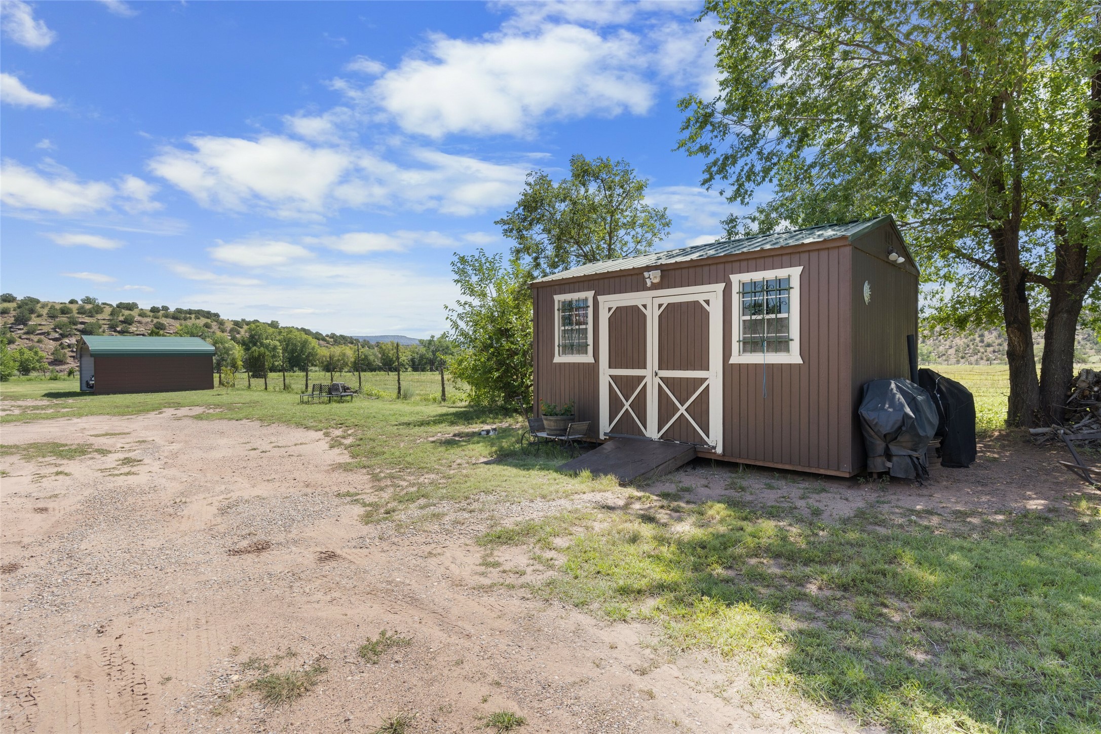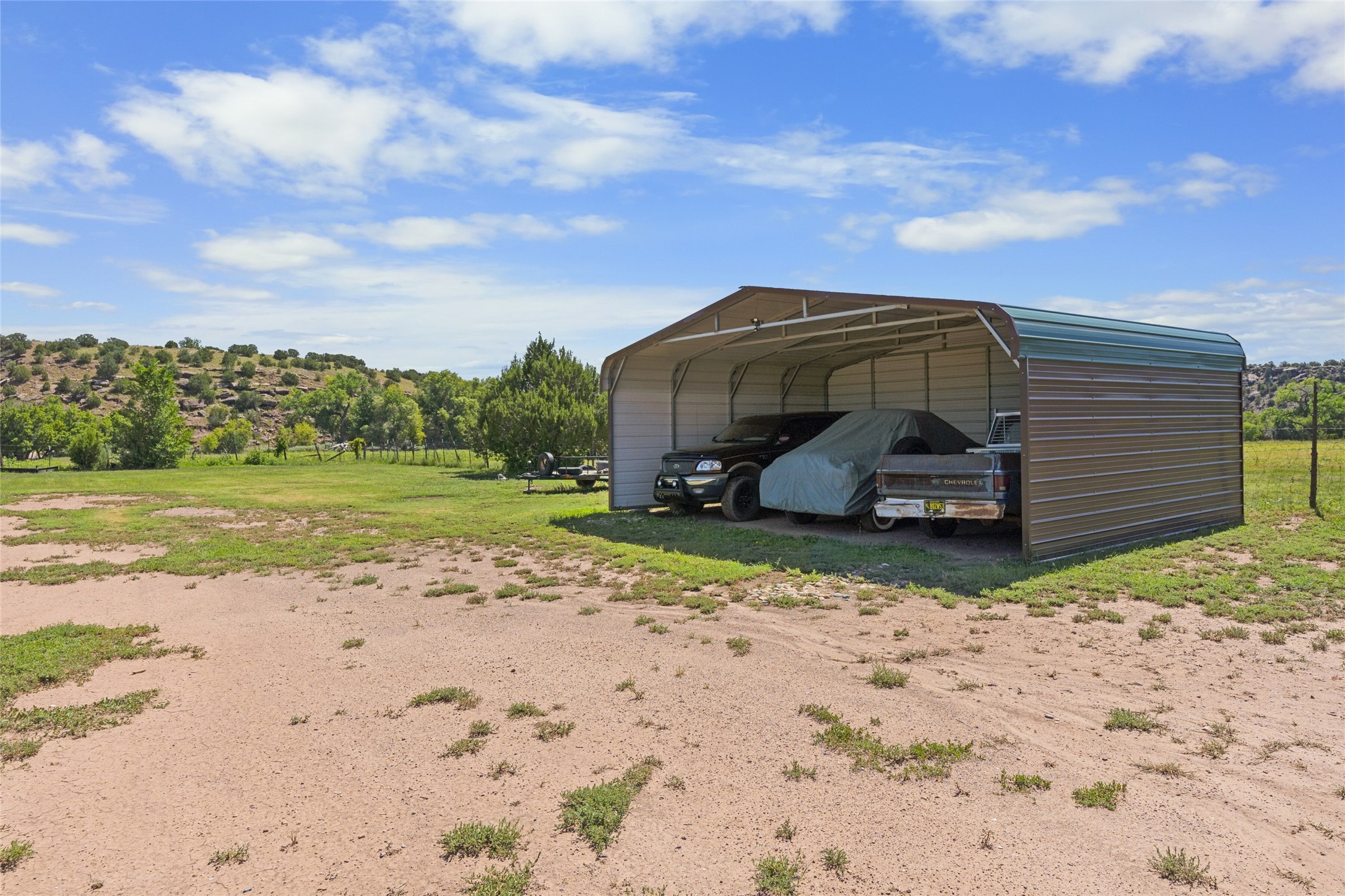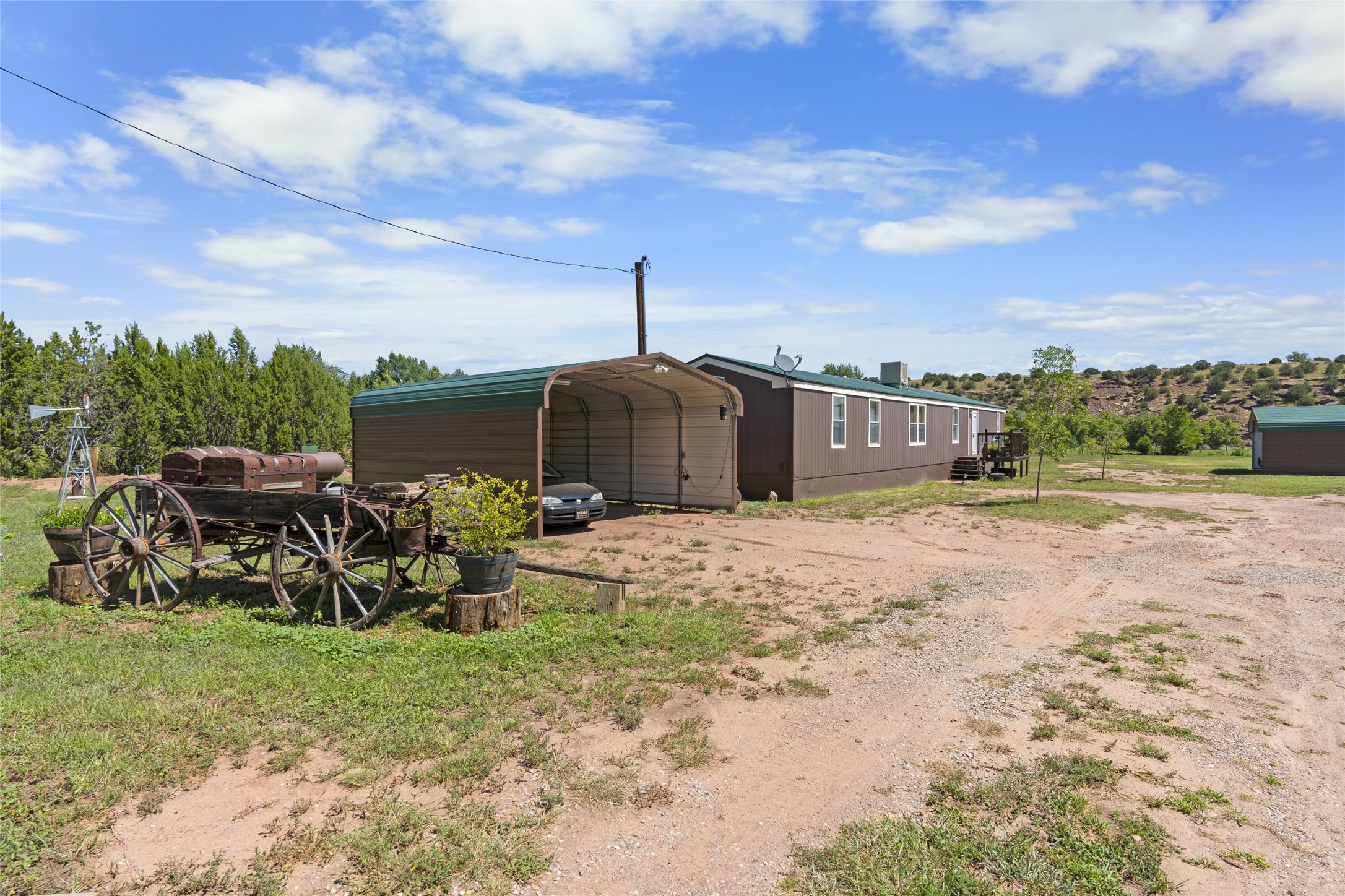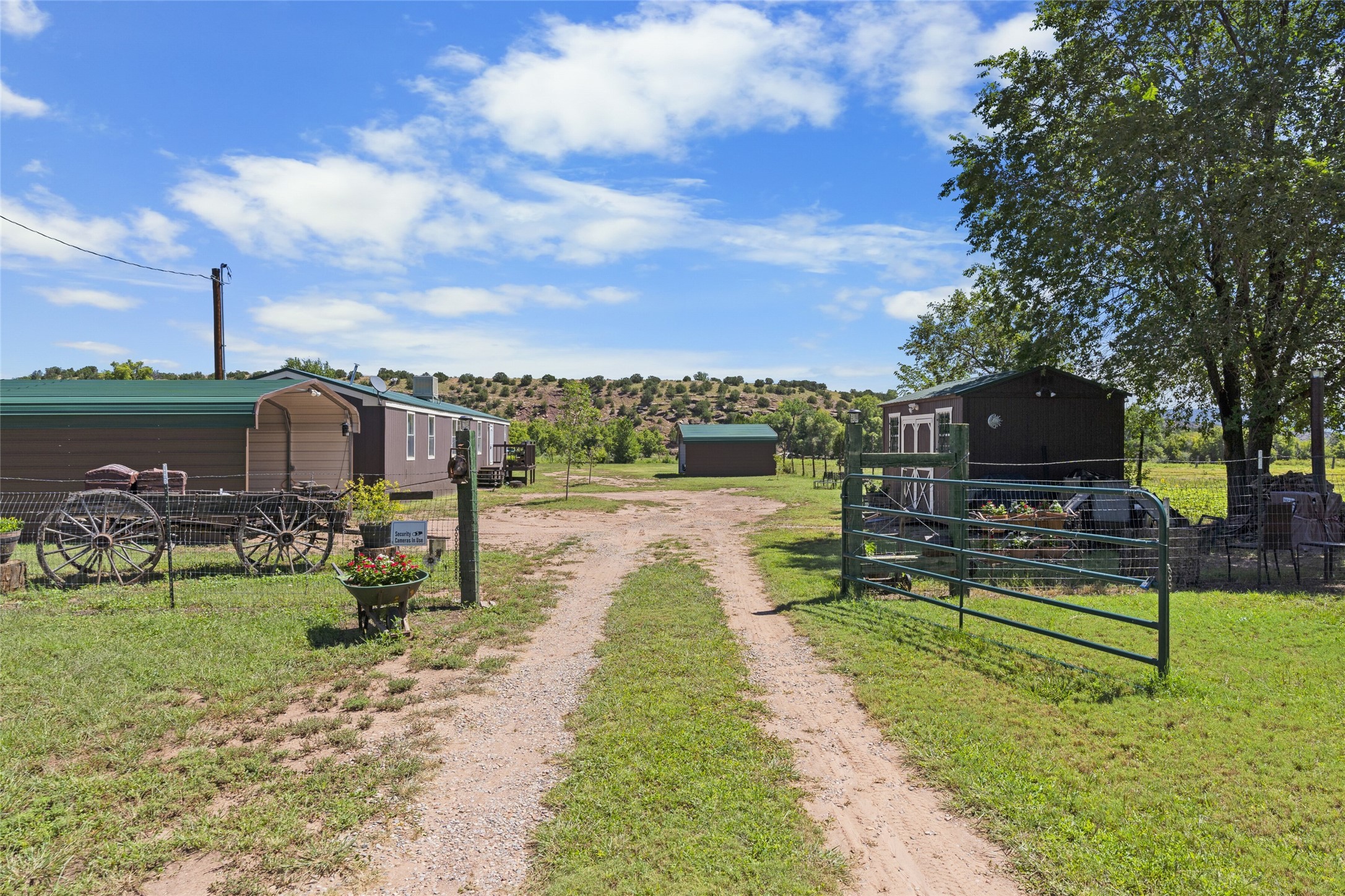 https://27caminocasagrande.com. This listing consists of 2 properties being sold together. 27 Camino Casa Grande is 1.69 acres with an adobe home consisting of 2 bedrooms, one full bathroom, one half bathroom and is 1,762 sf. There is a detached 2 car garage which also houses the guest house/casita approximately 520 sf with a full kitchen and 3/4 bathroom. The second property- accessed through the first- is one acre with a manufactured home consisting of 3 bedrooms and 2 full bathrooms and 1368 sf. Each property has a private 3 acre foot well. The upper property is also hooked up to community water and has acequia rights. Other buildings on the properties consist of a large greenhouse (formerly the pool) for year round growing, a barn with RV storage, and numerous other storage sheds. The property is in the traditional village of San Jose New Mexico, approximately 40 minutes to Santa Fe and 20 minutes to Las Vegas. Walking distance to the Pecos River.
