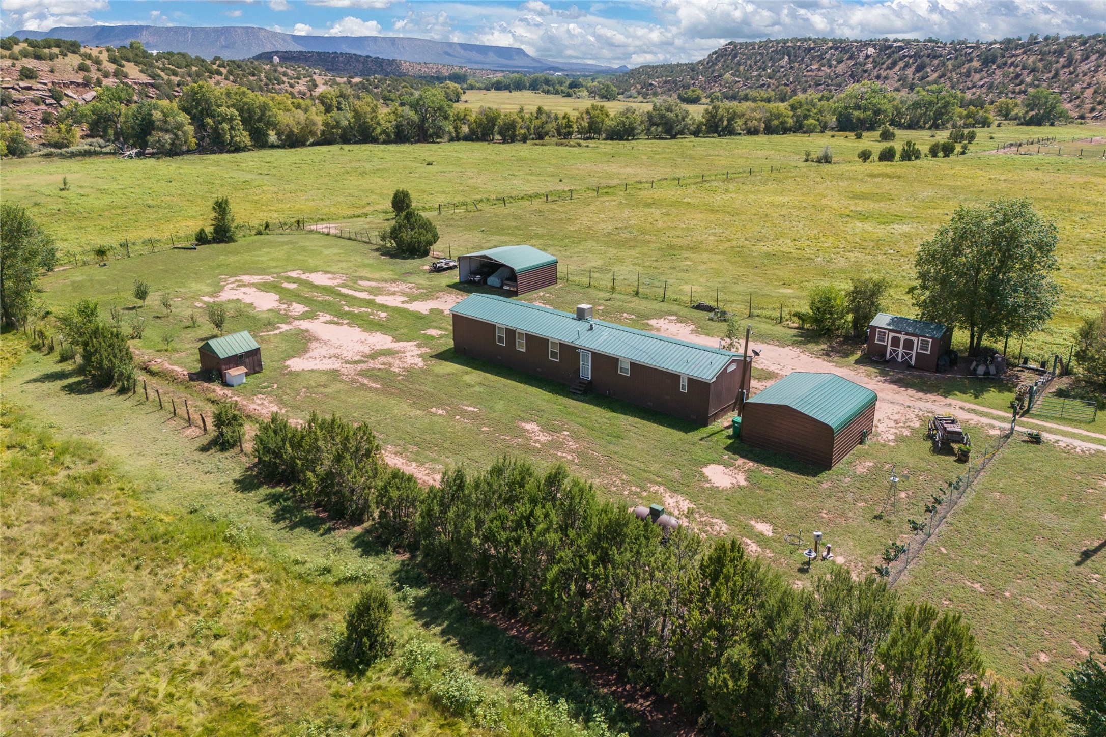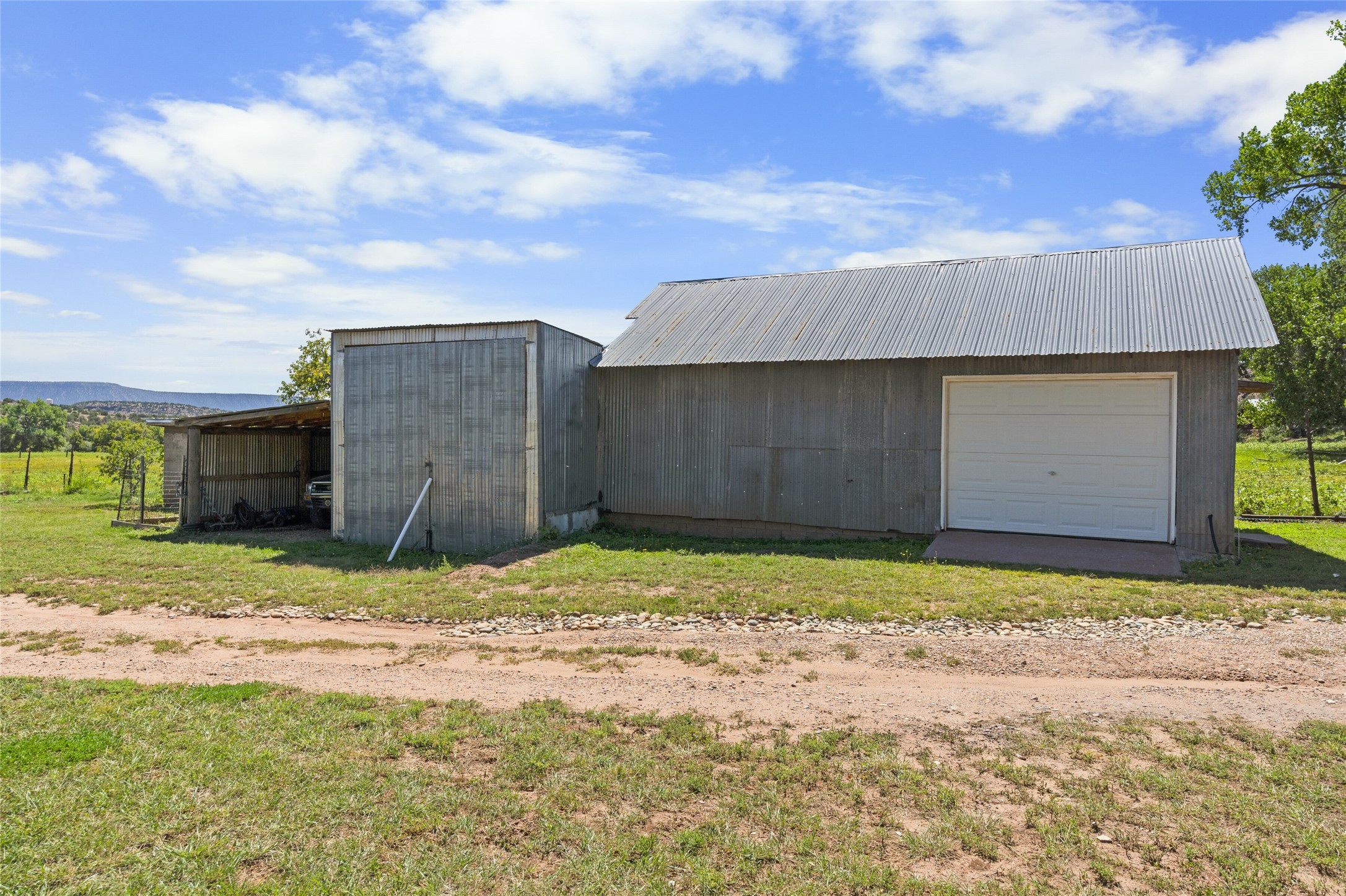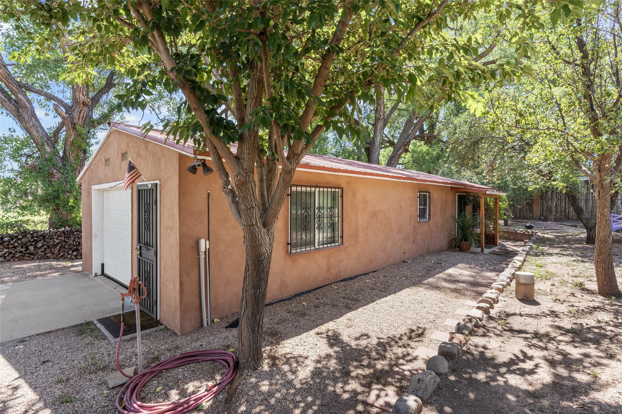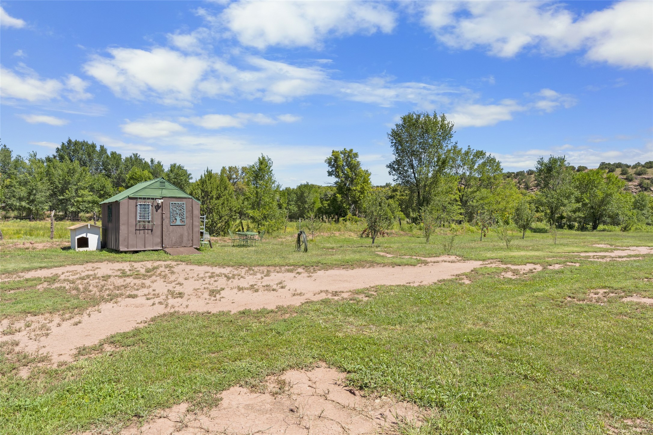 https://27caminocasagrande.com. This listing consists of 2 properties being sold together. 27 Camino Casa Grande is 1.69 acres with an adobe home consisting of 2 bedrooms, one full bathroom, one half bathroom and is 1,762 sf. There is a detached 2 car garage which also houses the guest house/casita approximately 520 sf with a full kitchen and 3/4 bathroom. The second property- accessed through the first- is one acre with a manufactured home consisting of 3 bedrooms and 2 full bathrooms and 1368 sf. Each property has a private 3 acre foot well. The upper property is also hooked up to community water and has acequia rights. Other buildings on the properties consist of a large greenhouse (formerly the pool) for year round growing, a barn with RV storage, and numerous other storage sheds. The property is in the traditional village of San Jose New Mexico, approximately 40 minutes to Santa Fe and 20 minutes to Las Vegas. Walking distance to the Pecos River.