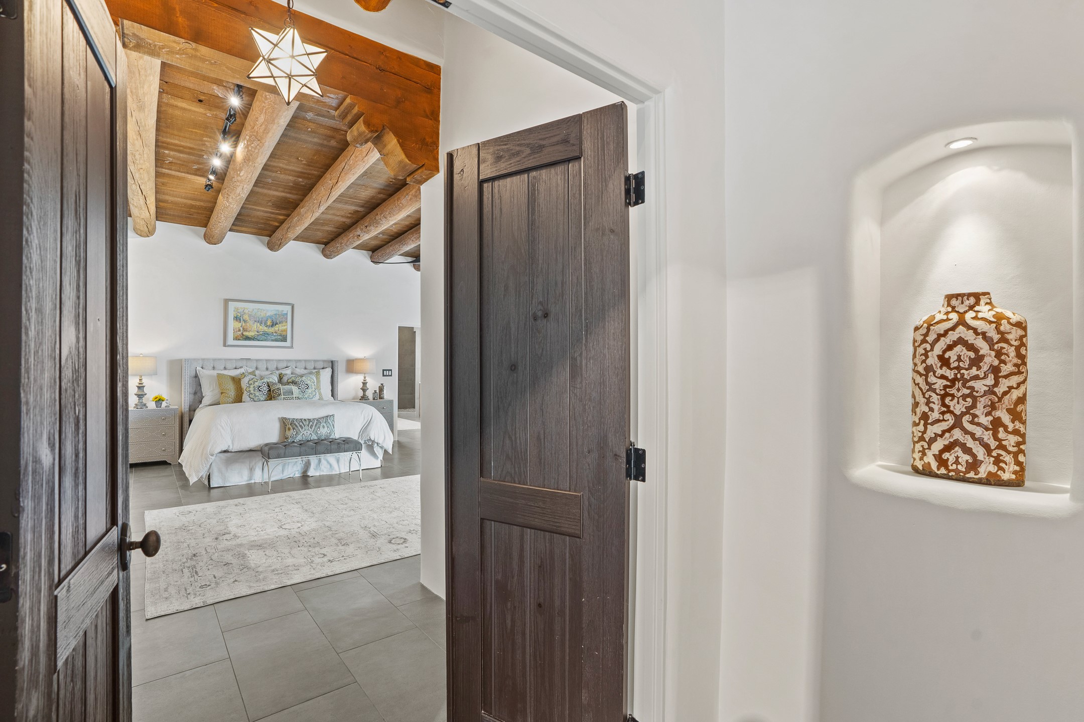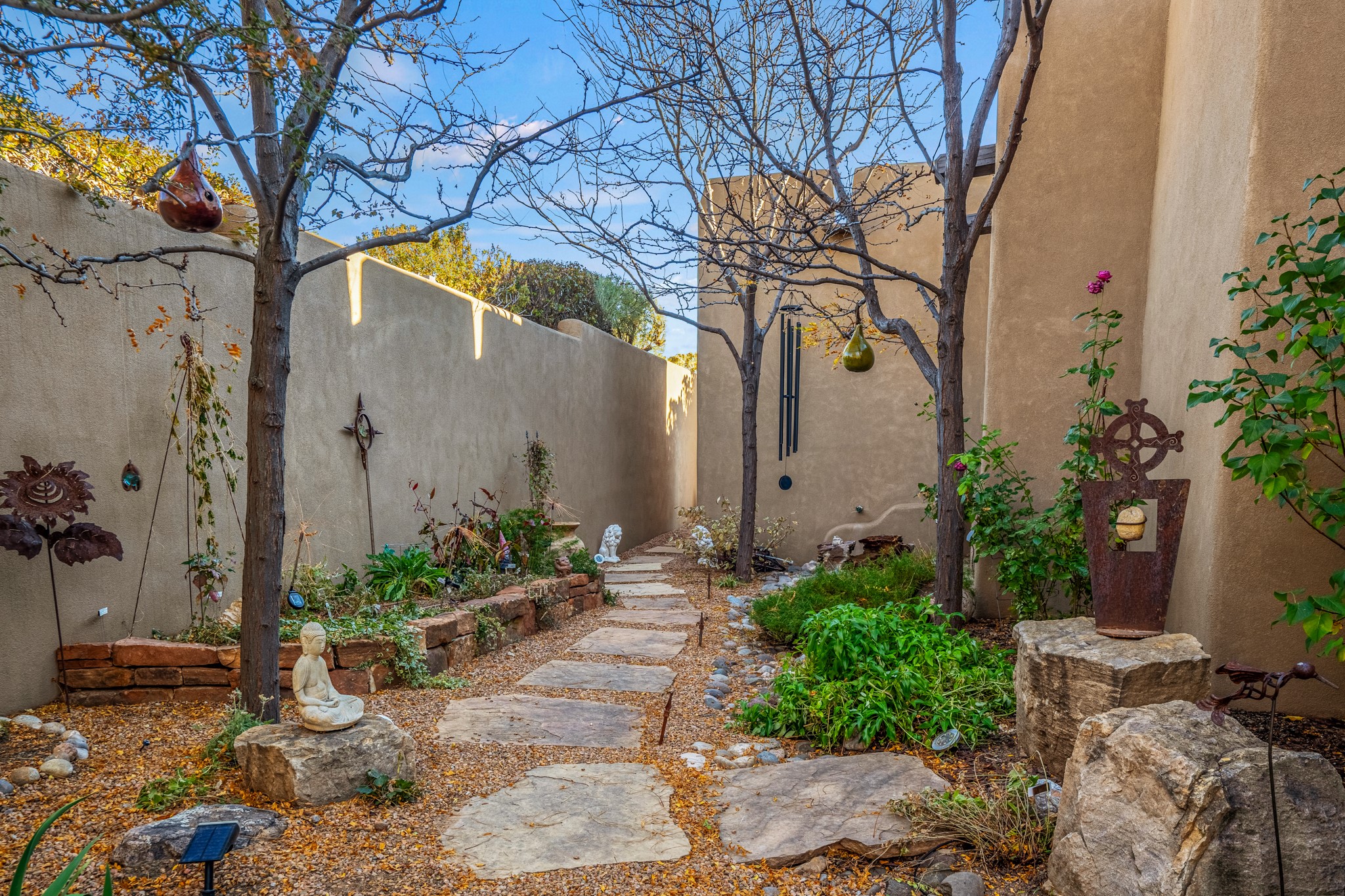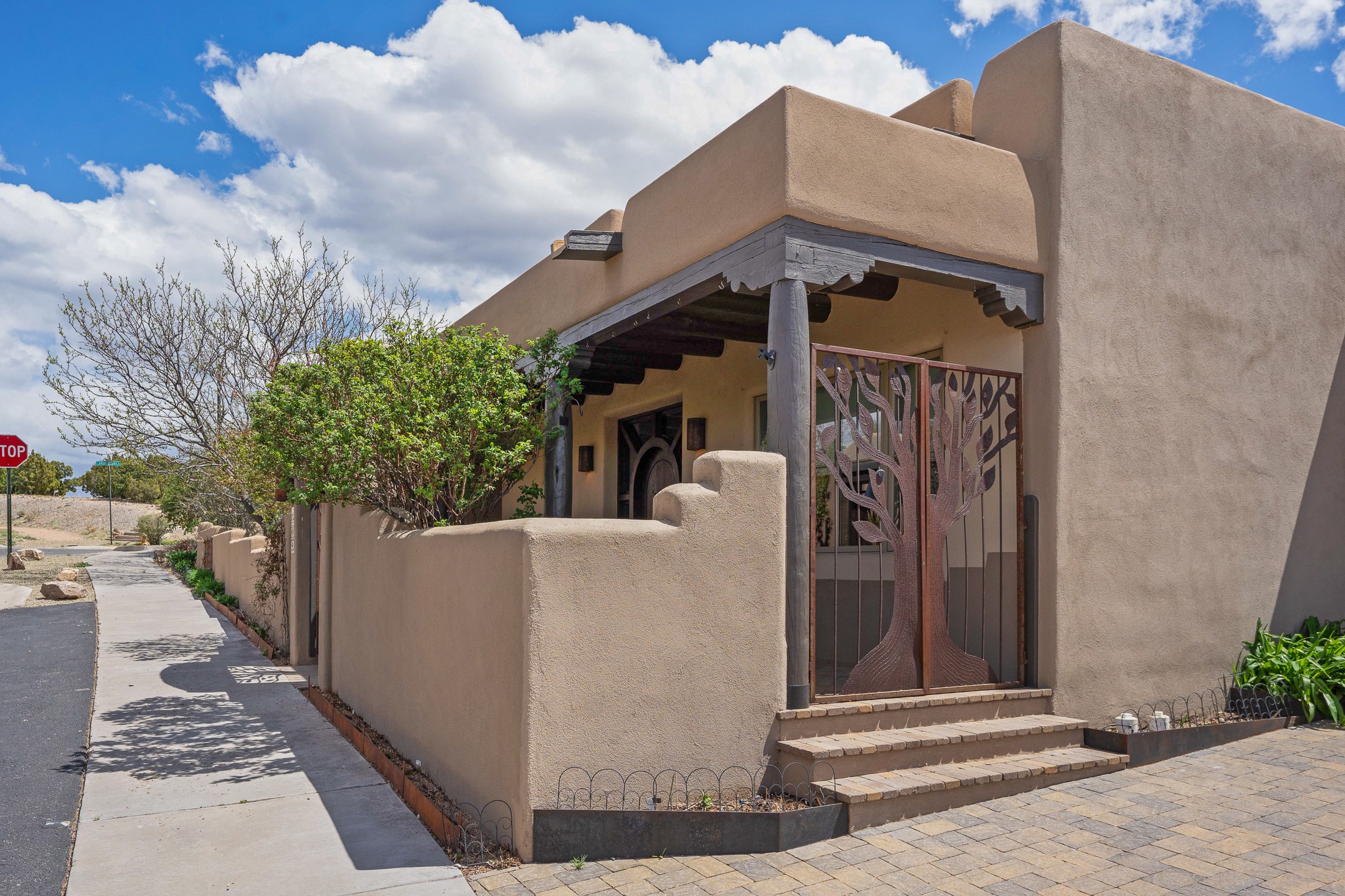 Sometimes, a home just fits. From the moment you step inside 46 E Via Plaza Nueva, it's clear: this isn't a house you have to fix or tolerate or remake, it's a house you can finally live in. Recently reinvented from the ground up, this 3,947-square-foot residence combines classic Pueblo Revival architecture with modern elegance and uncompromising upgrades. Every inch reflects thoughtful design and enduring quality from the brand-new roof and mechanicals to the luxurious Miele kitchen, spa-like baths, and three distinct outdoor patios, each with its own view of the surrounding mountains. The heart of the home is its open living space, anchored by beamed ceilings and twin fireplaces, flooded with light and warmth. The chef's kitchen was designed to be used and loved, with high-end appliances, generous prep space, and a walk-in pantry. The primary suite is a retreat unto itself, with a soaking tub, radiant floors, and light that shifts beautifully throughout the day. Each of the three bedrooms has its own private en suite bath and custom walk-in closet. Whether you're entertaining weekend guests or settling in with family, there's space, privacy, and comfort for everyone. And outside? Three portals sunlit, starlit, and mountain-kissed, invite you to sip, savor, and breathe. Highlights Include: Complete renovation (2019-2022): mechanical systems, roof, finishes, appliances, gorgeous landscaping.3 bedrooms, 3.5 bathrooms, all en suite. Chef's kitchen with Miele appliances and walk-in pantry. Three outdoor patios with expansive mountain views. Radiant floor heat, new HVAC, and energy-efficient systems. Finished 2-car garage. Located in the peaceful Aldea neighborhood with low HOA and quick access to trails. Minutes from downtown Santa Fe, but a world away in peace and quiet.The seller's VA loan is assumable for qualified buyers the rate is 2.625%. You do not have to be a vet to assume it.