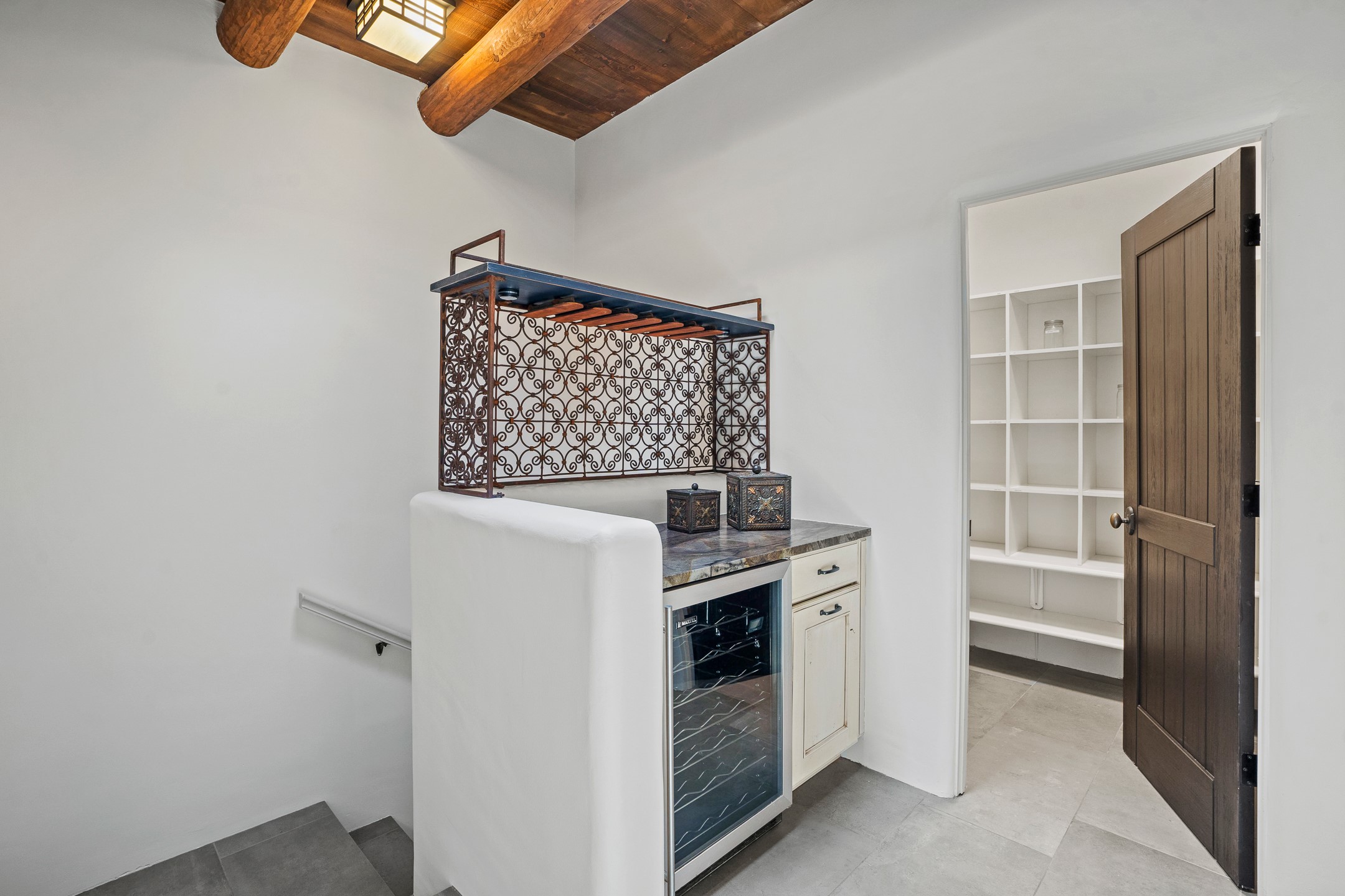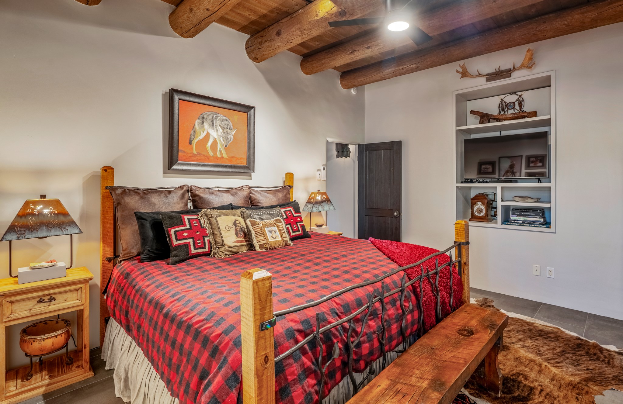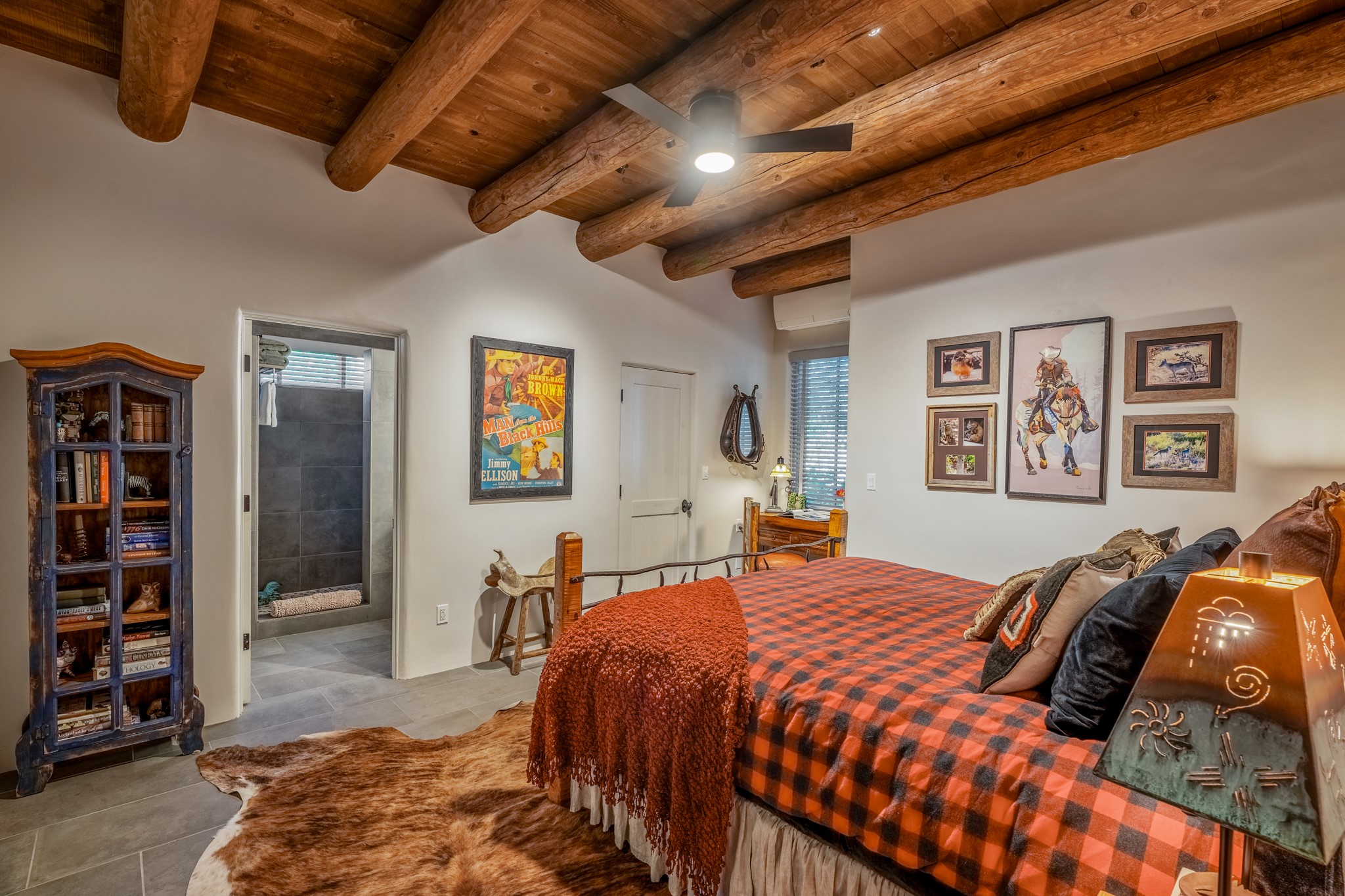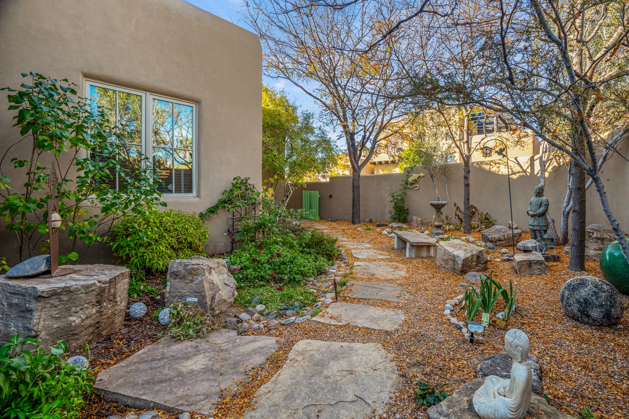 Sometimes, a home just fits. From the moment you step inside 46 E Via Plaza Nueva, it's clear: this isn't a house you have to fix or tolerate or remake, it's a house you can finally live in. Recently reinvented from the ground up, this 3,947-square-foot residence combines classic Pueblo Revival architecture with modern elegance and uncompromising upgrades. Every inch reflects thoughtful design and enduring quality from the brand-new roof and mechanicals to the luxurious Miele kitchen, spa-like baths, and three distinct outdoor patios, each with its own view of the surrounding mountains. The heart of the home is its open living space, anchored by beamed ceilings and twin fireplaces, flooded with light and warmth. The chef's kitchen was designed to be used and loved, with high-end appliances, generous prep space, and a walk-in pantry. The primary suite is a retreat unto itself, with a soaking tub, radiant floors, and light that shifts beautifully throughout the day. Each of the three bedrooms has its own private en suite bath and custom walk-in closet. Whether you're entertaining weekend guests or settling in with family, there's space, privacy, and comfort for everyone. And outside? Three portals sunlit, starlit, and mountain-kissed, invite you to sip, savor, and breathe. Highlights Include: Complete renovation (2019-2022): mechanical systems, roof, finishes, appliances, gorgeous landscaping.3 bedrooms, 3.5 bathrooms, all en suite. Chef's kitchen with Miele appliances and walk-in pantry. Three outdoor patios with expansive mountain views. Radiant floor heat, new HVAC, and energy-efficient systems. Finished 2-car garage. Located in the peaceful Aldea neighborhood with low HOA and quick access to trails. Minutes from downtown Santa Fe, but a world away in peace and quiet.The seller's VA loan is assumable for qualified buyers the rate is 2.625%. You do not have to be a vet to assume it.