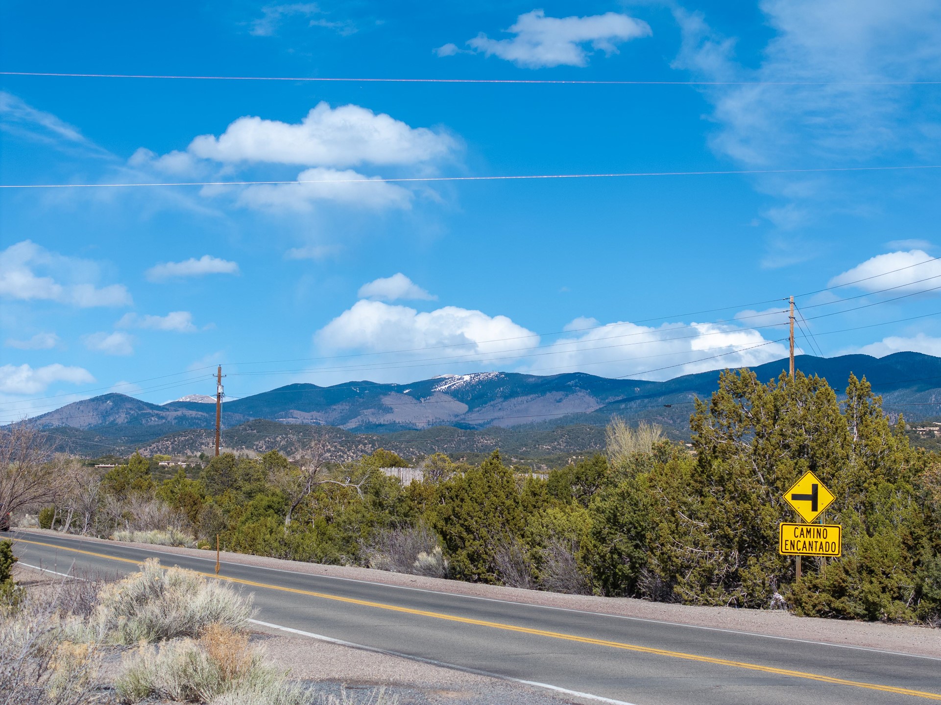 A very special estate offering approximately 1.5 miles to the Historic Santa Fe Plaza. Convenient to Highway 285, Tesuque Village, Ski Santa Fe and The Santa Fe Opera. The single level main house commands exquisite views of Downtown Santa Fe, the Jemez Mountains and a gorgeous, nestled view of the Sangre de Cristo Mountains. The gorgeous Kitchen is well designed and equipped. The guest casita has two fireplaces and also has a great view to Downtown from the large south facing veranda. The beautiful art studio is a perfect workspace with a kitchenette (partial kitchen: Sink, counter, cabinets. No appliances) and 1/2 bath. A 3- car garage is a great addition to this estate compound. There is also a tennis court included with this offering. The tennis court needs work, though it is thoughtfully located on the property with views of Downtown. The Great Room has 14' high ceilings with hand carved beams. The ceiling also has viga and cedar latillas. A wet bar is also located in the Great Room. This is an extremely well-designed home as well as are the additional structures. This property is coyote fenced and gated with many security features.