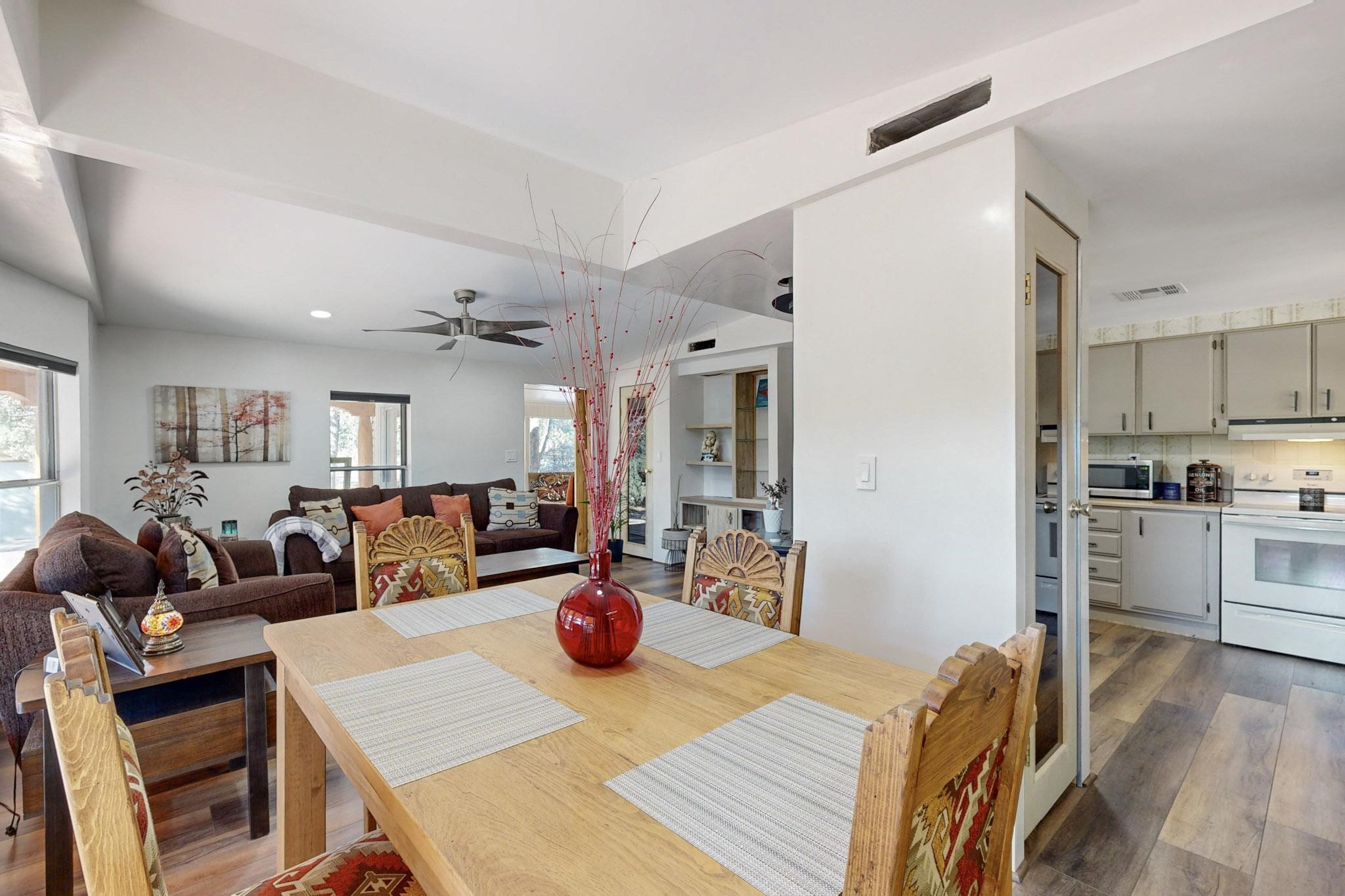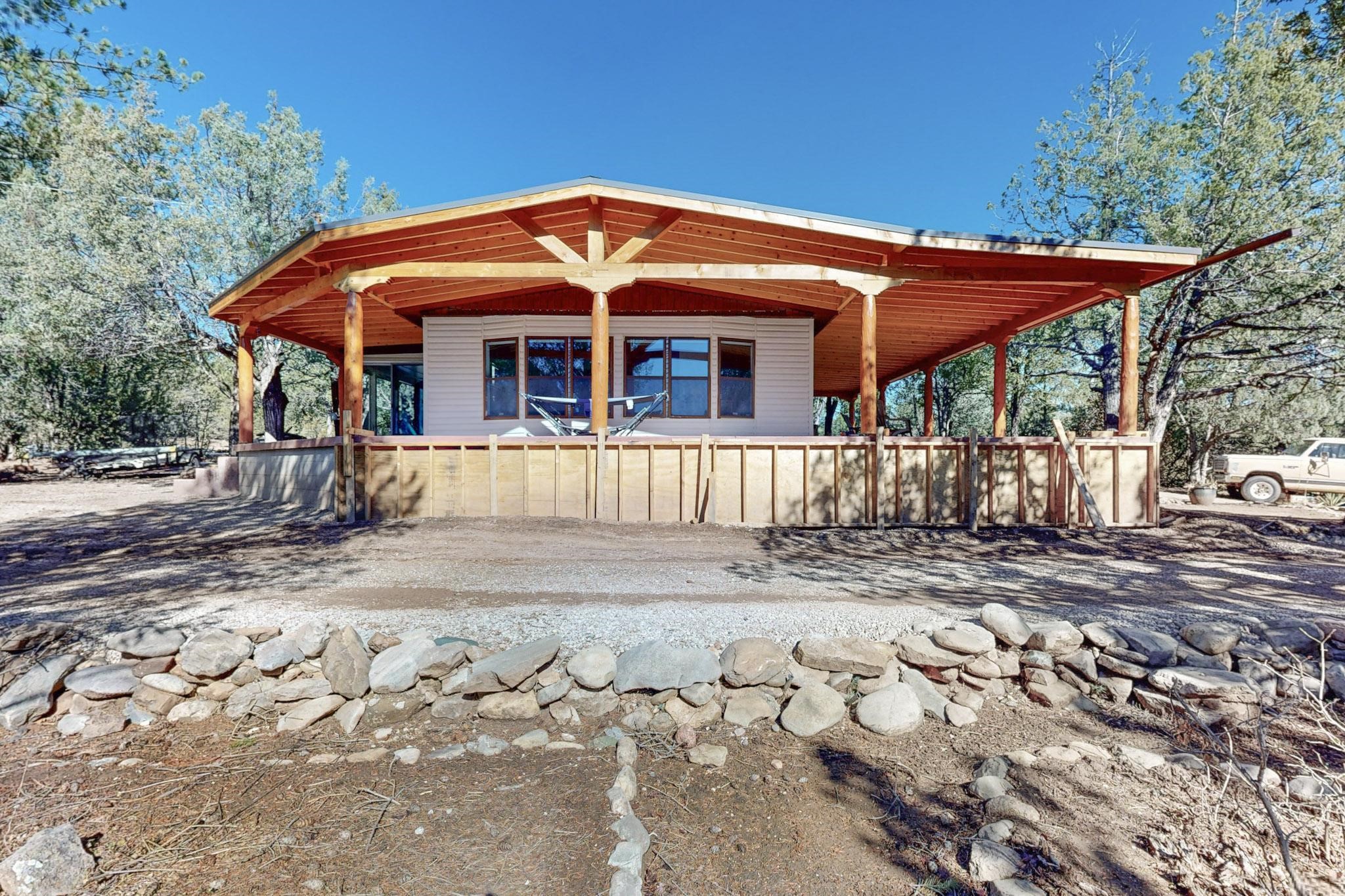 Welcome to your mountain retreat at 9 Rivera Ln in the Picturesque Pecos NM! This charming tucked-away home offers a cozy oasis next to the breathtaking wilderness. Surrounded by towering pines and serene landscapes, it's perfect for nature lovers seeking tranquility. Enjoy cozy evenings by the fireplace and morning coffee on the expansive wrap around deck with stunning views. Just minutes from Santa Fe, hiking trails and outdoor adventures, this hidden gem is the ideal getaway. Don't miss your chance to own a piece of mountain paradise!