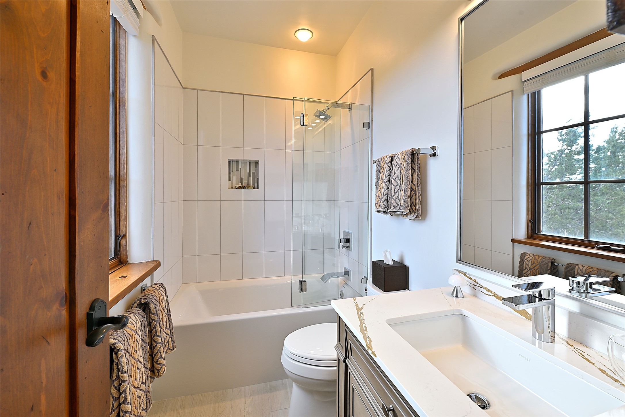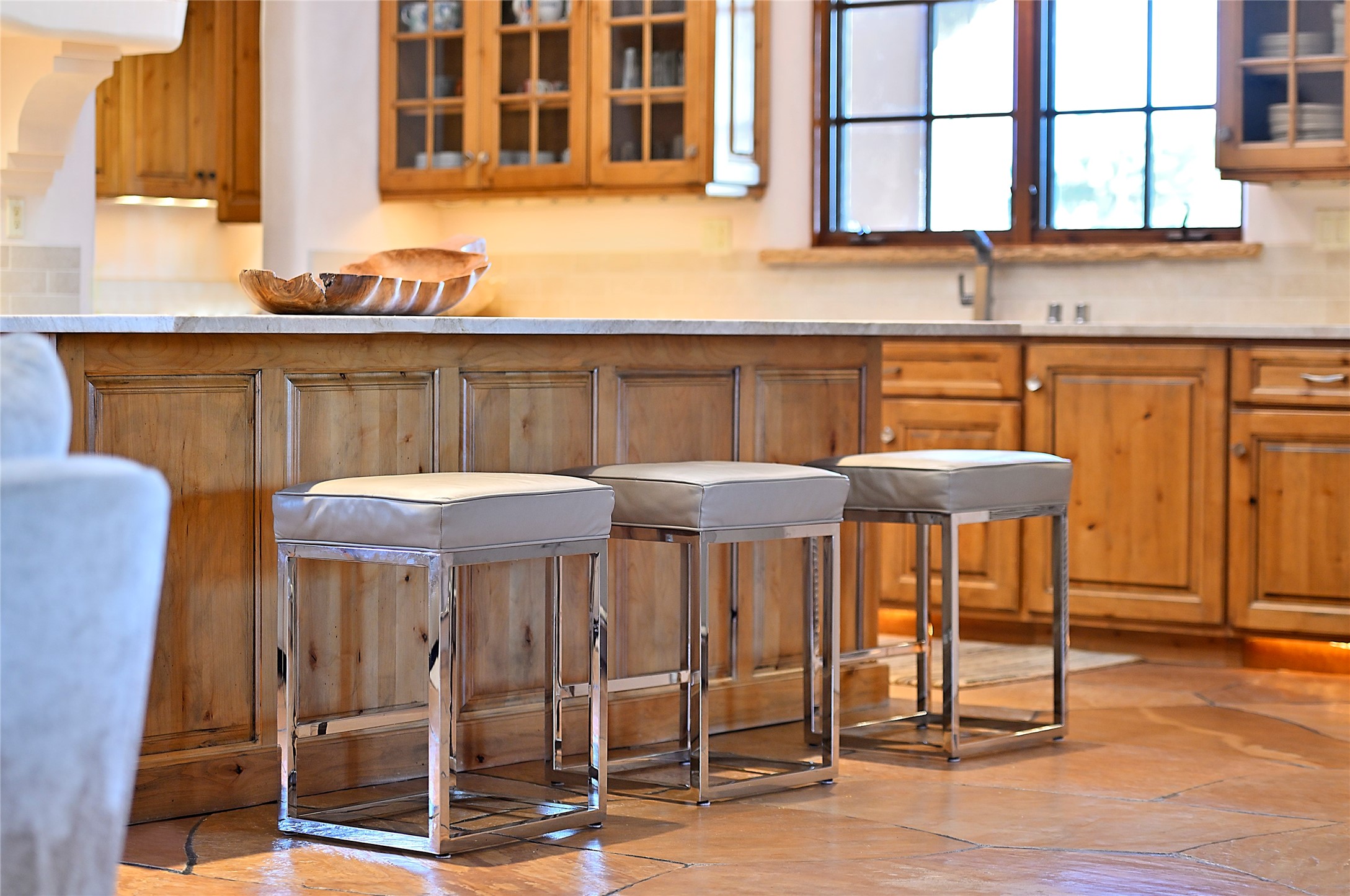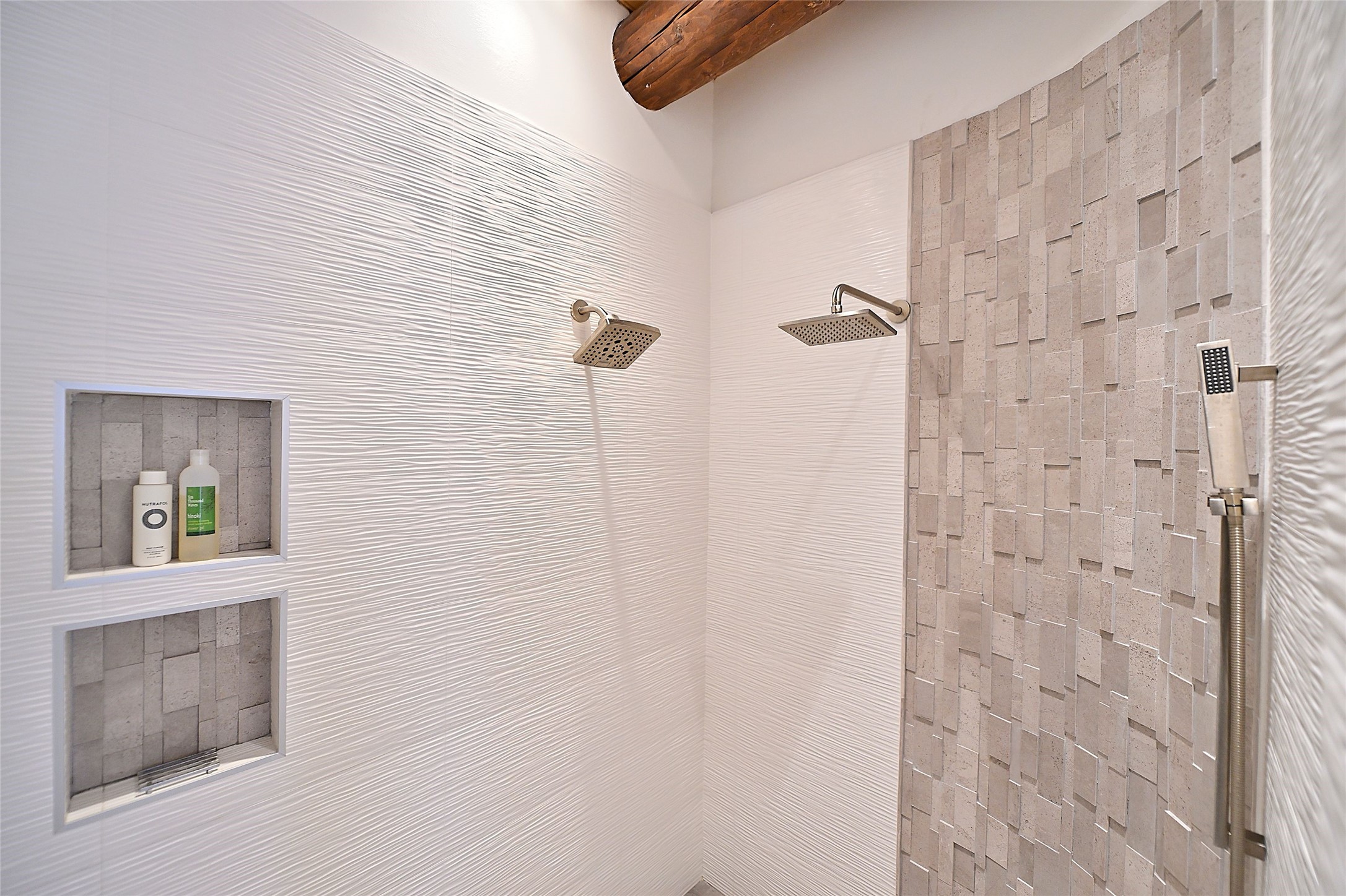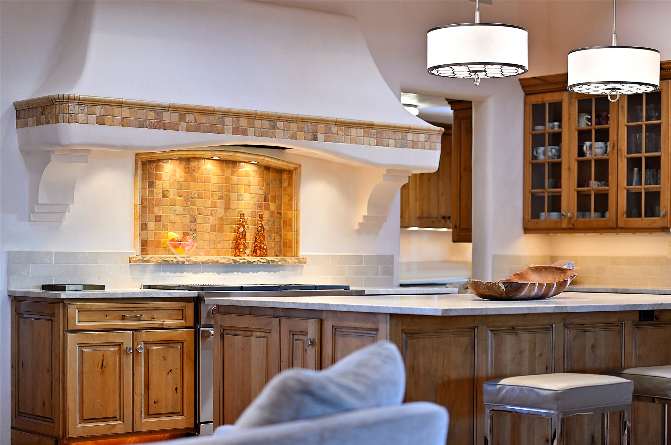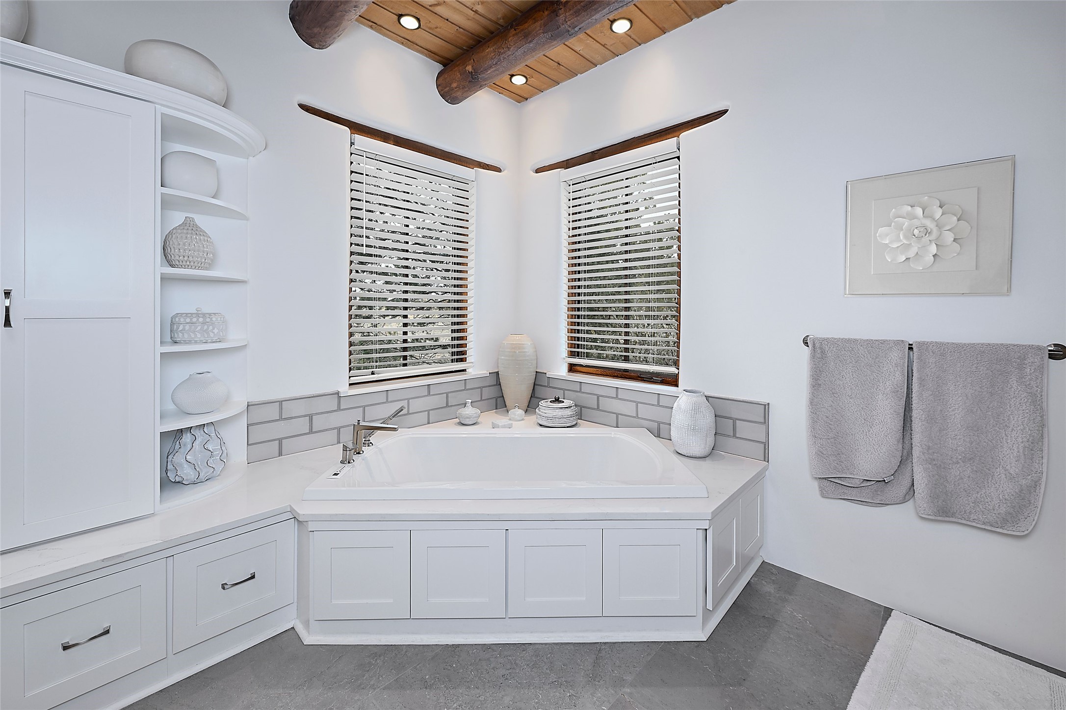 Santa Fe charm with lots of natural light in the prestigious Las Campanas community. This custom-built home combines luxury, privacy and contemporary comfort within a secure, gated setting. Its thoughtful design and high-end finishes offer an elevated living experience throughout. Upon entering, you'll be welcomed by a spacious, open layout with coved ceilings, flagstone floors and a seamless transition between indoor and outdoor spaces. The living room features expansive windows framing breathtaking western views, a striking wood ceiling design, a skylight and a wood-burning fireplace. A curved banco and soaring ceilings enhance the room's inviting atmosphere. The updated chef's kitchen boasts top-tier appliances including a 6-burner Wolf range and double oven and a Sub-Zero fridge and wine fridge. These state-of-the-art appliances are seamlessly integrated into custom cabinetry, creating a cohesive and functional space. The kitchen also features luxurious Taj Mahal quartzite countertops with a leather finish and a large island for meal prep and socializing. A spacious butler's pantry with desk space offers additional convenience. The adjacent dining room includes built-in cabinetry and opens to a wrap-around covered portal, ideal for alfresco dining. The outdoor space is complemented by a wood-burning kiva fireplace and a built-in Wolf grill--perfect for relaxing or entertaining. This home is designed for ultimate privacy, with a separate two-bedroom, two-bathroom guest wing. The primary bedroom offers a spacious and tranquil experience, a wood-burning kiva fireplace, upgraded windows and a private patio for enhanced comfort and seclusion. The luxurious en-suite bathroom includes a skylight, dual vanities, a stunning walk-in shower and BainUltra jetted soaking tub for spa-like enjoyment. A bonus room at the front of the house offers the flexibility of an extra bedroom, office space or TV room. The opportunities for outdoor living in this property are exceptional, with mature landscaping, multiple private patios off both guest bedrooms and the primary suite offering serene spaces for quiet reflection or enjoyment of the surroundings. The house features retractable custom wind and solar screens designed to afford protection from the elements without compromising the view and offering the ability to create the feeling of an outdoor room. Upgrades throughout the home ensure modern convenience and style, including a fully renovated kitchen, laundry room and all bathrooms, new appliances, Hunter Douglas window treatments, ceiling fans and new, high-end carpeting in three rooms. Additional updates include upgraded HVAC systems and fully-renovated driveway. Along with an EV charging station, the 3-car garage offers plenty of storage and includes a separate utility room. This beautiful residence combines timeless charm with modern luxury, offering an opportunity to live in one of the most desirable communities in Santa Fe.