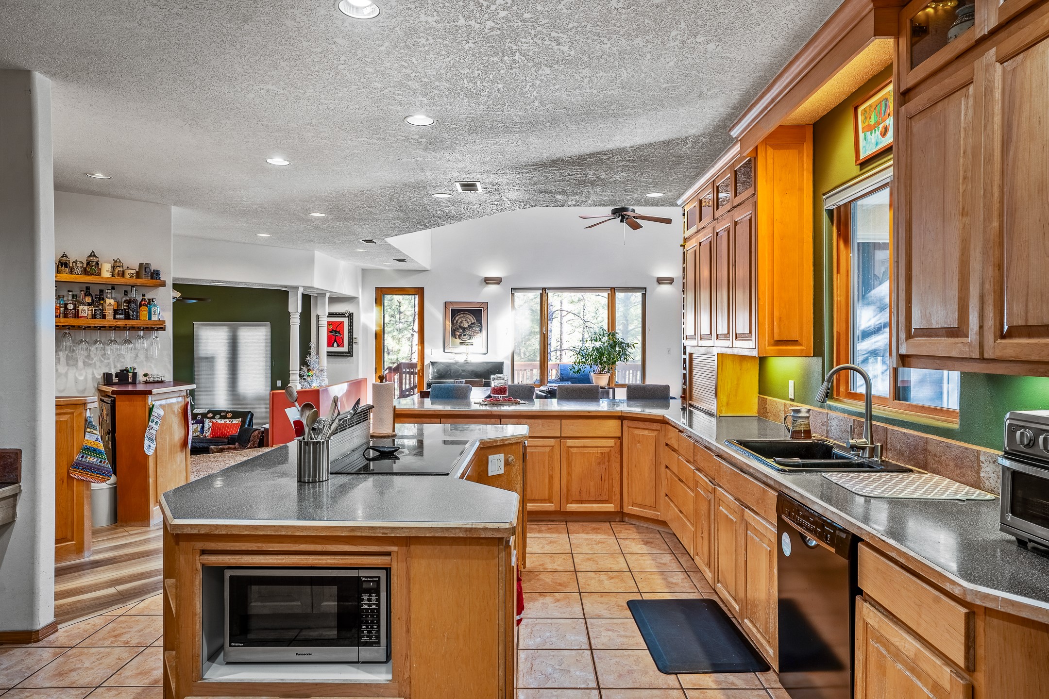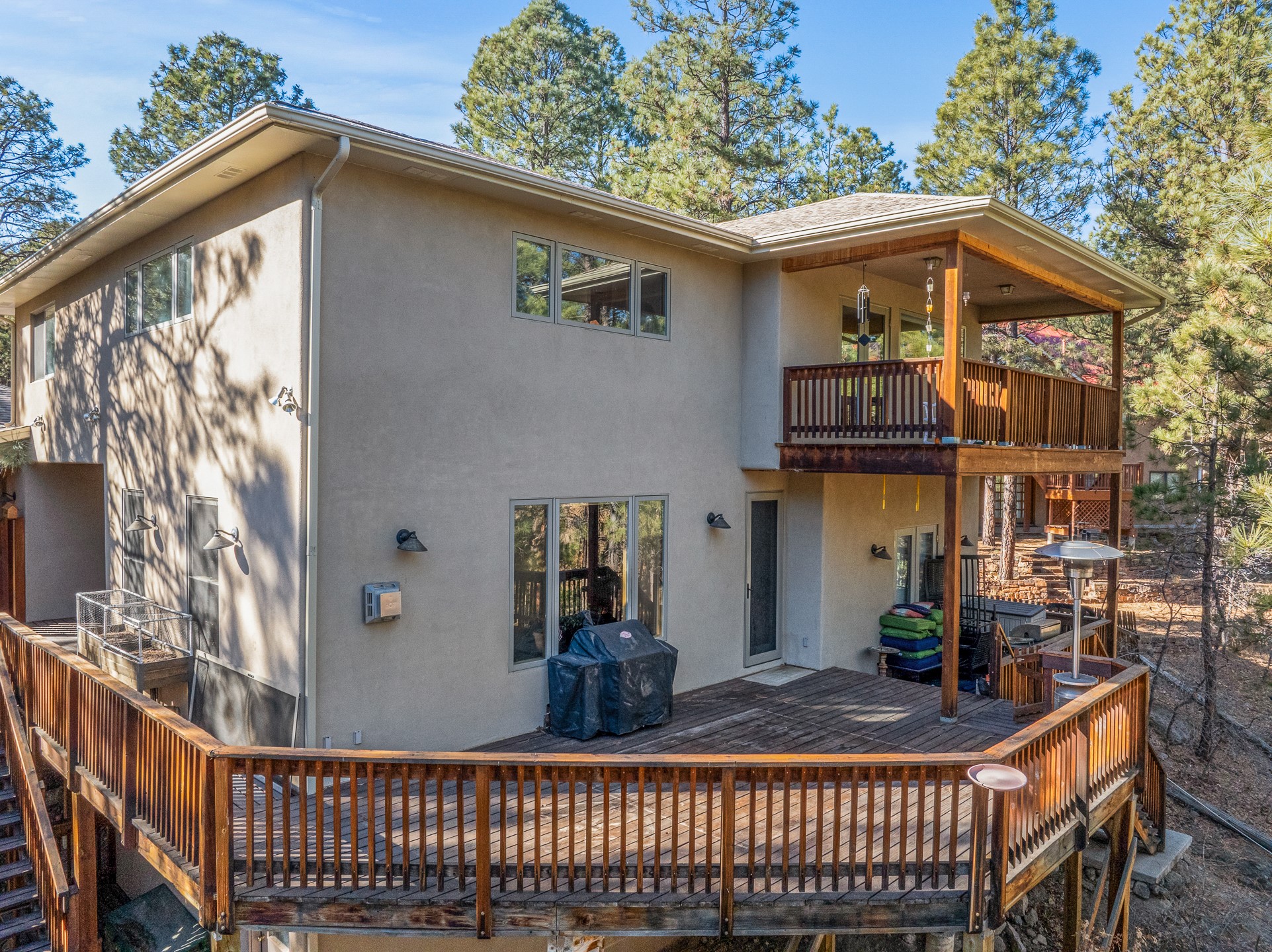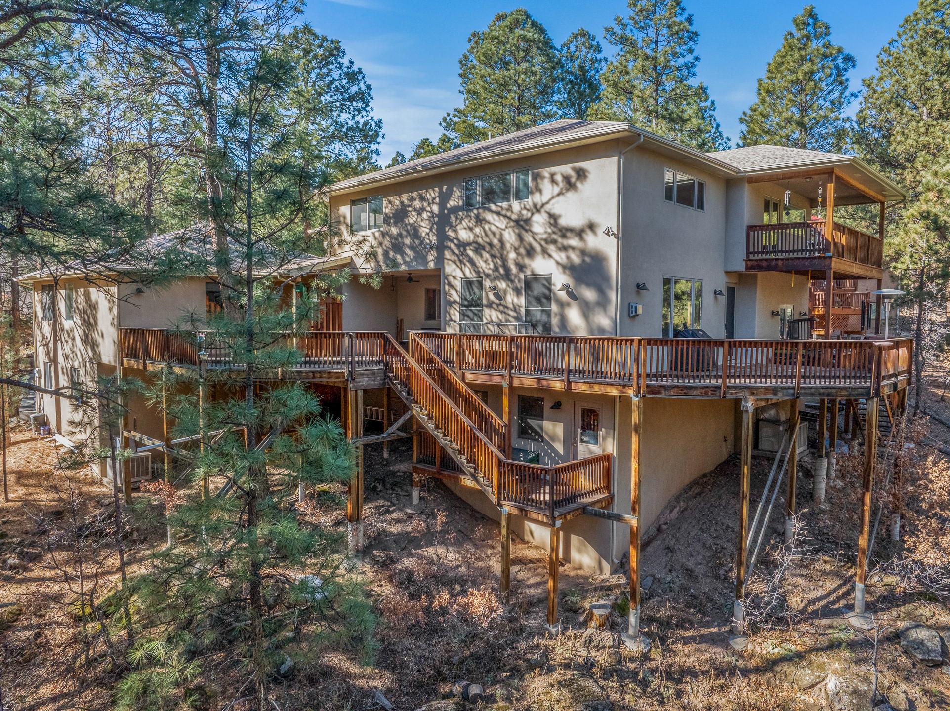 Spanning over 5,000 sq. ft., this 5-bedroom, 5-bathroom home in Ponderosa Estates offers unmatched space, privacy, and flexibility. Highlights include a chef's kitchen with a large island, cocktail bar, master suite with bath and private balcony, included is a 2-bedroom, 2-bathroom mother-in-law suite with income potential. Enjoy serene wooded views from multiple porches, a finished basement, and a prime location in a sought-after community. Nestled in the heart of the highly sought-after Ponderosa Estates, this home offers unparalleled living space, privacy, and versatility. Main Home Highlights: Expansive family kitchen with a large island, perfect for entertaining, seamlessly flowing into the main living room. Additional second living room for flexible use. Private office with built-in bookshelves for working from home or quiet study time. A cocktail bar perfect for entertaining, the area includes a dedicated fridge for chilling beverages, countertops for mixing cocktails, and custom shelving to showcase your favorite spirits. A luxurious master suite featuring its own private balcony with a soaker tub overlooking serene wooded views. Mother-in-Law Suite: A separate 2-bedroom, 2-bathroom suite with full kitchen. Is ideal for hosting guests or as a rental property, with estimated potential income of $1,500-$1,700/month. Outdoor Living: Multiple porches designed to immerse you in the beauty of the private, wooded backyard. The perfect setting for morning coffee, evening relaxation, or birdwatching. Additional Highlights: Fully finished basement with multiple storage closets. Set on a large lot in a neighborhood where homes are rarely available. Ponderosa Estates is known for its peaceful charm and friendly community. Don't miss this unique opportunity to own a home that offers space, comfort, and versatility in one of the area's most desirable neighborhood.