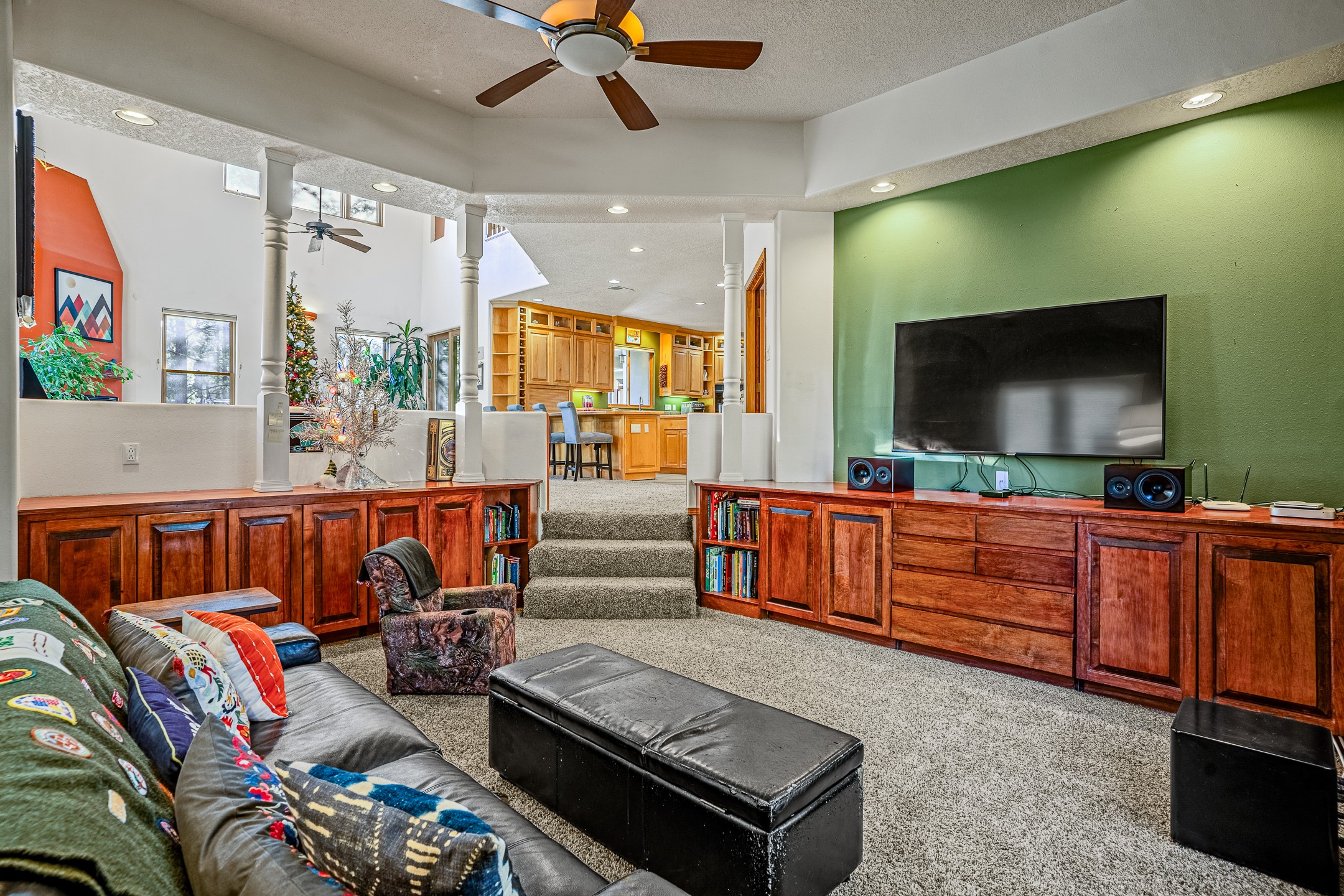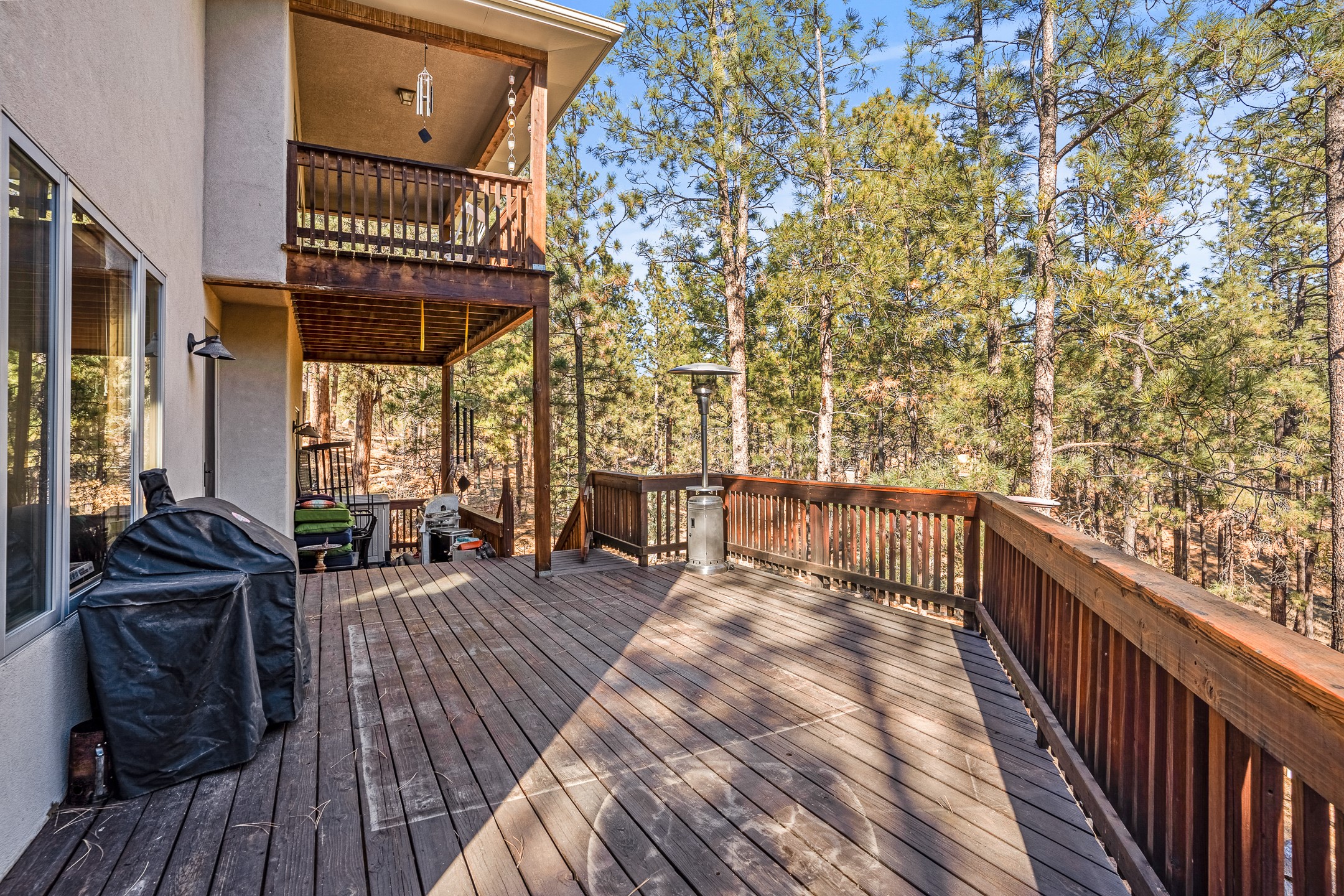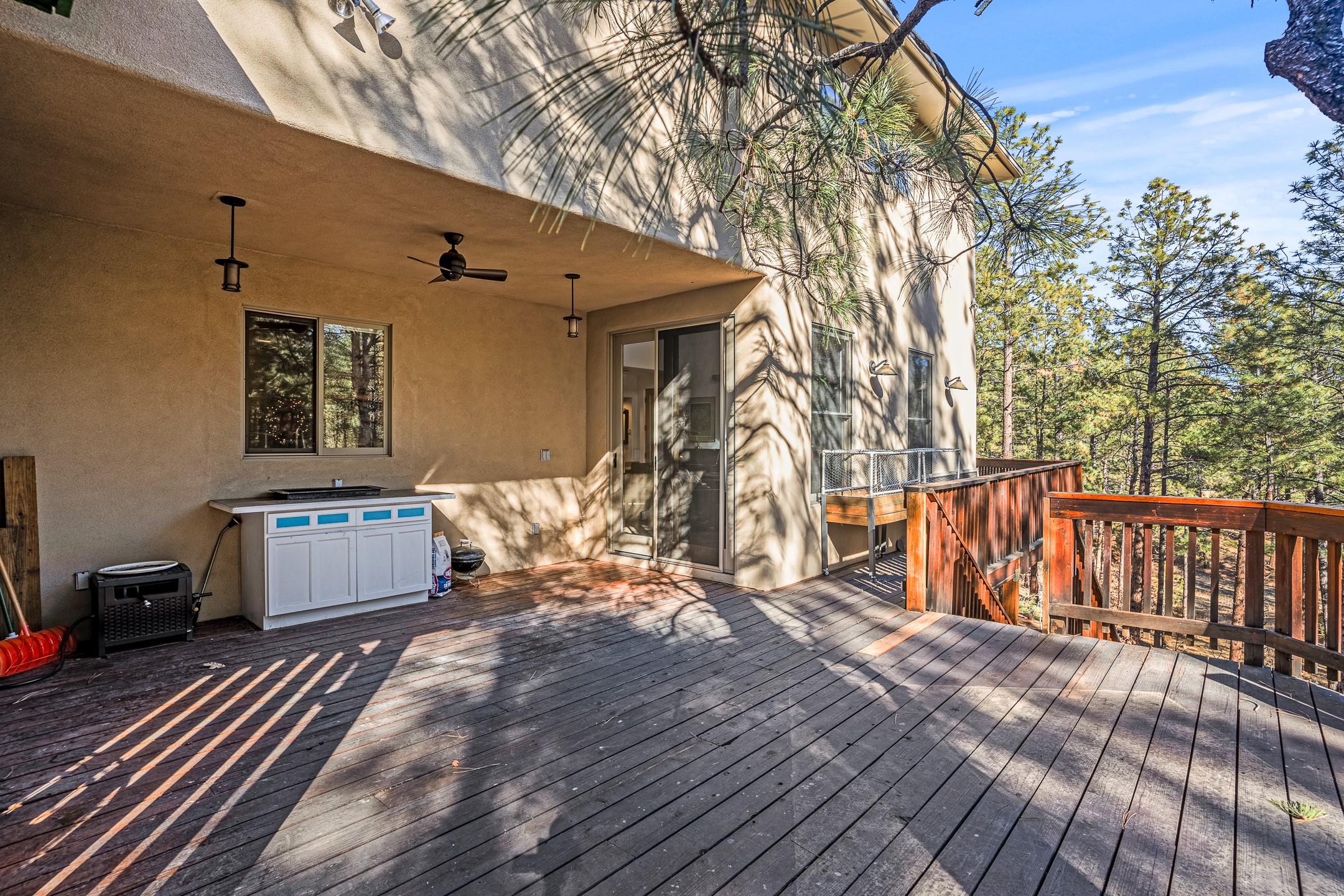 Spanning over 5,000 sq. ft., this 5-bedroom, 5-bathroom home in Ponderosa Estates offers unmatched space, privacy, and flexibility. Highlights include a chef's kitchen with a large island, cocktail bar, master suite with bath and private balcony, included is a 2-bedroom, 2-bathroom mother-in-law suite with income potential. Enjoy serene wooded views from multiple porches, a finished basement, and a prime location in a sought-after community. Nestled in the heart of the highly sought-after Ponderosa Estates, this home offers unparalleled living space, privacy, and versatility. Main Home Highlights: Expansive family kitchen with a large island, perfect for entertaining, seamlessly flowing into the main living room. Additional second living room for flexible use. Private office with built-in bookshelves for working from home or quiet study time. A cocktail bar perfect for entertaining, the area includes a dedicated fridge for chilling beverages, countertops for mixing cocktails, and custom shelving to showcase your favorite spirits. A luxurious master suite featuring its own private balcony with a soaker tub overlooking serene wooded views. Mother-in-Law Suite: A separate 2-bedroom, 2-bathroom suite with full kitchen. Is ideal for hosting guests or as a rental property, with estimated potential income of $1,500-$1,700/month. Outdoor Living: Multiple porches designed to immerse you in the beauty of the private, wooded backyard. The perfect setting for morning coffee, evening relaxation, or birdwatching. Additional Highlights: Fully finished basement with multiple storage closets. Set on a large lot in a neighborhood where homes are rarely available. Ponderosa Estates is known for its peaceful charm and friendly community. Don't miss this unique opportunity to own a home that offers space, comfort, and versatility in one of the area's most desirable neighborhood.