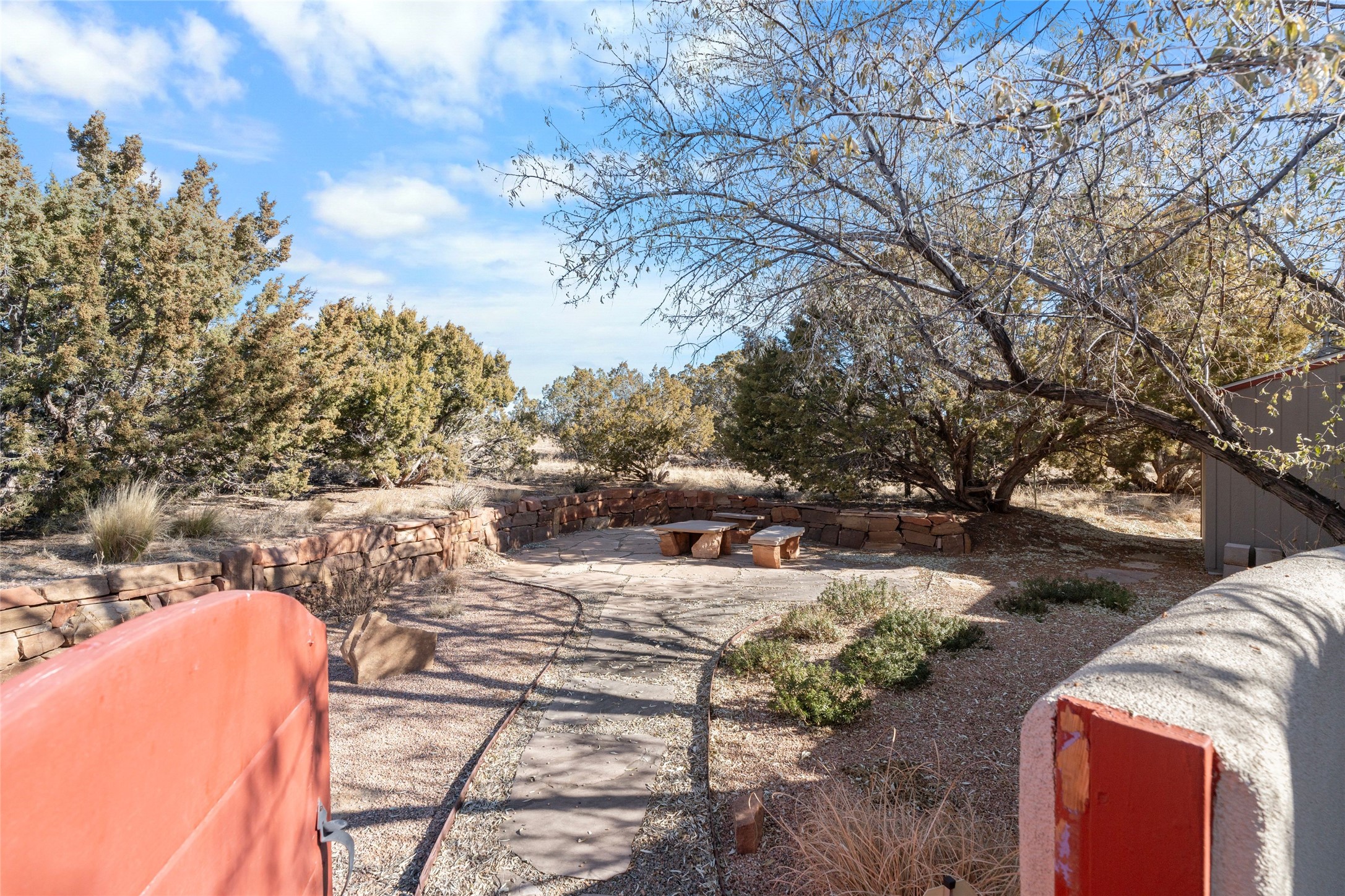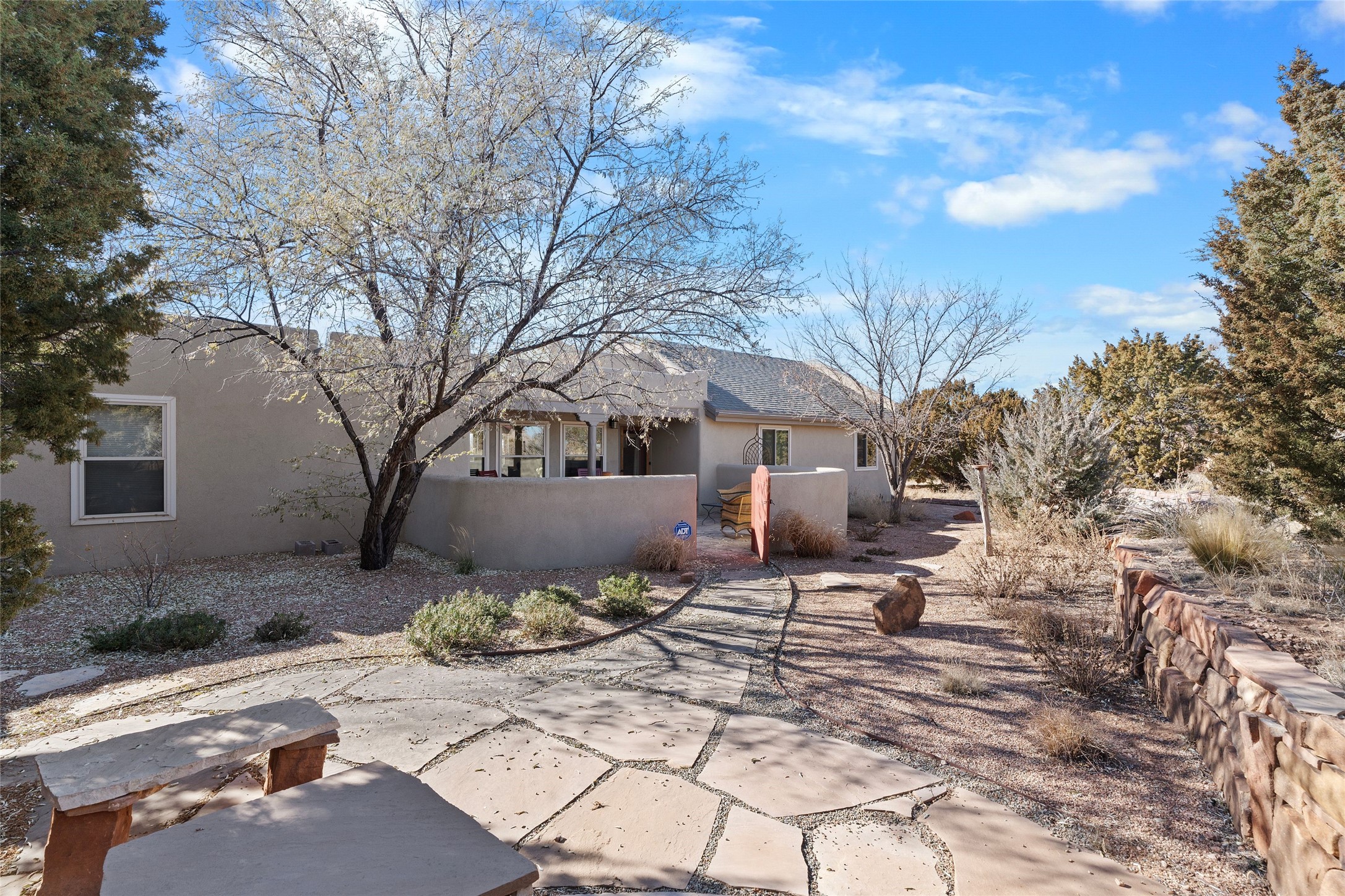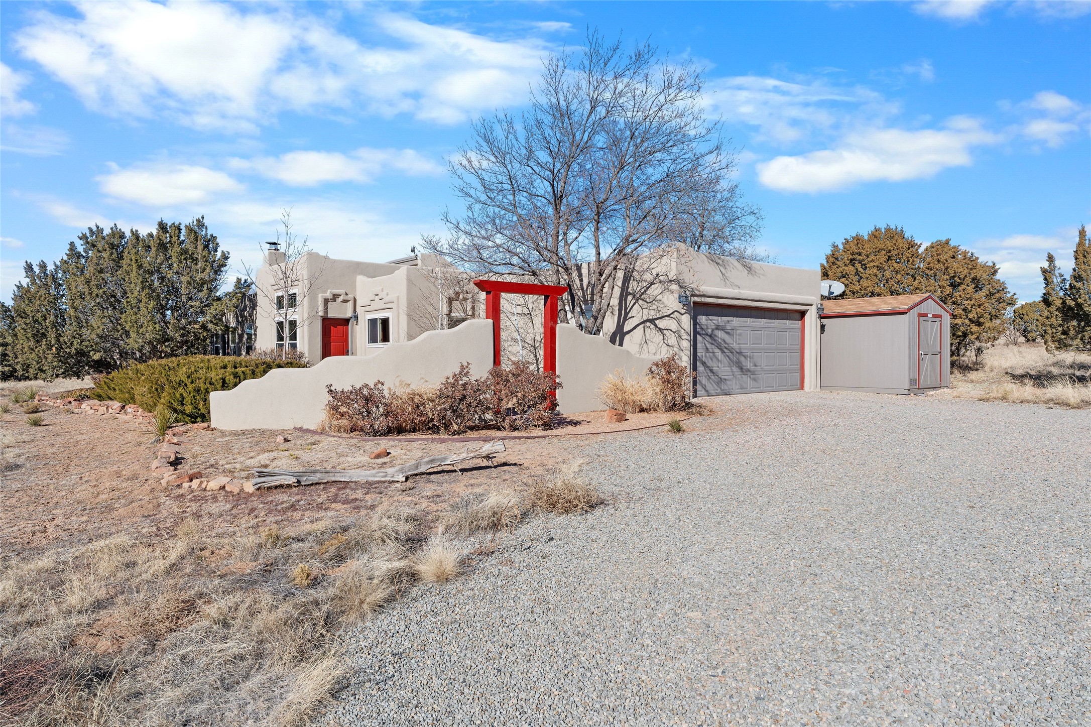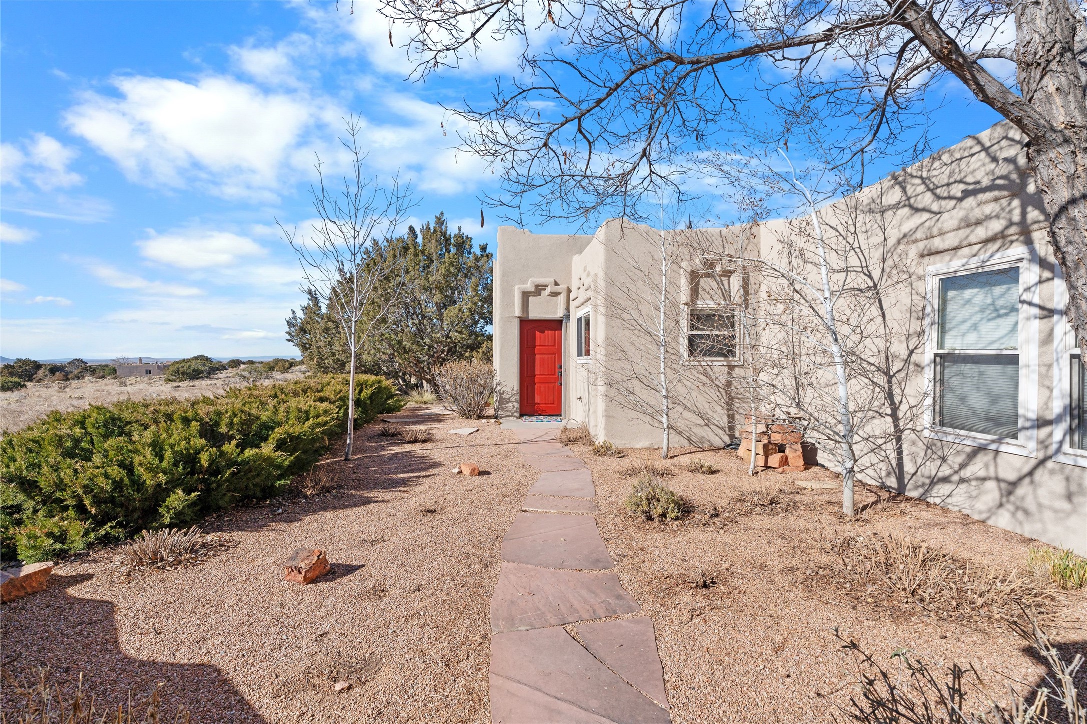 Upon entry through the red gate there is a lovely courtyard lined with flowers and native plants and the house will enchant you the minute you walk through the door. Upon entering you will find a light filled, open kitchen/living/dining with a kiva fireplace, beams and views to the southwest. There are three bedrooms and two updated bathrooms as well as an enchanting walled rear courtyard with a sheltering portal that is perfect for entertaining. Also included is a two-car garage and storage shed. This house has been beautifully maintained over the years. Located on the west side of El Dorado yet close to shopping centers, school, park, library, walking paths and El Dorado amenities. This Jewel Box is not to be missed!