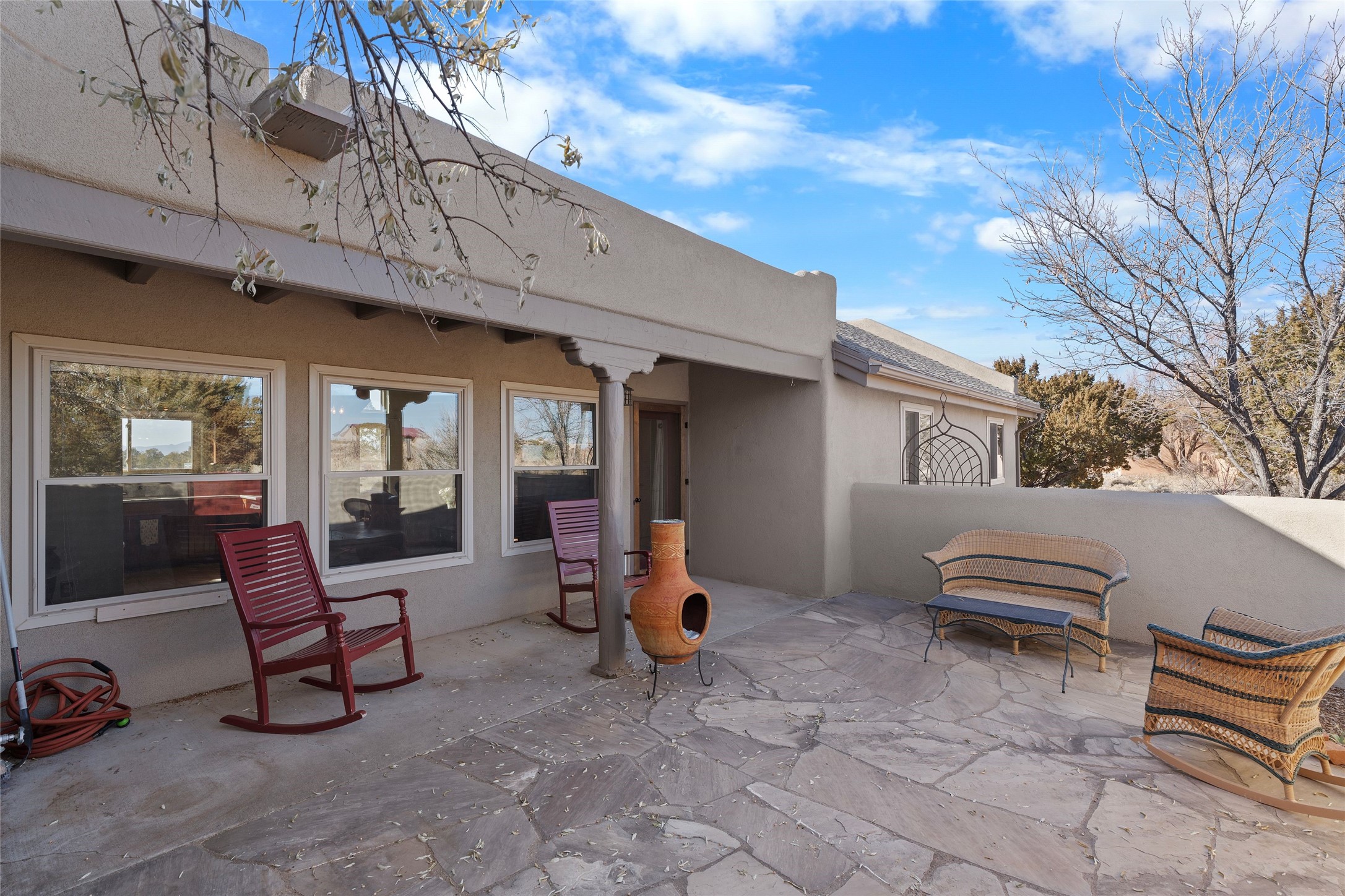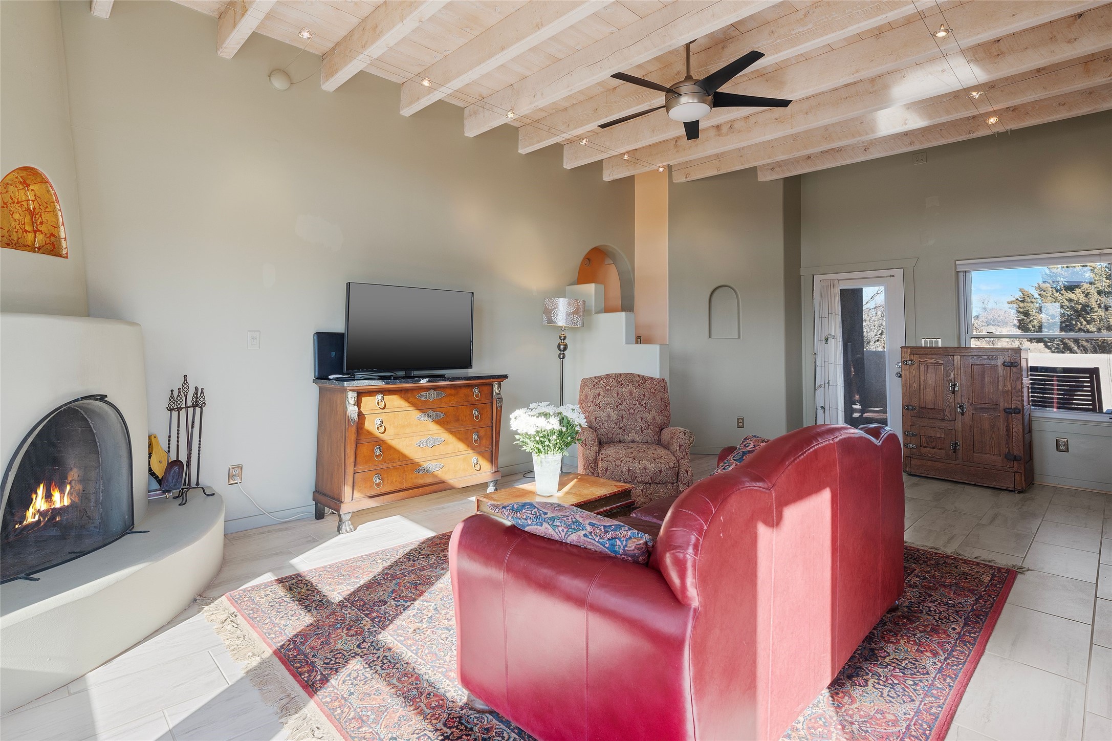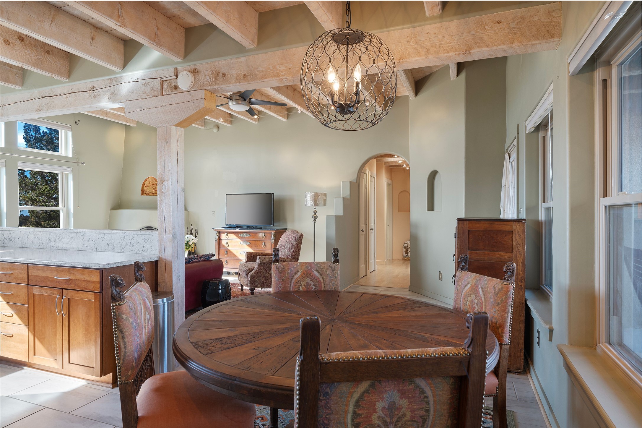 Upon entry through the red gate there is a lovely courtyard lined with flowers and native plants and the house will enchant you the minute you walk through the door. Upon entering you will find a light filled, open kitchen/living/dining with a kiva fireplace, beams and views to the southwest. There are three bedrooms and two updated bathrooms as well as an enchanting walled rear courtyard with a sheltering portal that is perfect for entertaining. Also included is a two-car garage and storage shed. This house has been beautifully maintained over the years. Located on the west side of El Dorado yet close to shopping centers, school, park, library, walking paths and El Dorado amenities. This Jewel Box is not to be missed!
