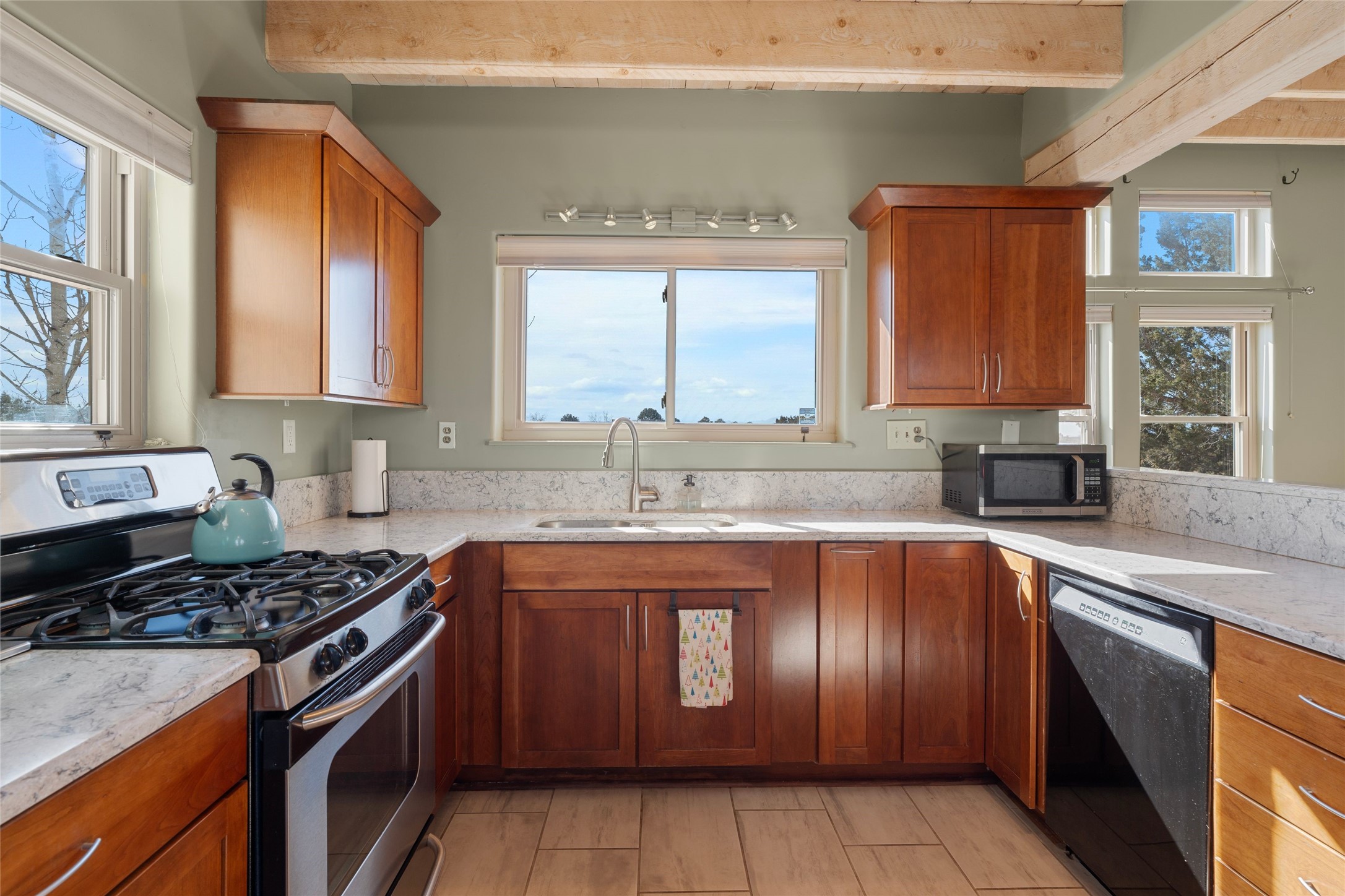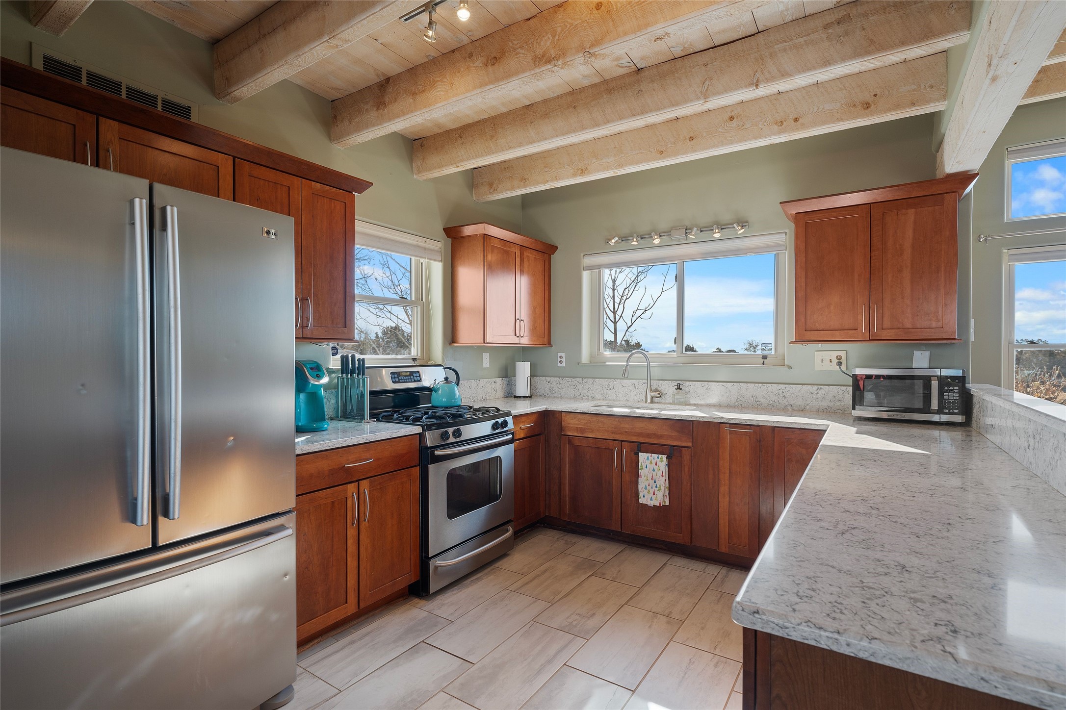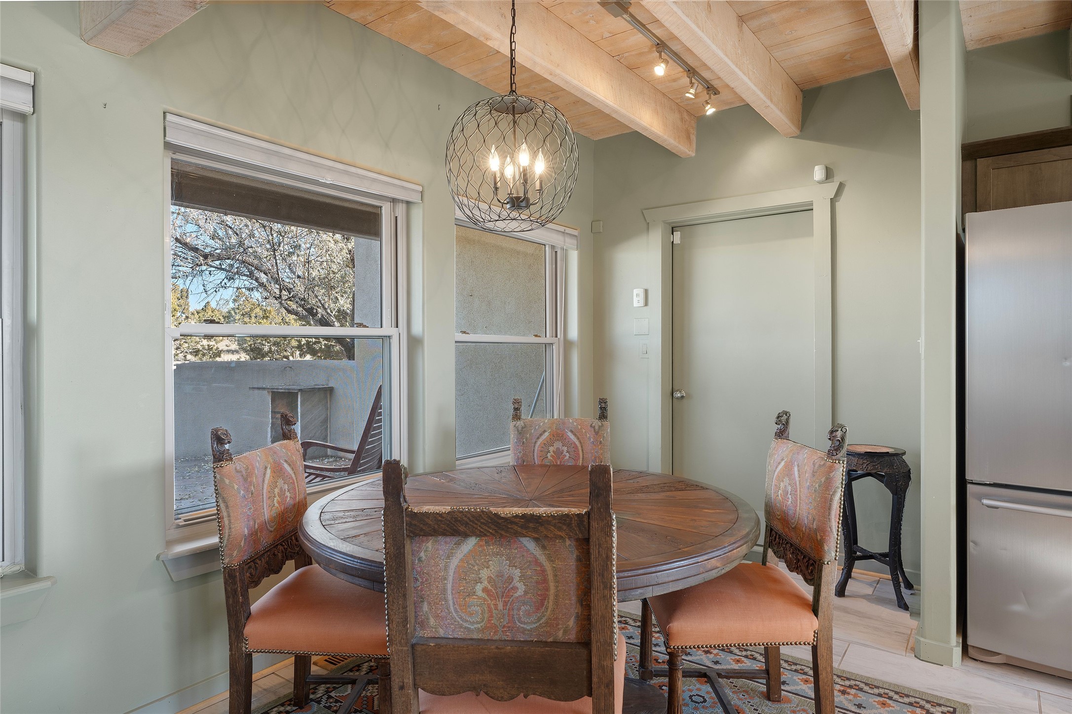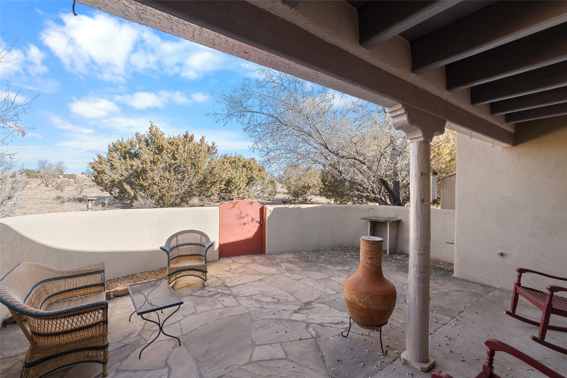 Upon entry through the red gate there is a lovely courtyard lined with flowers and native plants and the house will enchant you the minute you walk through the door. Upon entering you will find a light filled, open kitchen/living/dining with a kiva fireplace, beams and views to the southwest. There are three bedrooms and two updated bathrooms as well as an enchanting walled rear courtyard with a sheltering portal that is perfect for entertaining. Also included is a two-car garage and storage shed. This house has been beautifully maintained over the years. Located on the west side of El Dorado yet close to shopping centers, school, park, library, walking paths and El Dorado amenities. This Jewel Box is not to be missed!