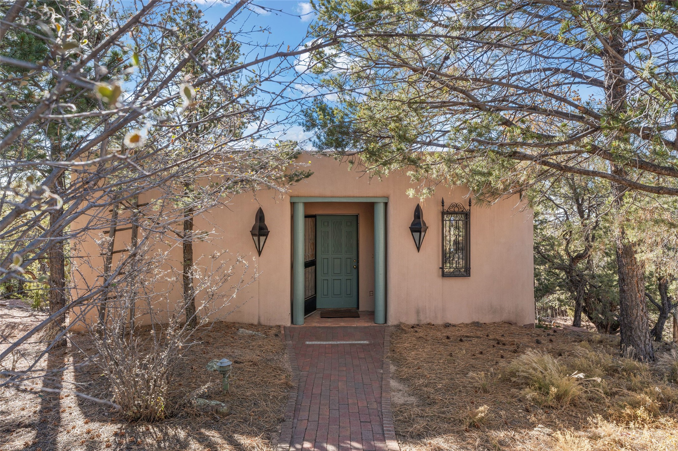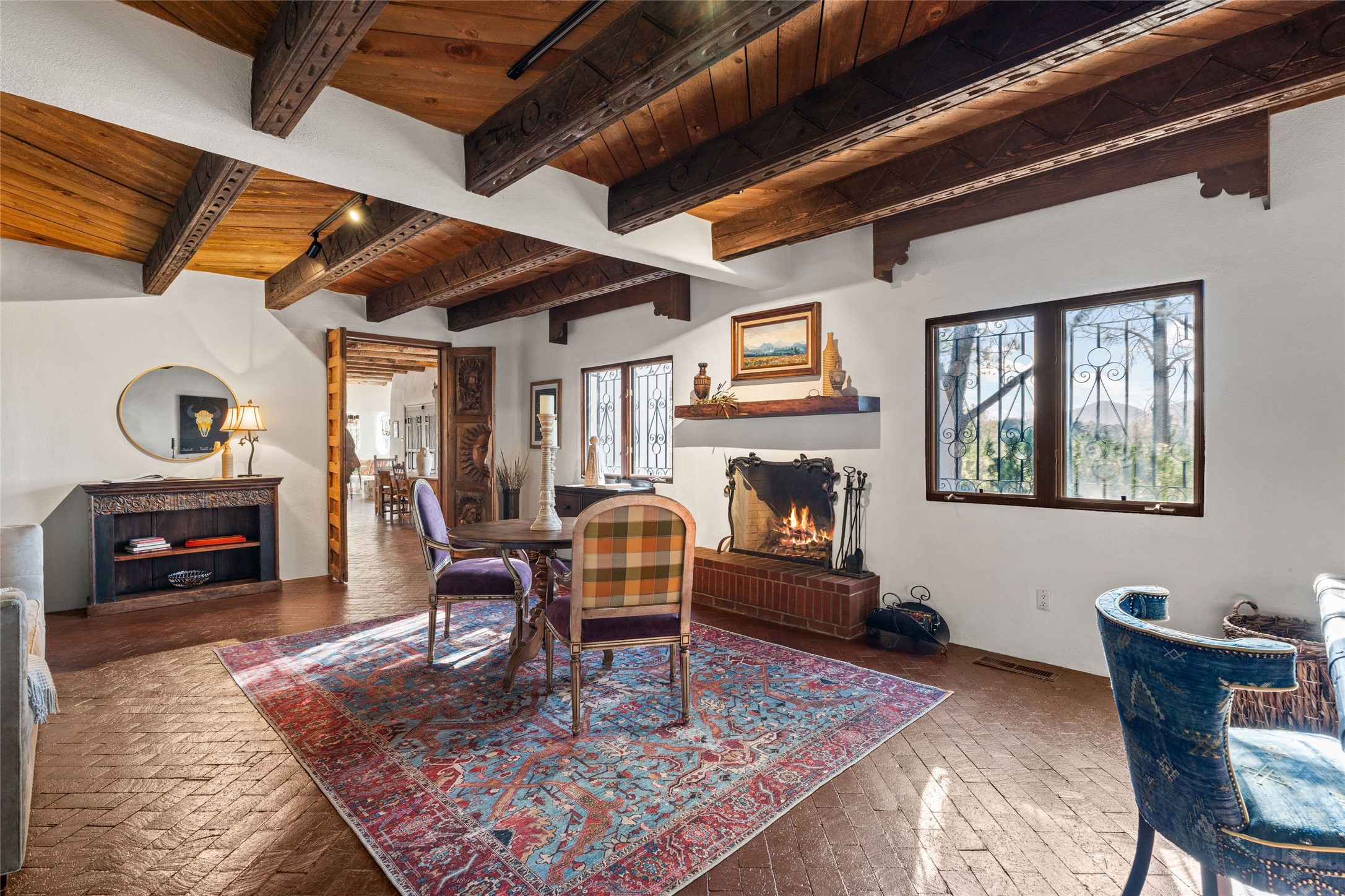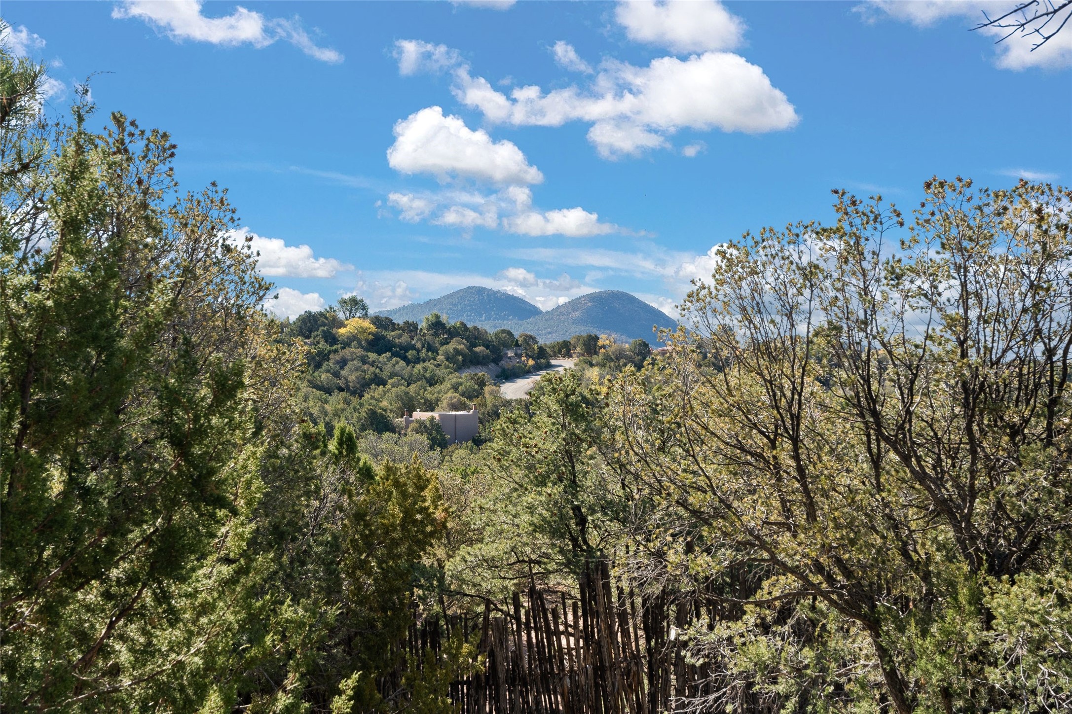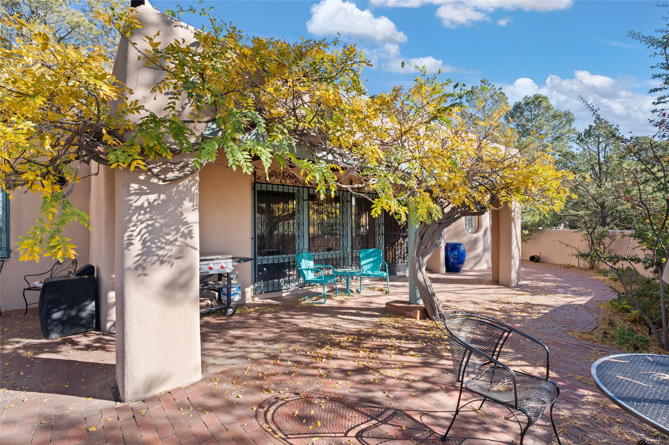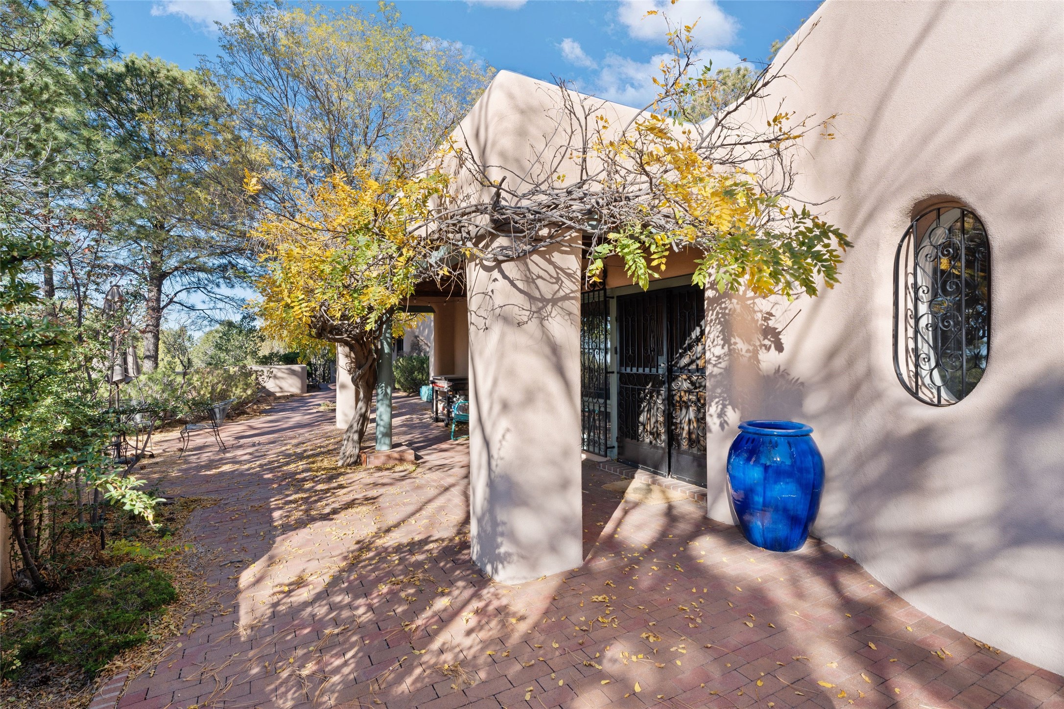 PAUSE and take a moment to step back in time. To a time when life was slower and craftsmanship was the hallmark of fine estates.This elegant main house and guest house are located on a lush acre in the City of Santa Fe, on a private well with the option of City water. Set in scenic surroundings, there are hiking, biking and skiing amenities nearby.Built in 1979, the main house is single level, with spacious living areas, an open-plan kitchen and circular breakfast nook. The handsome living/dining room accesses patios that run the full length of the house. The secluded principal bedroom suite, with private bathroom and dressing area, is situated at the end of a long art gallery. The large library with fireplace is adjacent to the living room and can be configured with a daybed to serve as a second bedroom.Savor the details of this elegant, romantic home: antique, hand-carved doors; exquisite ceilings with vigas, beams and stamped, herringbone decking; imported Portuguese tiles, built-in bancos and display nichos; gleaming brick floors; and three fireplaces exhibiting artisanal, wrought iron screens.The detached, multi-purpose guest house, built in 1985, has also served as an art studio, private office and rental opportunity. Consisting of a large bedroom, living room with fireplace, studio area, bathroom and kitchenette, it has a fenced deck with stunning views to the Sun and Moon mountains.The entire property has remarkable panoramic vistas, sheltered gardens with mature landscaping that meanders to a meditation area, and extensive brick patios providing a superb entertainment venue.