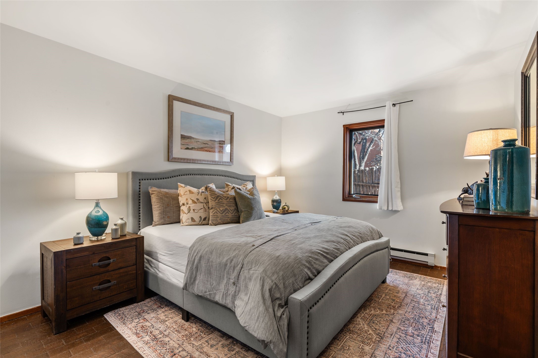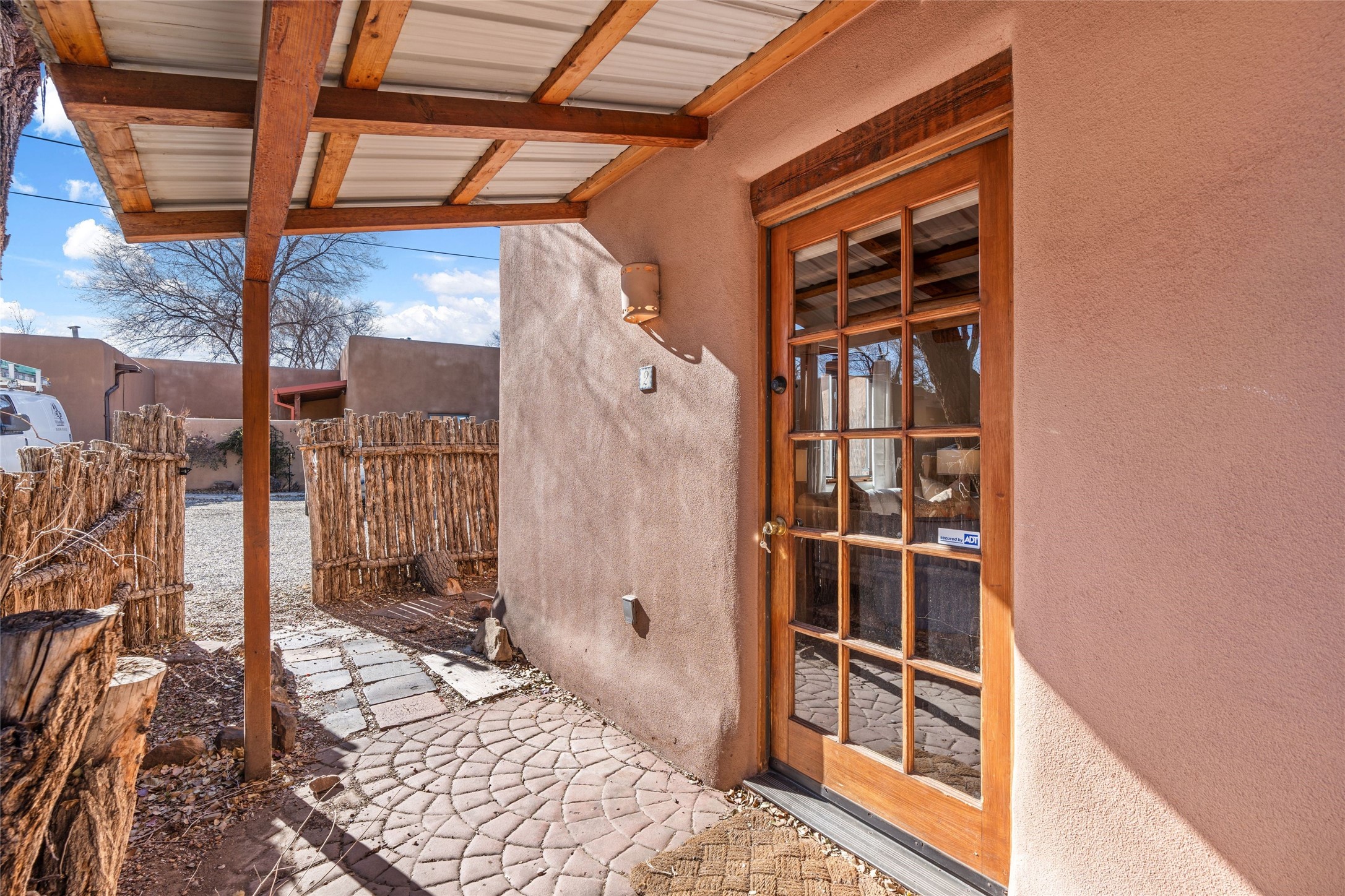 Experience the charm and convenience of this cozy one-bedroom, one-bathroom home located in a prime location, just steps away from vibrant restaurants, shopping, Santa Fe Railyard, and the downtown plaza. Built in 1987, this traditional-style gem features an open floor plan with approximately 589 sq. ft. of living space. Highlights include a kiva wood-burning fireplace in the living area, perfect for cozy evenings, and timeless brick floors that add character throughout. The property also offers designated parking for your convenience and a small fenced yard--a peaceful retreat in the heart of the city. This delightful home blends traditional charm with modern accessibility, making it a perfect sanctuary close to everything Santa Fe has to offer.