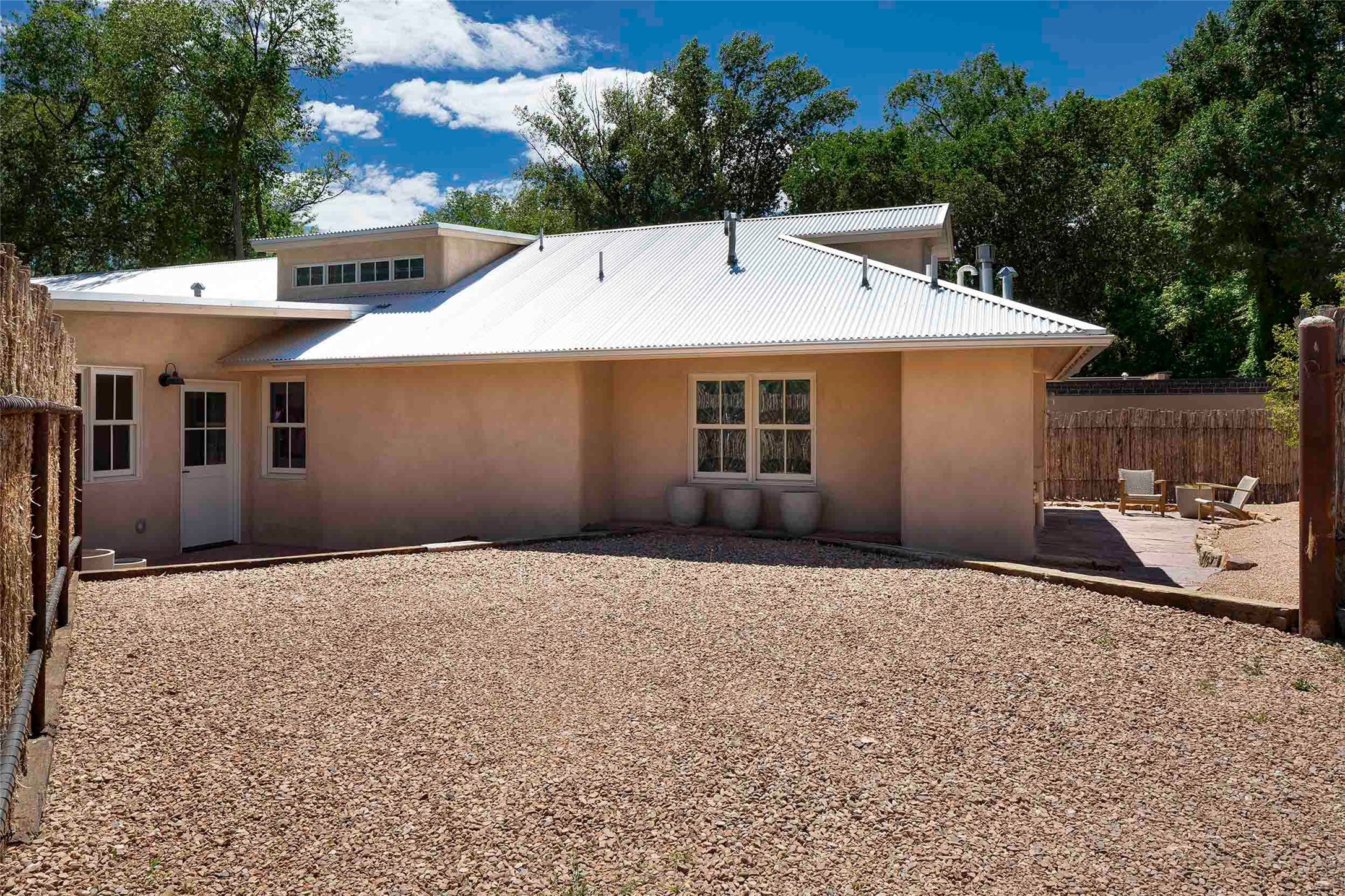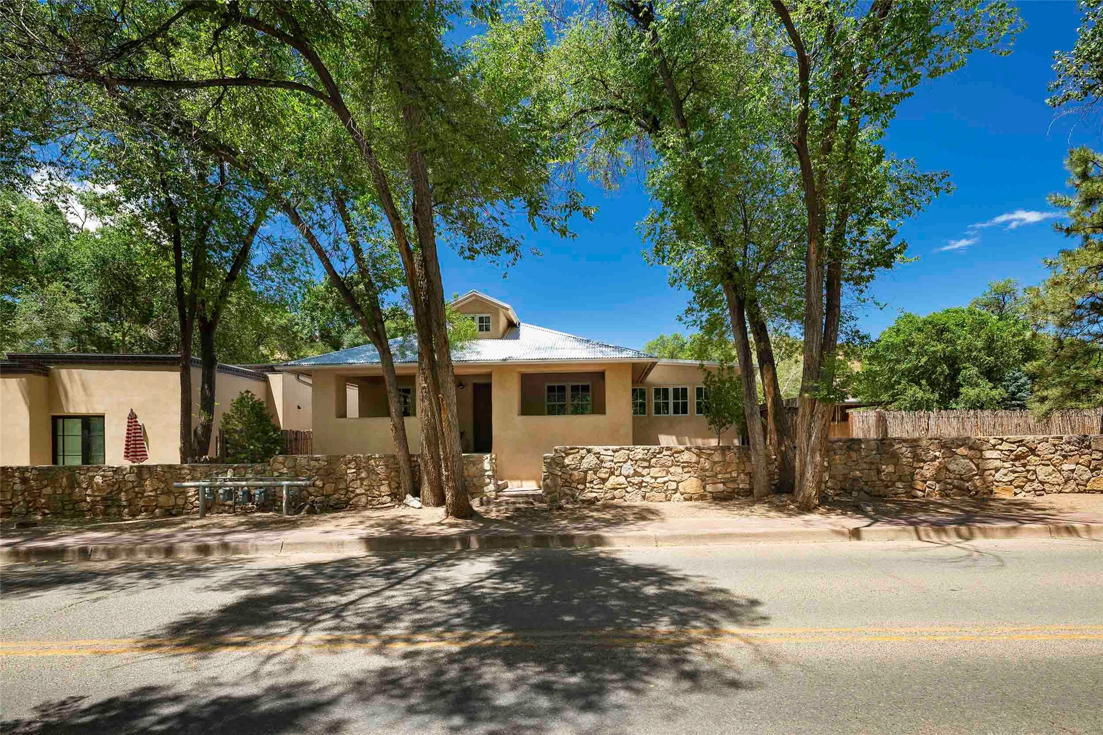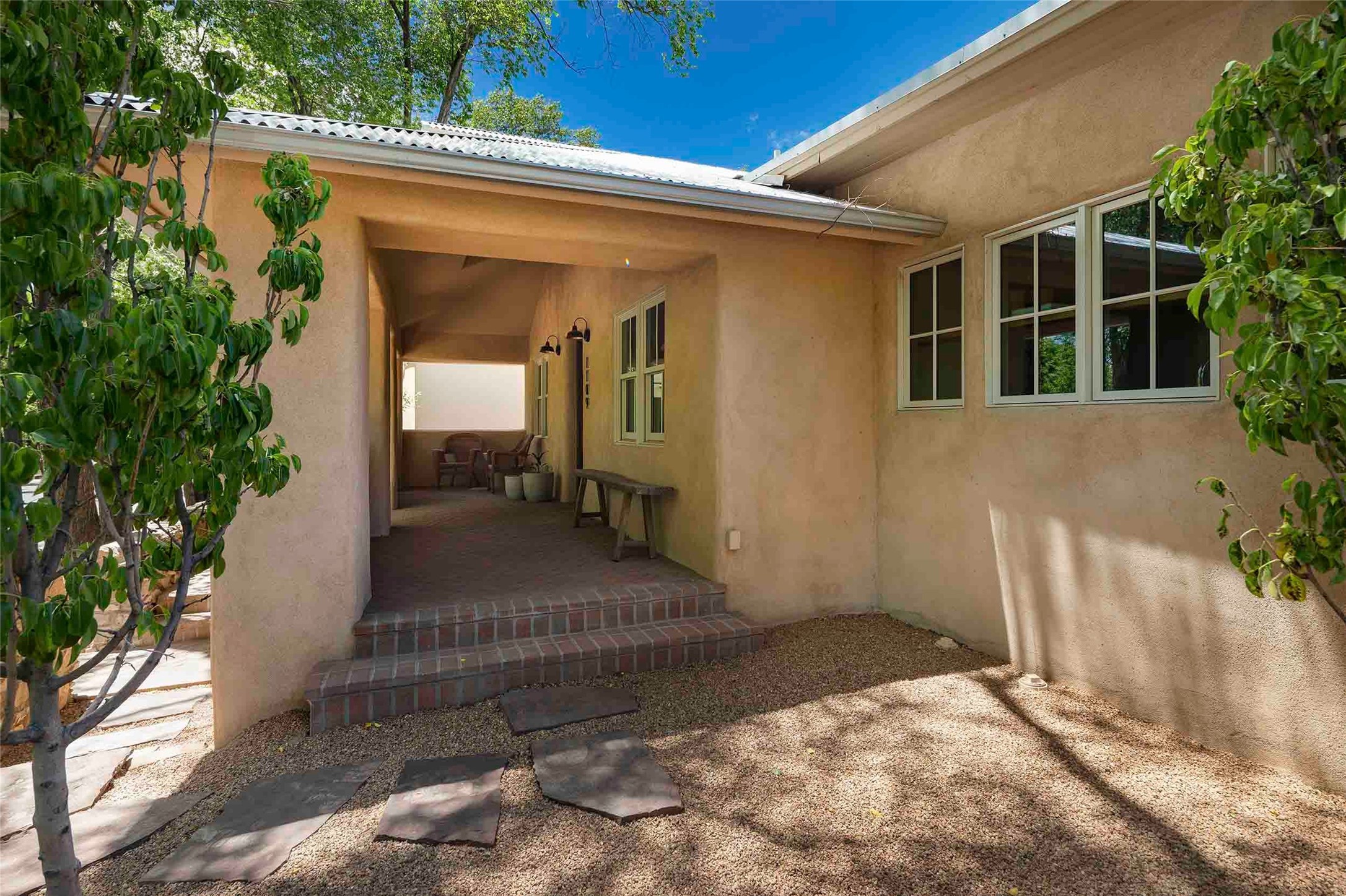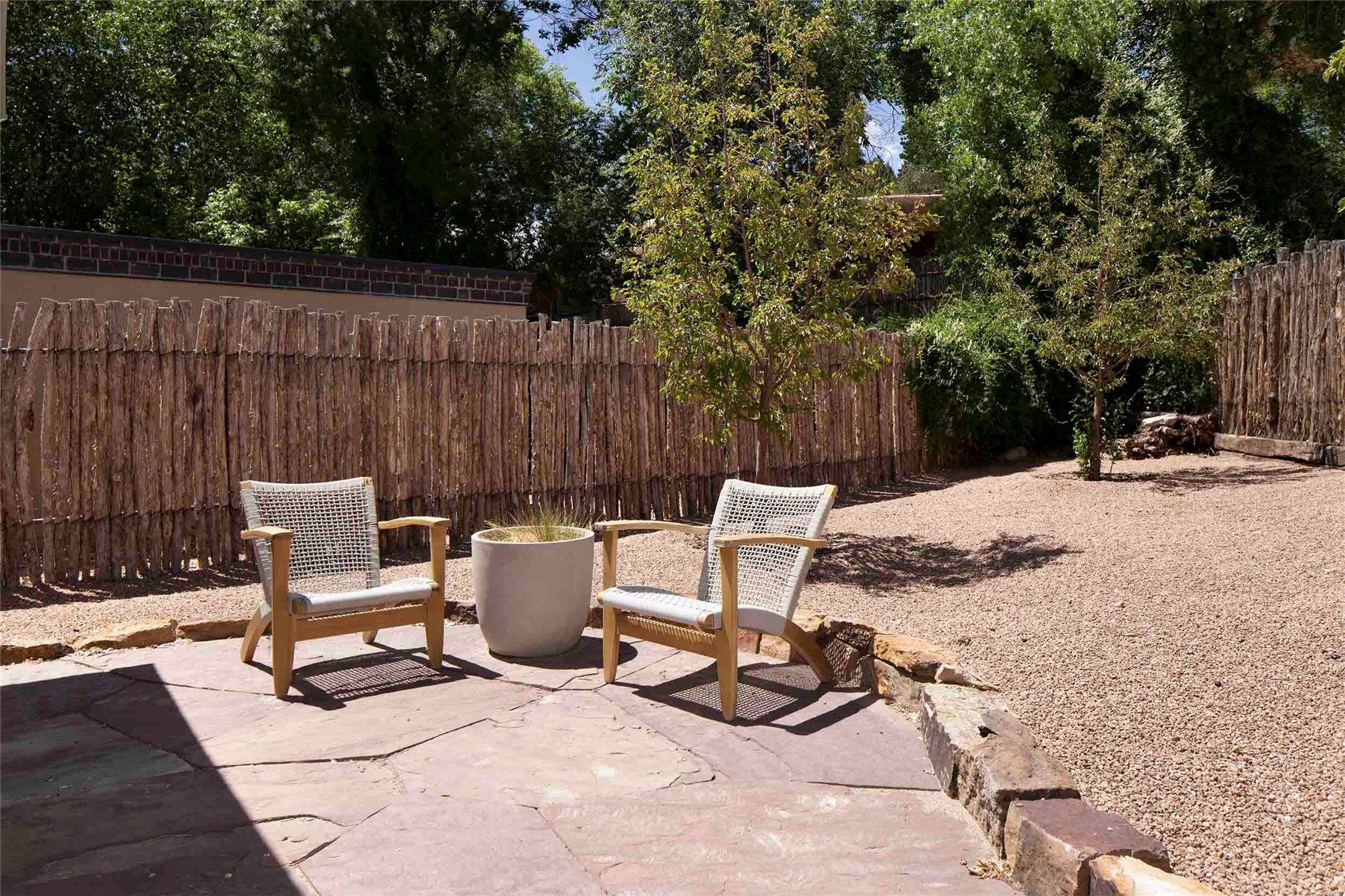 Welcome to 1109 E. Alameda, one of the most exciting homes on the Historic Eastside of Santa Fe. Walking distance to the world renown Canyon Road and the Santa Fe Plaza, this beautifully designed home by Cara Scarola of Woods Design Builders, excites and captivates with timeless historic architecture and exceptional luxury finishes. Located on one of most iconic streets in Santa Fe and sited directly across from Patrick Smith Park and the Santa Fe River, this craftsman style home exemplifies the unique blend of fresh, modern design with inherent warmth and sophistication. Ideal as a primary residence or the ultimate secondary home retreat, this newly completed masterpiece, impresses with the ultimate chef's kitchen complete with professional grade appliances, surround view windows, Carrara marble island, floating cabinetry, dual sinks, and a well-appointed butler's pantry, all of which perfectly opens to the spacious open-concept living room and dining room, with vaulted ceilings, gas fireplace and outdoor access. The tranquil primary suite delights with its own private patio, raised gas fireplace and a stunning spa-like bath with terra cotta tile flooring, custom wall tiles, dual vanities, free standing tub, walk-in shower and a large walk-in closet. Two additional guest bedrooms offer comfort and privacy, which share an extraordinary, spacious full bath with dual vanities, a claw-foot tub, a modern walk-in glass shower, designer finishes and a walk-in closet. Exceptional features include white oak flooring throughout the main living areas, square beam and vaulted ceilings, clerestory windows in the living room and hallway, soft natural light, a spacious laundry room and a front entrance mudroom with a utility sink. Parking includes two fenced, designated parking spaces. This newly rebuilt home is an absolute work of art, move-in ready and not to be missed! All furnishings are available for purchase on a separate bill of sale.
