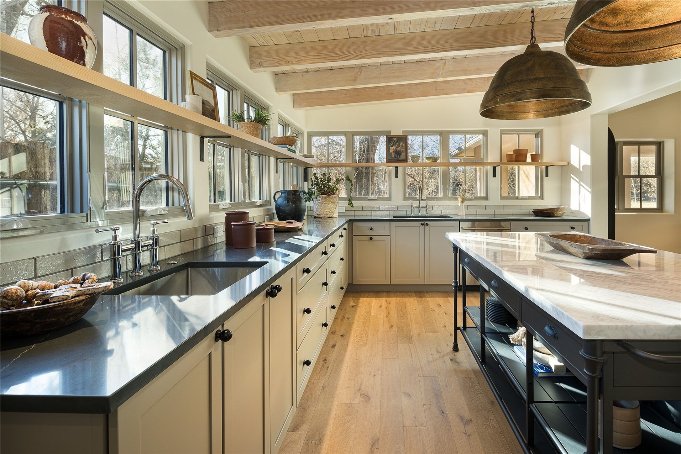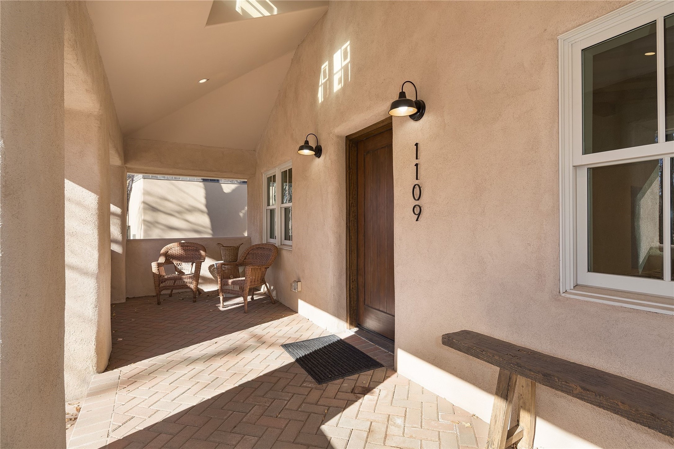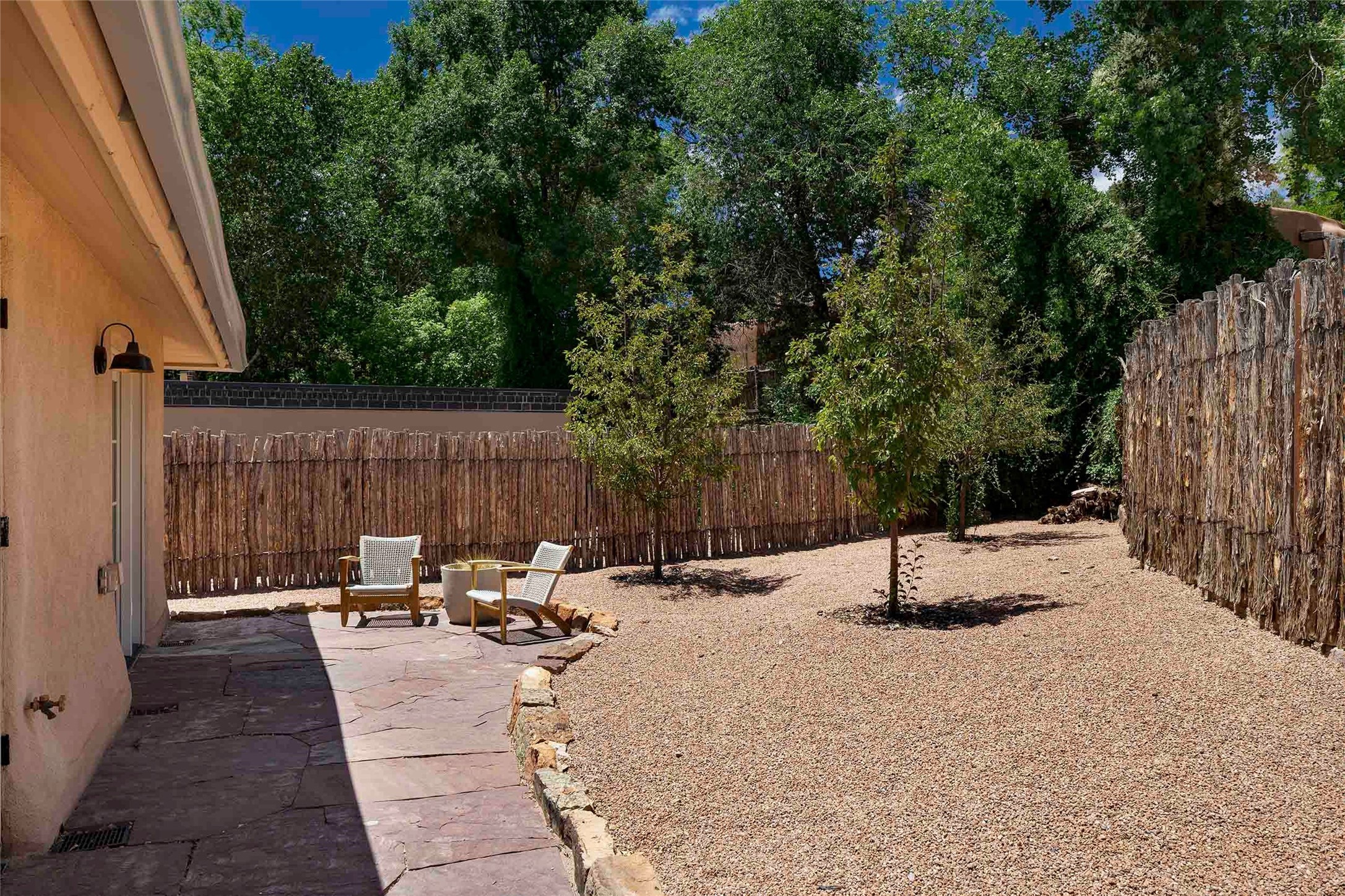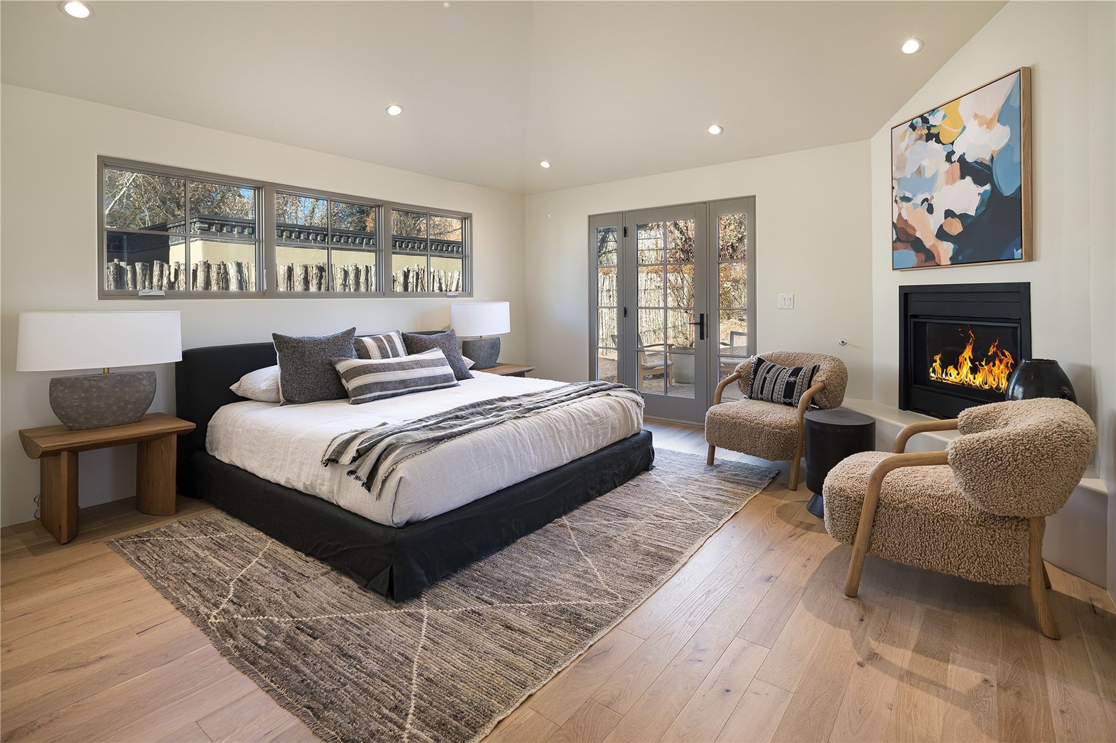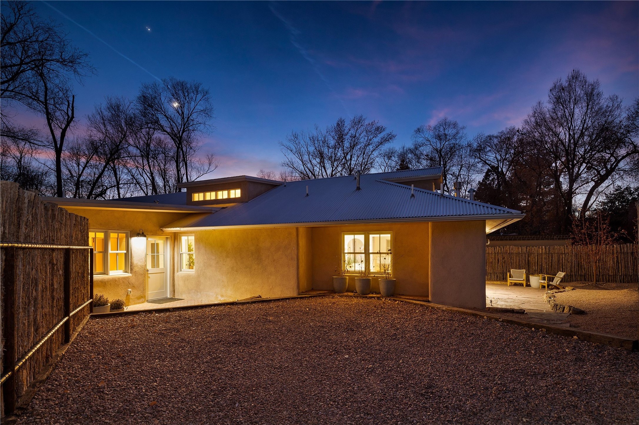 Welcome to 1109 E. Alameda, one of the most exciting homes on the Historic Eastside of Santa Fe. Walking distance to the world renown Canyon Road and the Santa Fe Plaza, this beautifully designed home by Cara Scarola of Woods Design Builders, excites and captivates with timeless historic architecture and exceptional luxury finishes. Located on one of most iconic streets in Santa Fe and sited directly across from Patrick Smith Park and the Santa Fe River, this craftsman style home exemplifies the unique blend of fresh, modern design with inherent warmth and sophistication. Ideal as a primary residence or the ultimate secondary home retreat, this newly completed masterpiece, impresses with the ultimate chef's kitchen complete with professional grade appliances, surround view windows, Carrara marble island, floating cabinetry, dual sinks, and a well-appointed butler's pantry, all of which perfectly opens to the spacious open-concept living room and dining room, with vaulted ceilings, gas fireplace and outdoor access. The tranquil primary suite delights with its own private patio, raised gas fireplace and a stunning spa-like bath with terra cotta tile flooring, custom wall tiles, dual vanities, free standing tub, walk-in shower and a large walk-in closet. Two additional guest bedrooms offer comfort and privacy, which share an extraordinary, spacious full bath with dual vanities, a claw-foot tub, a modern walk-in glass shower, designer finishes and a walk-in closet. Exceptional features include white oak flooring throughout the main living areas, square beam and vaulted ceilings, clerestory windows in the living room and hallway, soft natural light, a spacious laundry room and a front entrance mudroom with a utility sink. Parking includes two fenced, designated parking spaces. This newly rebuilt home is an absolute work of art, move-in ready and not to be missed! All furnishings are available for purchase on a separate bill of sale.
