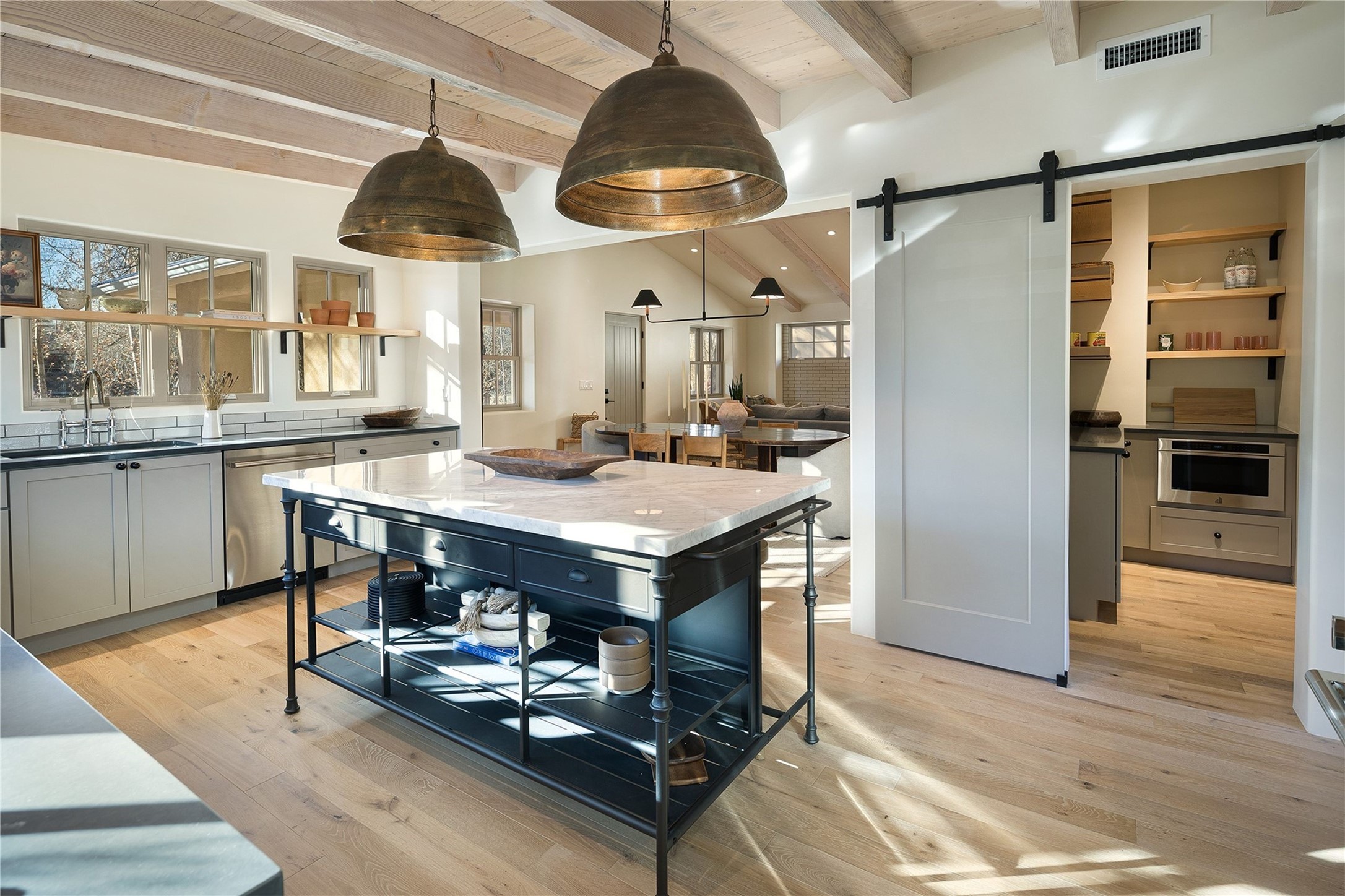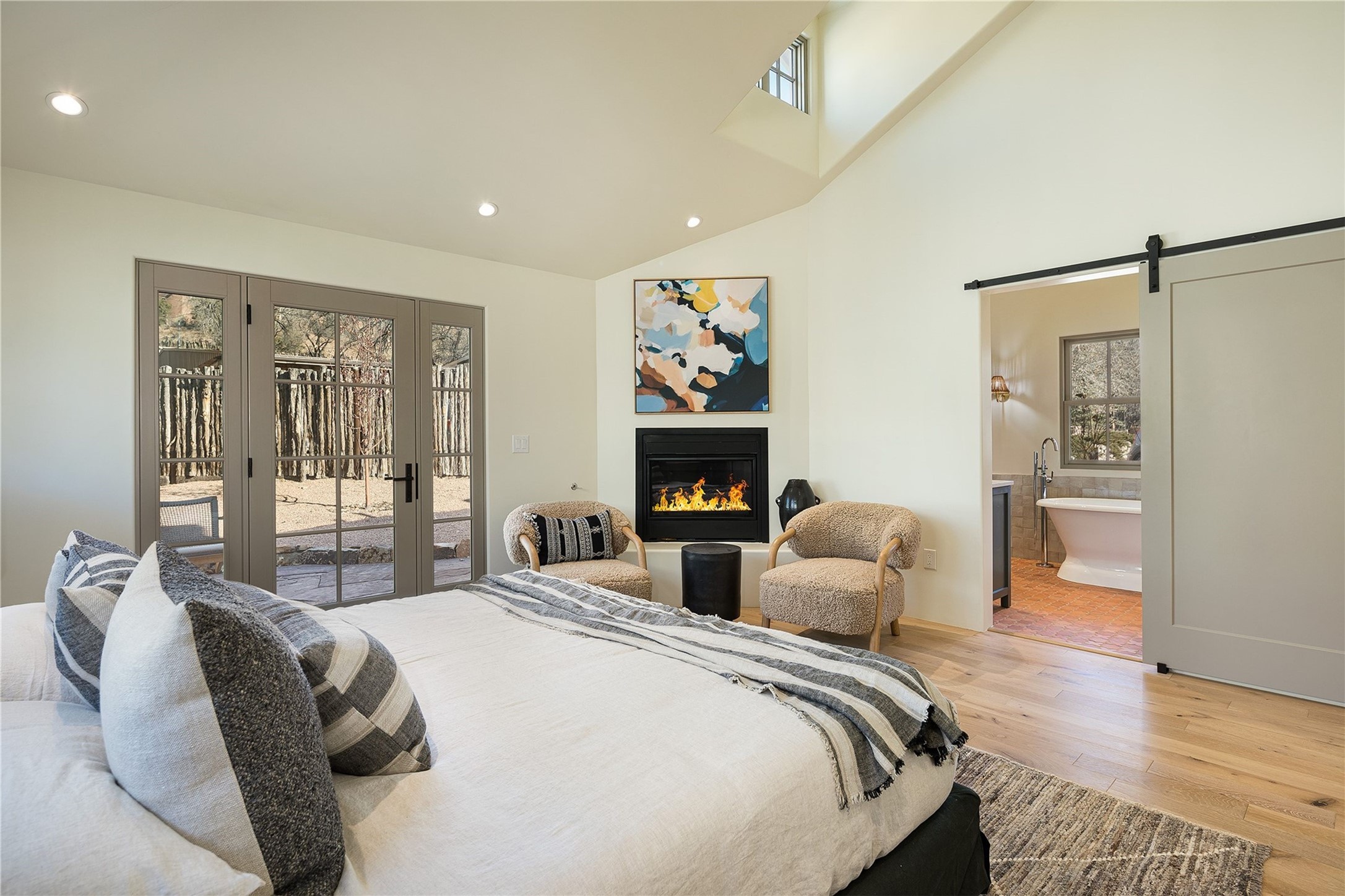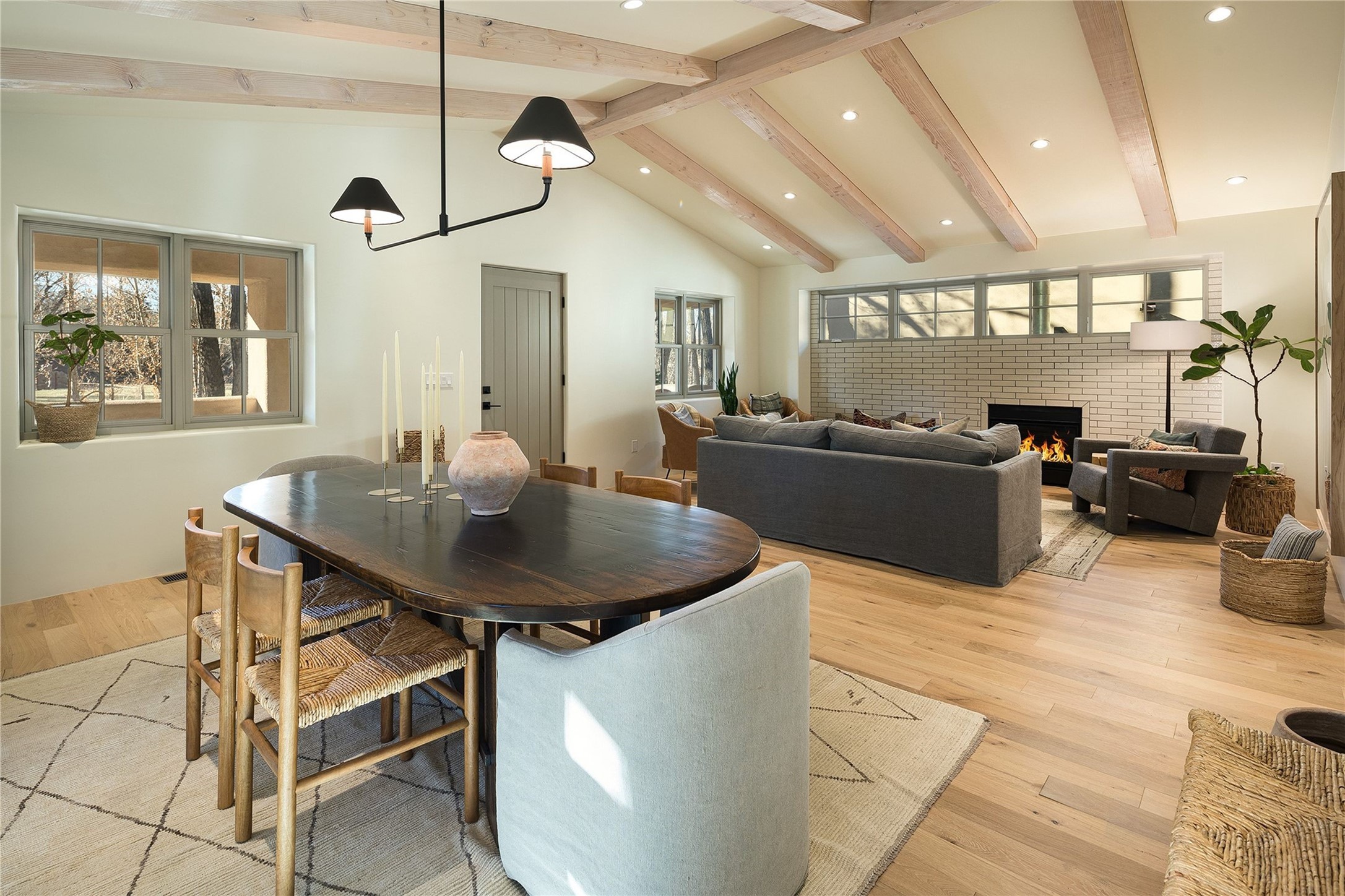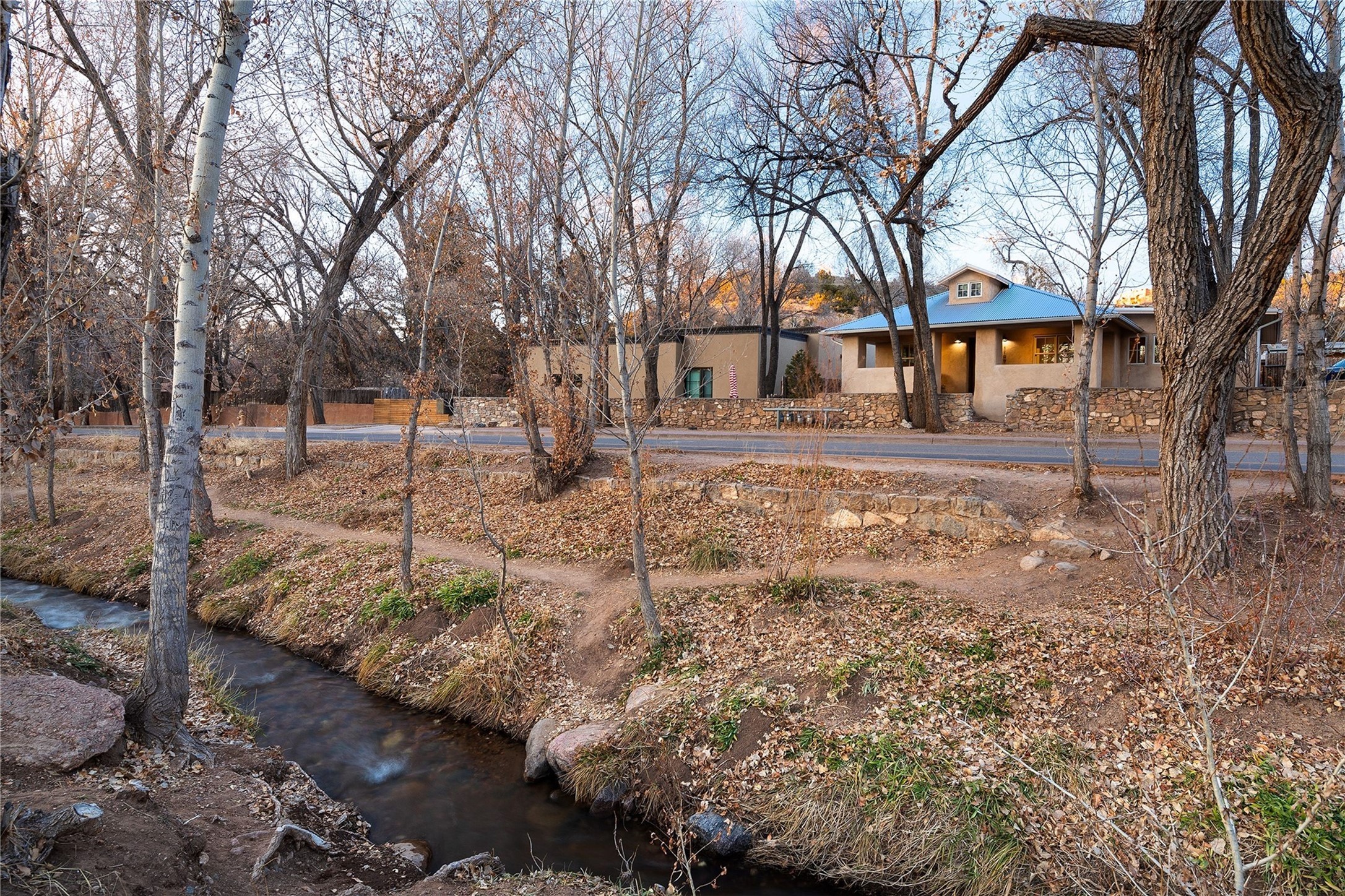 Welcome to 1109 E. Alameda, one of the most exciting homes on the Historic Eastside of Santa Fe. Walking distance to the world renown Canyon Road and the Santa Fe Plaza, this beautifully designed home by Cara Scarola of Woods Design Builders, excites and captivates with timeless historic architecture and exceptional luxury finishes. Located on one of most iconic streets in Santa Fe and sited directly across from Patrick Smith Park and the Santa Fe River, this craftsman style home exemplifies the unique blend of fresh, modern design with inherent warmth and sophistication. Ideal as a primary residence or the ultimate secondary home retreat, this newly completed masterpiece, impresses with the ultimate chef's kitchen complete with professional grade appliances, surround view windows, Carrara marble island, floating cabinetry, dual sinks, and a well-appointed butler's pantry, all of which perfectly opens to the spacious open-concept living room and dining room, with vaulted ceilings, gas fireplace and outdoor access. The tranquil primary suite delights with its own private patio, raised gas fireplace and a stunning spa-like bath with terra cotta tile flooring, custom wall tiles, dual vanities, free standing tub, walk-in shower and a large walk-in closet. Two additional guest bedrooms offer comfort and privacy, which share an extraordinary, spacious full bath with dual vanities, a claw-foot tub, a modern walk-in glass shower, designer finishes and a walk-in closet. Exceptional features include white oak flooring throughout the main living areas, square beam and vaulted ceilings, clerestory windows in the living room and hallway, soft natural light, a spacious laundry room and a front entrance mudroom with a utility sink. Parking includes two fenced, designated parking spaces. This newly rebuilt home is an absolute work of art, move-in ready and not to be missed! All furnishings are available for purchase on a separate bill of sale.