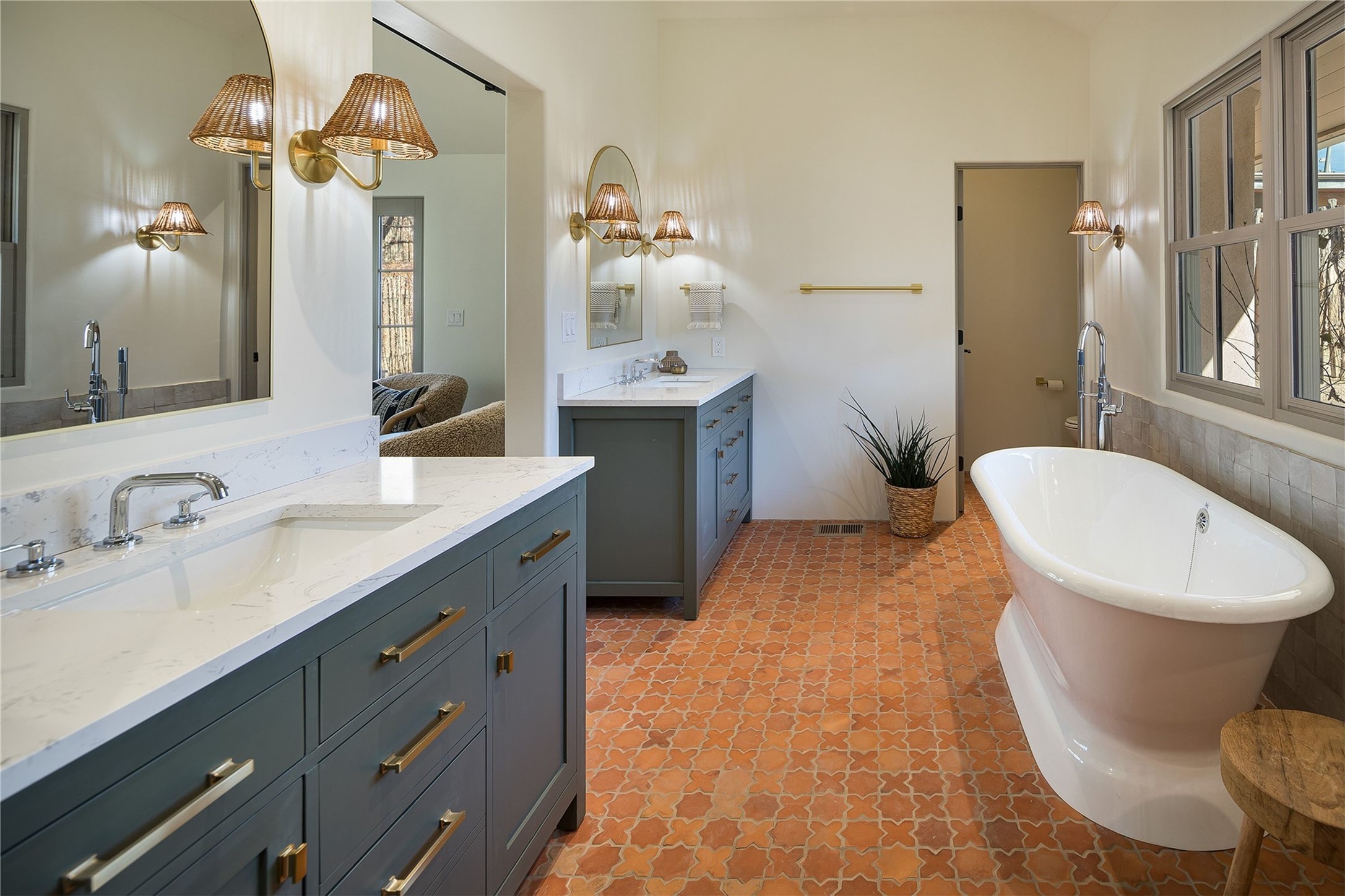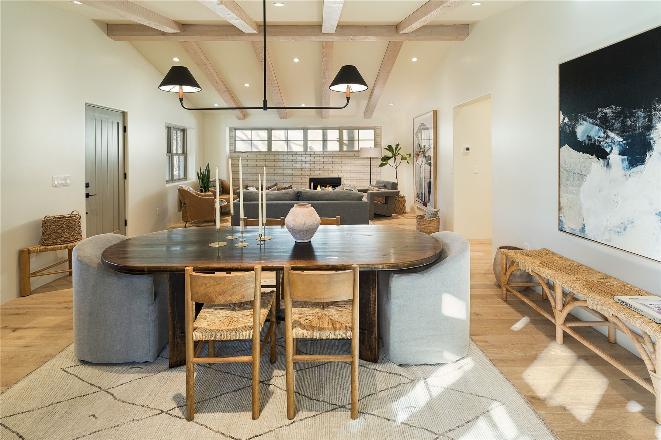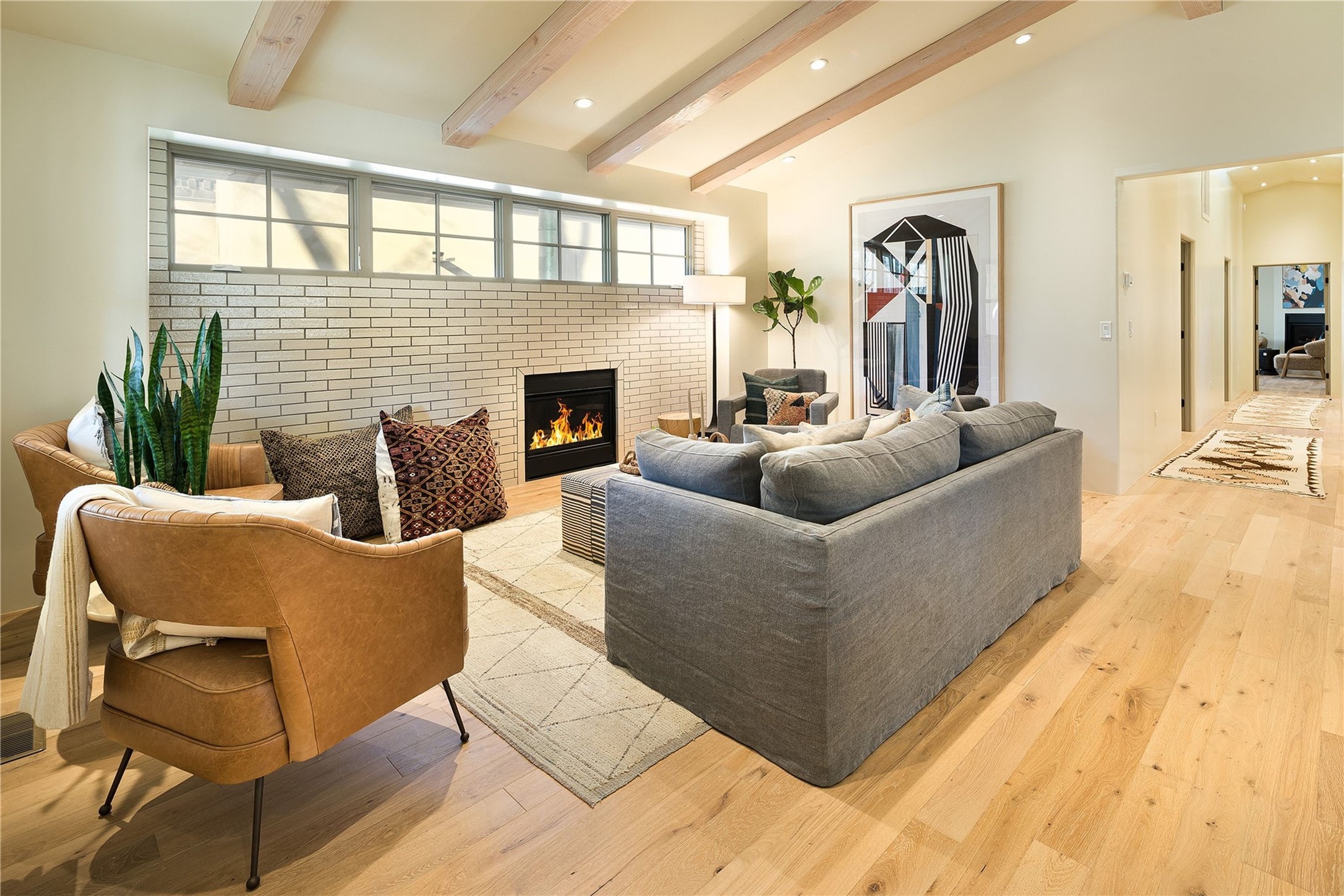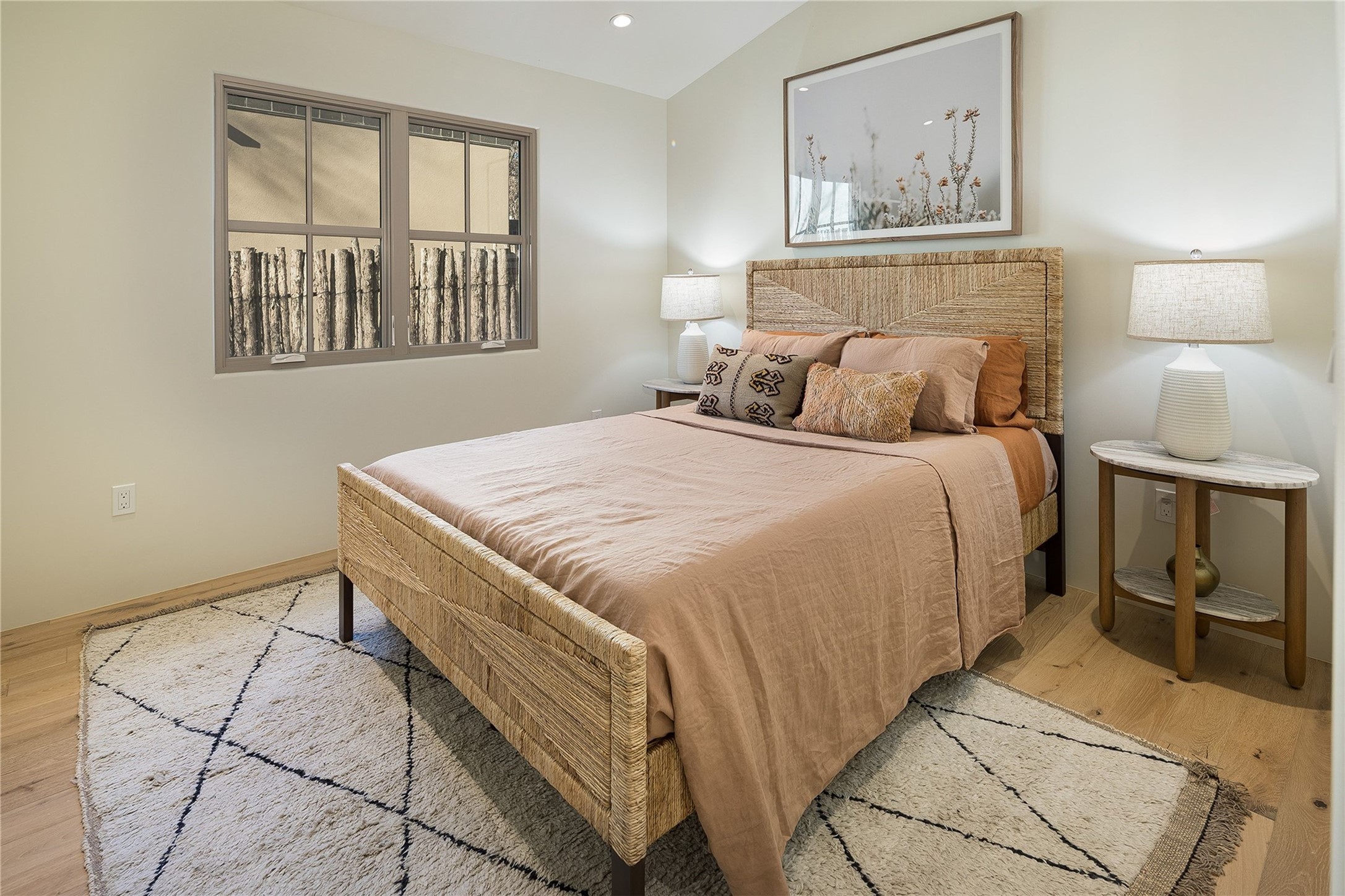 Welcome to 1109 E. Alameda, one of the most exciting homes on the Historic Eastside of Santa Fe. Walking distance to the world renown Canyon Road and the Santa Fe Plaza, this beautifully designed home by Cara Scarola of Woods Design Builders, excites and captivates with timeless historic architecture and exceptional luxury finishes. Located on one of most iconic streets in Santa Fe and sited directly across from Patrick Smith Park and the Santa Fe River, this craftsman style home exemplifies the unique blend of fresh, modern design with inherent warmth and sophistication. Ideal as a primary residence or the ultimate secondary home retreat, this newly completed masterpiece, impresses with the ultimate chef's kitchen complete with professional grade appliances, surround view windows, Carrara marble island, floating cabinetry, dual sinks, and a well-appointed butler's pantry, all of which perfectly opens to the spacious open-concept living room and dining room, with vaulted ceilings, gas fireplace and outdoor access. The tranquil primary suite delights with its own private patio, raised gas fireplace and a stunning spa-like bath with terra cotta tile flooring, custom wall tiles, dual vanities, free standing tub, walk-in shower and a large walk-in closet. Two additional guest bedrooms offer comfort and privacy, which share an extraordinary, spacious full bath with dual vanities, a claw-foot tub, a modern walk-in glass shower, designer finishes and a walk-in closet. Exceptional features include white oak flooring throughout the main living areas, square beam and vaulted ceilings, clerestory windows in the living room and hallway, soft natural light, a spacious laundry room and a front entrance mudroom with a utility sink. Parking includes two fenced, designated parking spaces. This newly rebuilt home is an absolute work of art, move-in ready and not to be missed! All furnishings are available for purchase on a separate bill of sale.