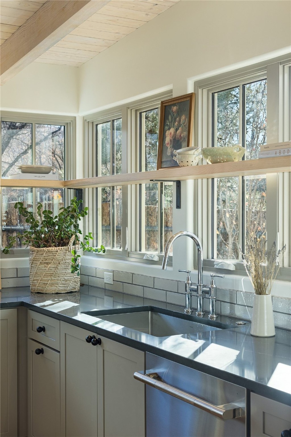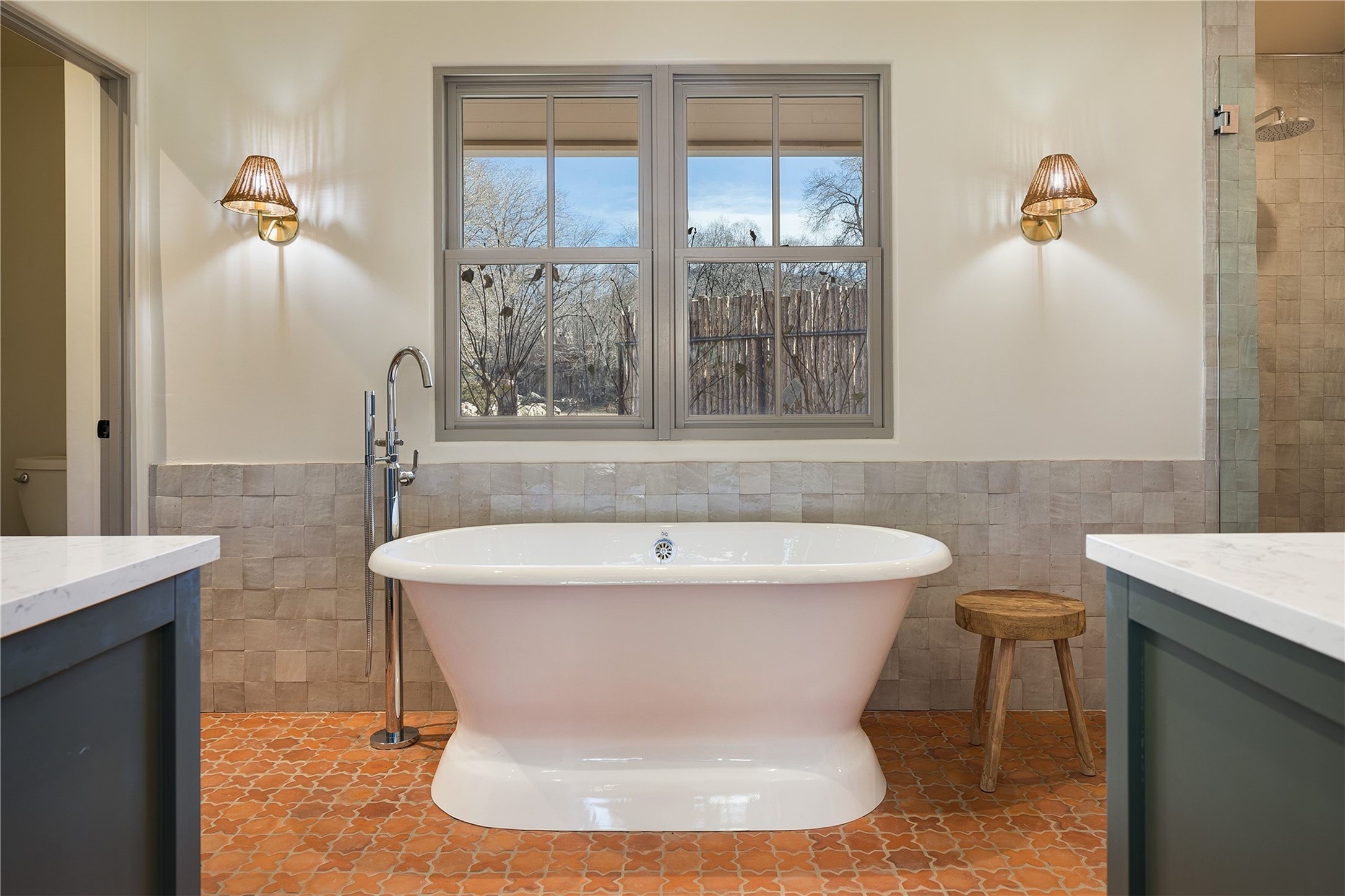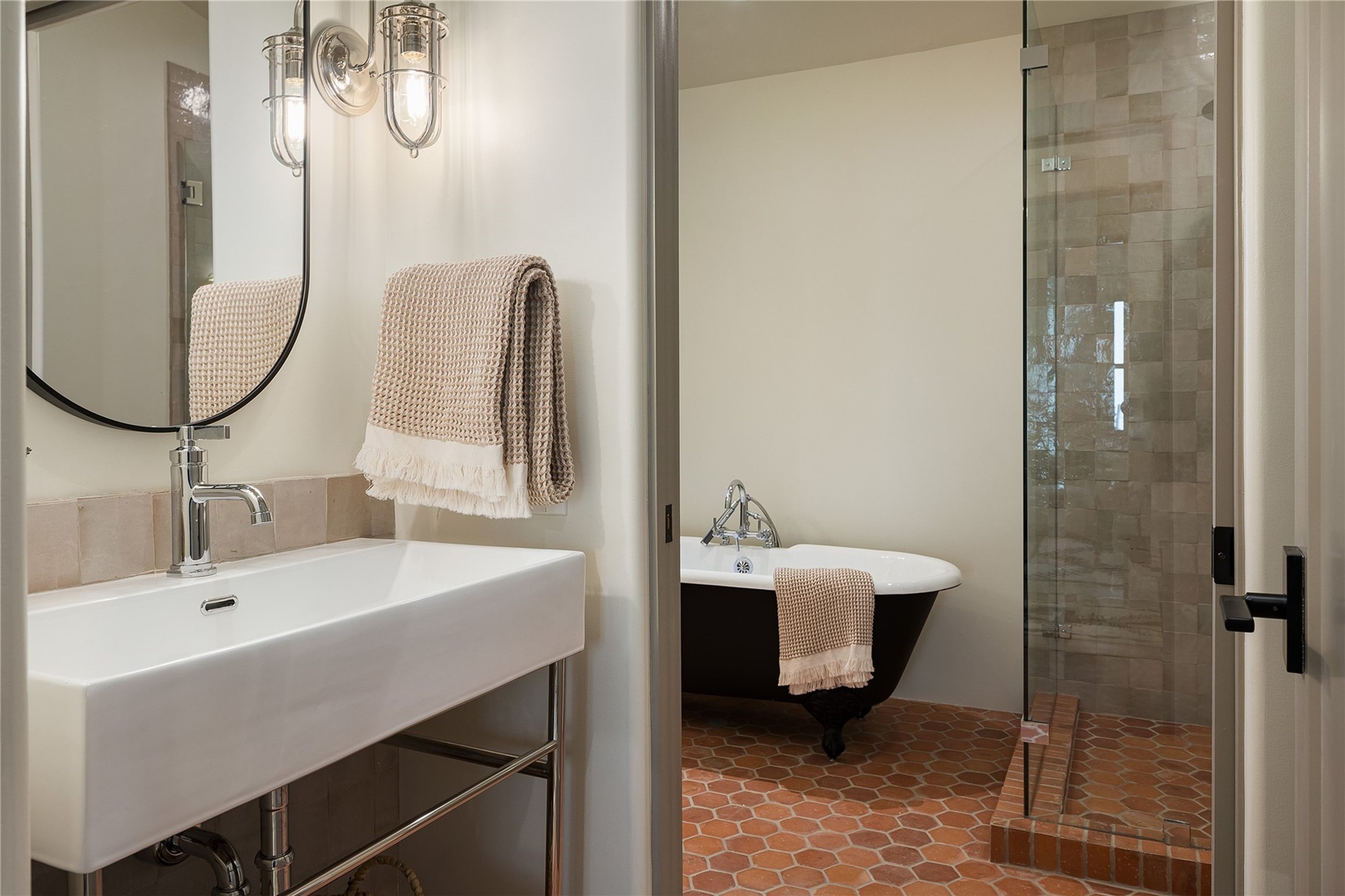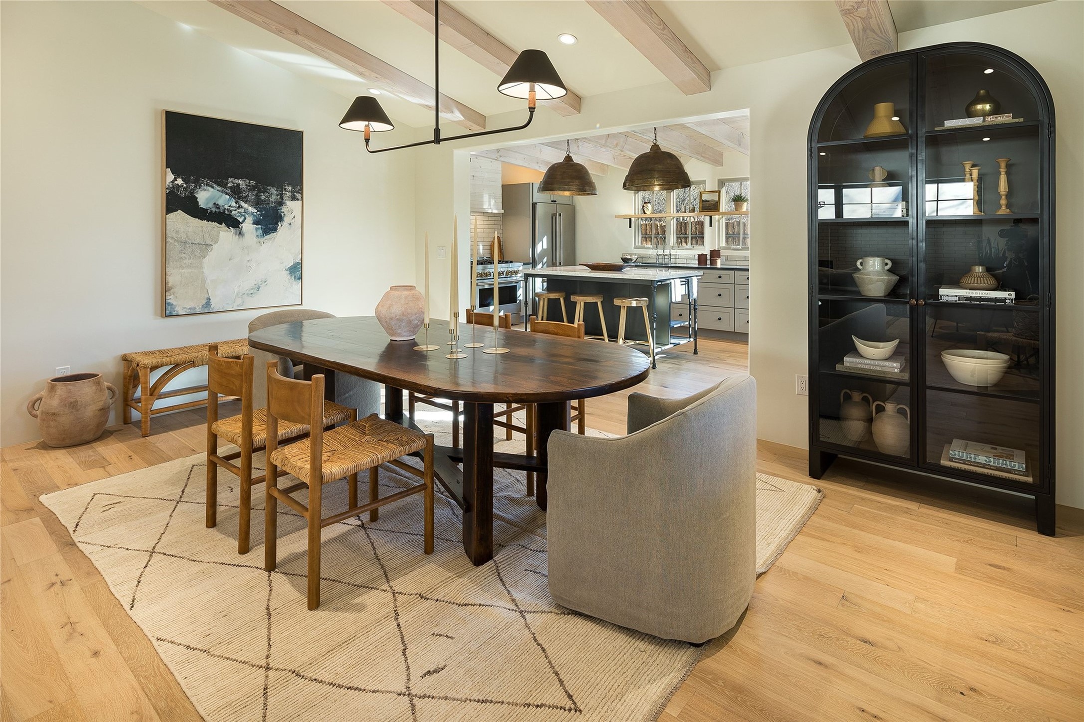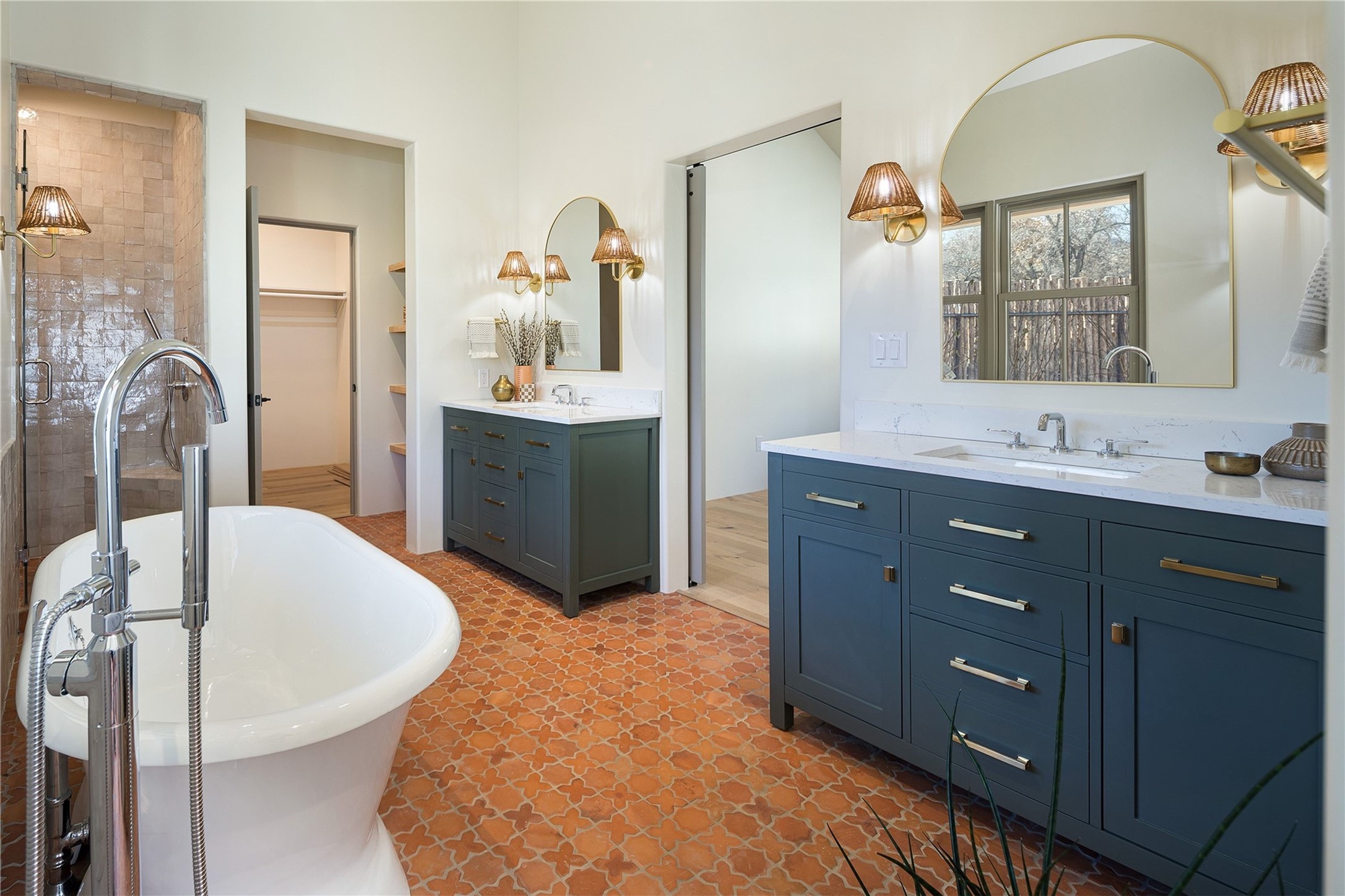 Welcome to 1109 E. Alameda, one of the most exciting homes on the Historic Eastside of Santa Fe. Walking distance to the world renown Canyon Road and the Santa Fe Plaza, this beautifully designed home by Cara Scarola of Woods Design Builders, excites and captivates with timeless historic architecture and exceptional luxury finishes. Located on one of most iconic streets in Santa Fe and sited directly across from Patrick Smith Park and the Santa Fe River, this craftsman style home exemplifies the unique blend of fresh, modern design with inherent warmth and sophistication. Ideal as a primary residence or the ultimate secondary home retreat, this newly completed masterpiece, impresses with the ultimate chef's kitchen complete with professional grade appliances, surround view windows, Carrara marble island, floating cabinetry, dual sinks, and a well-appointed butler's pantry, all of which perfectly opens to the spacious open-concept living room and dining room, with vaulted ceilings, gas fireplace and outdoor access. The tranquil primary suite delights with its own private patio, raised gas fireplace and a stunning spa-like bath with terra cotta tile flooring, custom wall tiles, dual vanities, free standing tub, walk-in shower and a large walk-in closet. Two additional guest bedrooms offer comfort and privacy, which share an extraordinary, spacious full bath with dual vanities, a claw-foot tub, a modern walk-in glass shower, designer finishes and a walk-in closet. Exceptional features include white oak flooring throughout the main living areas, square beam and vaulted ceilings, clerestory windows in the living room and hallway, soft natural light, a spacious laundry room and a front entrance mudroom with a utility sink. Parking includes two fenced, designated parking spaces. This newly rebuilt home is an absolute work of art, move-in ready and not to be missed! All furnishings are available for purchase on a separate bill of sale.