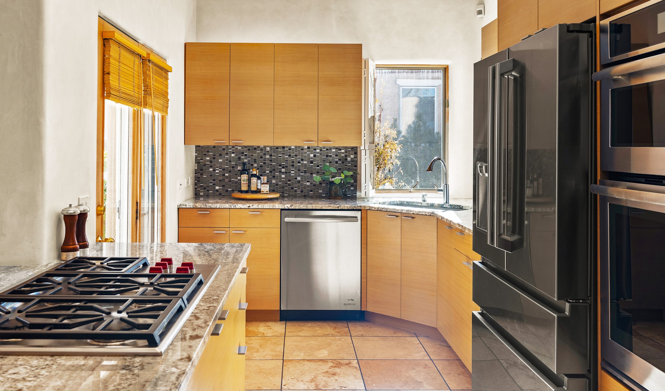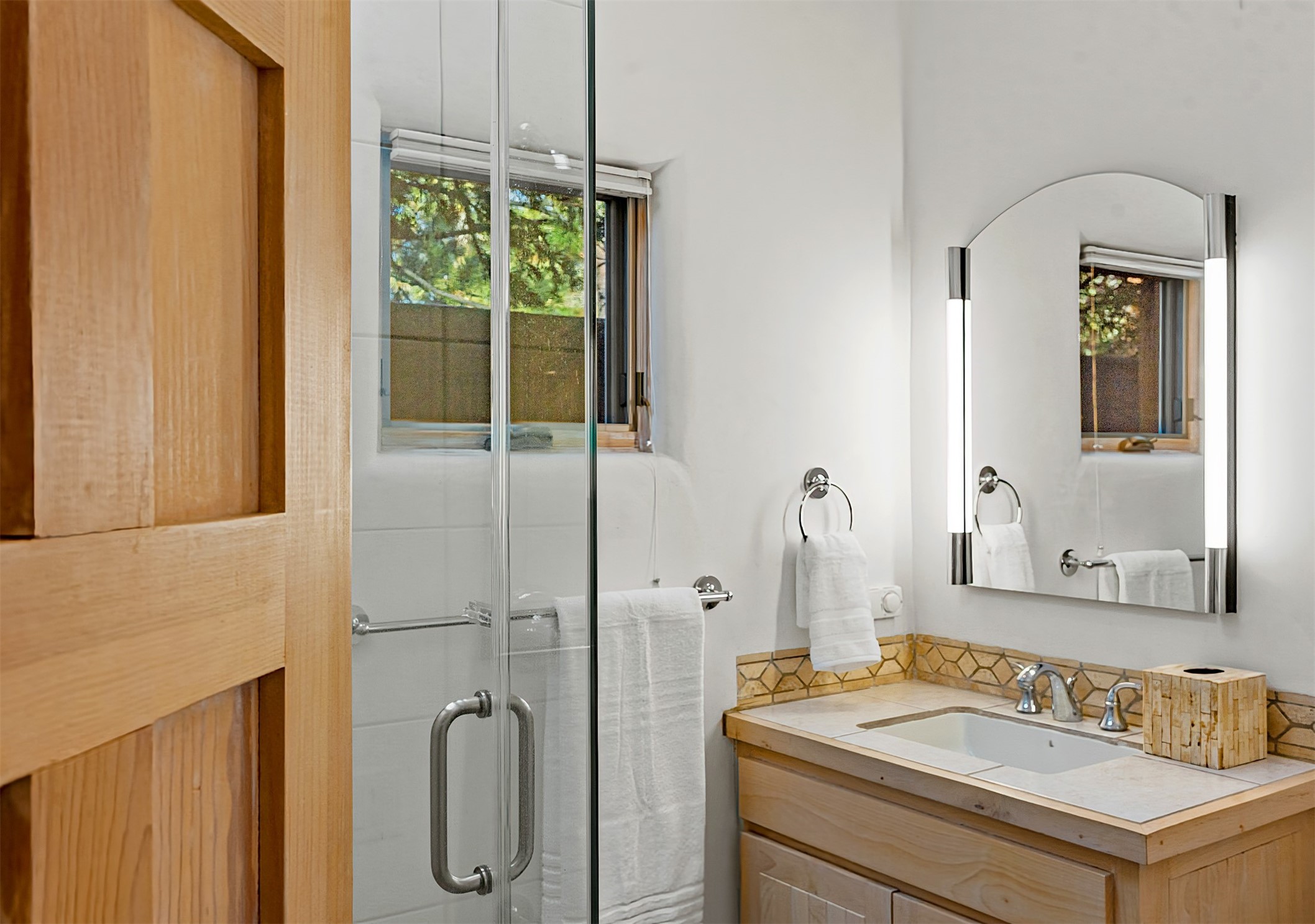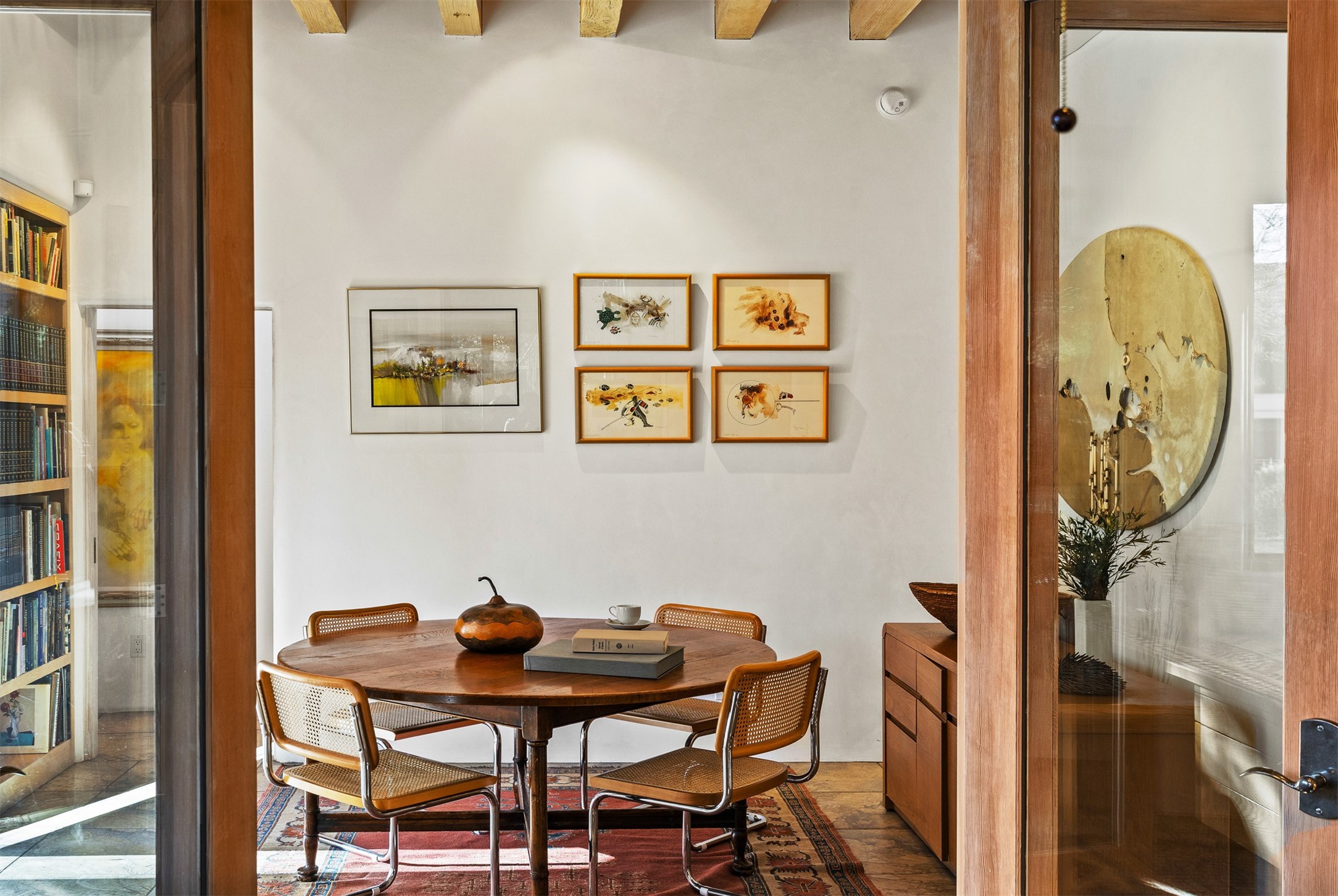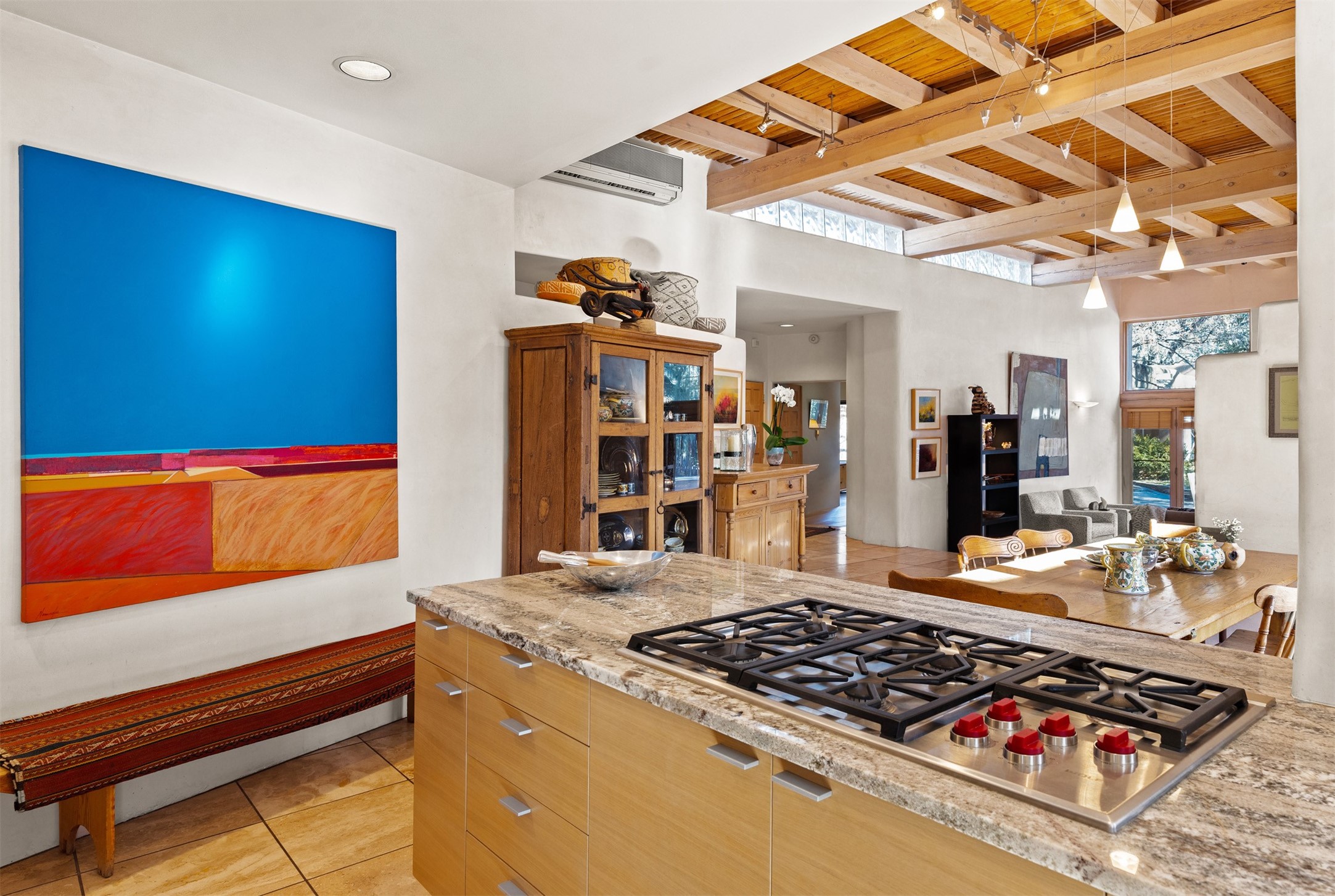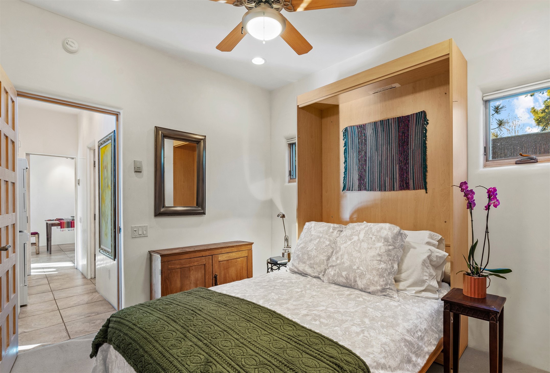 This refined house and guest house, on the market for the first time,is a hidden gem that's private, quiet, with a feeling of seclusion and set back on a charming street on the Eastside. The grounds unfold beyond the gate to a spacious,idyllic and entirely enclosed compound on .23 acres that is truly nestled among mature aspens and pines.The architectural harmony and green space create a feeling of tranquility, as if you're on retreat.The outdoor area, with garden beds and paved flagstone, brick patios and walkways, offer abundant opportunities for relaxation and entertaining.The great room has ceilings that soar to 14 ft. in height, a gracious primary bedroom has lovely views and spa-like ensuite bath.The home was refreshed to include wood and travertine flooring and a sunny kitchen with stunning granite counters.The pantry connects the kitchen to a rare feature:a two car attached garage.The loggias /extended portals frame lovely views and create a sense of movement and passage. Rich surfaces, fine details and classical references create a comfortable, polished and timeless take on Santa Fe style as designed by the award winning architect, Robert Zachry.Elegant details include fine metal and woodwork, skylights, symmetrical vigas, polished latillas, abundant storage, fireplaces and six French doors that make for breezy access to the lovely lawn and garden that connects the two homes.The guest house adds continuity of design and charm.What makes it truly special is the versatility of the spaces, with plenty of options as a home office and for guests. Inviting and soothing views connect you to the garden and the main house.A deep covered portal creates an al fresco room, with a generous patio and outdoor fireplace that's the perfect hub for garden parties and to enjoy quality time with family and friends.You are mere minutes from exciting Canyon Road and the Santa Fe Plaza and Kaunes grocery is just around the corner. Come and experience this place to call home.
