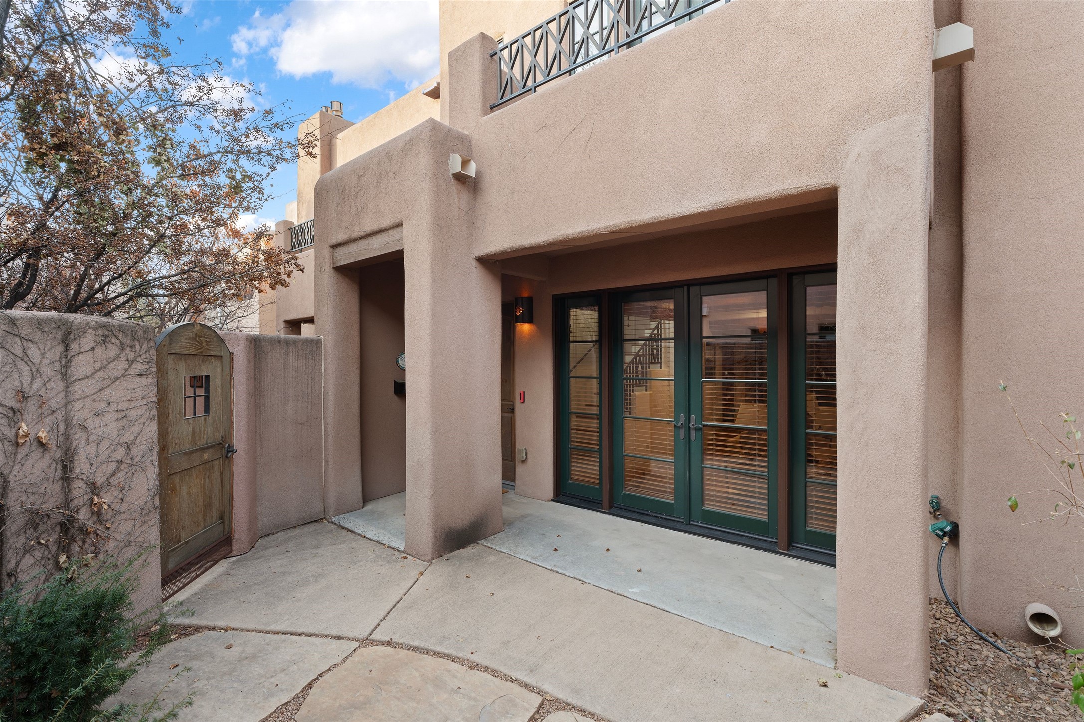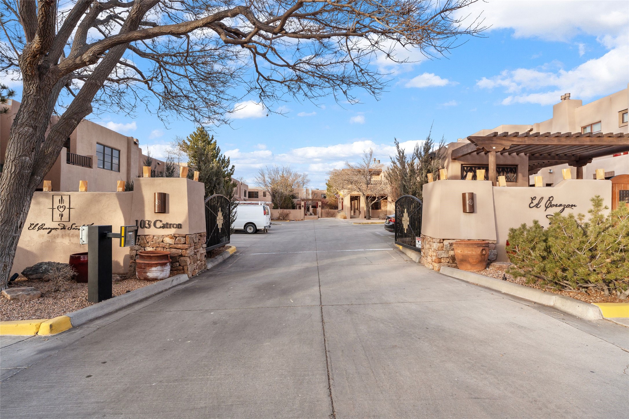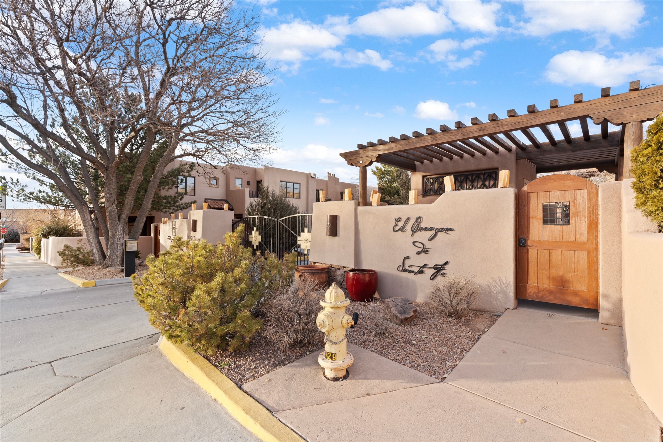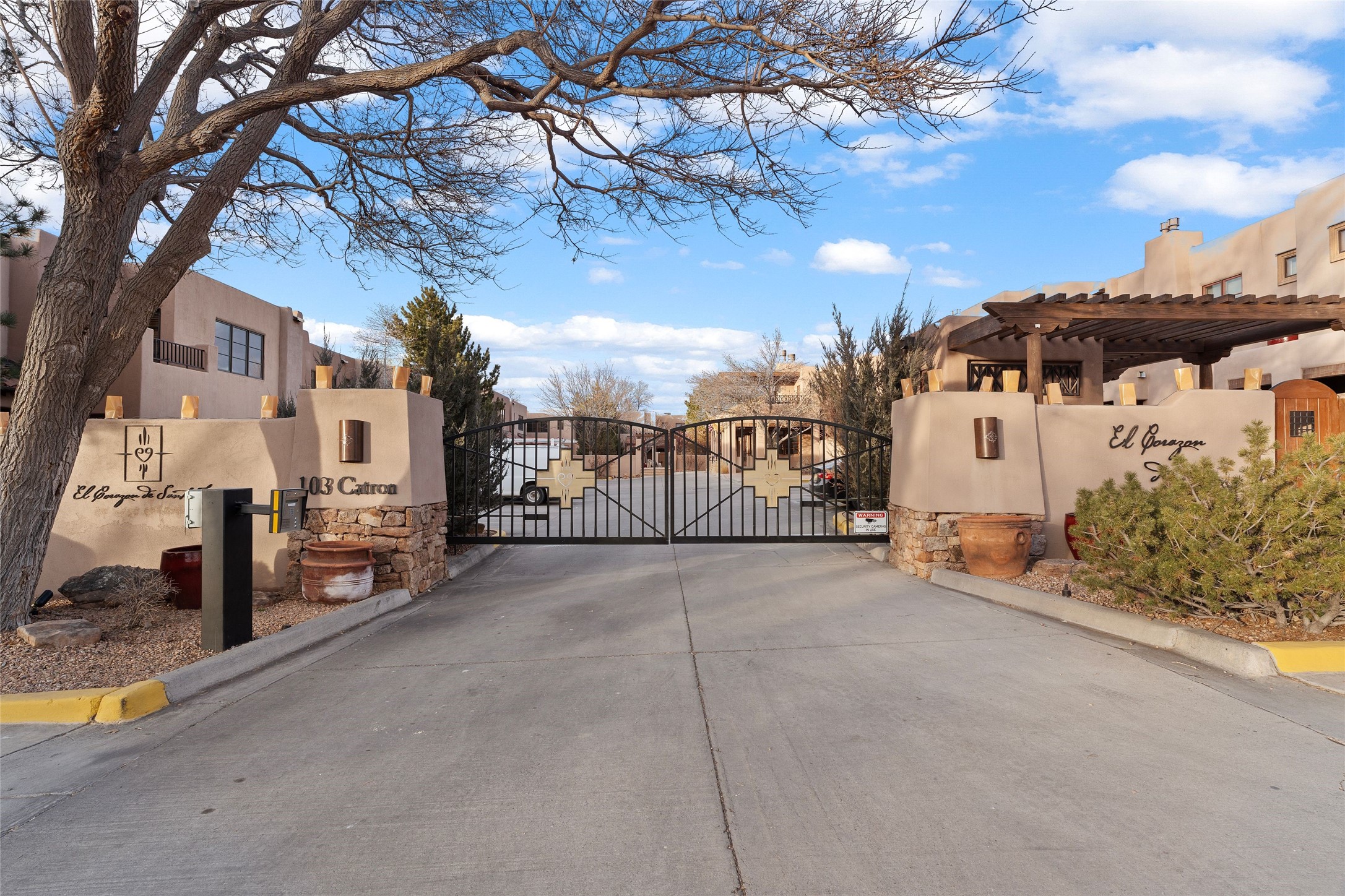 Outstanding Rare offering El Corazon de Santa Fe condo. Quiet interior corner location within the complex. Great outdoor space for entertaining. The location of this property is unbeatable with a secure underground heated parking garage and within walking distance to all downtown Santa Fe has to offer. Both bedrooms have an ensuite bath. Primary bedroom has a jetted tub, dual sinks and walk-in closet. Stainless steel appliances and ample storage with knotty alder custom cabinets in the kitchen. Short term rentals allowed with city permit This home is a true lock and leave gated community for the discriminating Buyer or perfect for maintenance free full time living. The Seller has made too many fantastic upgrades to list. All furnishings convey. Call the listing broker for your showing today of this beautiful home.