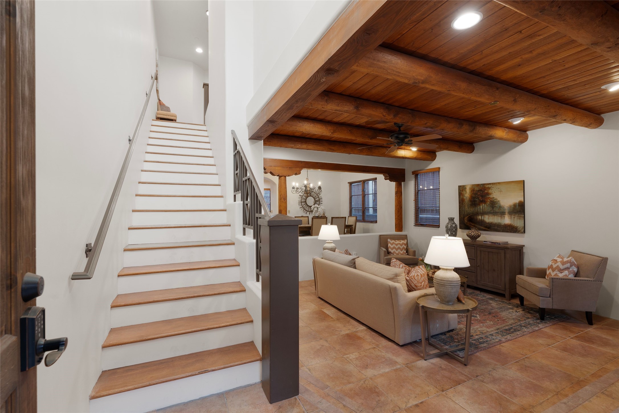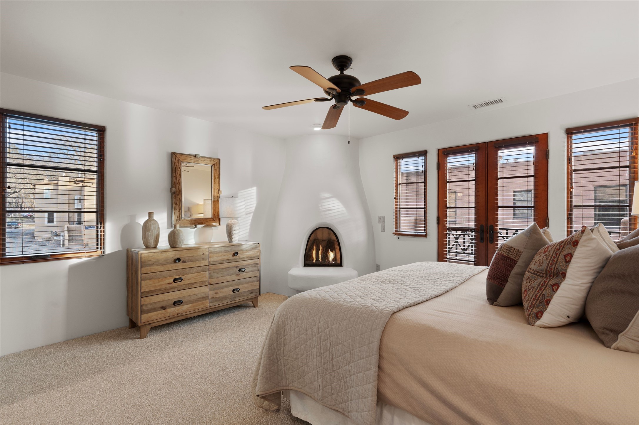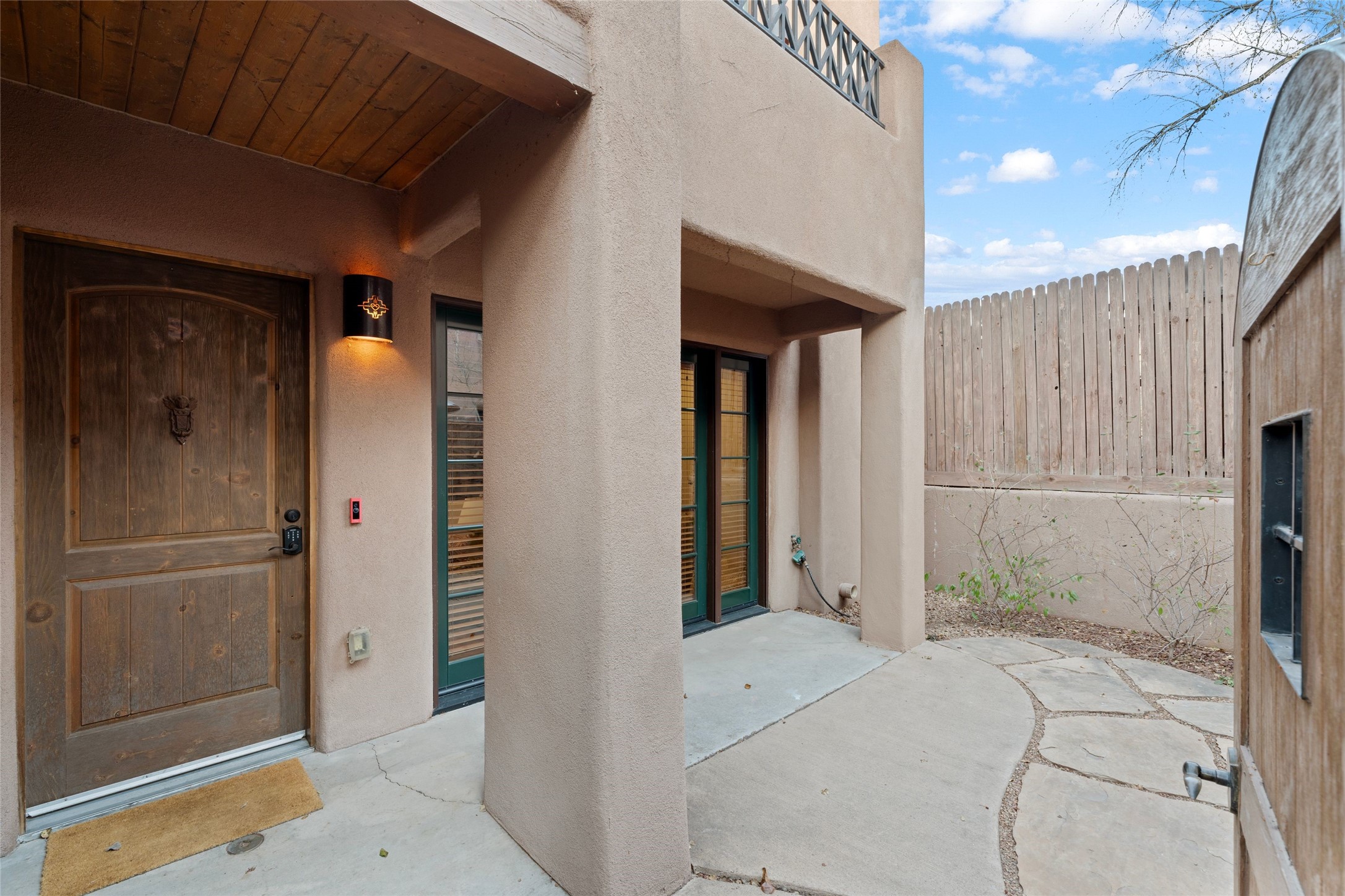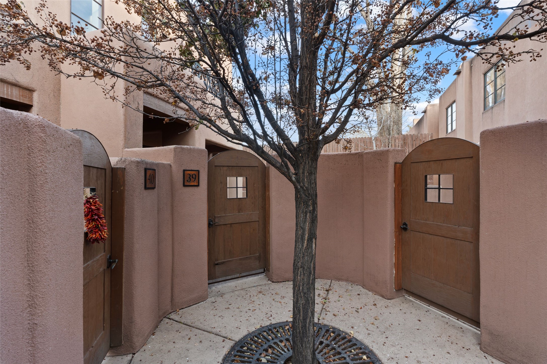 Outstanding Rare offering El Corazon de Santa Fe condo. Quiet interior corner location within the complex. Great outdoor space for entertaining. The location of this property is unbeatable with a secure underground heated parking garage and within walking distance to all downtown Santa Fe has to offer. Both bedrooms have an ensuite bath. Primary bedroom has a jetted tub, dual sinks and walk-in closet. Stainless steel appliances and ample storage with knotty alder custom cabinets in the kitchen. Short term rentals allowed with city permit This home is a true lock and leave gated community for the discriminating Buyer or perfect for maintenance free full time living. The Seller has made too many fantastic upgrades to list. All furnishings convey. Call the listing broker for your showing today of this beautiful home.