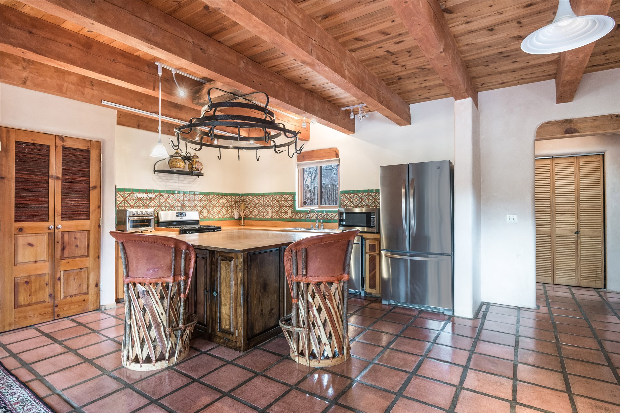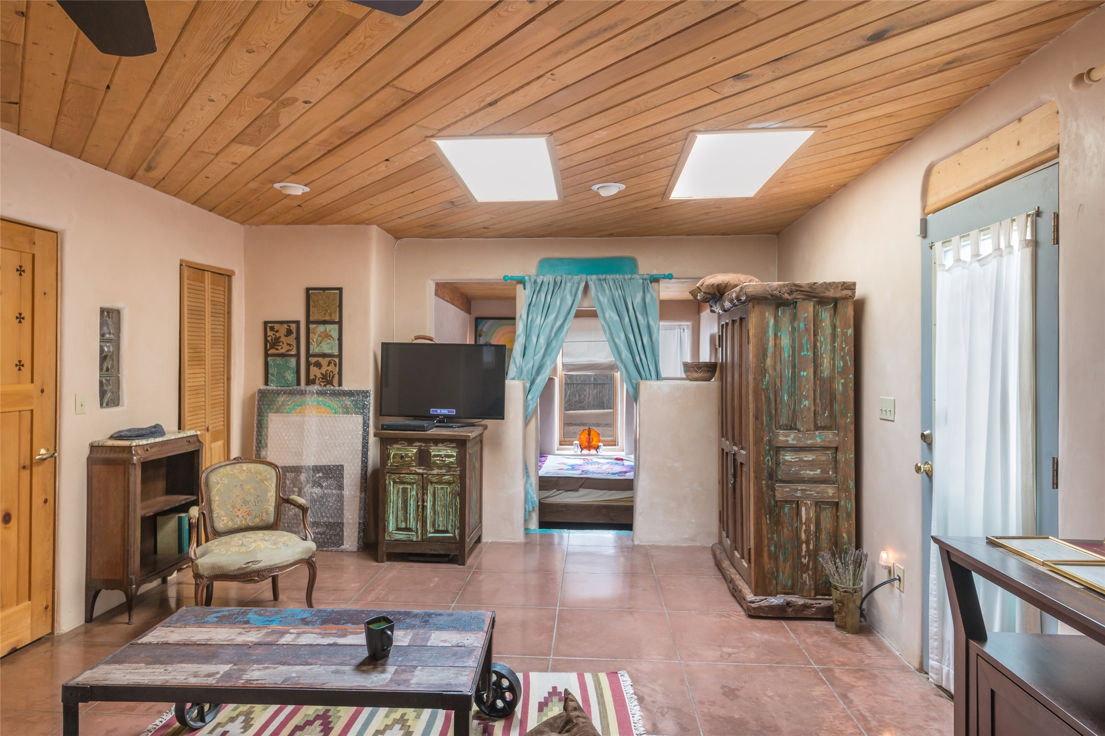 NOW $995,000. Act quickly! A South Capitol Treasure, carefully maintained and with Santa Fe charm! Easy walking distance to the Plaza, close to Trader Joe's and Whole Foods, this 3-bedroom house has a sweet 1-bedroom, attached but very private, approximately 900-square-foot guest house and a wonderful, separate 575-square-foot art studio/office/flex space with a 176-square-foot attached storage room. The master bedroom, master bath, gourmet kitchen, living room and dining room are on the main level. Two guest rooms and a full bath are on the second level. The 0.33-acre lot has landscaping, fountain and rock work of award-winning quality. The driveway is gated and the entire property is walled/fenced. A wonderfully serene and private home in a prime location! All furnishings, except personal items are available.