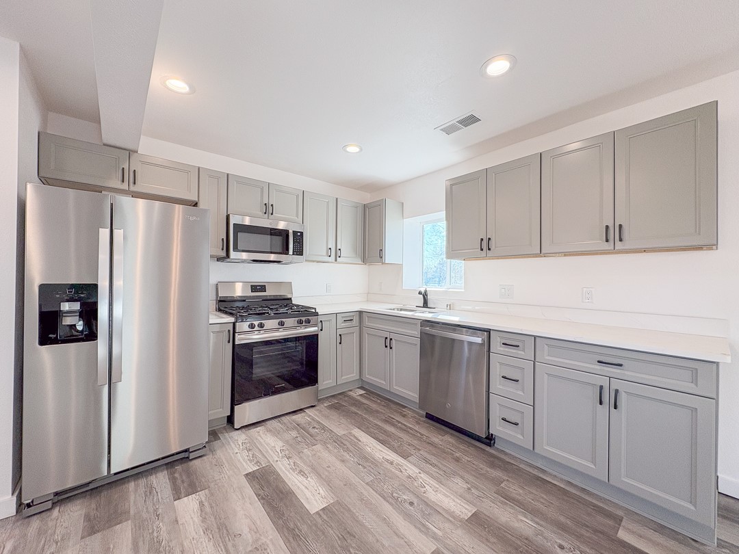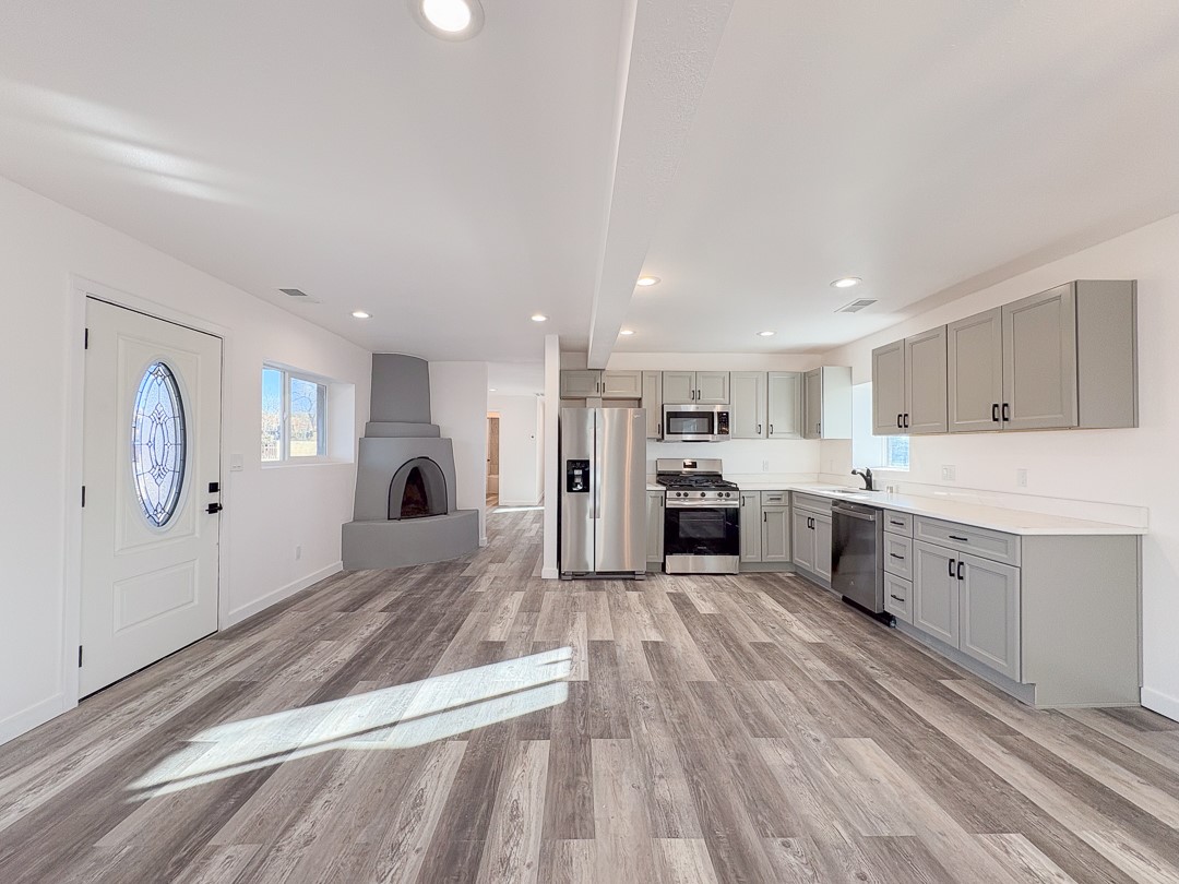 Welcome to this charming home in a convenient location. This delightful and centrally located abode has three bedrooms, two bathrooms, and provides modern day comfort. Step inside to see the kiva fireplace made for enjoying cozy nights by the fire. Direct access to the park behind the property as well as bike trails adds convenience to outdoor activities. Plenty of off-street parking makes having guests over simple and the open floor plan makes it easy to entertain. Newly renovated and with brand new appliances, repairs and maintenance will be a distant thought after move in.