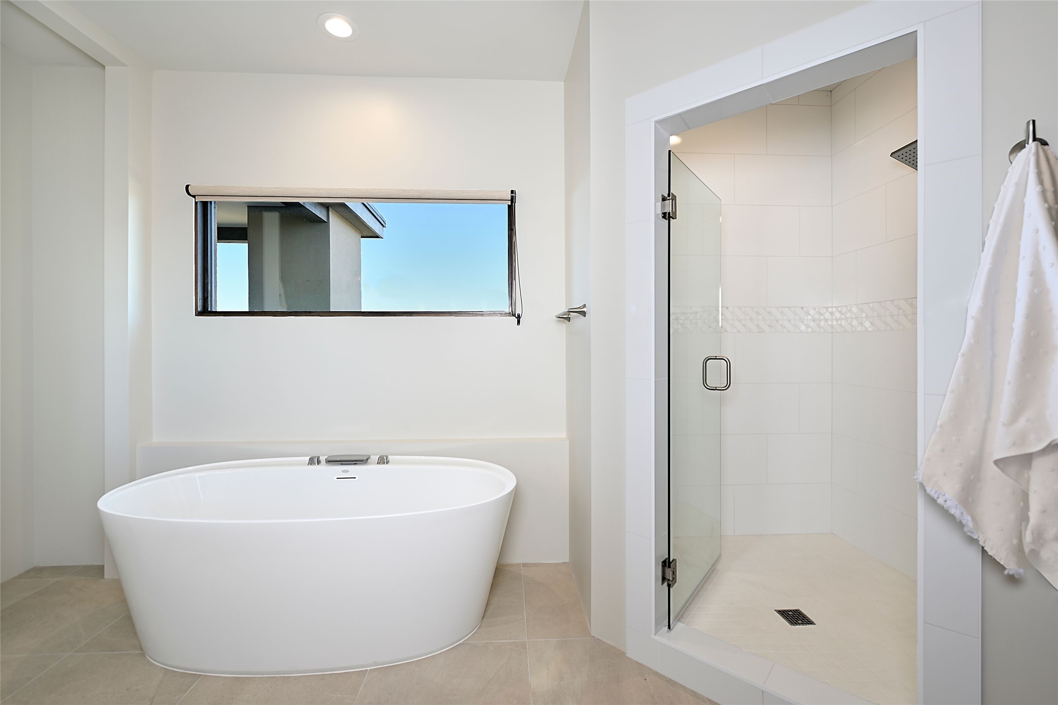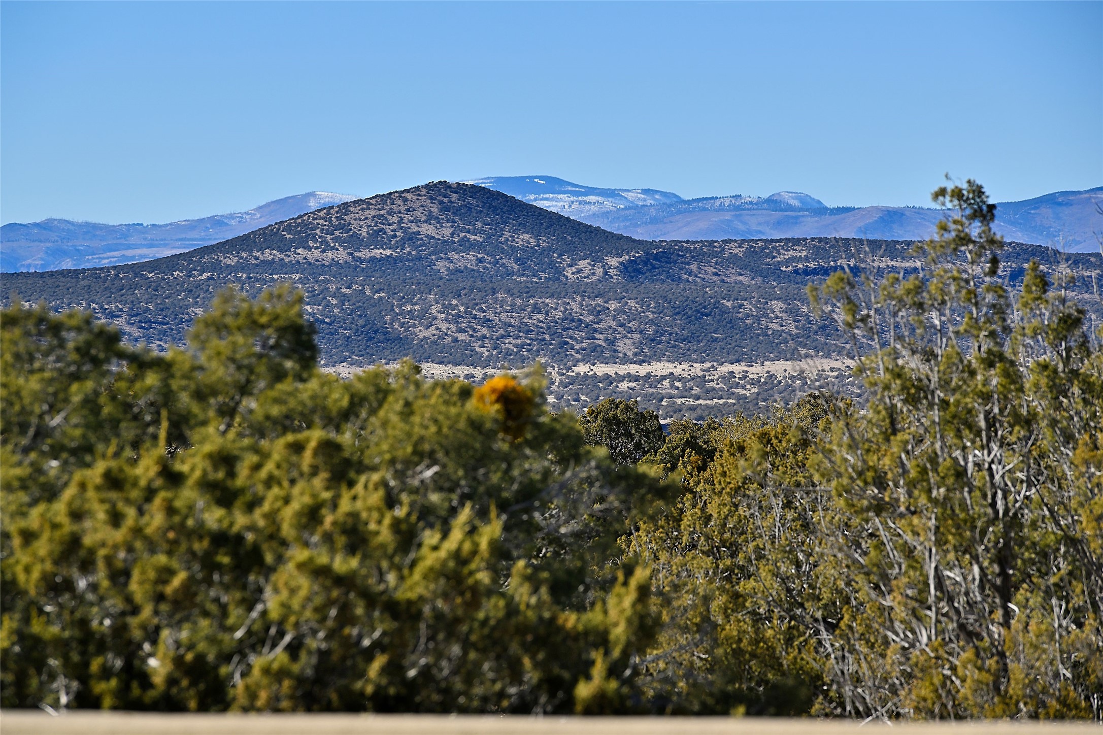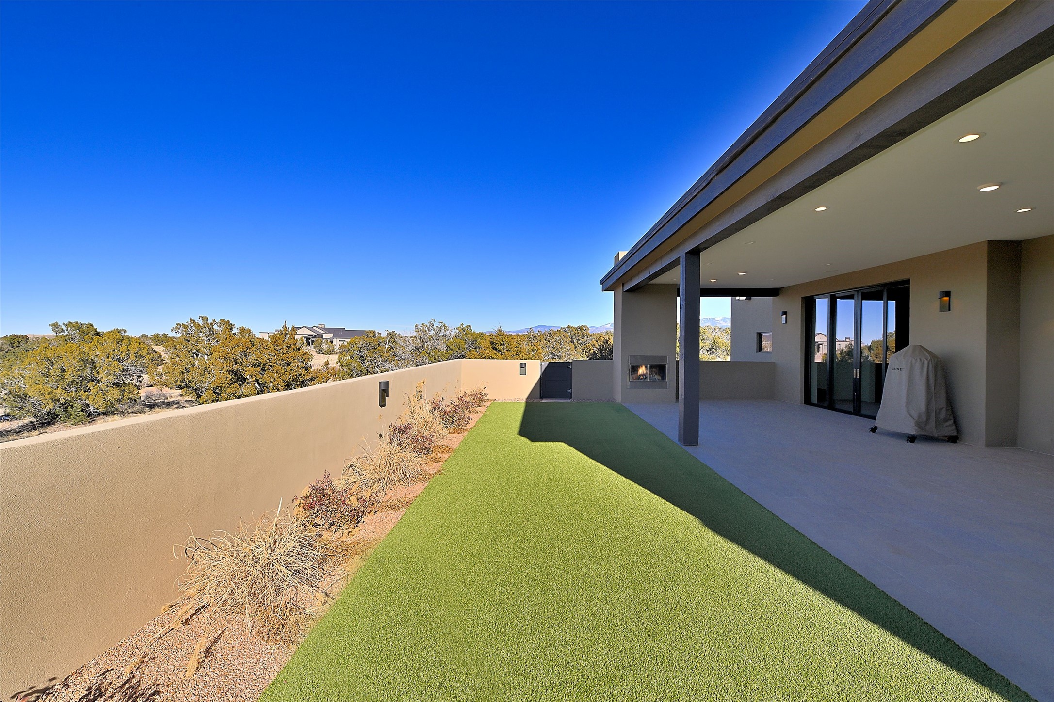Exemplifying sleek, chic contemporary design in one of the most desirable locations in Santa Fe, this light-filled three-bedroom, 3,394-square-foot residence affords sweeping vistas from its ideal location in the western reaches of the exclusive Las Campanas community. Sophisticated living and entertaining are effortless indoors and out thanks to an easy open floor plan that encompasses a living room with a soaring beamed ceiling, a modern gas fireplace, handsome built-ins, and 10-foot glass doors; a dining area with sliding glass doors; an impeccably appointed chef's kitchen with quartz counters, handcrafted cabinets, and top-caliber appliances; and a Jemez-facing portal and courtyard-all linked in an effortless flow and basking in mountain and sunset views. Two generous guest bedrooms with spacious closets and en suite baths enjoy the seclusion of their own wing, while a quiet home office-which could easily serve as a fourth bedroom-is located down the hall and steps from a full bath. A serene, solitary oasis, the primary bedroom suite is tucked in a peaceful private spot and features a contemporary gas fireplace, a lavish bath with two vanities and both a soaking tub and a shower, and an impressively outfitted room-sized walk-in closet of nearly 200 square feet. Other welcome elements include a walk-in pantry or storage room; a bright, discreet laundry room; and a two-door, two-car garage with additional storage space. Some photos are virtually staged.