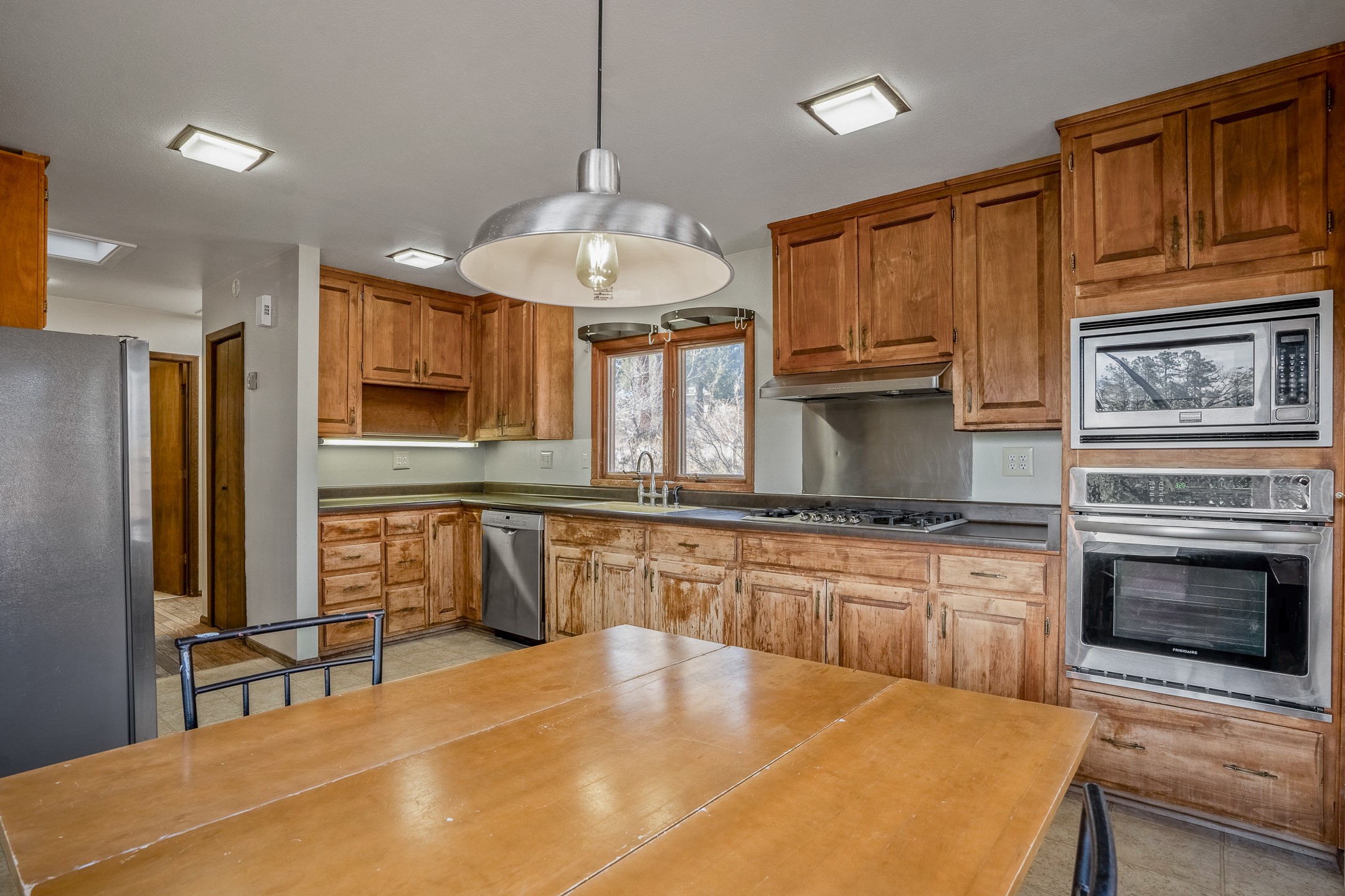 [NOTE: Open Houses scheduled 3/15-16 have been CANCELLED.] Affordable Rim Road, 3 Bedroom, 2 Bath, Canyon Views, and More! Welcome to 225 Rim Road! This three-bedroom home is perched on the canyon's edge on Rim Road overlooking Graduation Canyon Trail near downtown Los Alamos and is your chance to own a more affordable property with lots of potential in a great location! The house is set back from the road to offer privacy and nestled near the end of the cul-de-sac. Features include hardwood floors and a floor plan that takes advantage of the great canyon views. The foundation was built into the side of the hill with metal I-beams for strength and are a testament to the quality of original construction. Not included in the square footage are a bonus 604 sq ft finished basement, a 266 sq ft unfinished workshop with a wood stove, and the lower-level mechanical room. Don't miss this opportunity to earn some sweat equity on your very own Rim Road home with the price set to accommodate renovations within the appraised value! Schedule your showing today!