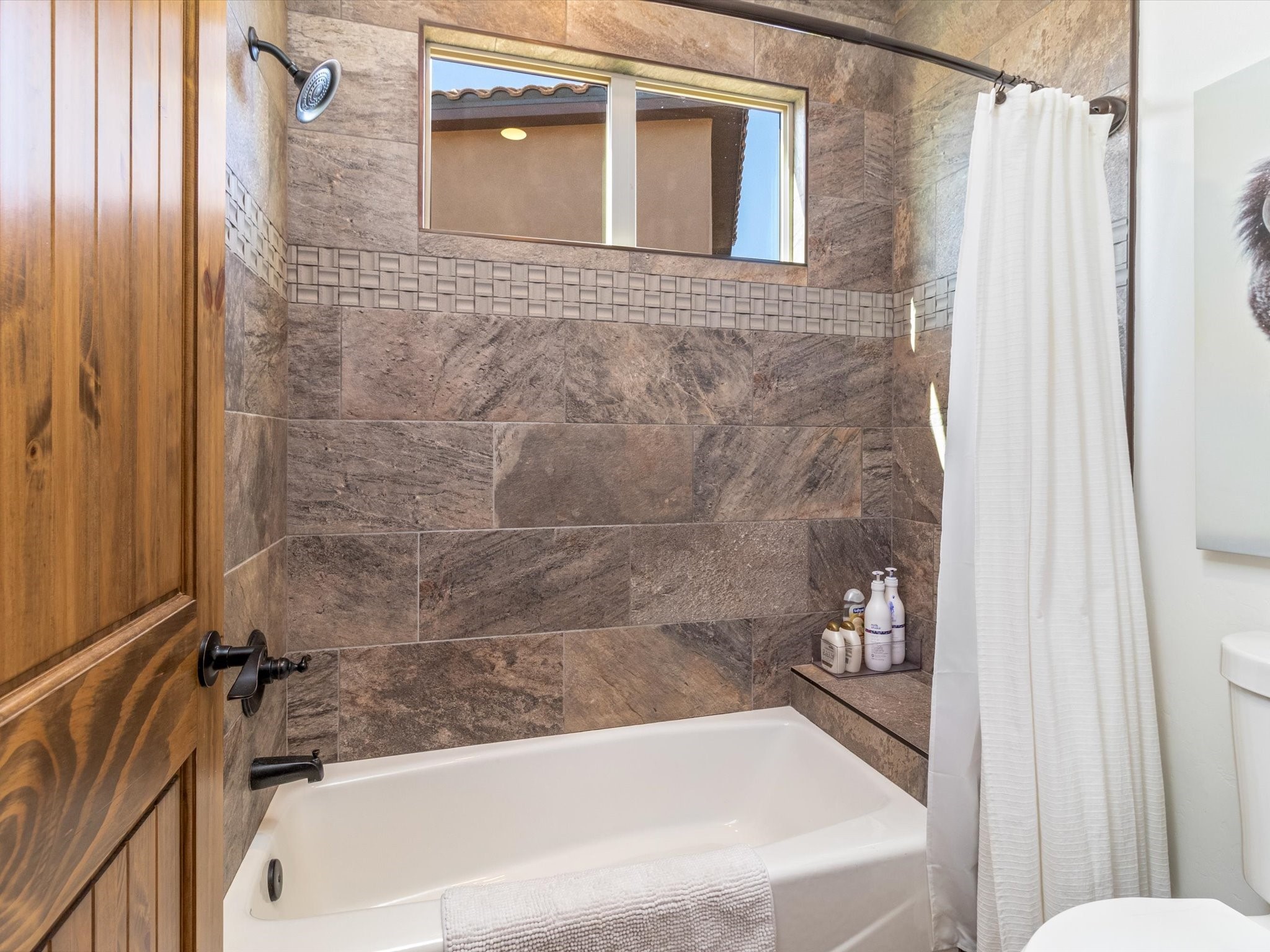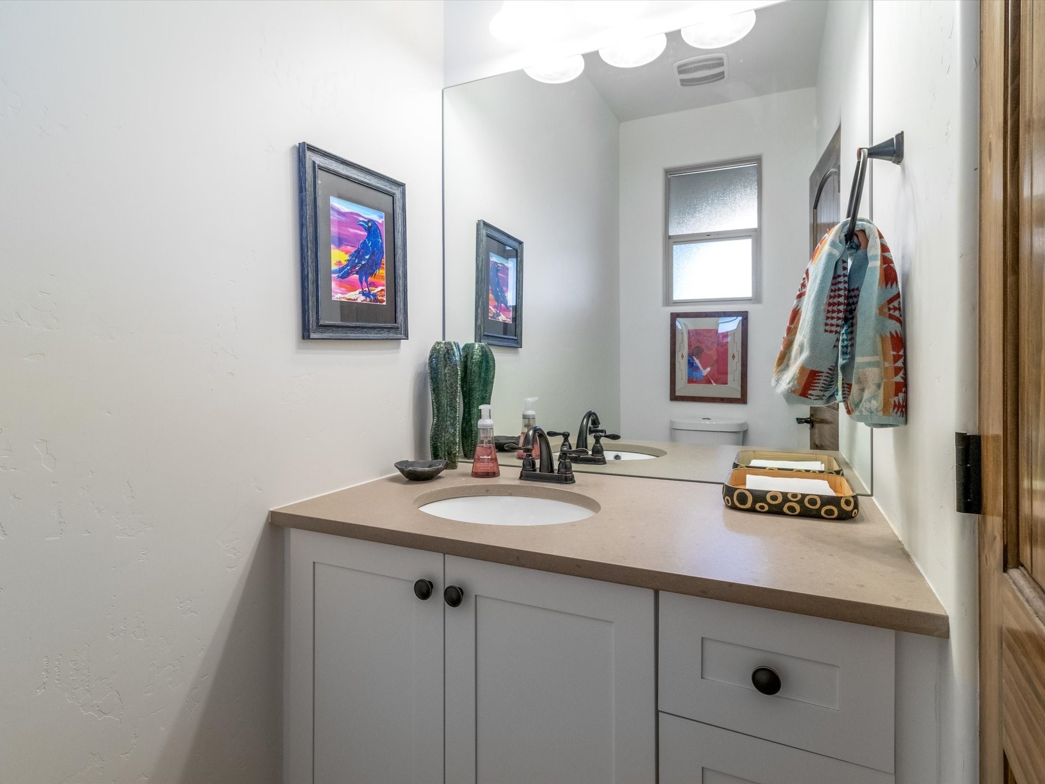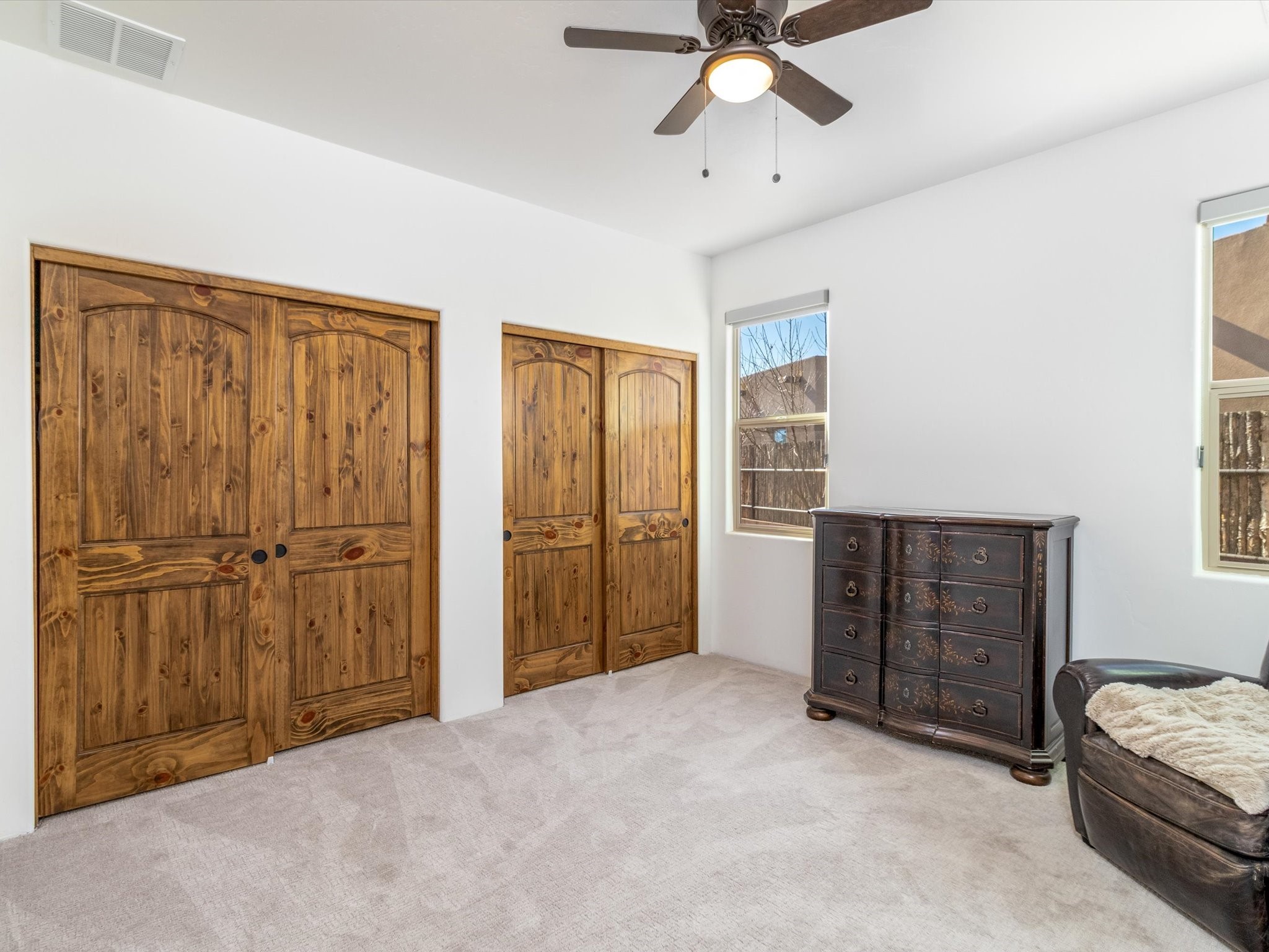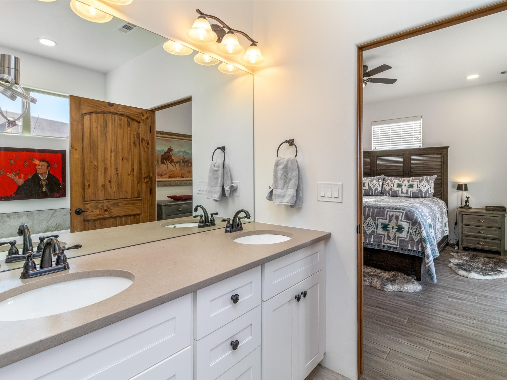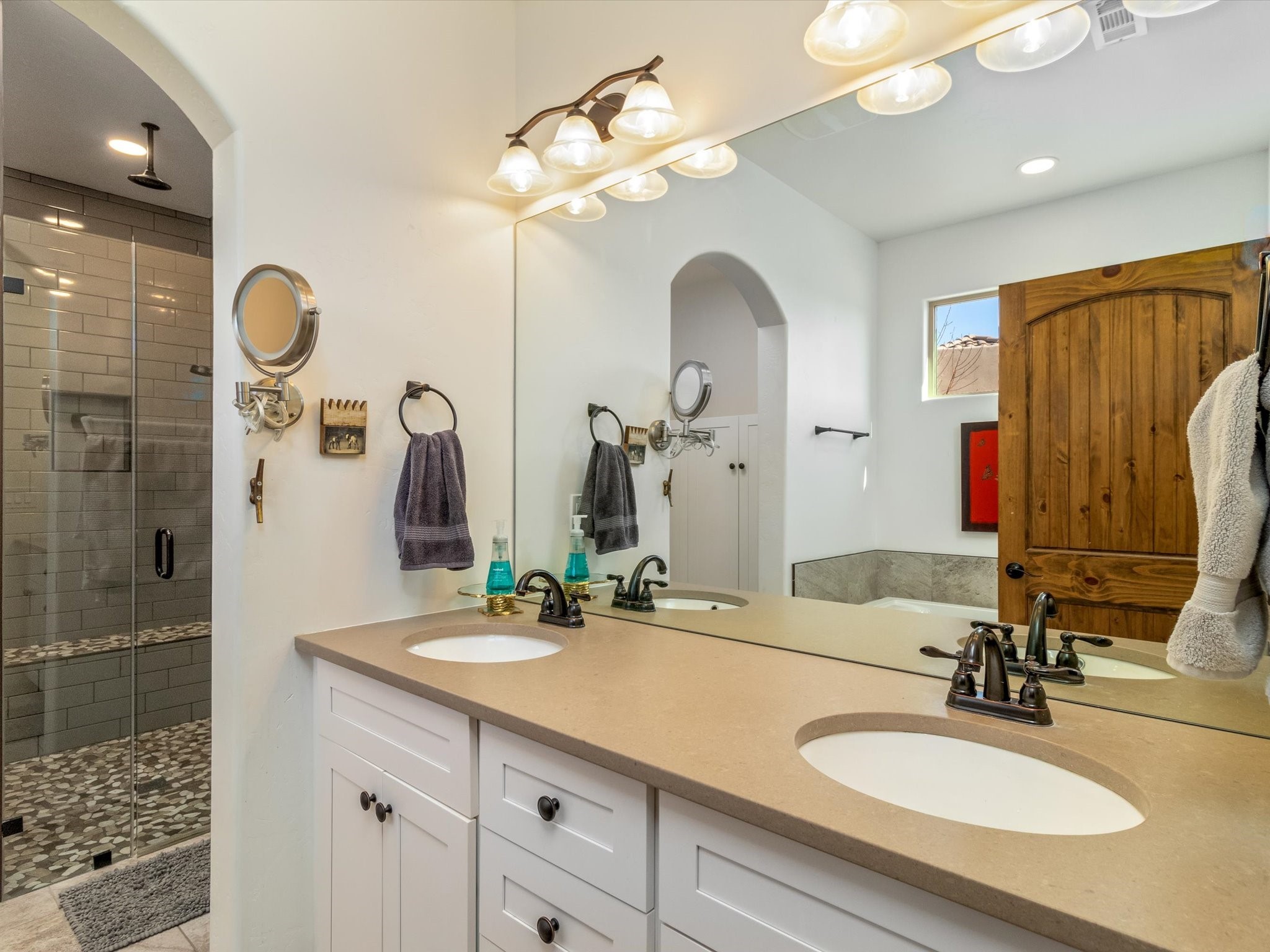 Nestled in the sought-after La Pradera Subdivision, this stunning Spanish-inspired home, built in 2021, has a total of 2,186 sqft. It has pitched Spanish design with clay-like roof and covered portals with rustic wood beams. It's brick pavers & colored driveway create a warm and inviting curb appeal. The rear of the property opens to a serene natural space and there are Walking trails surrounding the community.Step inside to an open-concept layout that seamlessly connects the dining area, kitchen, and living room--perfect for entertaining or relaxing with family. Custom interior lights in the foyer entrance set the tone for elegance, while the living room showcases white-stained beams with T&G planking and a cozy fireplace that adds warmth and character. The kitchen is a chef's dream, featuring a commercial-grade stove, stainless steel appliances, a breakfast island, and a window over the sink that fills the space with natural light. A gas line at the back patio for outdoor cooking adds efficiency and custom window treatments elevate the home's style and comfort. This home offers three spacious bedrooms, including an owner's suite, en-suite bathroom with an enclosed shower, a bath tub and dual sinks. A powder room is conveniently located near the entry. Additional features include a separate laundry room, an extra room ideal for an office, study or small studio, and an attached three-car finished garage equipped with electric vehicle charging capability. Experience the perfect balance of style and practicality in this exceptional La Pradera home. Its inviting interiors, picturesque surroundings, and thoughtful design make it a must-see for those seeking their dream home in Santa Fe.