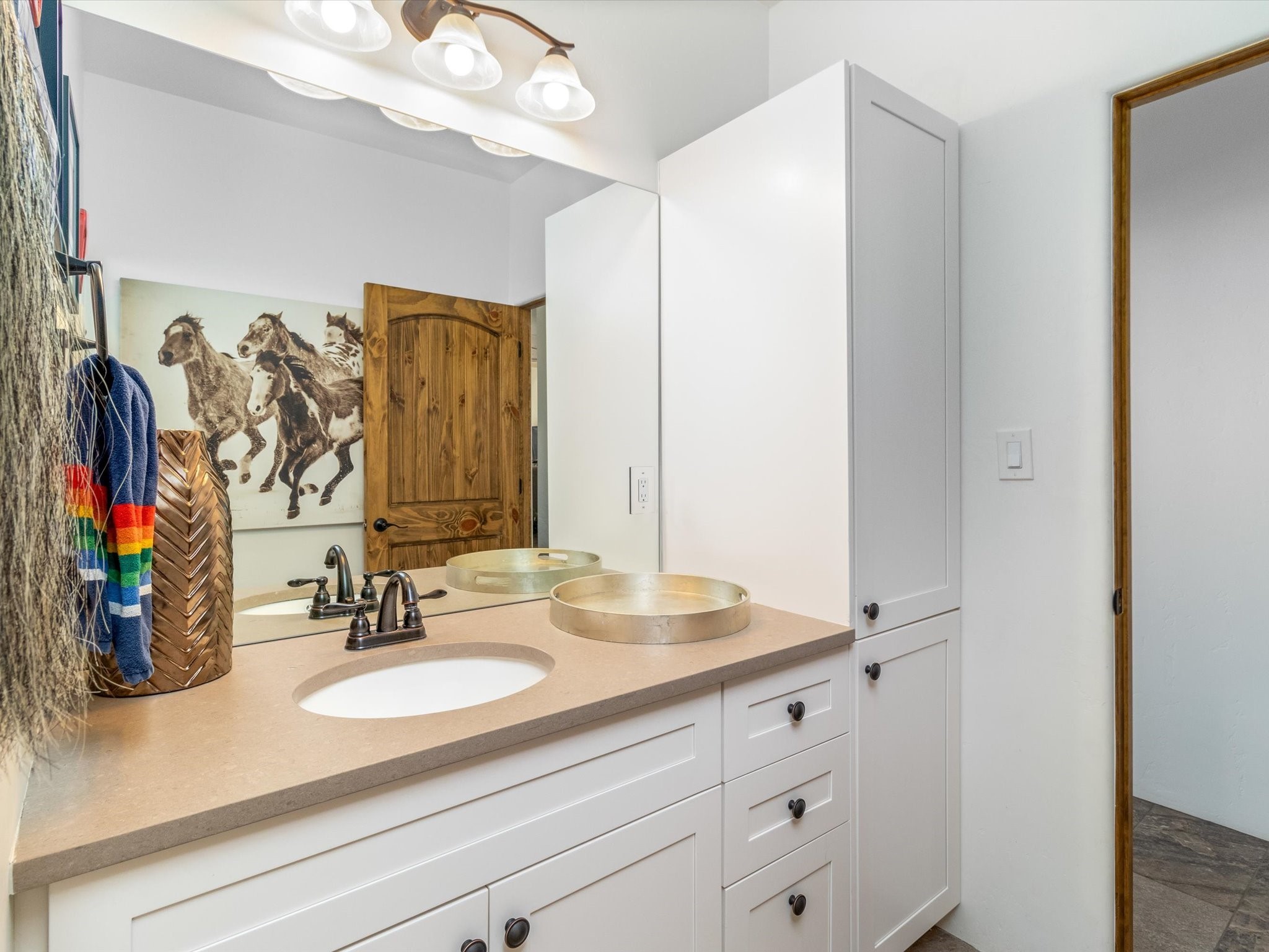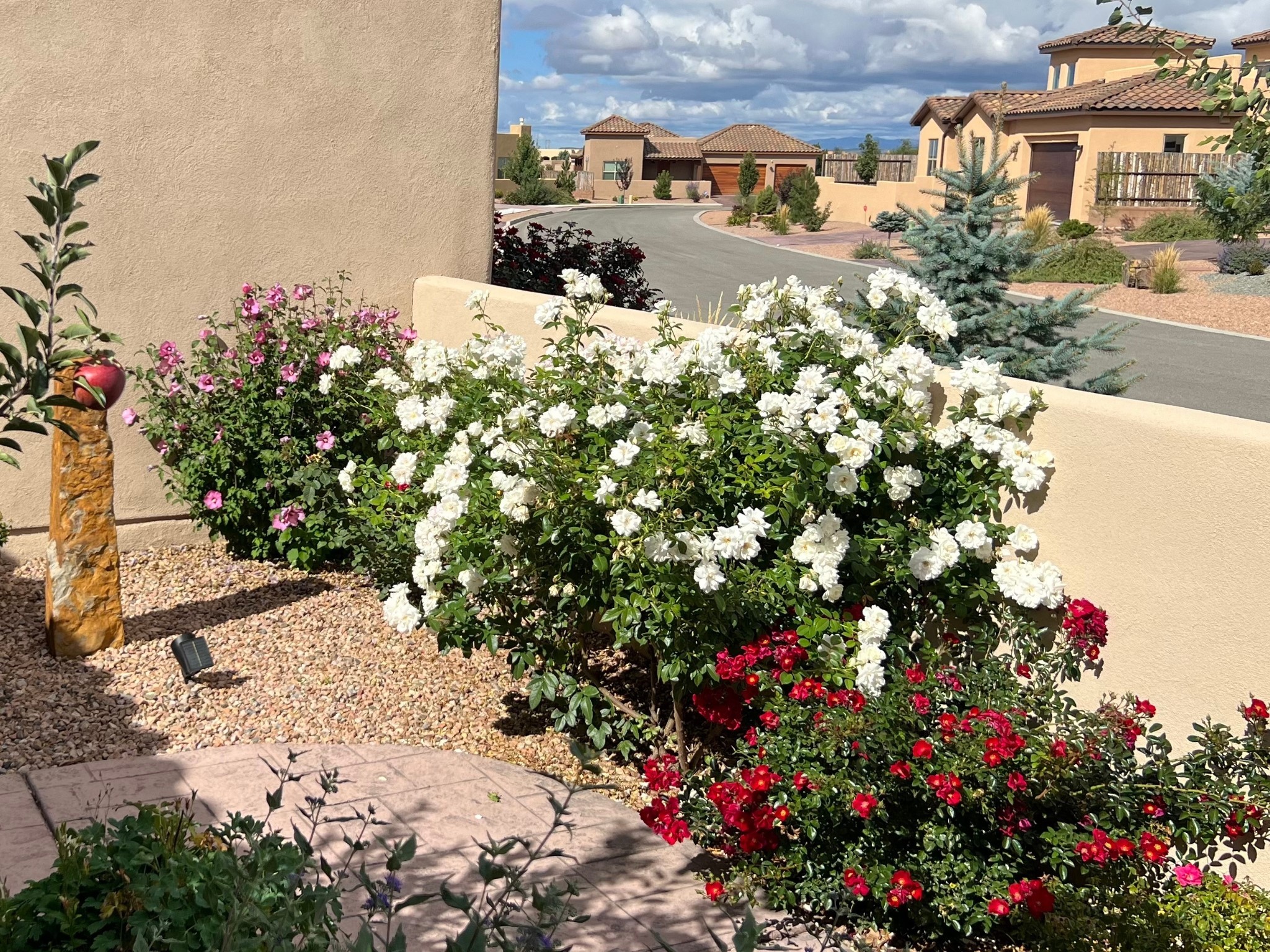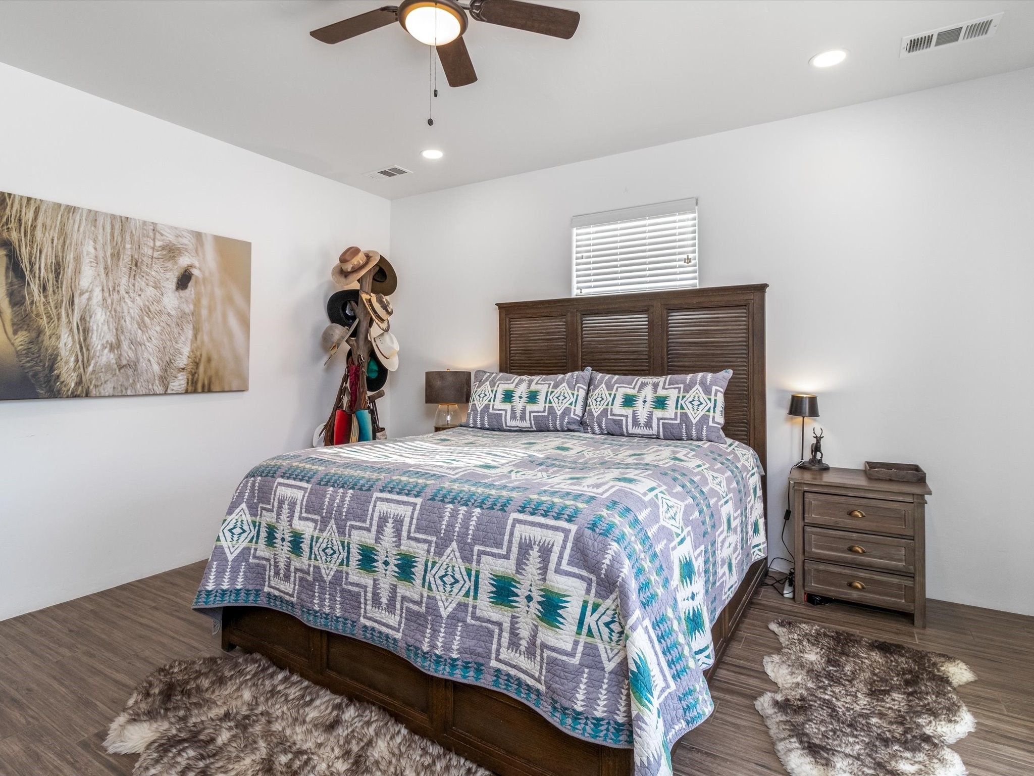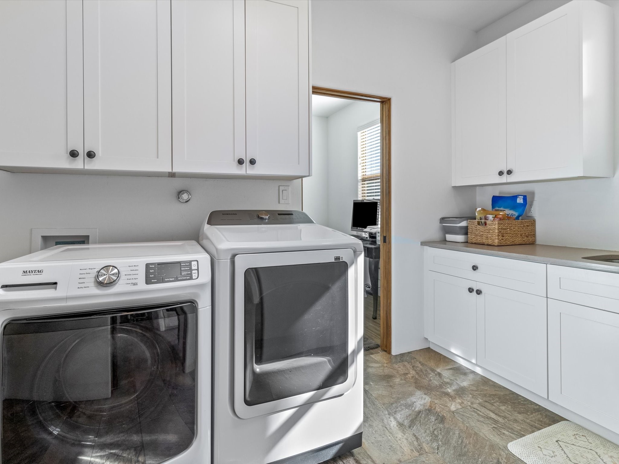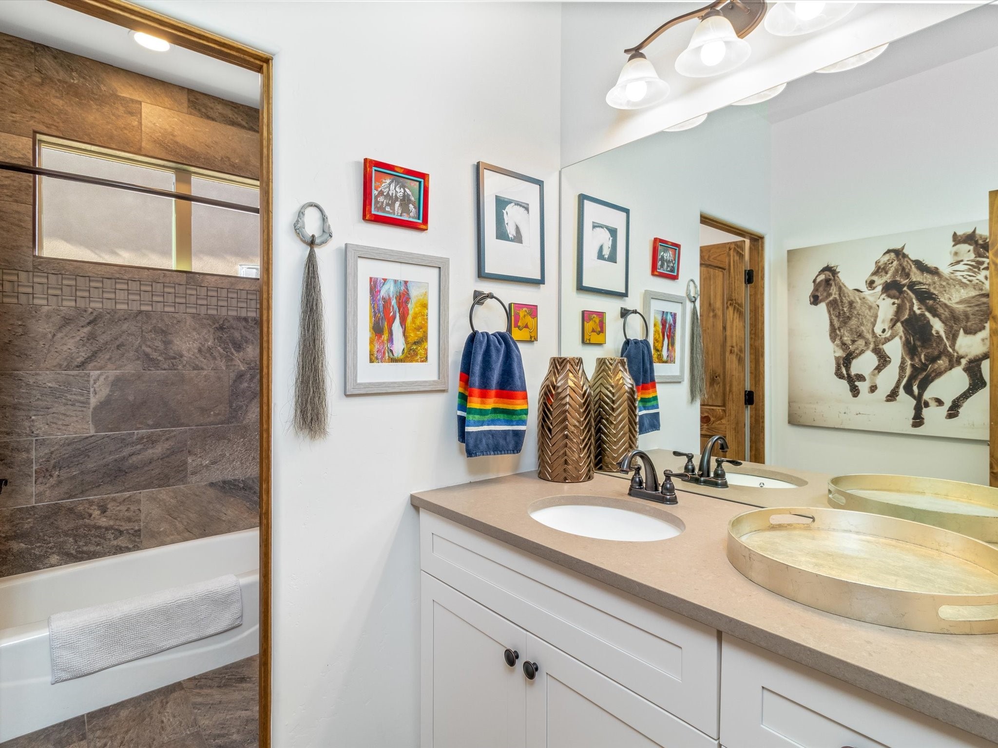 Nestled in the sought-after La Pradera Subdivision, this stunning Spanish-inspired home, built in 2021, has a total of 2,186 sqft. It has pitched Spanish design with clay-like roof and covered portals with rustic wood beams. It's brick pavers & colored driveway create a warm and inviting curb appeal. The rear of the property opens to a serene natural space and there are Walking trails surrounding the community.Step inside to an open-concept layout that seamlessly connects the dining area, kitchen, and living room--perfect for entertaining or relaxing with family. Custom interior lights in the foyer entrance set the tone for elegance, while the living room showcases white-stained beams with T&G planking and a cozy fireplace that adds warmth and character. The kitchen is a chef's dream, featuring a commercial-grade stove, stainless steel appliances, a breakfast island, and a window over the sink that fills the space with natural light. A gas line at the back patio for outdoor cooking adds efficiency and custom window treatments elevate the home's style and comfort. This home offers three spacious bedrooms, including an owner's suite, en-suite bathroom with an enclosed shower, a bath tub and dual sinks. A powder room is conveniently located near the entry. Additional features include a separate laundry room, an extra room ideal for an office, study or small studio, and an attached three-car finished garage equipped with electric vehicle charging capability. Experience the perfect balance of style and practicality in this exceptional La Pradera home. Its inviting interiors, picturesque surroundings, and thoughtful design make it a must-see for those seeking their dream home in Santa Fe.