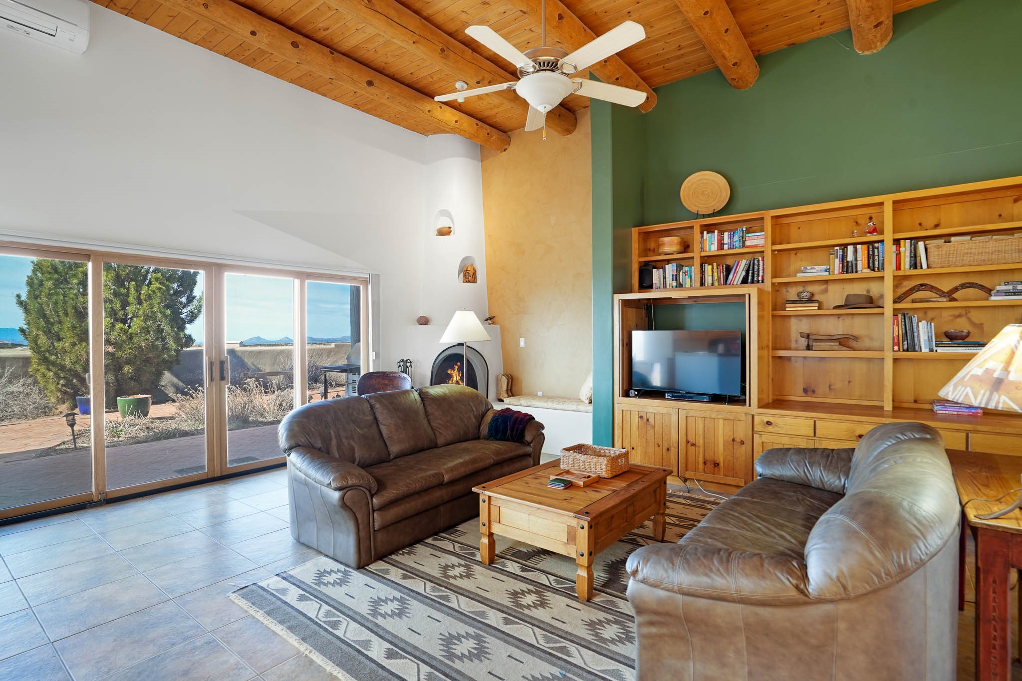 Now priced BELOW APPRAISAL VALUE! Located in the exclusive La Paz neighborhood, 122 La Paz Loop offers stunning sunset views on a 3-acre lot. This 3-bedroom, 2-bathroom home features classic Santa Fe style with beautiful kiva fireplaces in both the living room and primary suite. The open floor plan provides a seamless flow for living and entertaining, while the peaceful outdoor space offers privacy and room to relax. Just a short drive to downtown Santa Fe, you'll enjoy both tranquility and easy access to the city's amenities. Schedule your showing today!