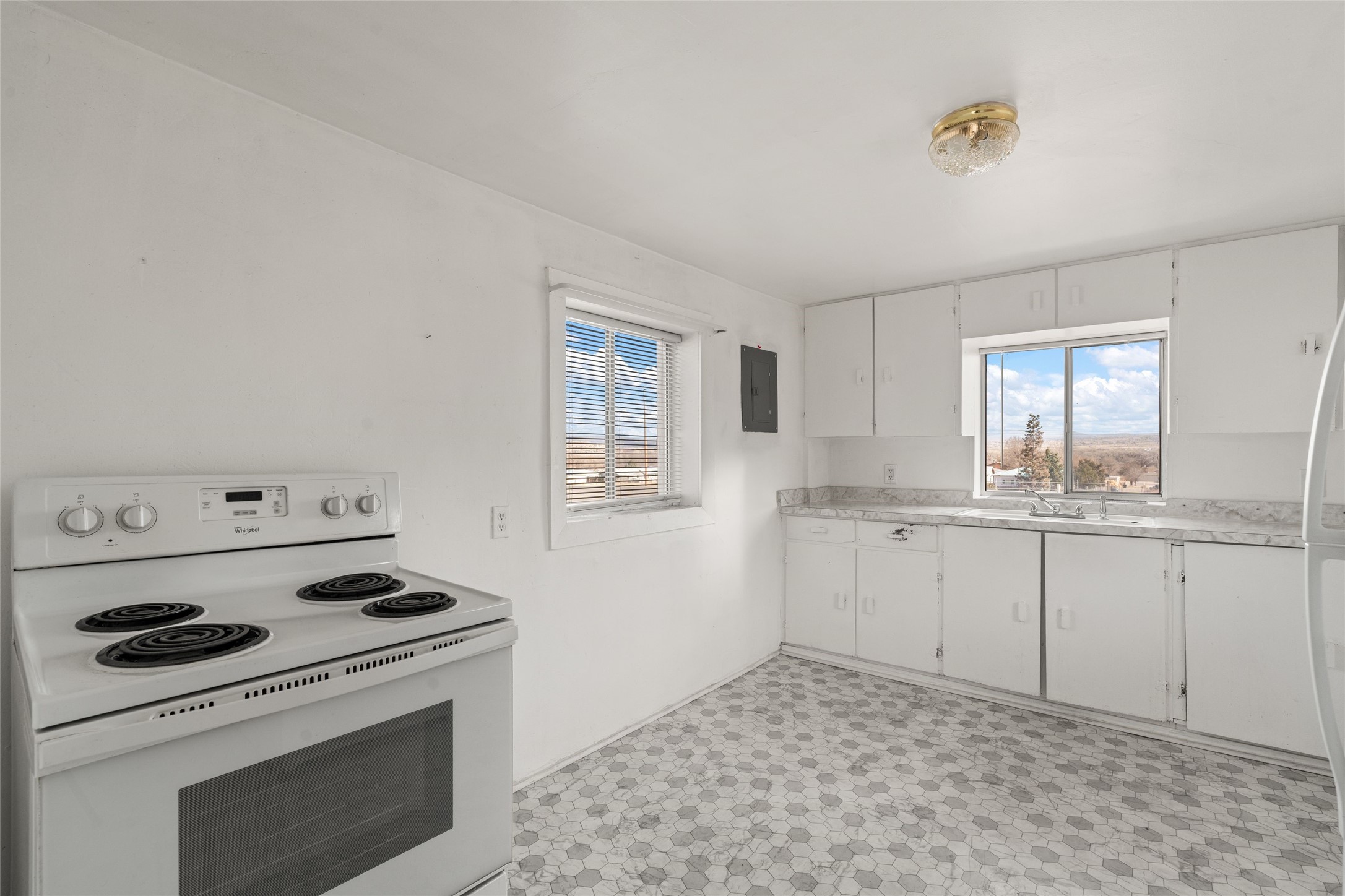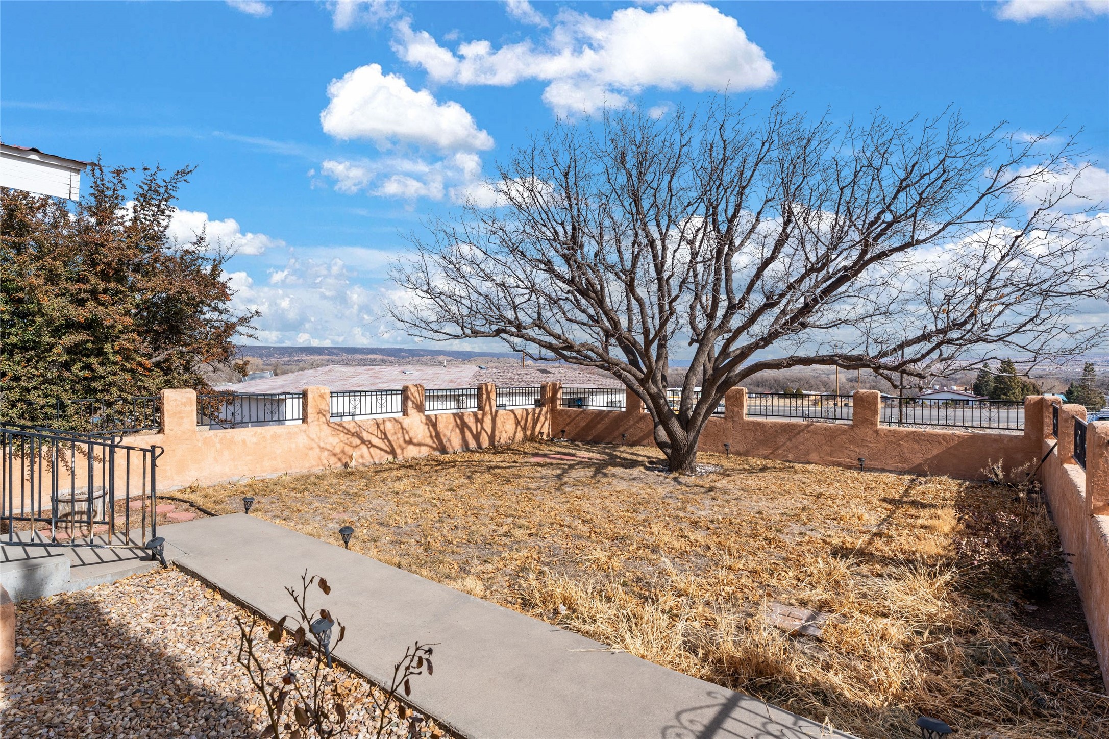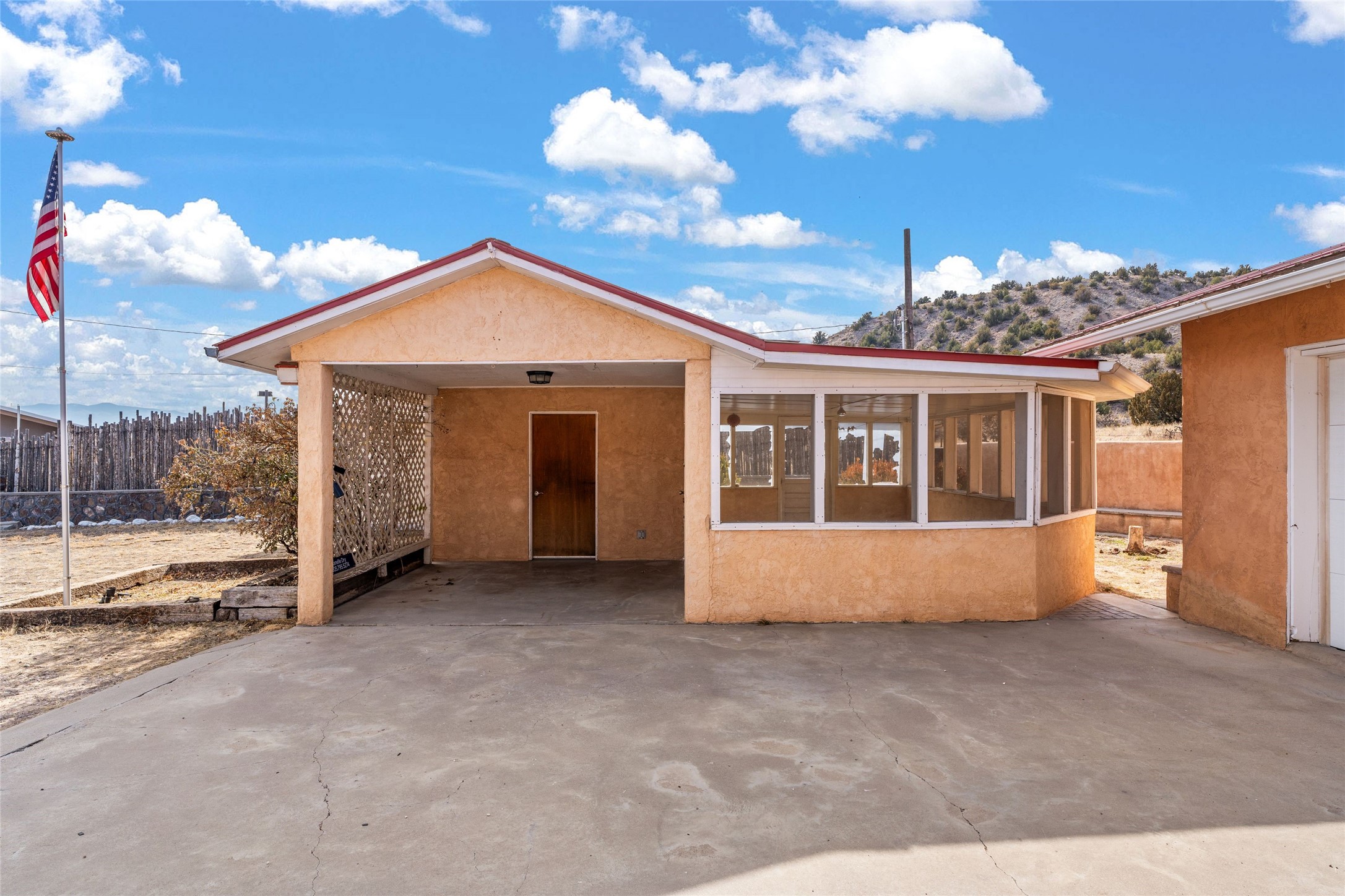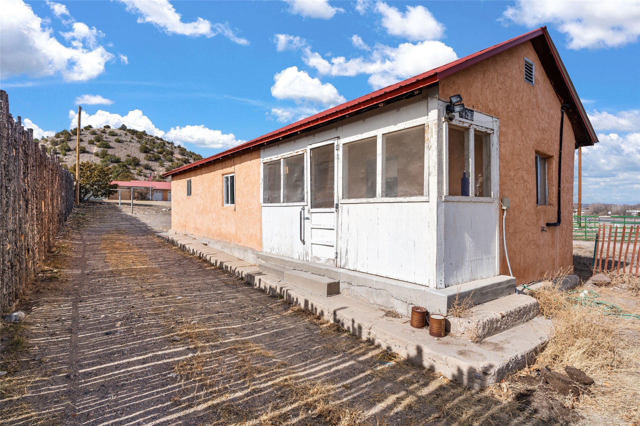 Simply sweet, Pitched Roof Northern NM, part Adobe home and detached Guest Apartment located above the Lush Espanola Valley. On the Westside of the Rio Grande River, lies a well-loved family residence, that offers much to those looking for privacy (the property is 1 acres plus!), close access to the town of Espanola, and a short drive to Los Alamos. Single level, spacious living areas and bedrooms. The large porch with the ability for screens is perfect for dinners and parties or could make a fabulous green house. Three bedrooms in the main house, two bathrooms, attached two car garage. Heaters in house are electric, all appliances electric. Facing the Valley, a fully enclosed yard with healthy fruit bearing tree. There is ample storage in the garage as well as two separate storage areas for tools, gardening equipment, and more. Below the main house is a fully equipped guest apartment with kitchen, living, 1 bedroom, and full bath. Heater in guest apartment is natural gas, there are Two septic systems, 1 for house 1 for guest apt- riser installed and new cleanouts in front yard outside main house.