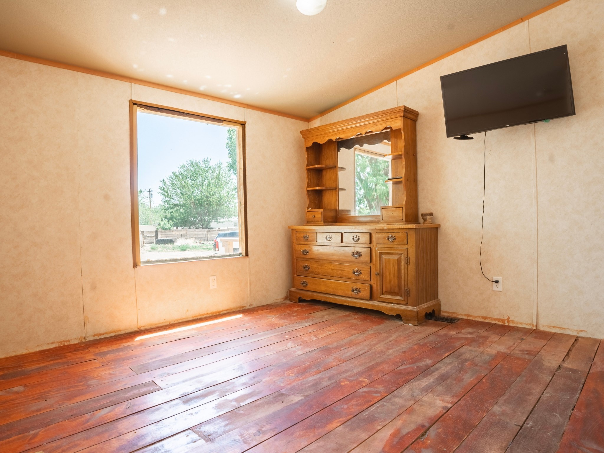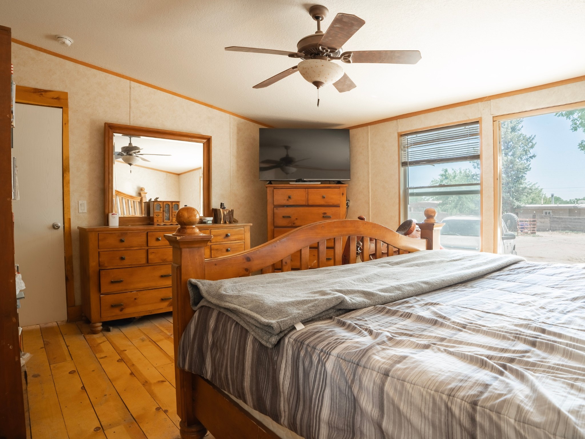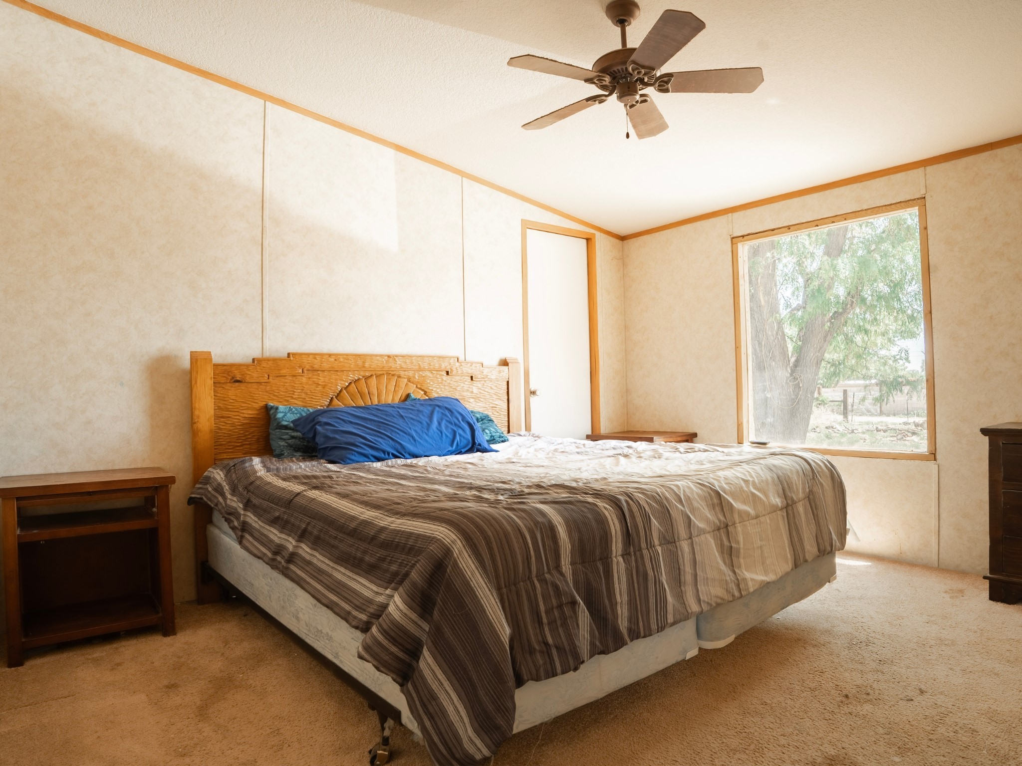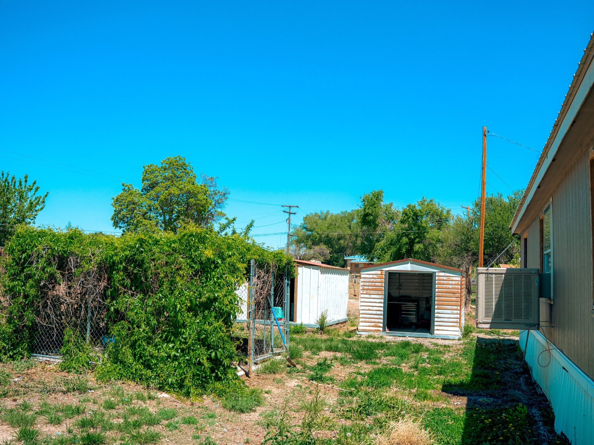 Located on 0.98 acres in the Fairview area of Espaola, this 2012 CLAY manufactured home offers approximately 1,944 square feet, with 4 bedrooms and 2 full bathrooms. The spacious and functional layout includes defined areas for living, dining, and a large kitchen, offering flexibility for a variety of uses. The lot is fully fenced and features two storage sheds, a chicken coop, a small carport, and plenty of space for parking. A newer propanel roof was completed in 2024. According to available information, the property includes 0.90 acre-feet of irrigation water rights through the Santa Cruz Ditch. While this has been verified, buyers and their brokers are advised to confirm all water rights and usage with the New Mexico State Engineer office.This property presents a great opportunity for those looking for space, utility, and water access in a convenient Rio Arriba County location. Approximately 30 minutes from Los Alamos and Santa Fe. Come and see this great home today!