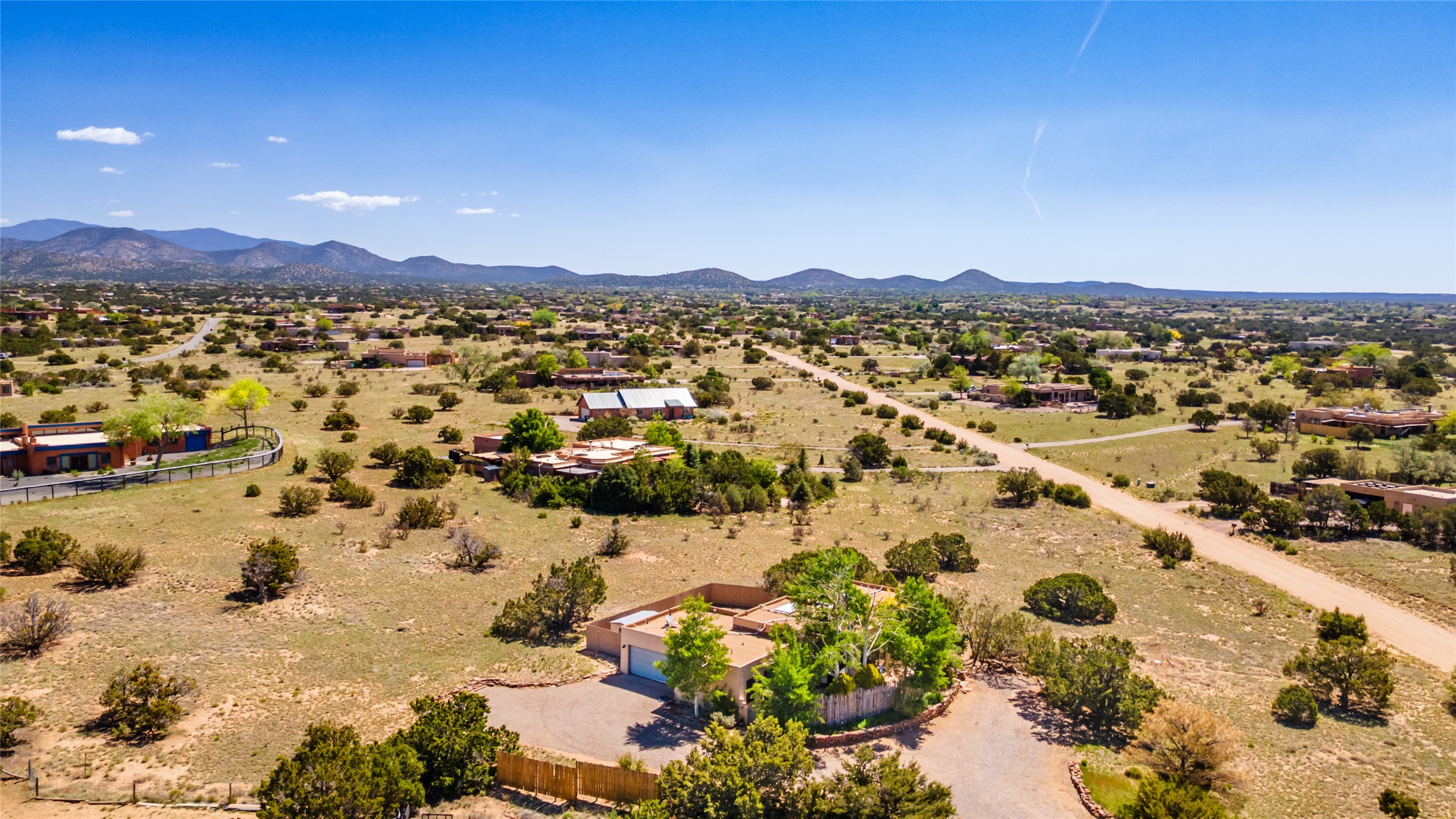 Discover the beauty and serenity of this stunningly landscaped Santa Fe retreat at 22 Esquila Rd. Boasting 3 bedrooms and 2 bathrooms, this thoughtfully designed and updated home offers a perfect blend of Southwestern charm and modern comfort.The primary suite is a true sanctuary, featuring a cozy corner kiva fireplace, a spacious walk-in closet, and bathroom with jetted tub--ideal for relaxation after a busy day. The open kitchen with stainless steel appliances is directly connected to the living area which is airy and inviting; soaring ceilings and vibrant Vigas add authentic southwestern character. Large windows flood the space with natural light and frame breathtaking views of the gorgeously landscaped patio courtyard, creating an idyllic setting for outdoor entertaining or quiet retreat. The lovely guest room is a second primary with adjoining bathroom which opens into the courtyard.Step outside to your private oasis where meticulously curated gardens on a timed sprinkler system create a peaceful haven with vibrant coloring plants. The landscaping was designed for maximum color and minimum maintenance. Walk out onto inviting patios with plentiful shade provided by mature Aspens in the warm Summer months. Whether enjoying a morning coffee or hosting friends beneath the starry sky, this property seamlessly combines indoor comfort with outdoor paradise.Don't miss the opportunity to make this beautifully landscaped Santa Fe home your own!