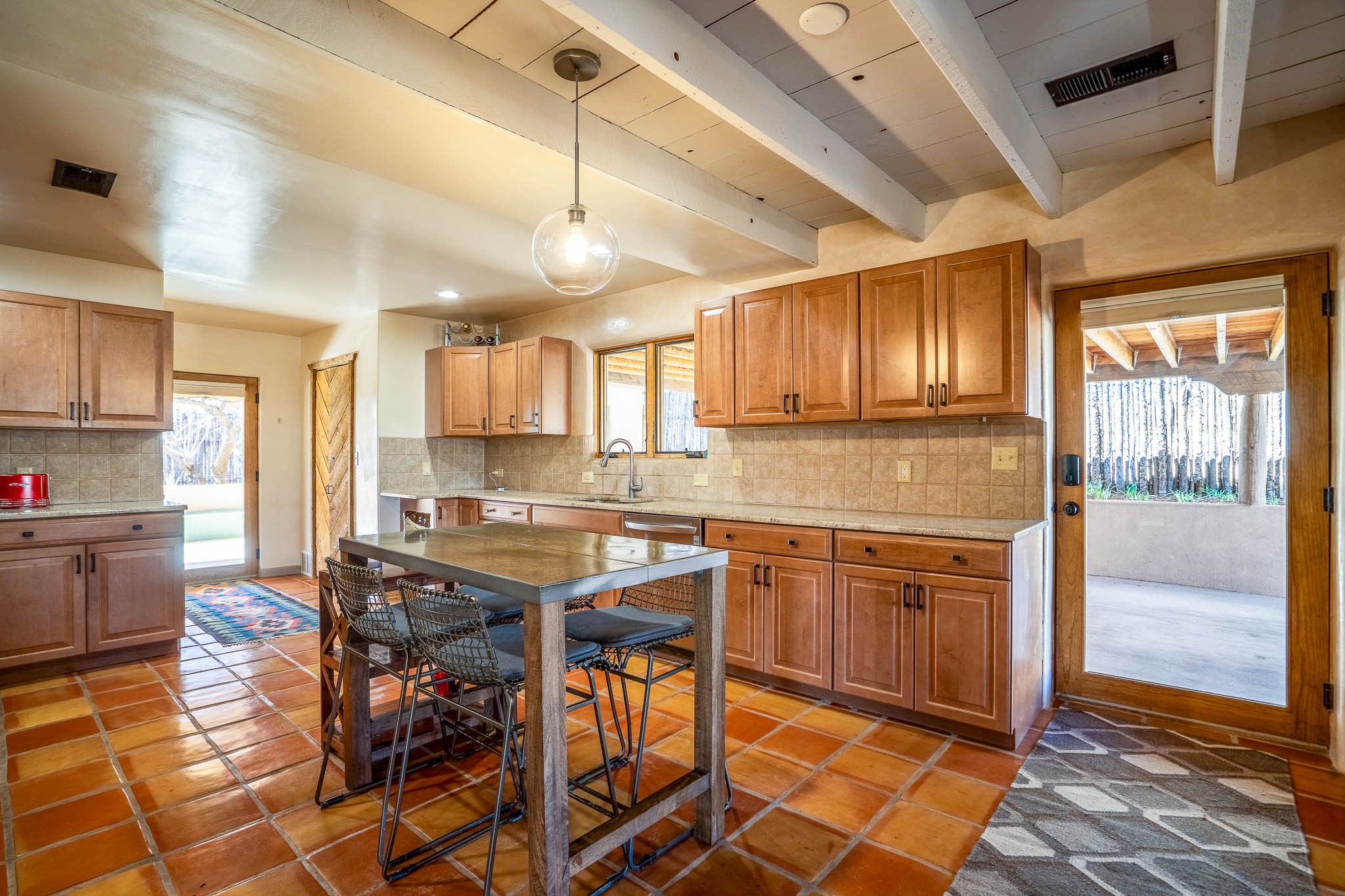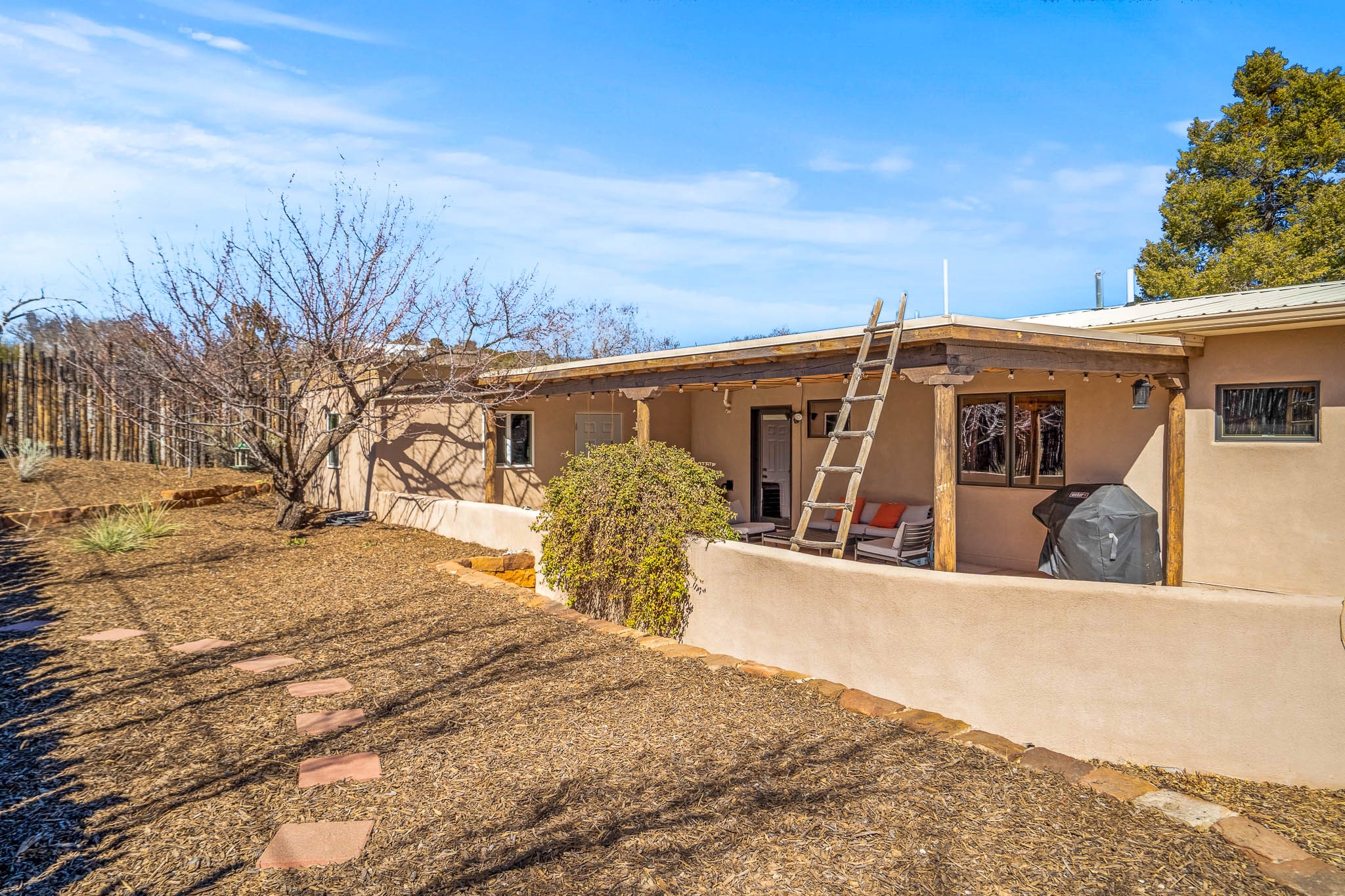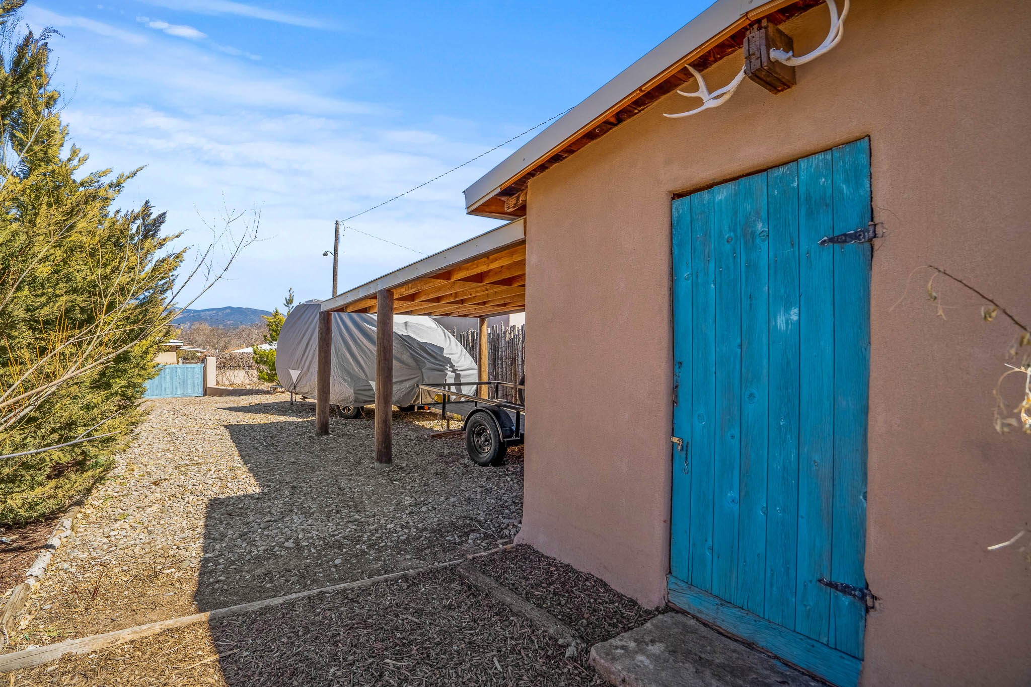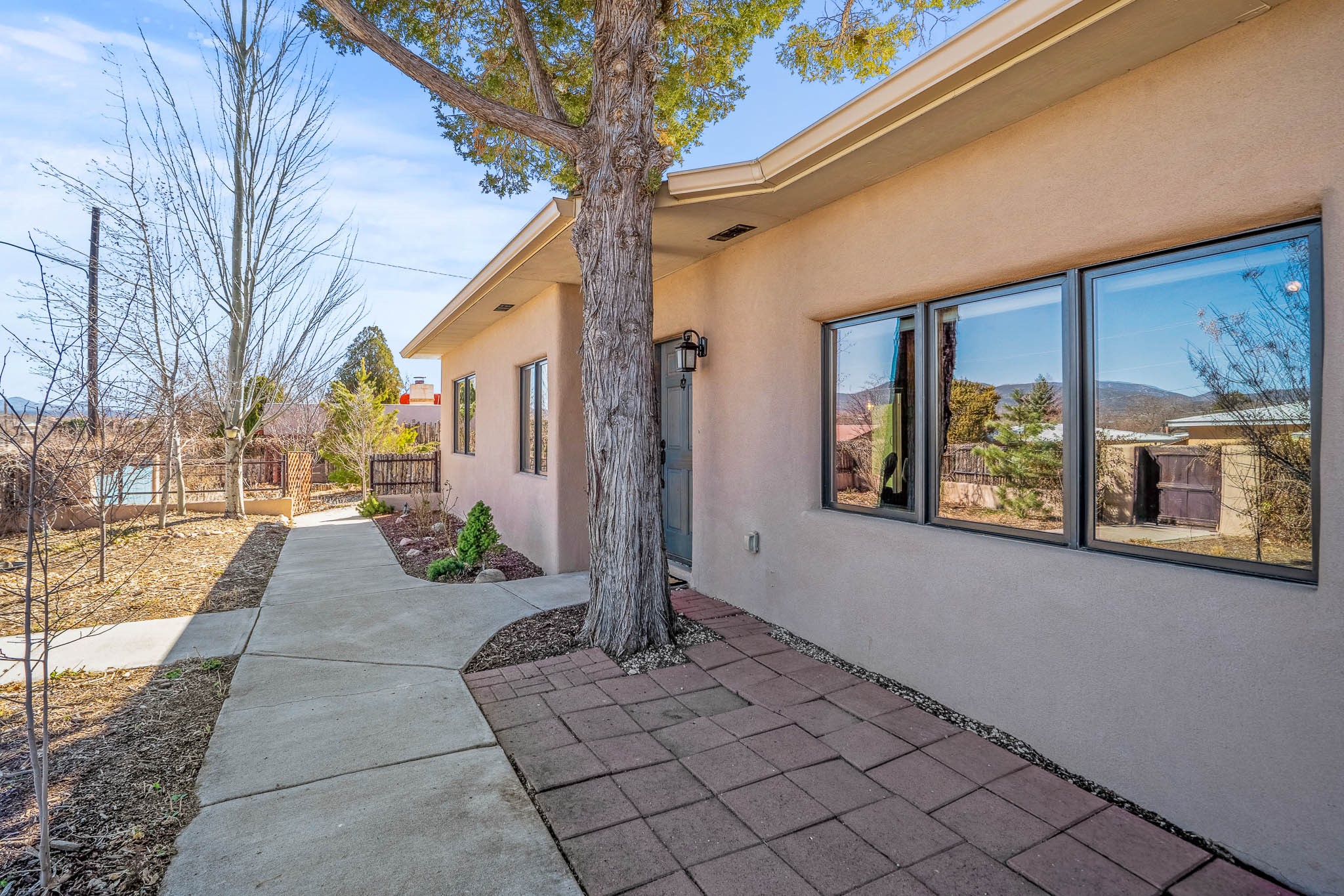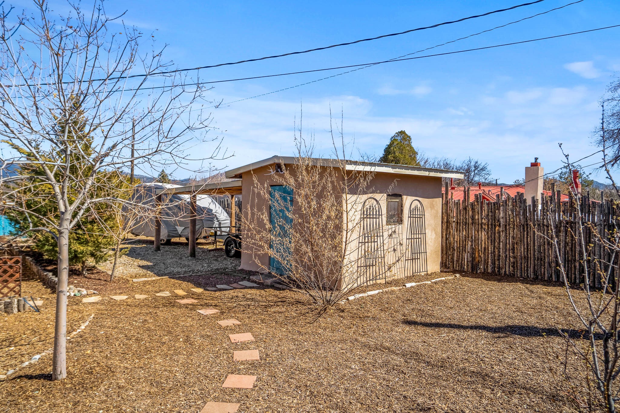 This delightful Santa Fe gem, nestled on a generous 1/4-acre city lot, was completely renovated about 8 years ago and offers approximately 1,913 sq. ft. of living space. Boasting classic Santa Fe charm, the home features traditional vigas, a large country kitchen, granite countertops, and beautiful champagne plaster walls. Enjoy ample storage throughout, gas cooking, and custom details including nichos and wood and Saltillo tile floors.With 3 bedrooms and 2 full baths, this home includes two cozy fireplaces, forced air heating, and central A/C. The pitched roof adds to the Southwestern style, while the newly constructed, expansive portal with a reinforced roof is perfect for taking in both city and mountain views.The property also offers a wealth of additional amenities: two carports (one with ample space for 3-4 cars), a one-car garage, shed, and large driveway gates that easily accommodate an RV or trailer. Beautifully landscaped grounds are complemented by a professionally installed manifold for a sprinkler system. This versatile property is private and in a great location near the Santa Fe River and the River Trail, Alto Park and the Casa Solana Shopping Center. Come See!