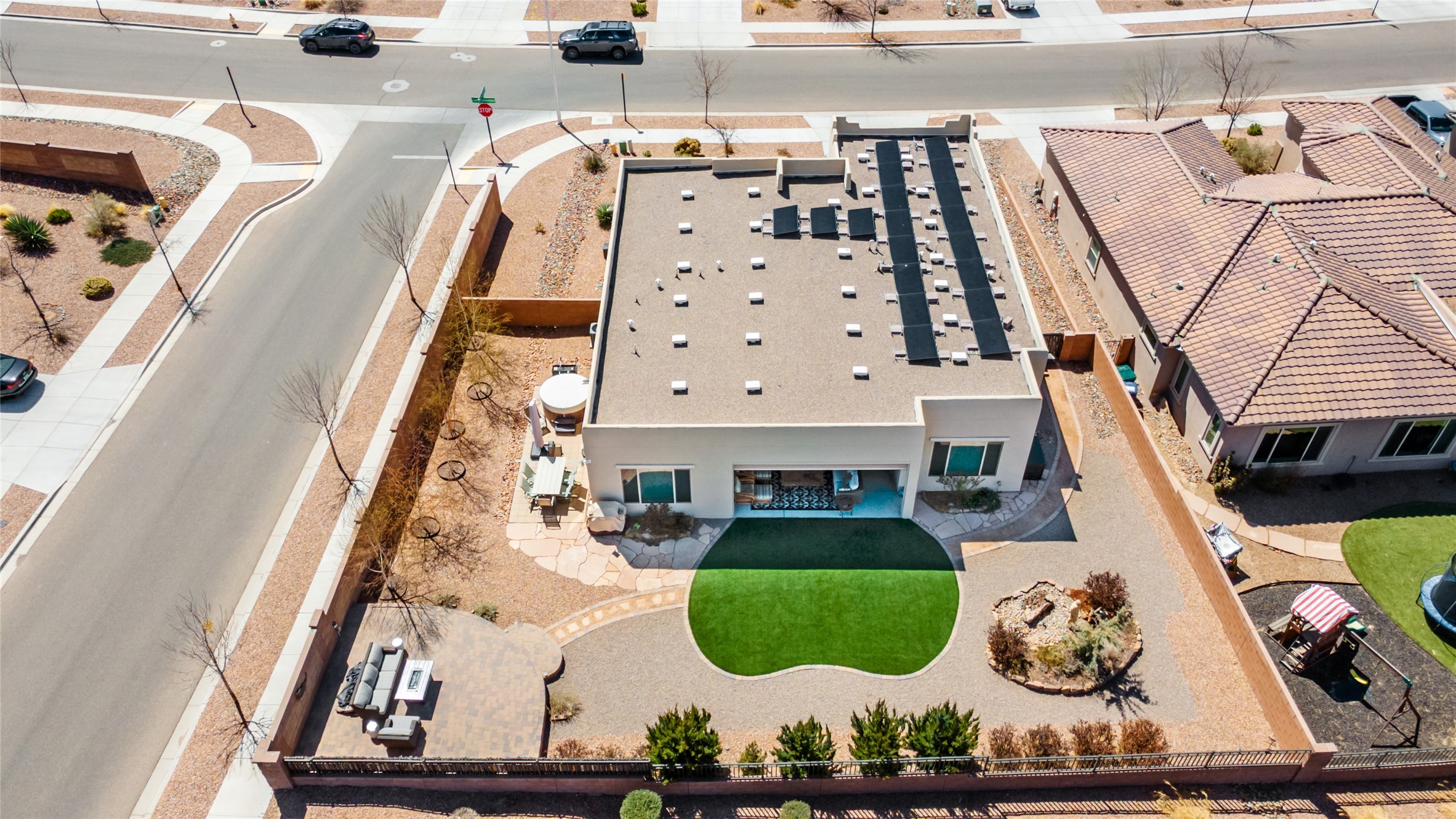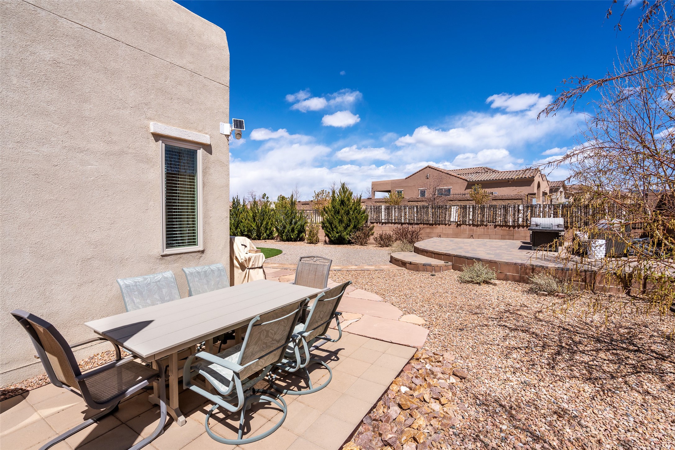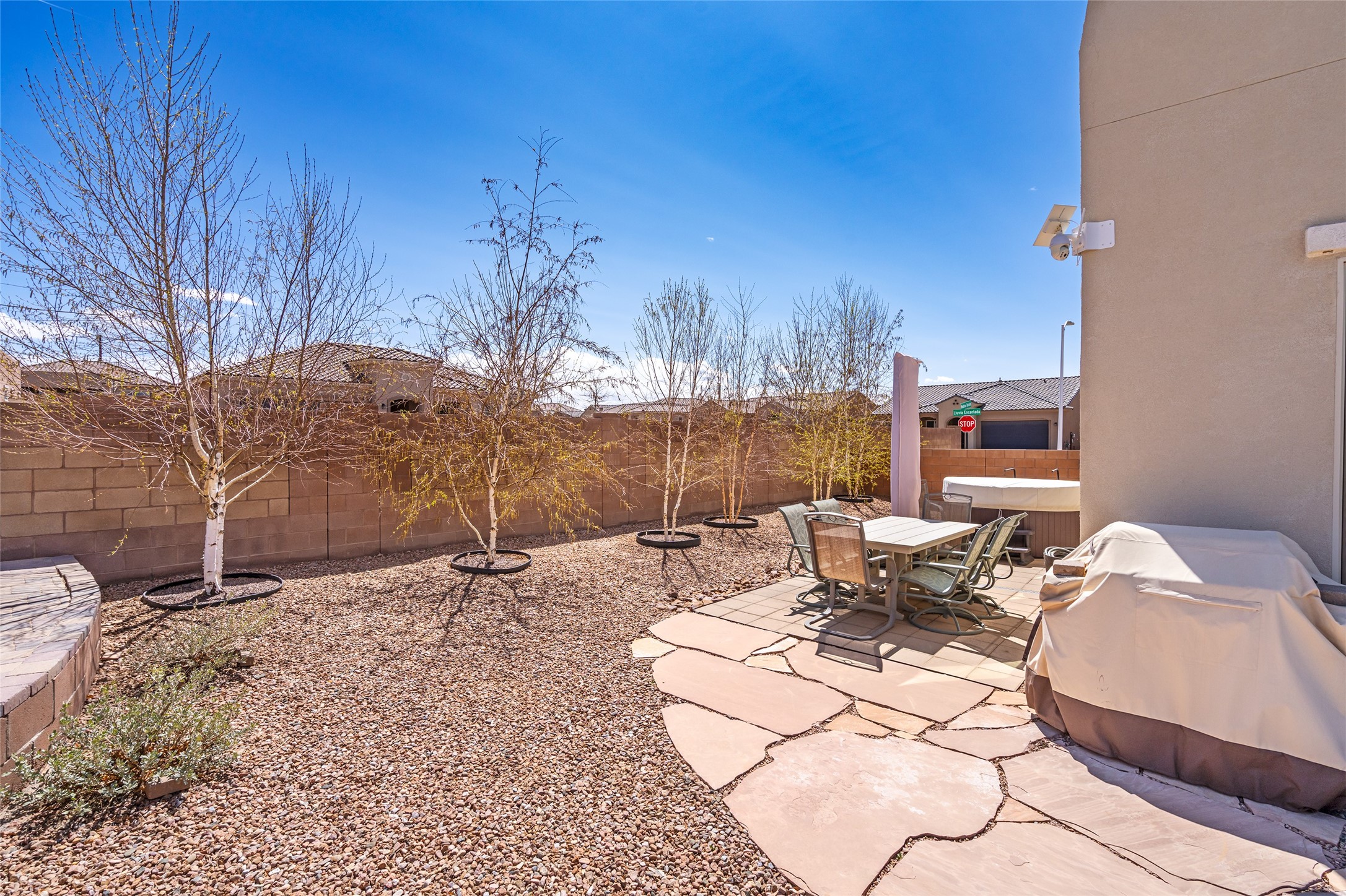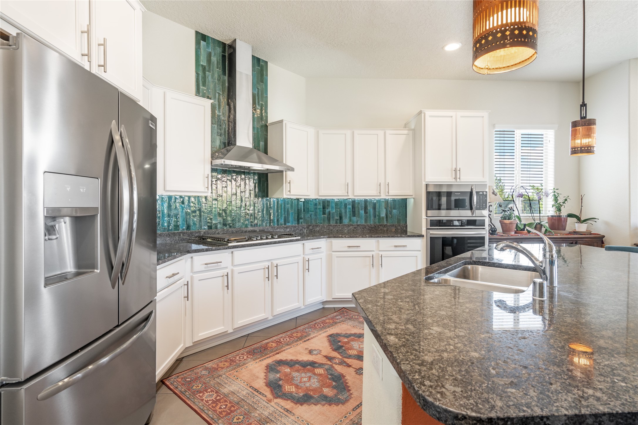 A beautifully maintained home built in 2018 that blends modern comfort with timeless style. This home is in a prime location on a corner lot, and a spacious 3-bedroom, 2-bathroom residence features an open floor plan with tile flooring throughout, providing both durability and elegance. The gourmet kitchen boasts stainless steel appliances, granite countertops, and ample cabinetry, making it a perfect space for cooking and entertaining. The adjacent living area is warm and inviting, offering plenty of natural light and room for relaxation. The primary bedroom is a peaceful retreat, complete with a generous walk-in closet and an en-suite bathroom. Two additional well-sized bedrooms provide flexibility for family, guests, or home office needs. Step outside to enjoy the large, beautifully landscaped backyard with a covered patio--ideal for outdoor dining, relaxing, or gardening. The separate laundry room adds convenience, while the overall layout ensures both privacy and functionality. This stunning home is a true gem, combining modern amenities with a serene setting. Don't miss this opportunity!