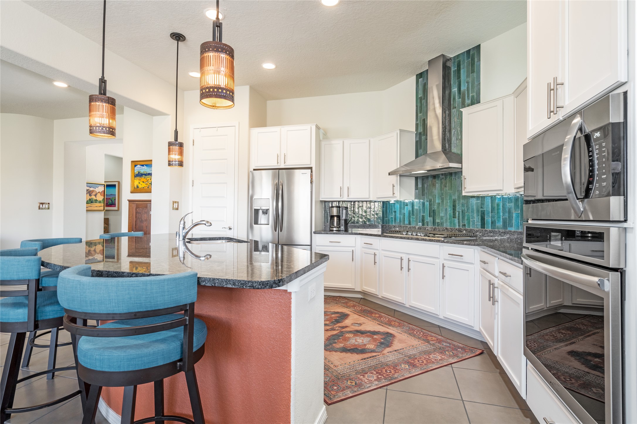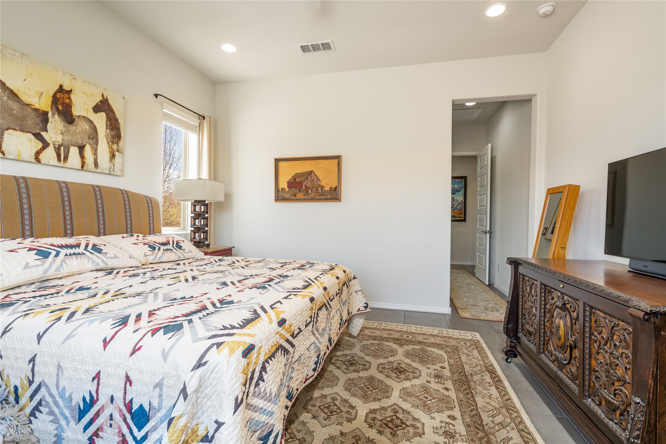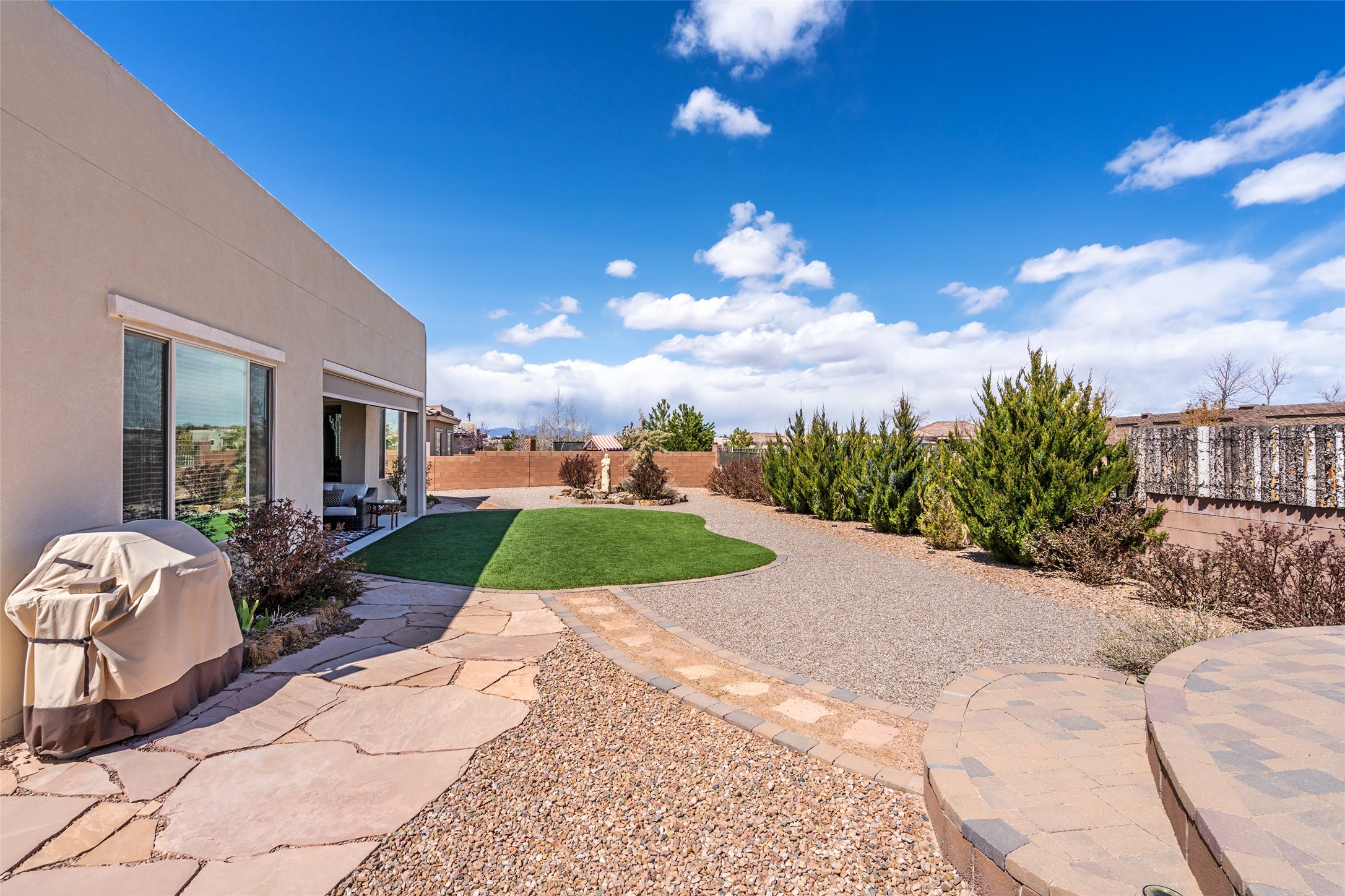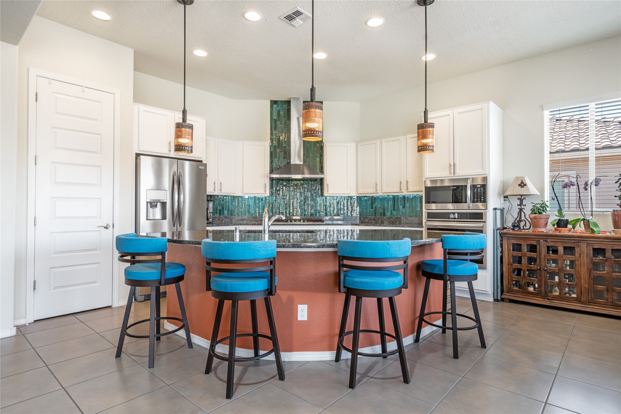 A beautifully maintained home built in 2018 that blends modern comfort with timeless style. This home is in a prime location on a corner lot, and a spacious 3-bedroom, 2-bathroom residence features an open floor plan with tile flooring throughout, providing both durability and elegance. The gourmet kitchen boasts stainless steel appliances, granite countertops, and ample cabinetry, making it a perfect space for cooking and entertaining. The adjacent living area is warm and inviting, offering plenty of natural light and room for relaxation. The primary bedroom is a peaceful retreat, complete with a generous walk-in closet and an en-suite bathroom. Two additional well-sized bedrooms provide flexibility for family, guests, or home office needs. Step outside to enjoy the large, beautifully landscaped backyard with a covered patio--ideal for outdoor dining, relaxing, or gardening. The separate laundry room adds convenience, while the overall layout ensures both privacy and functionality. This stunning home is a true gem, combining modern amenities with a serene setting. Don't miss this opportunity!