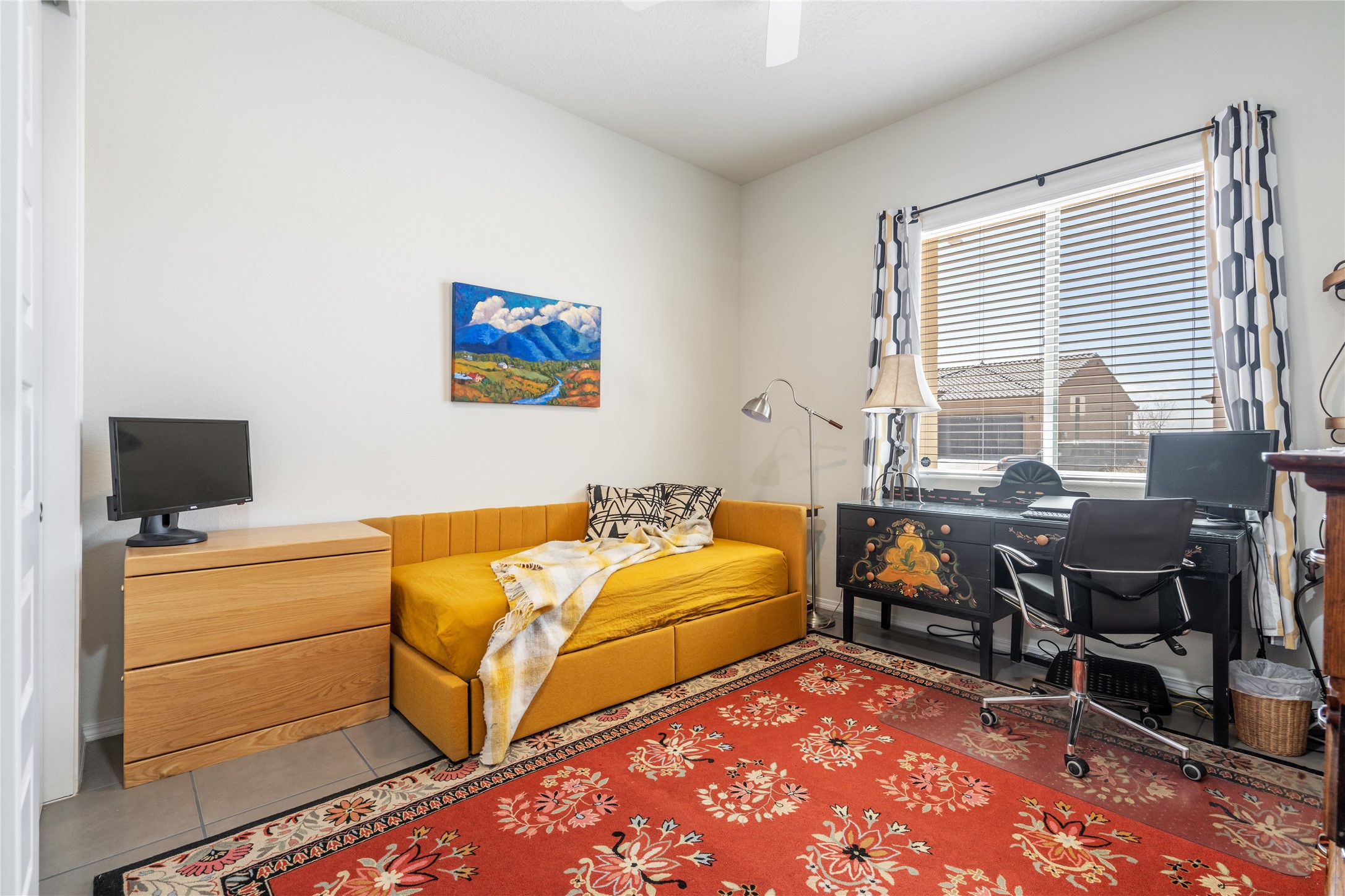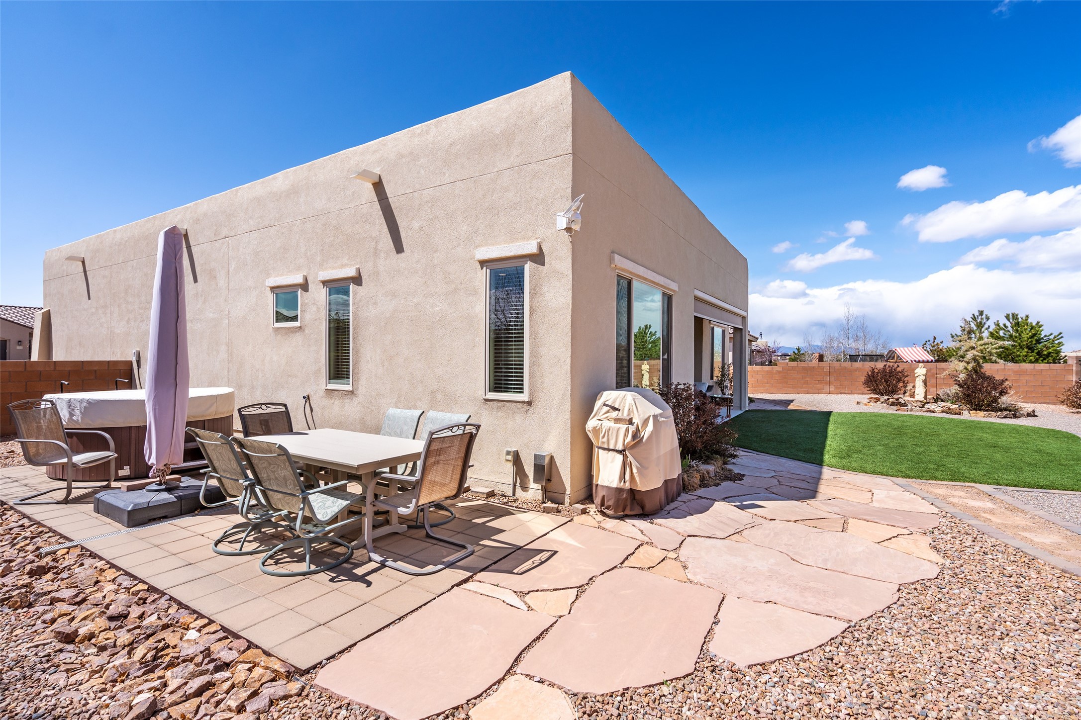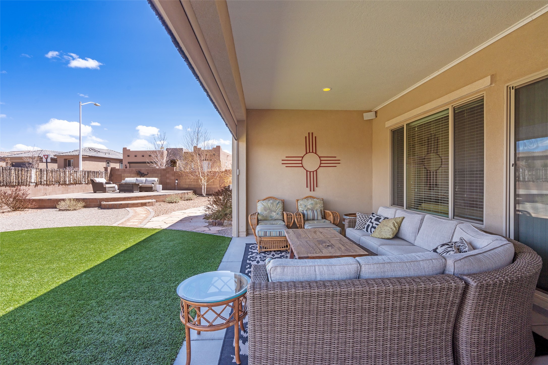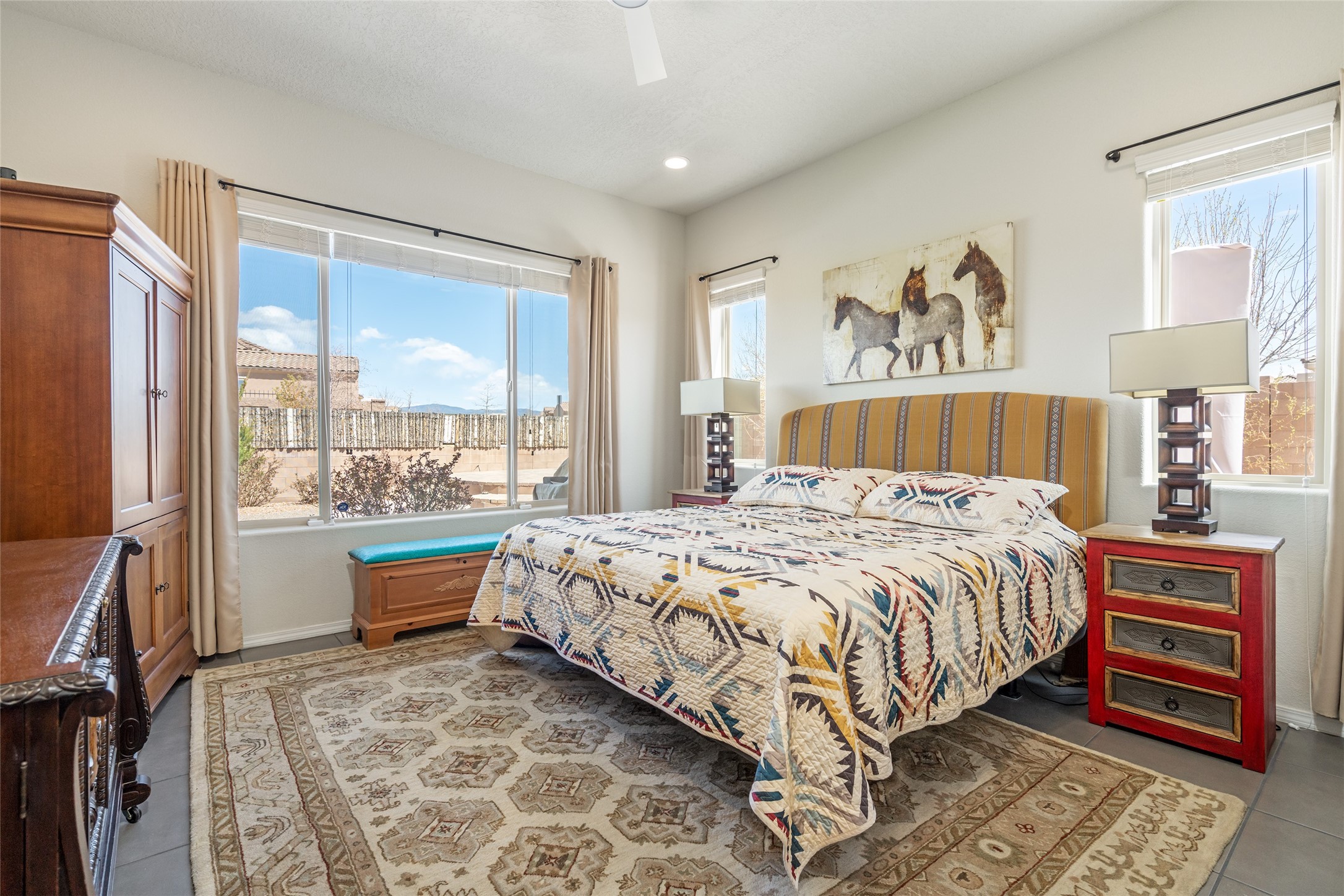 A beautifully maintained home built in 2018 that blends modern comfort with timeless style. This home is in a prime location on a corner lot, and a spacious 3-bedroom, 2-bathroom residence features an open floor plan with tile flooring throughout, providing both durability and elegance. The gourmet kitchen boasts stainless steel appliances, granite countertops, and ample cabinetry, making it a perfect space for cooking and entertaining. The adjacent living area is warm and inviting, offering plenty of natural light and room for relaxation. The primary bedroom is a peaceful retreat, complete with a generous walk-in closet and an en-suite bathroom. Two additional well-sized bedrooms provide flexibility for family, guests, or home office needs. Step outside to enjoy the large, beautifully landscaped backyard with a covered patio--ideal for outdoor dining, relaxing, or gardening. The separate laundry room adds convenience, while the overall layout ensures both privacy and functionality. This stunning home is a true gem, combining modern amenities with a serene setting. Don't miss this opportunity!