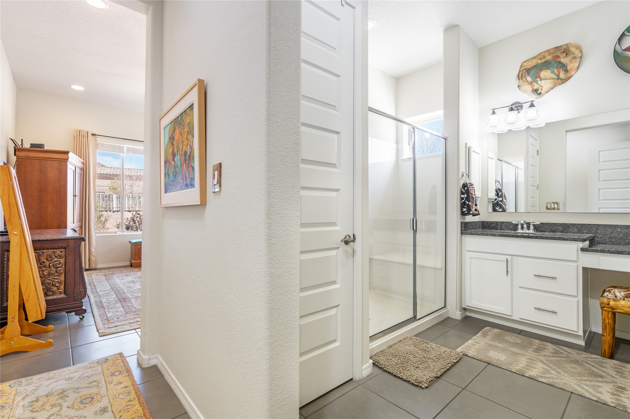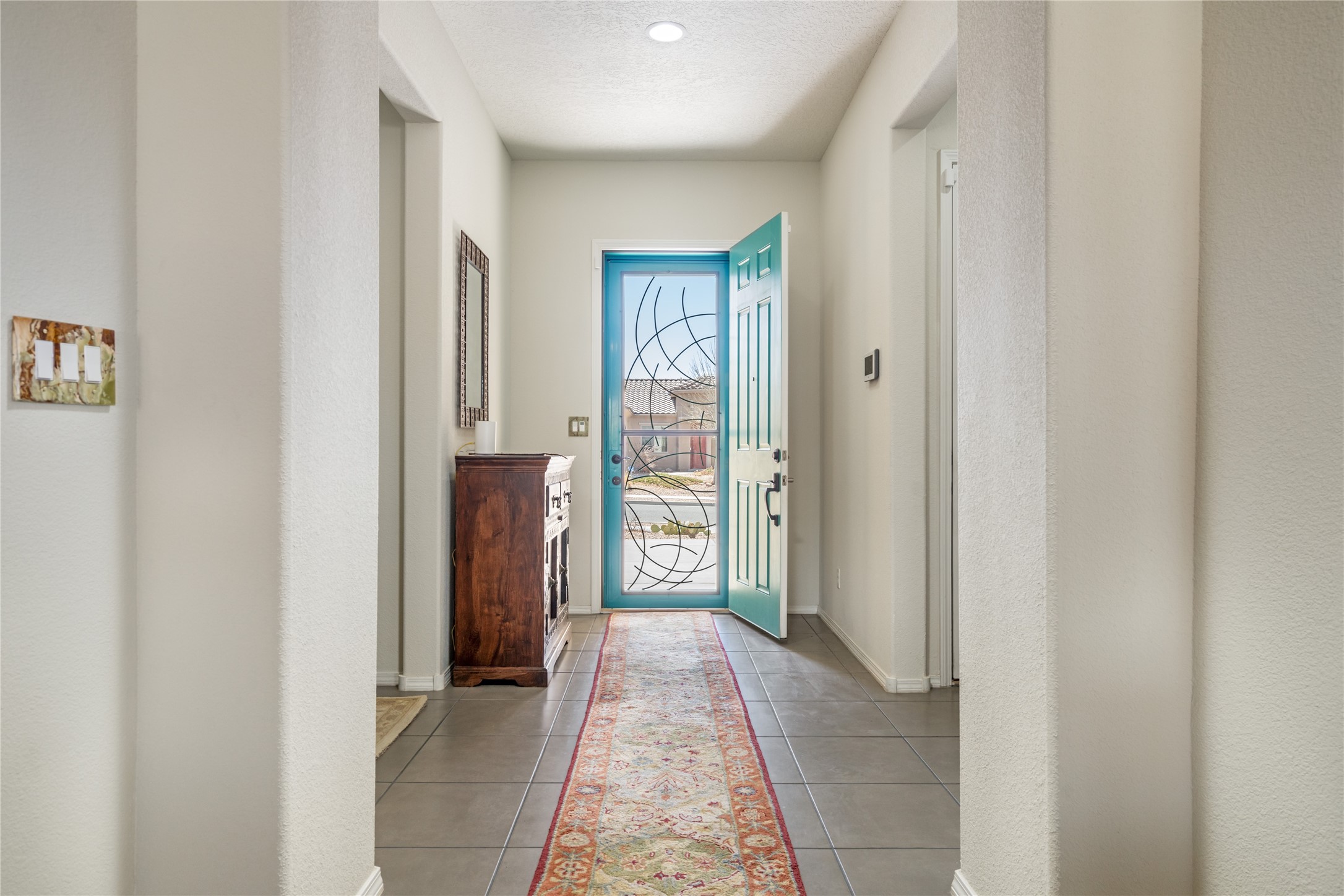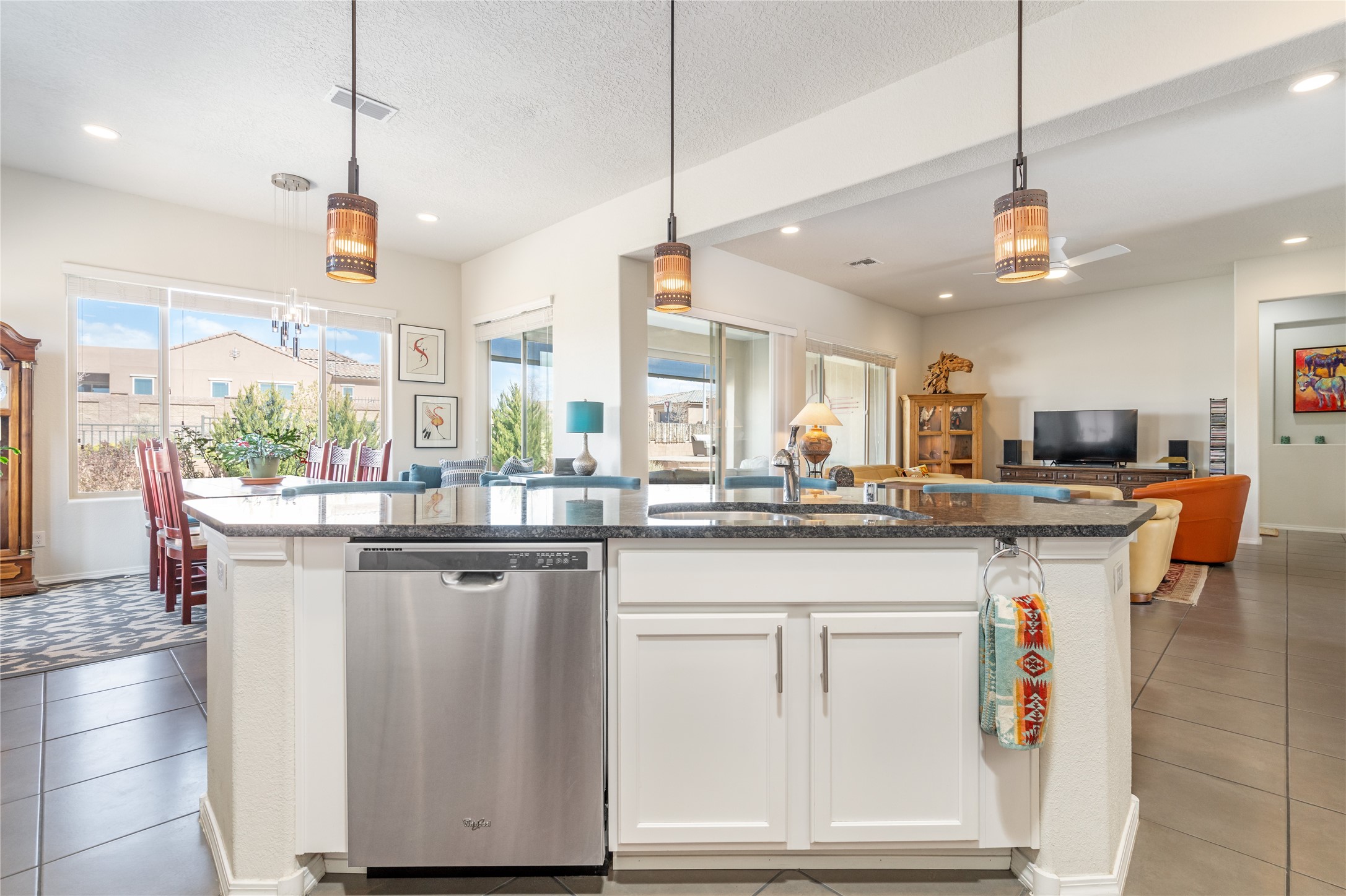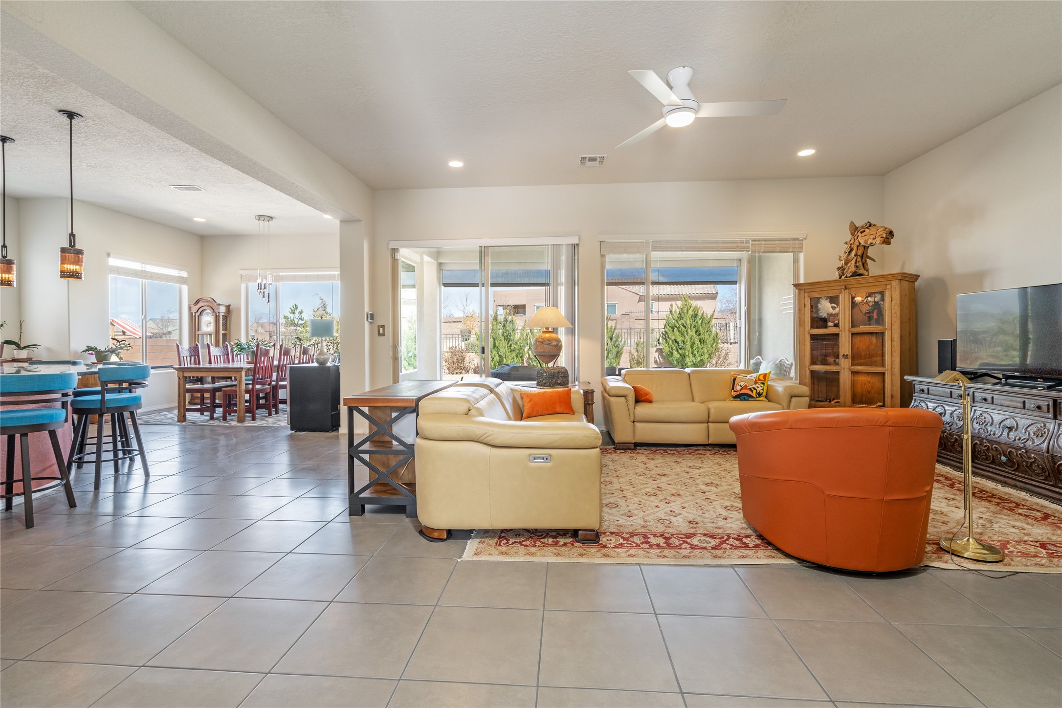 A beautifully maintained home built in 2018 that blends modern comfort with timeless style. This home is in a prime location on a corner lot, and a spacious 3-bedroom, 2-bathroom residence features an open floor plan with tile flooring throughout, providing both durability and elegance. The gourmet kitchen boasts stainless steel appliances, granite countertops, and ample cabinetry, making it a perfect space for cooking and entertaining. The adjacent living area is warm and inviting, offering plenty of natural light and room for relaxation. The primary bedroom is a peaceful retreat, complete with a generous walk-in closet and an en-suite bathroom. Two additional well-sized bedrooms provide flexibility for family, guests, or home office needs. Step outside to enjoy the large, beautifully landscaped backyard with a covered patio--ideal for outdoor dining, relaxing, or gardening. The separate laundry room adds convenience, while the overall layout ensures both privacy and functionality. This stunning home is a true gem, combining modern amenities with a serene setting. Don't miss this opportunity!