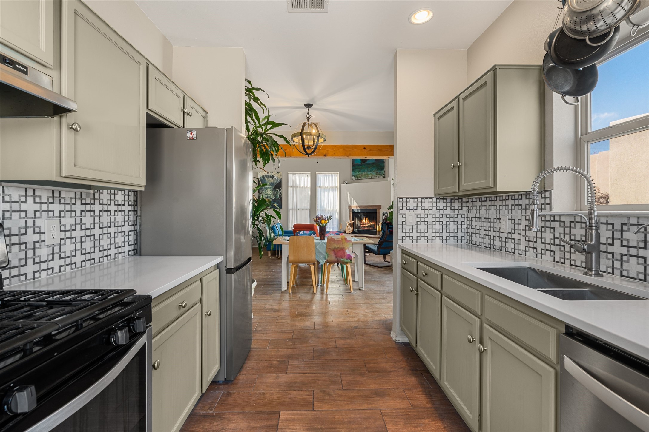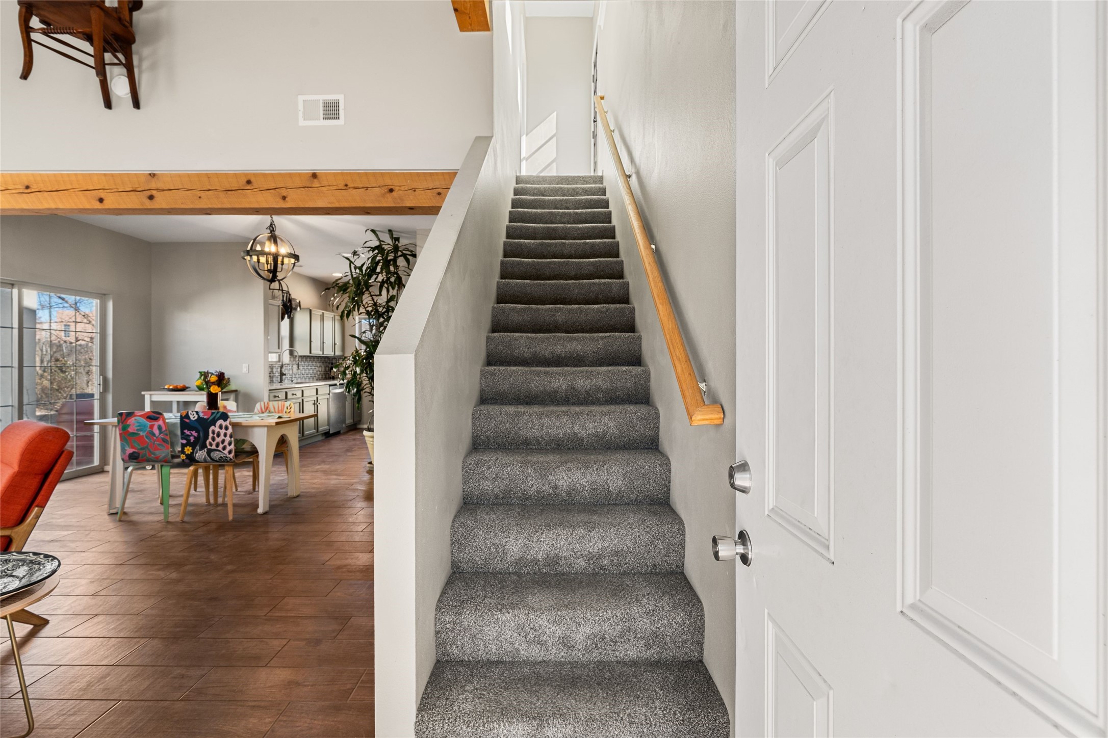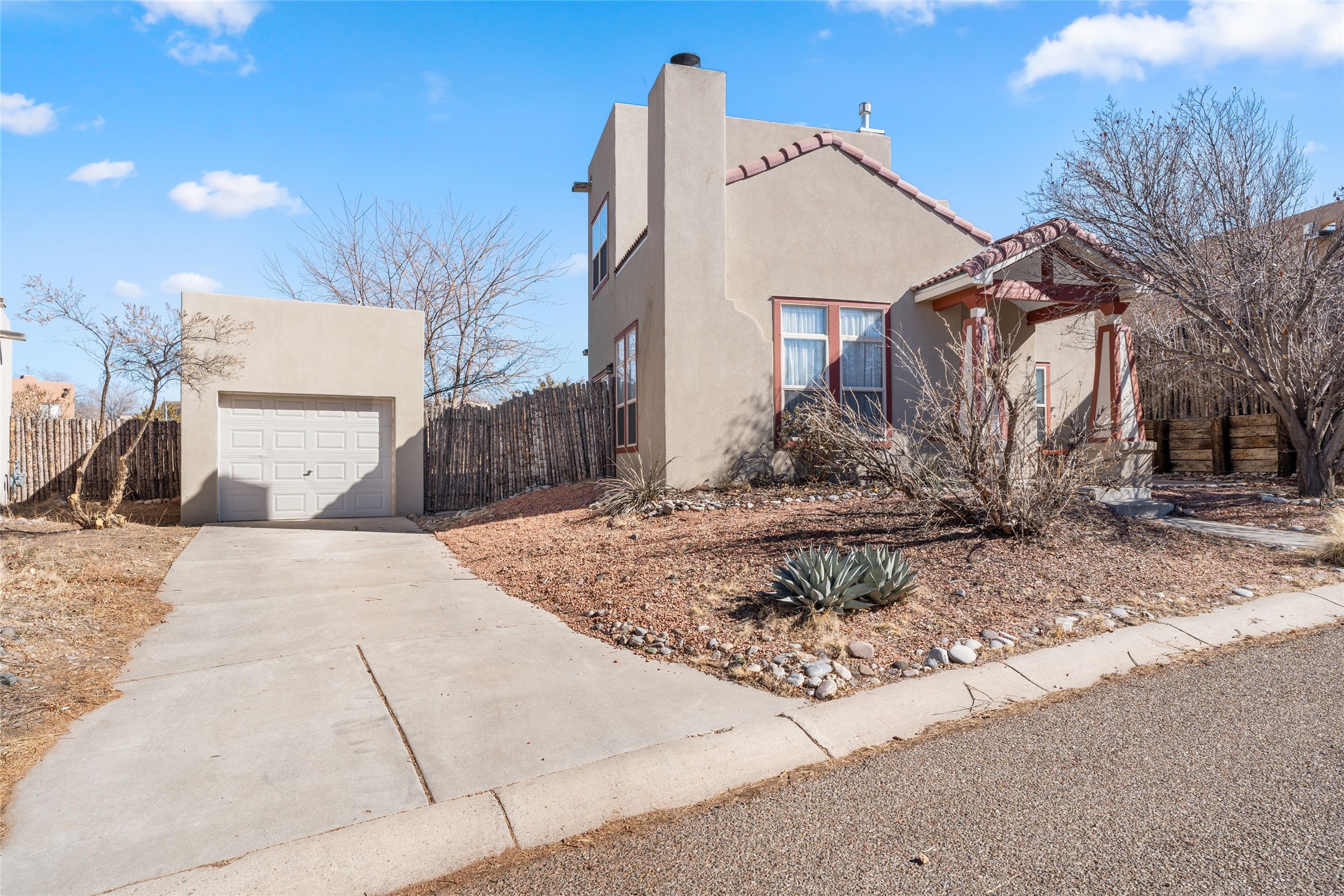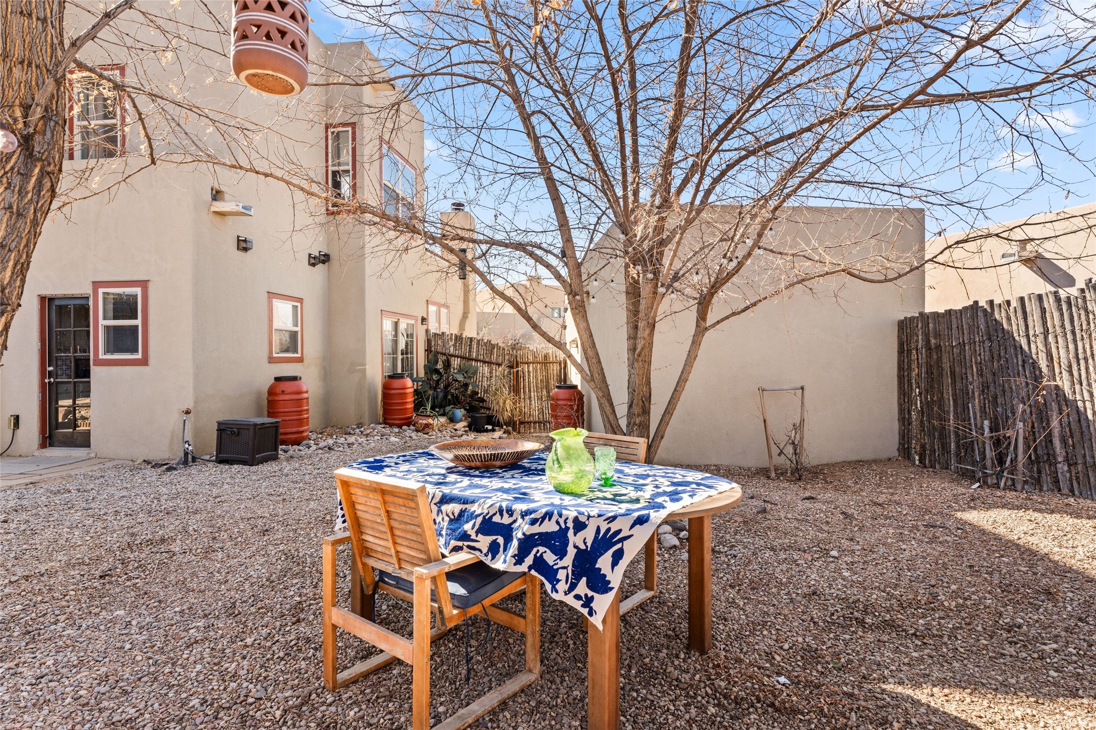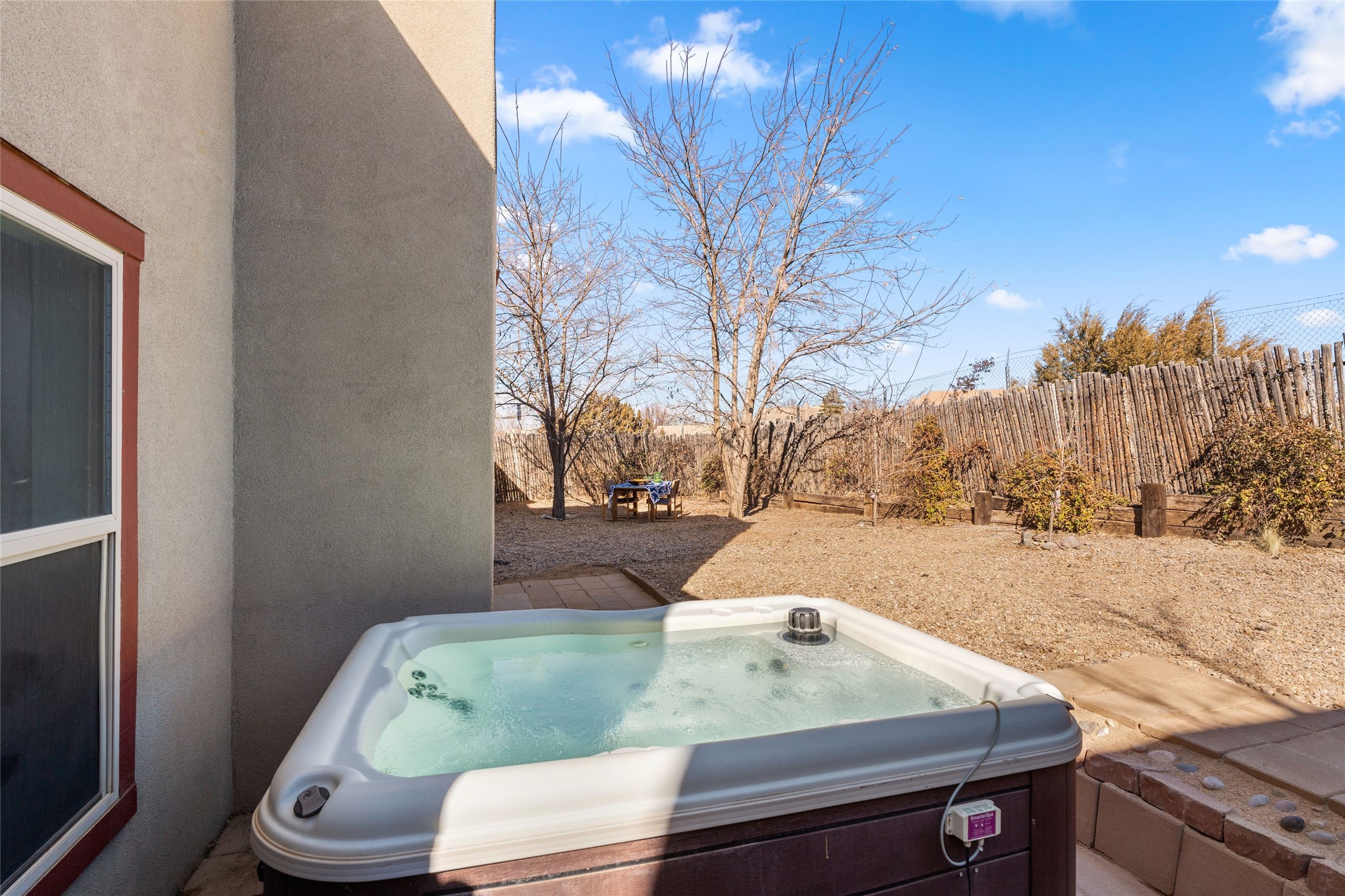This upgraded and beautifully maintained Nava Ade home offers a perfect blend of comfort and convenience. As you enter under the fruit-bearing plum tree by the front door, you'll be greeted by an open living and dining area, with easy access to the expansive backyard - perfect for entertaining or relaxation. The home boasts a cozy wood-burning fireplace, ideal for those chilly evenings. The renovated kitchen features upgraded quartz countertops and a stylishly tiled backsplash that adds character and functionality. The home has two bedrooms and a full bath downstairs with a principal suite upstairs including ensuite bath, walk-in closet, and a private deck - a great spot to unwind and enjoy the surrounding views. The roomy pantry, laundry area, and closets all have built-in shelving. The large, fully fenced backyard features a hot tub and producing fruit trees, including apple, apricot, and peach, as well as three varieties of grapes, a perfect place to enjoy the seasons. The property is situated in the desirable Nava Ade community offering top-notch amenities, including a swimming pool, exercise room, steam shower, clubhouse, and a scenic path and trail system. Conveniently located just 15 minutes from the historic downtown Plaza and with easy access to retail shops and I-25, this home is ideally located for both relaxation and convenience.