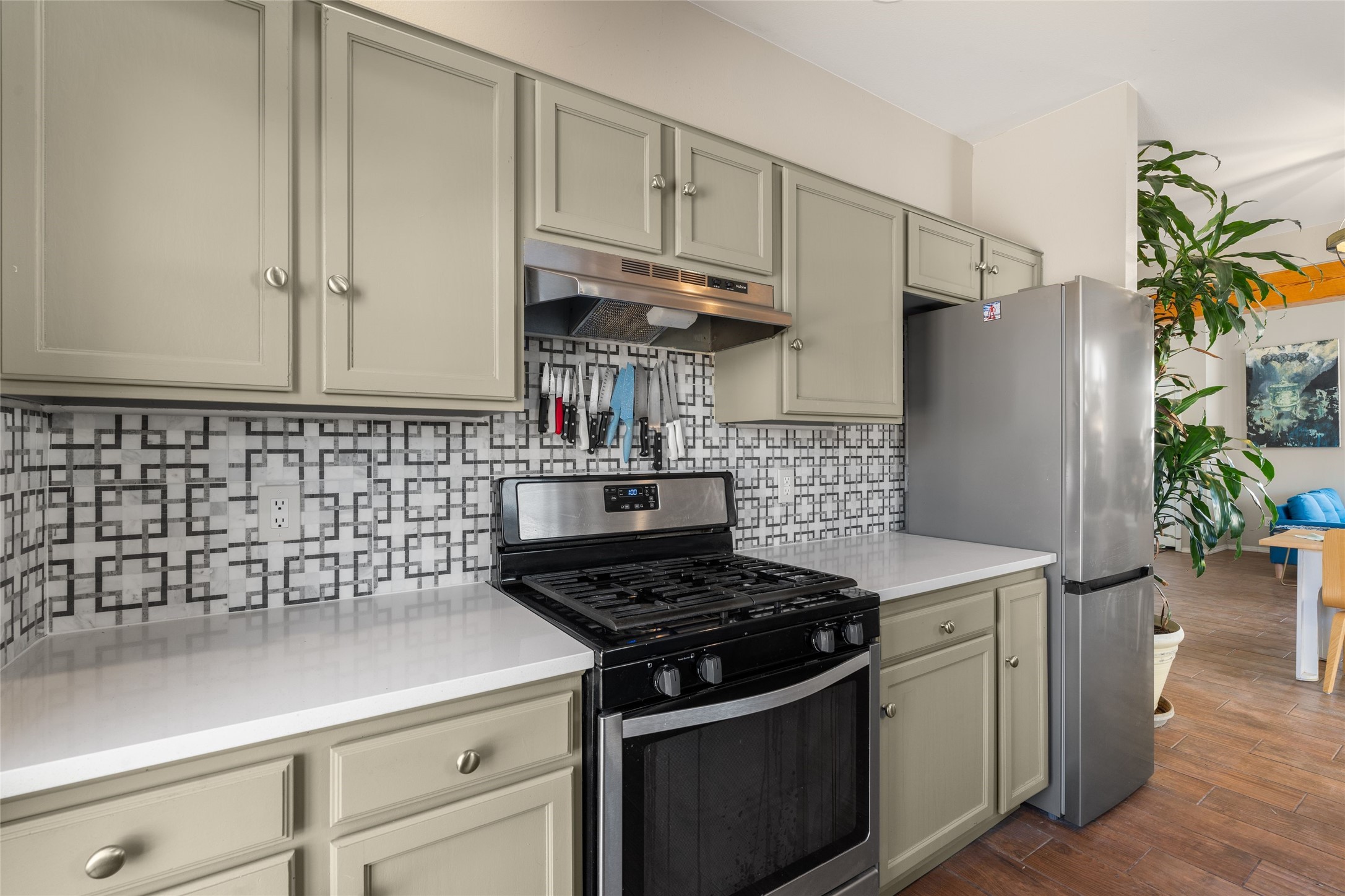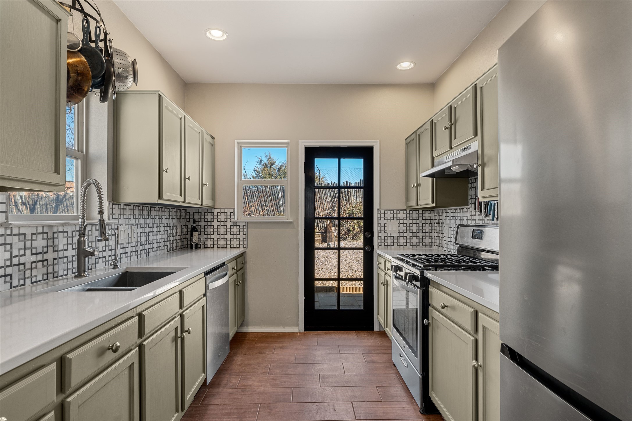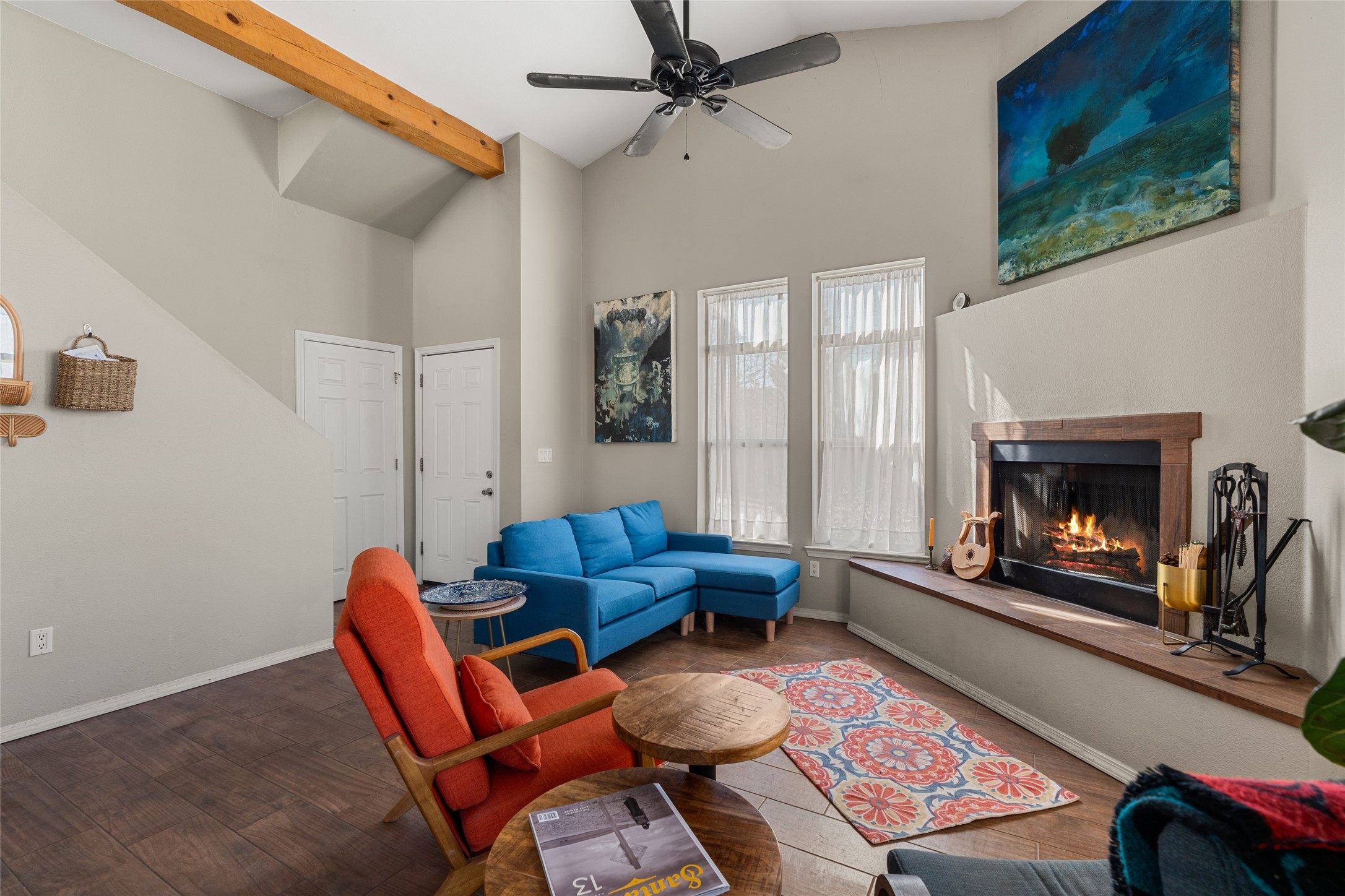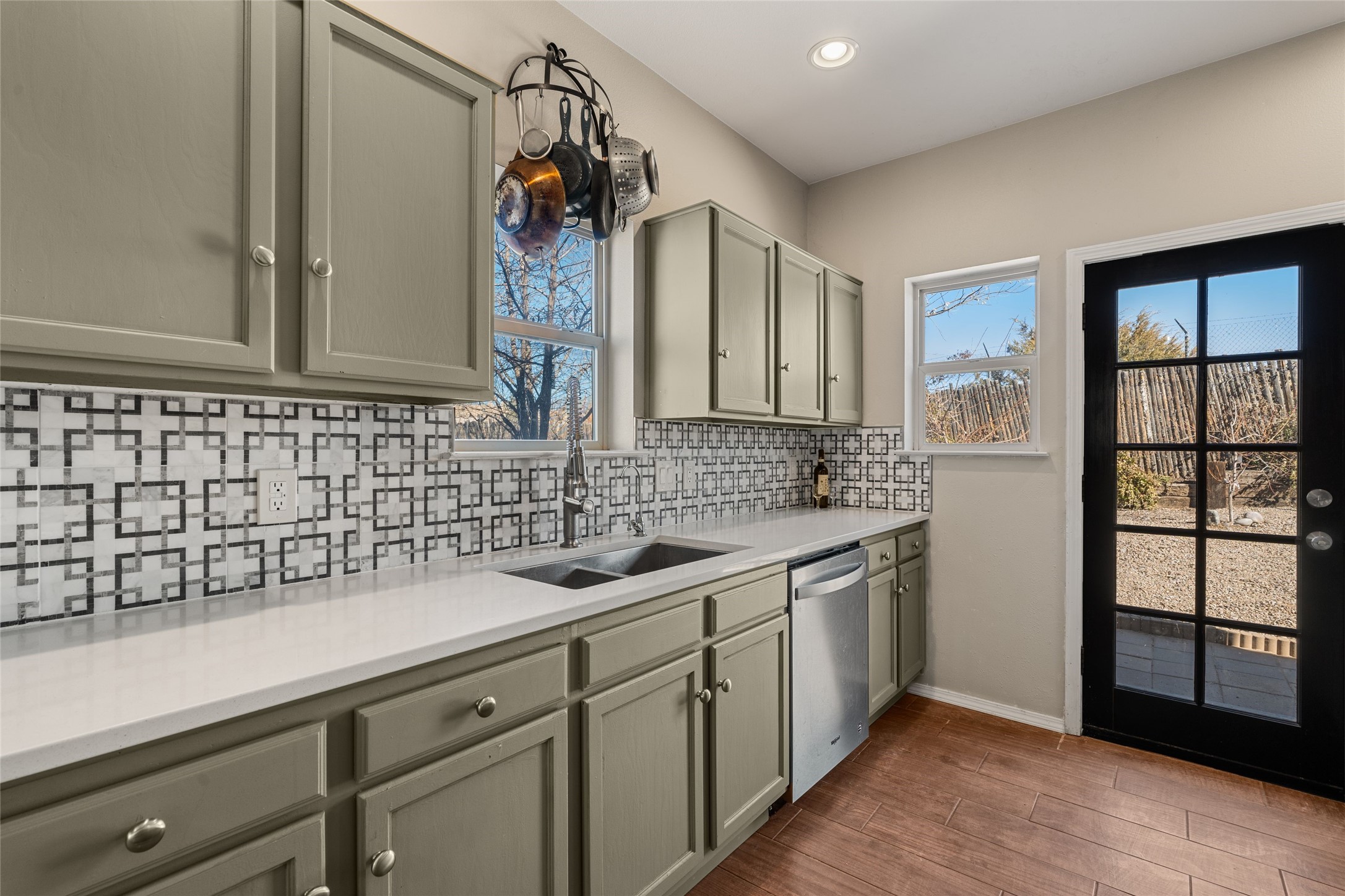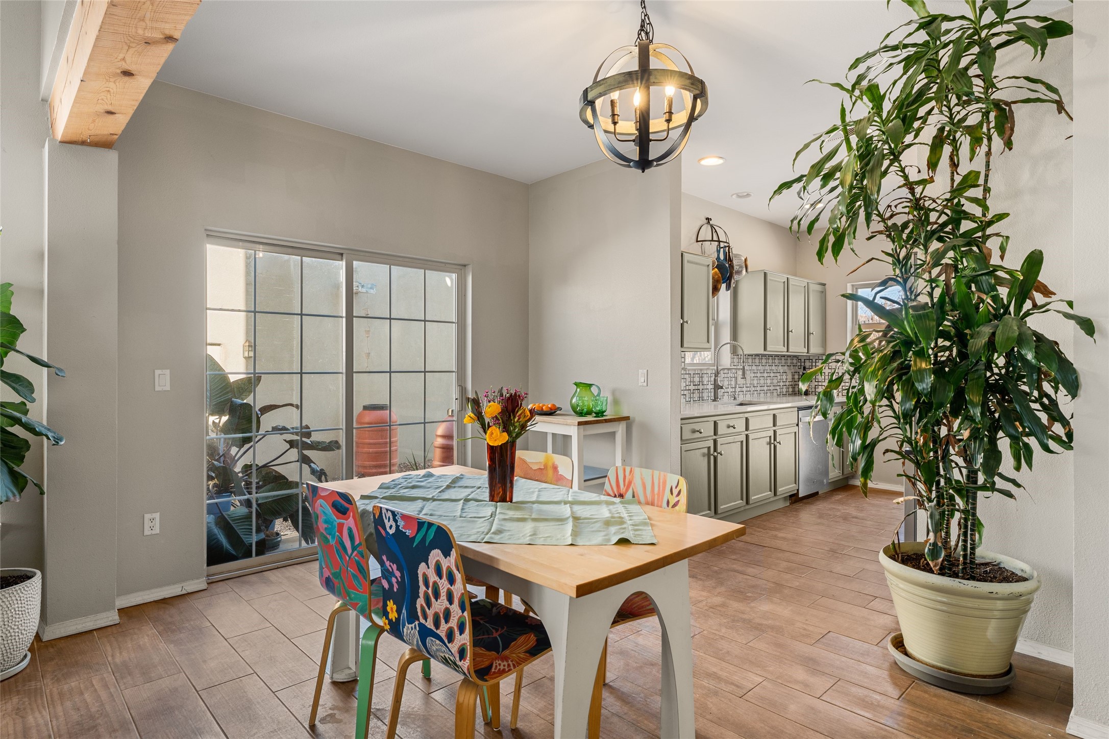 This upgraded and beautifully maintained Nava Ade home offers a perfect blend of comfort and convenience. As you enter under the fruit-bearing plum tree by the front door, you'll be greeted by an open living and dining area, with easy access to the expansive backyard - perfect for entertaining or relaxation. The home boasts a cozy wood-burning fireplace, ideal for those chilly evenings. The renovated kitchen features upgraded quartz countertops and a stylishly tiled backsplash that adds character and functionality. The home has two bedrooms and a full bath downstairs with a principal suite upstairs including ensuite bath, walk-in closet, and a private deck - a great spot to unwind and enjoy the surrounding views. The roomy pantry, laundry area, and closets all have built-in shelving. The large, fully fenced backyard features a hot tub and producing fruit trees, including apple, apricot, and peach, as well as three varieties of grapes, a perfect place to enjoy the seasons. The property is situated in the desirable Nava Ade community offering top-notch amenities, including a swimming pool, exercise room, steam shower, clubhouse, and a scenic path and trail system. Conveniently located just 15 minutes from the historic downtown Plaza and with easy access to retail shops and I-25, this home is ideally located for both relaxation and convenience.