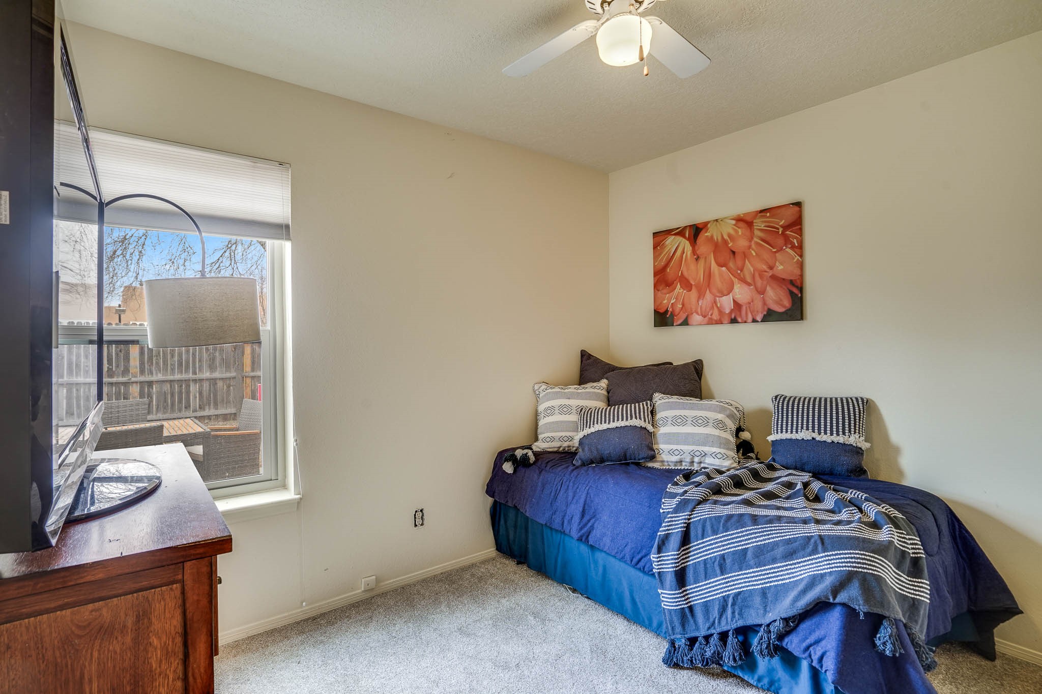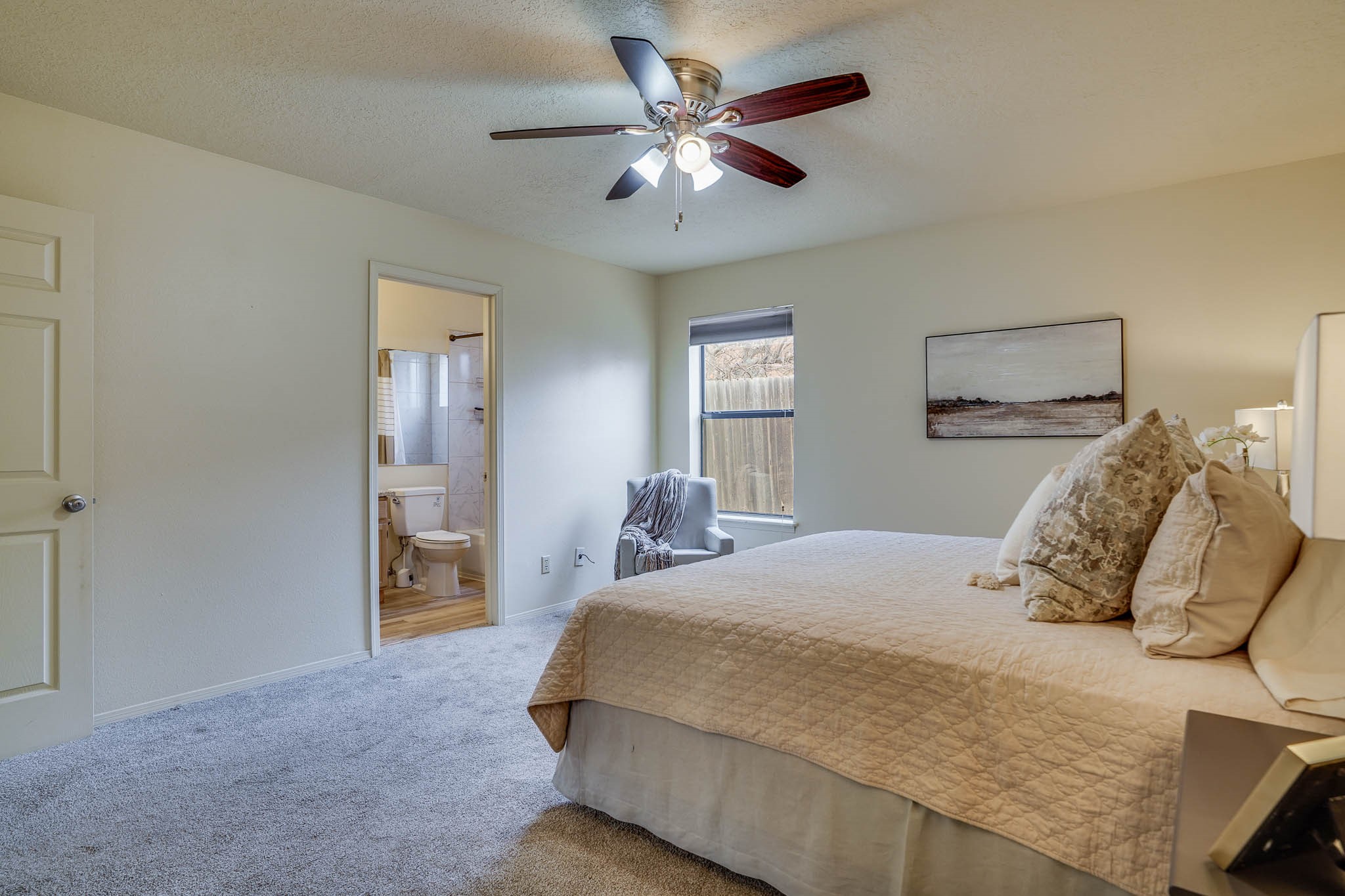 Experience the perfect balance of comfort and efficiency in this charming 3 bedroom, 2 bathroom home. Nestled on a generous corner lot, the residence features an inviting open floorplan with high beam ceilings and abundant natural light streaming through large, bright windows. The spacious layout seamlessly connects living, dining, and kitchen areas, ideal for both entertaining and daily life. Enjoy the convenience of a finished single-car garage, a fully fenced yard perfect for pets and play, and dedicated RV parking.Recent enhancements includea 2024 photovoltaic solar panel system for sustainableliving, an upgraded electrical panel ready for EV charging and AC installation, a 2023 roof with a transferable warranty, a new 2024 sliding glass door, and a new furnace installed in March 2025.